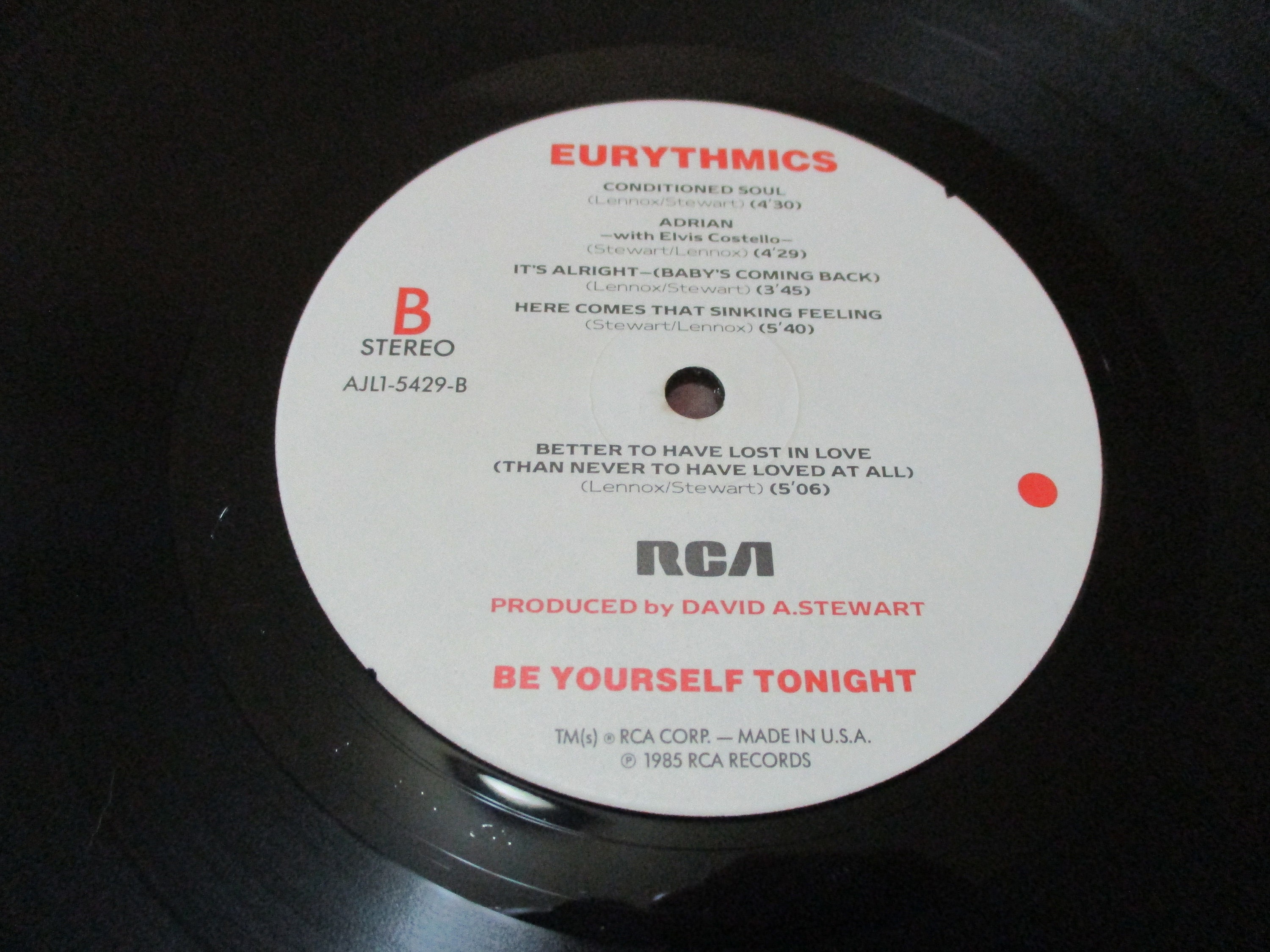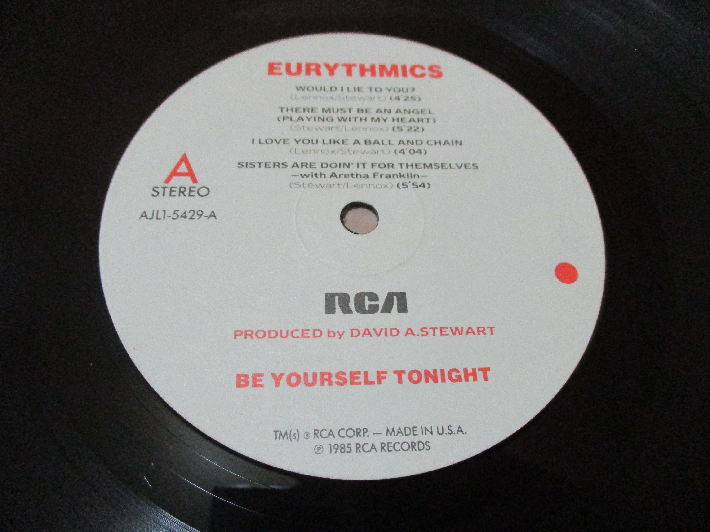 Vintage 1985 Vinyl LP Record Be Yourself Tonight The Eurythmics Near Mint Condition. Original cover is in Near Mint condition and includes the original inner paper sleeve. Record is near mint. Tracks are as follows