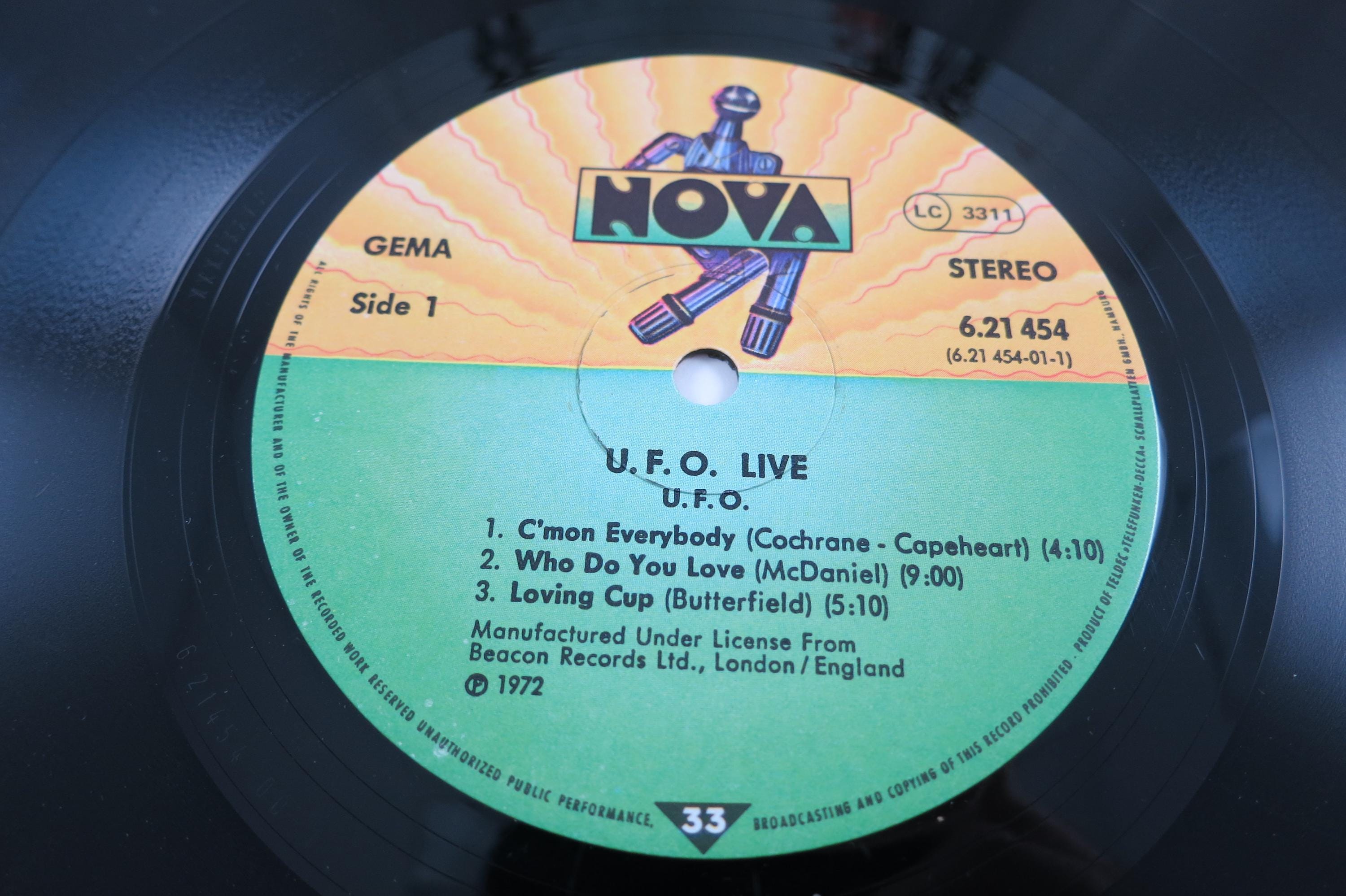 Vintage 1975 Vinyl LP Record UFO Live Excellent Plus Condition German Pressing. Original cover is in excellent condition and includes the inner paper sleeve, Record is excellent plus. Nice Copy! Tracks are as follows