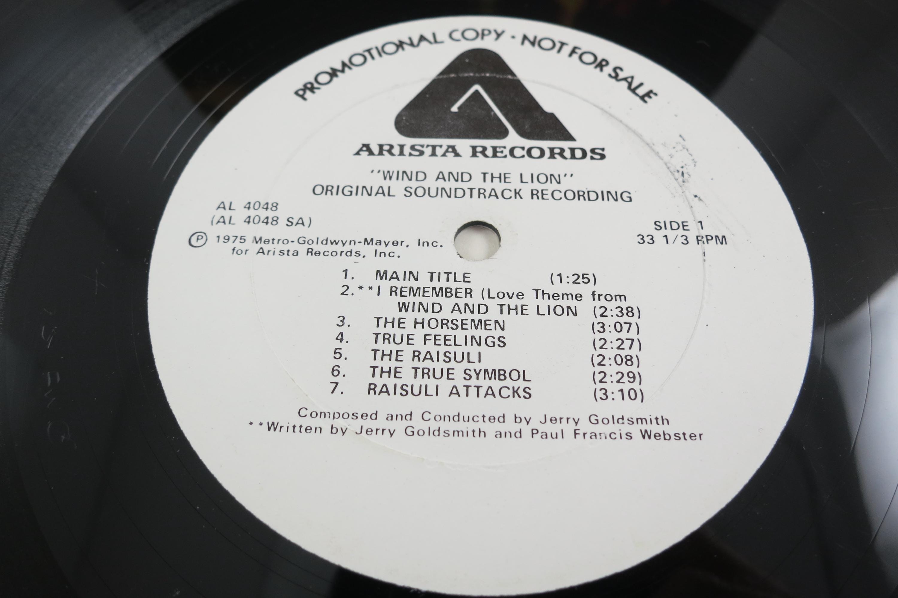 Vintage 1975 Vinyl LP Record The Wind and the Lion Original Motion Picture Soundtrack Excellent Condition White Label Promo Pressing. Original cover is in excellent condition and includes the inner paper sleeve. Record is excellent as well. White label promo pressing! Tracks are as follows