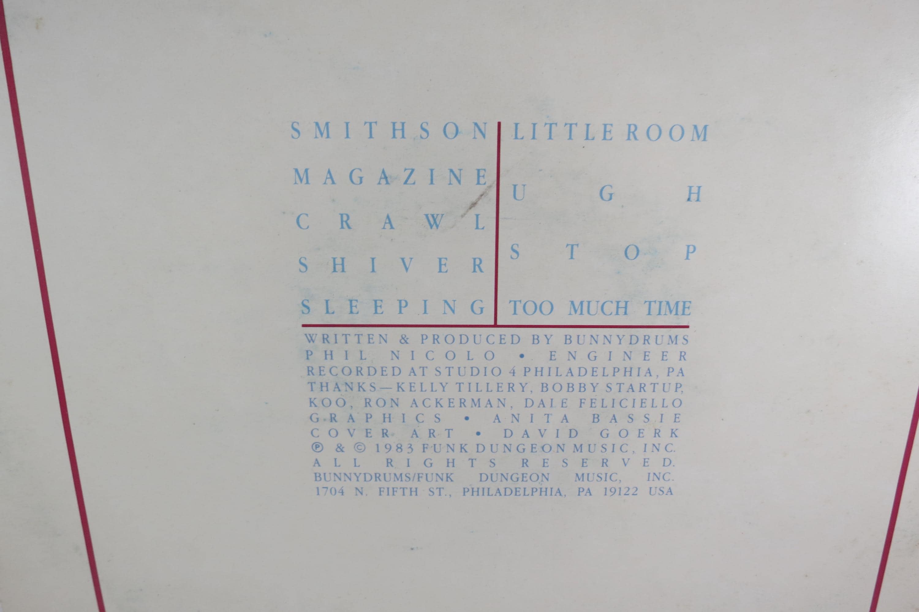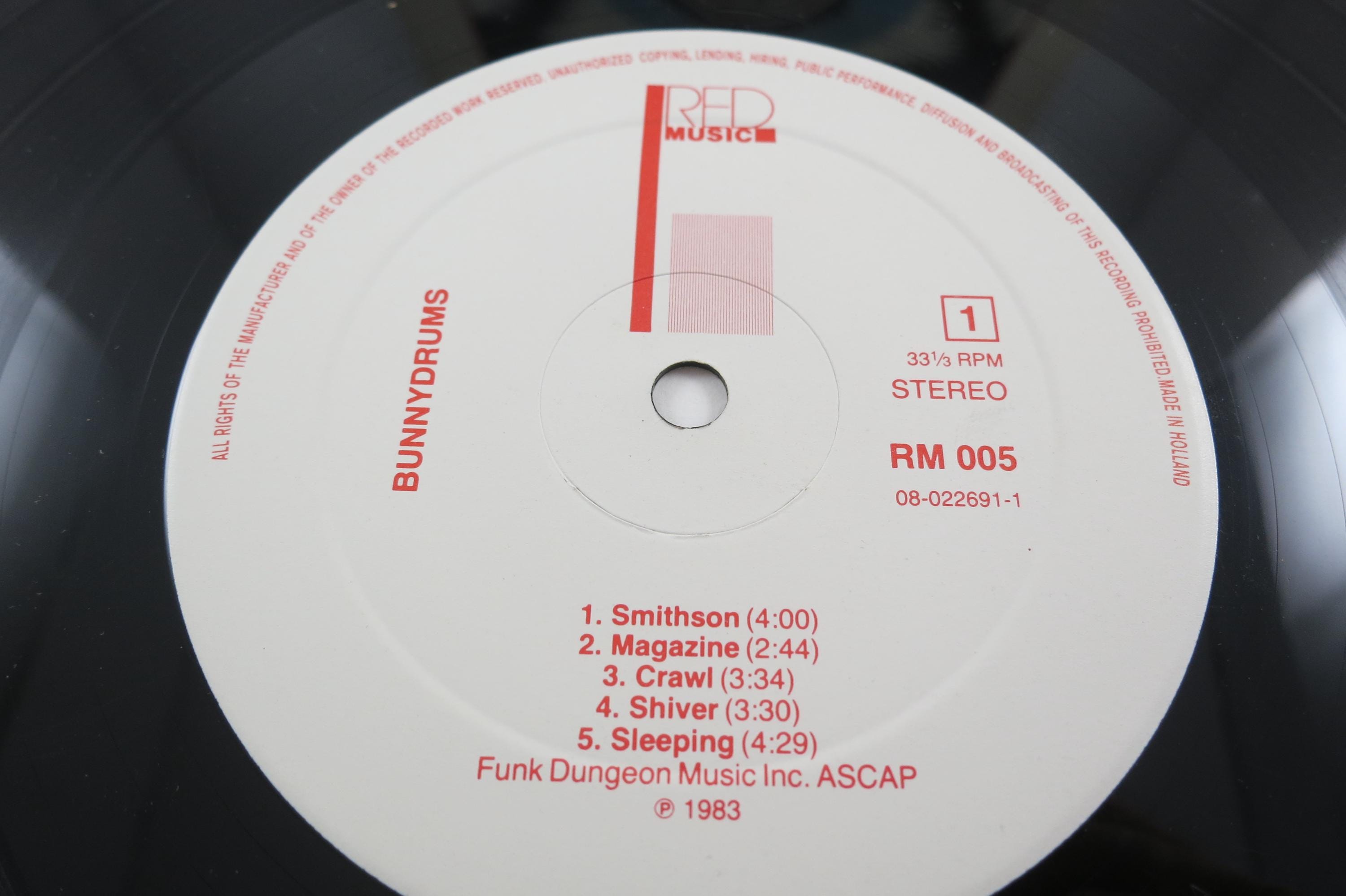Vintage 1983 Vinyl LP Record P-K-D Bunnydrums Excellent Plus Condition. Original cover is in very good condition and includes the inner paper sleeve. Record is in excellent plus condition. Tracks are as follows