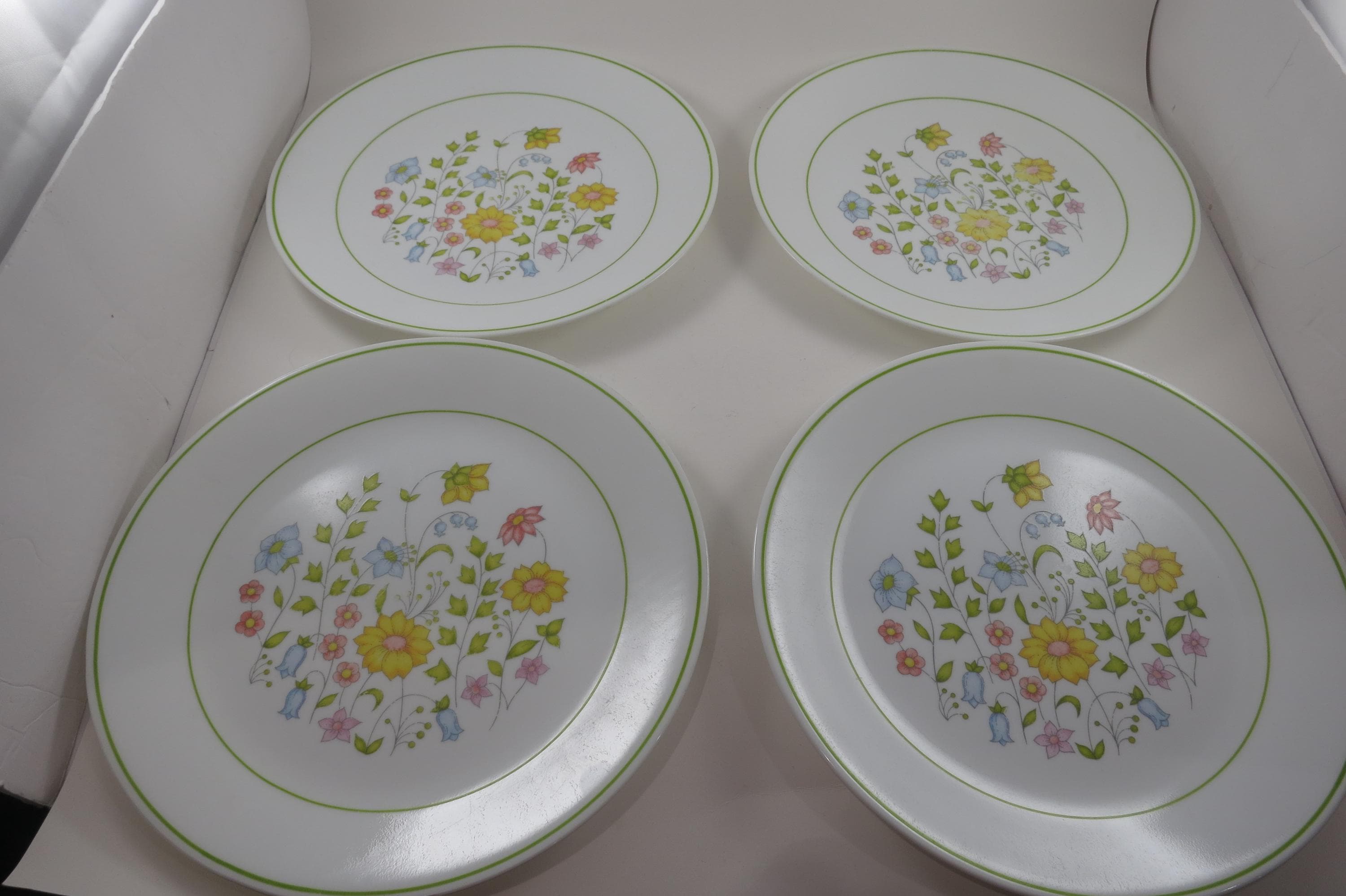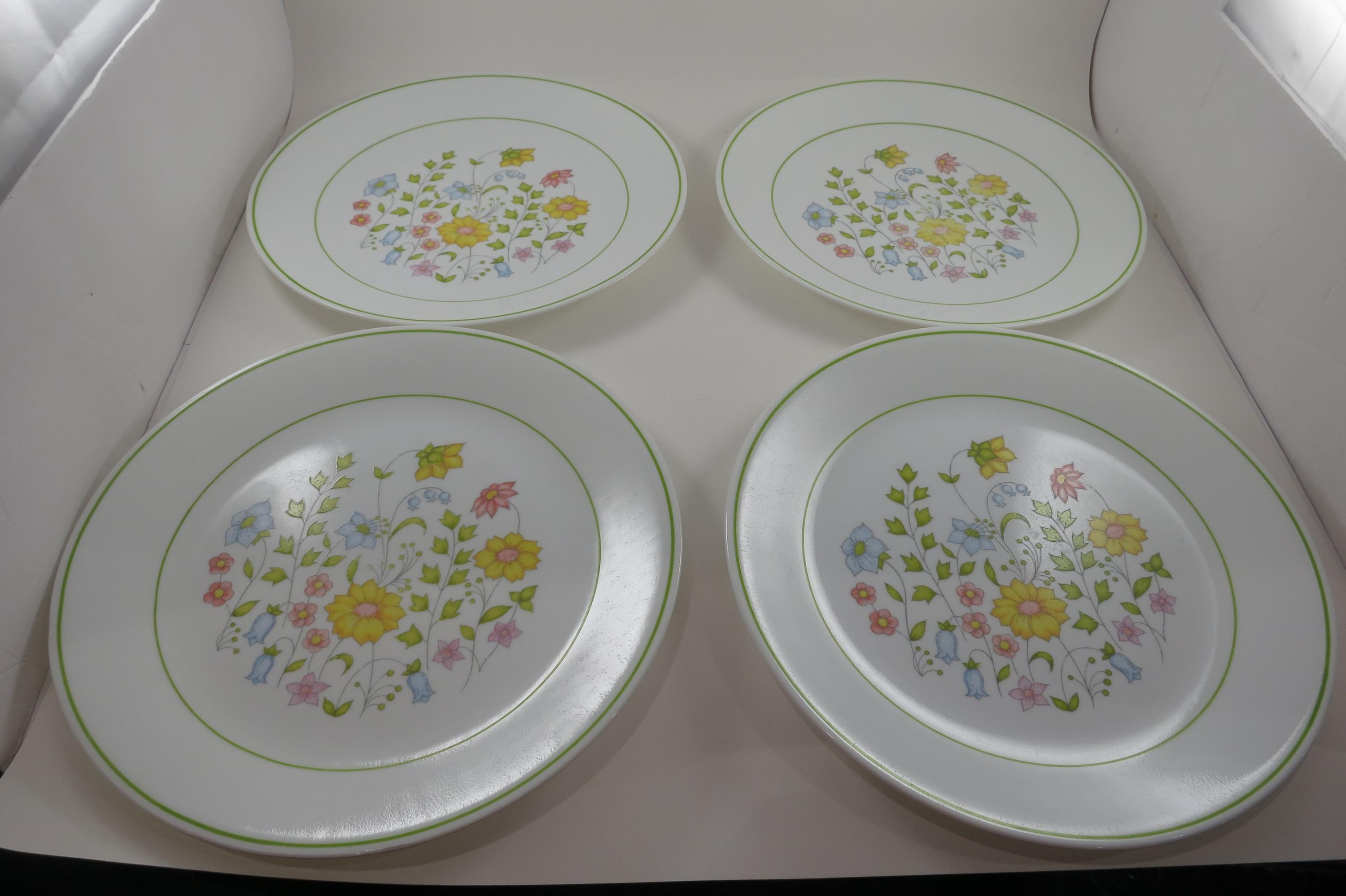 Vintage Corelle Spring Meadow Pattern 10 1/4 Inch Dinner Plates - Set of 4 - Excellent Used Condition. No chips, cracks or damages. Listing is for 4 Plates.