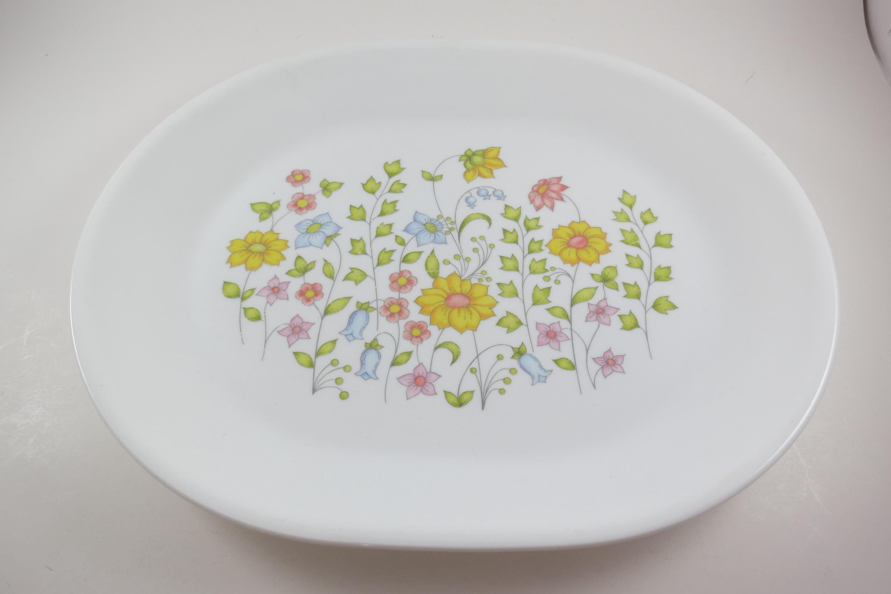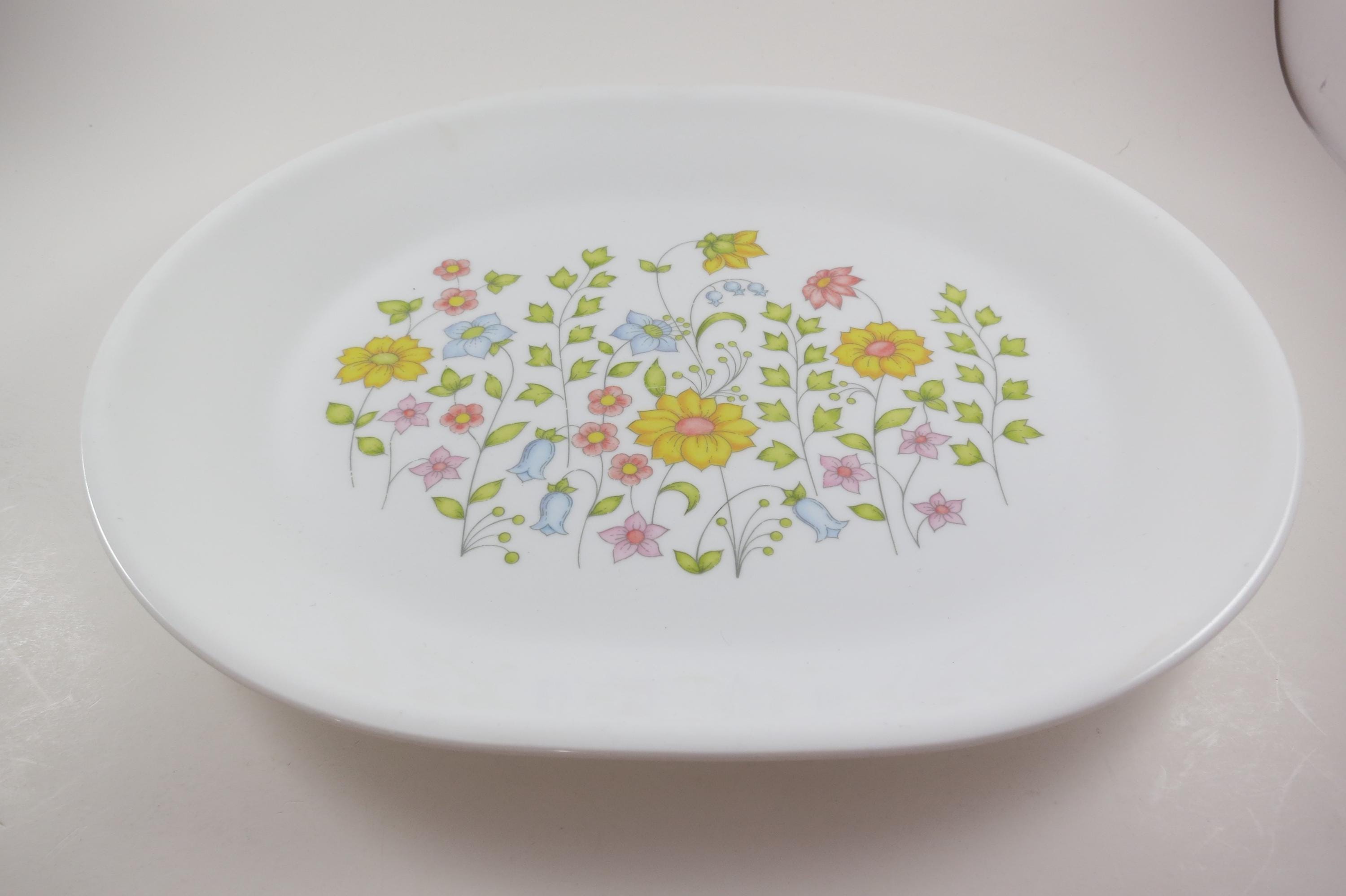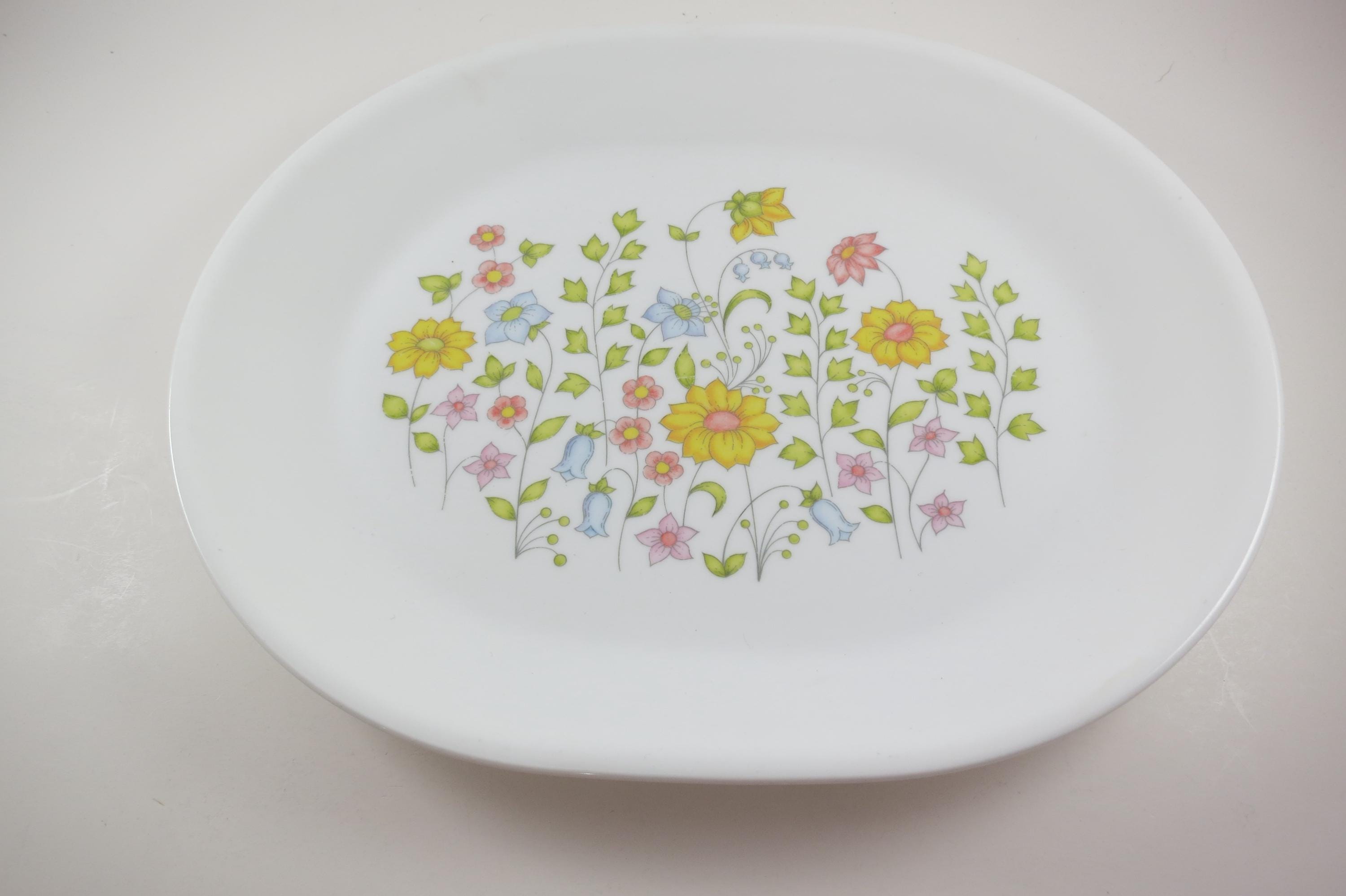 Corelle Spring Meadow Pattern Serving Platter: 10x12 Oval Plate. Like New Condition. Width is 10 inches. Like New Condition and ready to keep using!