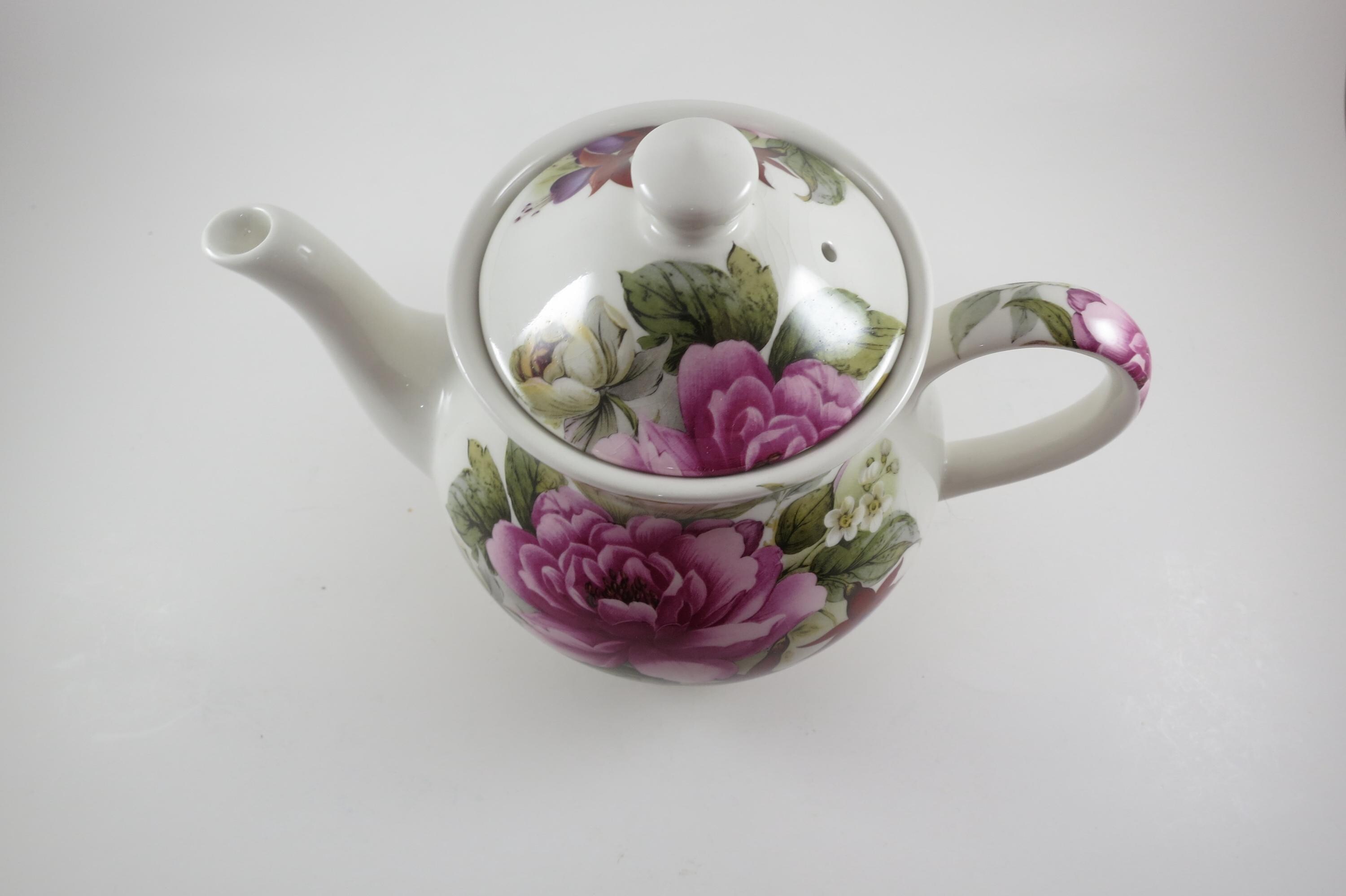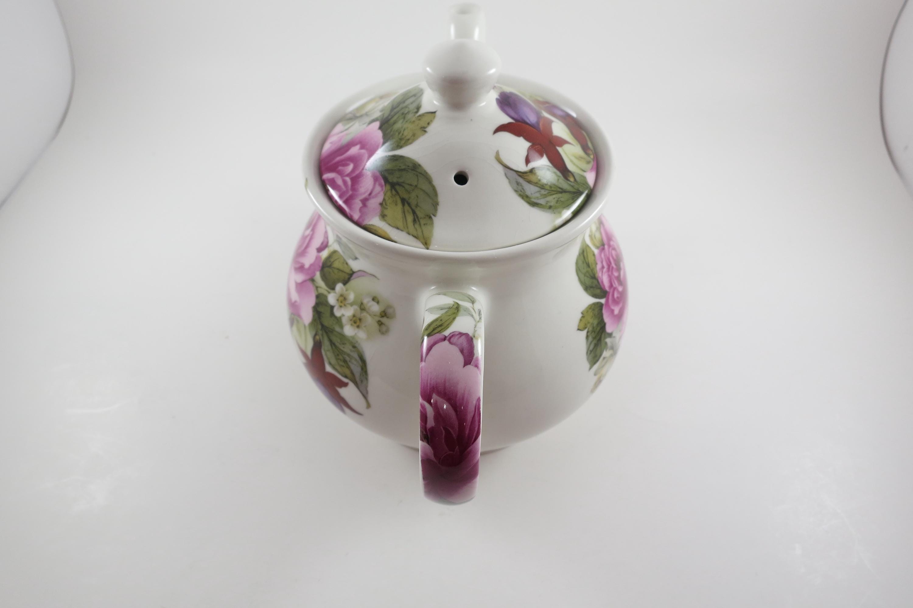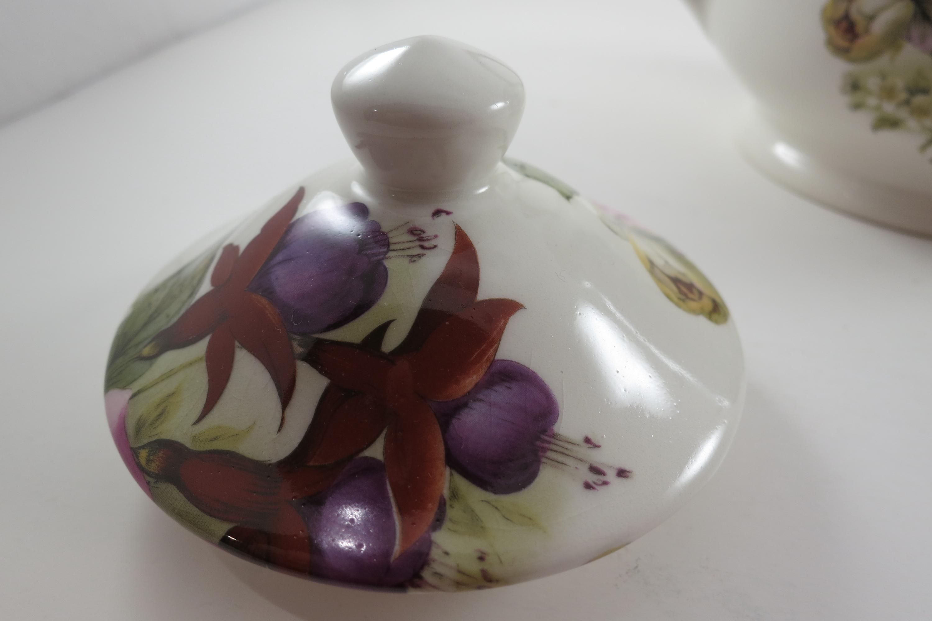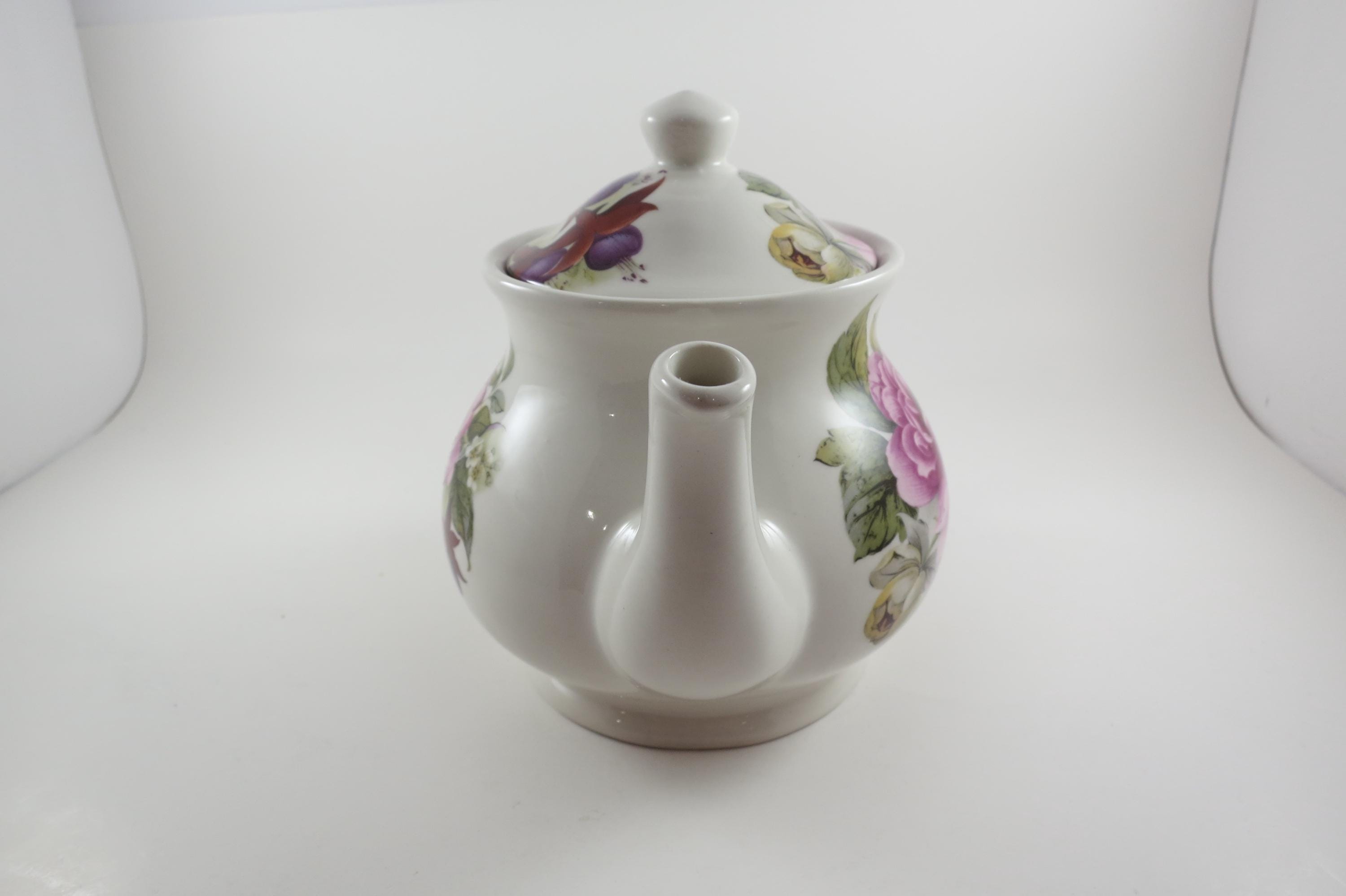 Vintage Sadler Windsor England China Teapot with Lid Peonies and Fuchsia Pristine Condition. Beautiful teapot measuring 9 inches wide and 7 inches tall. No damages, displays very nicely!