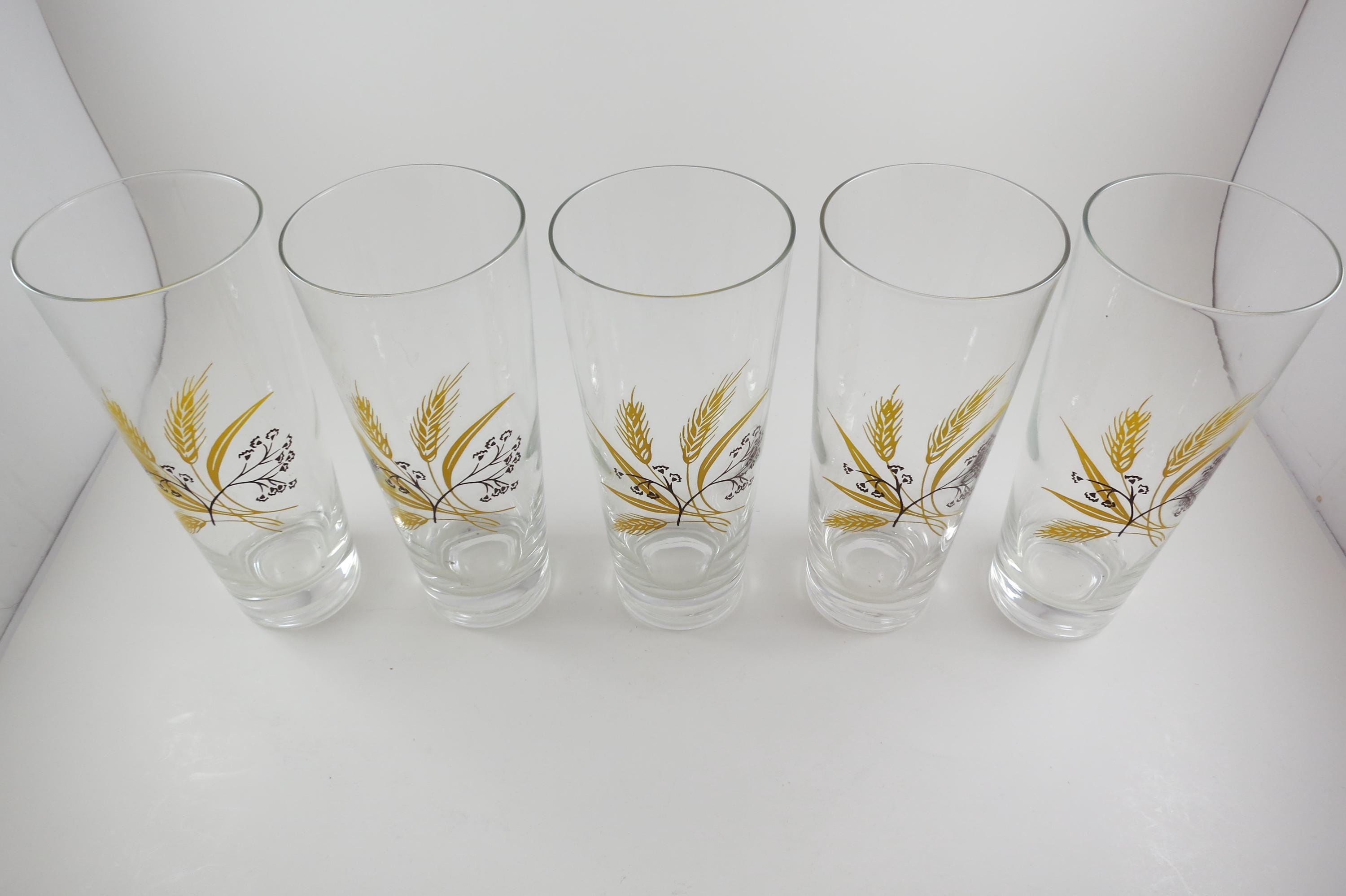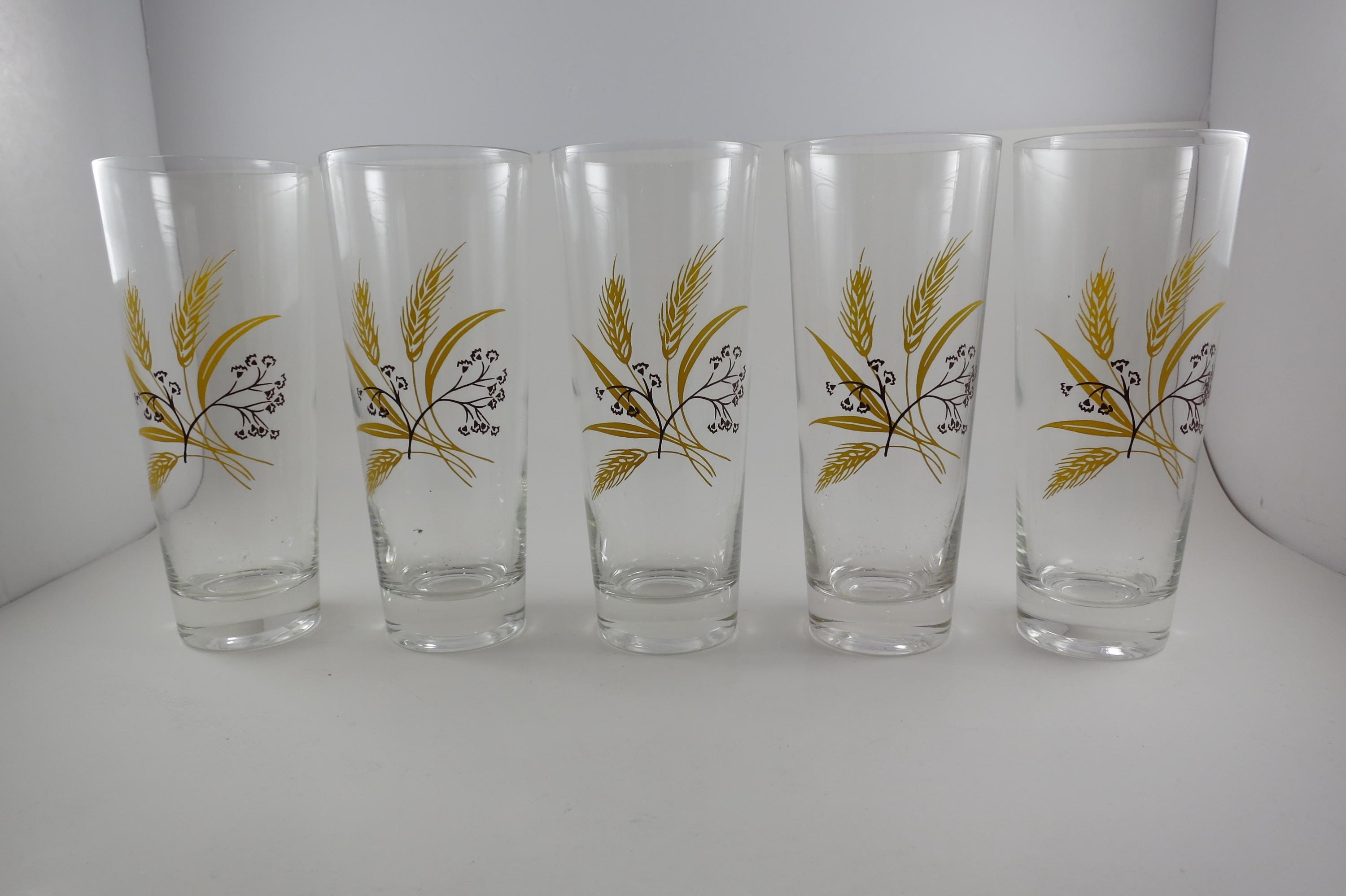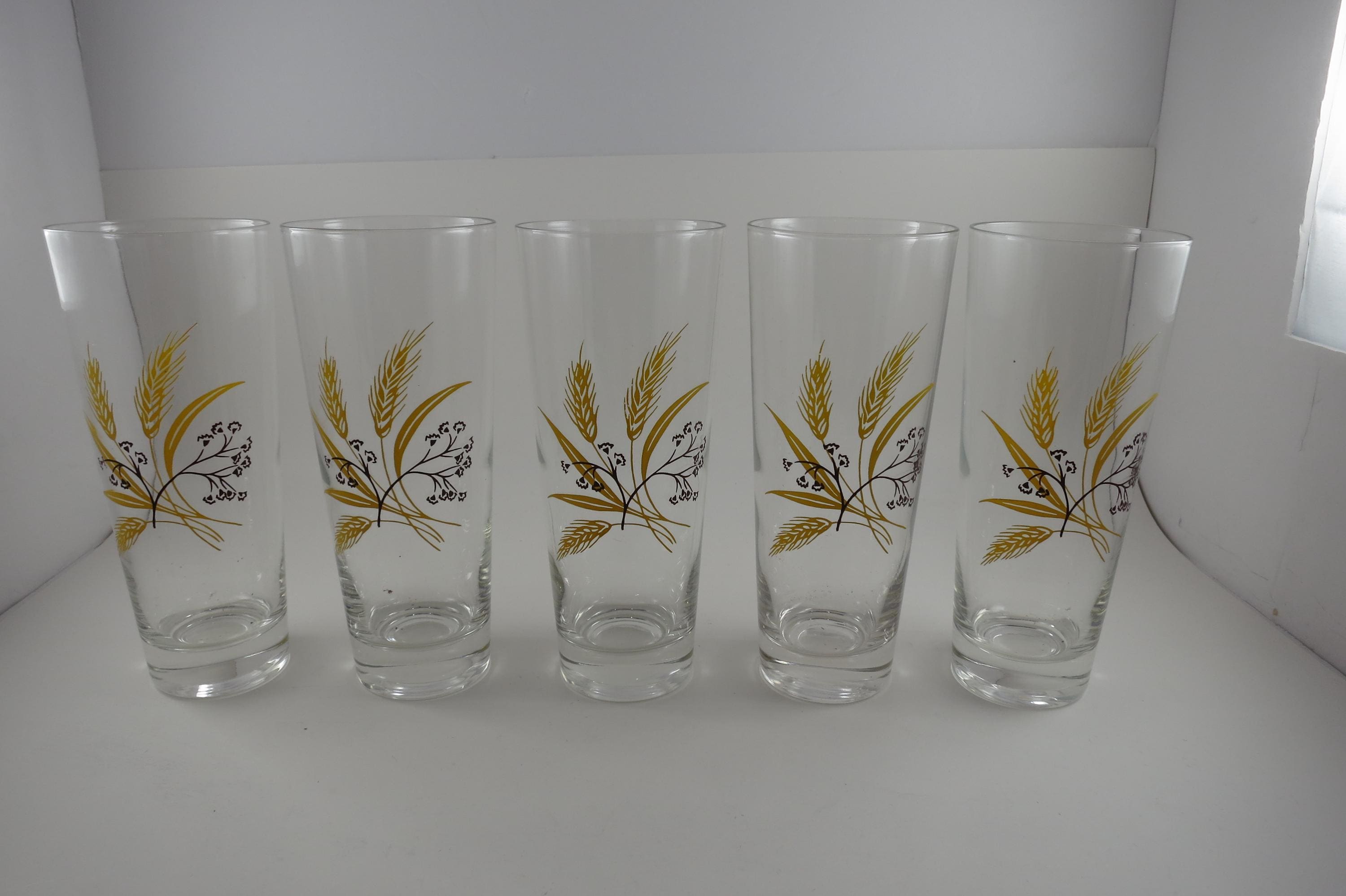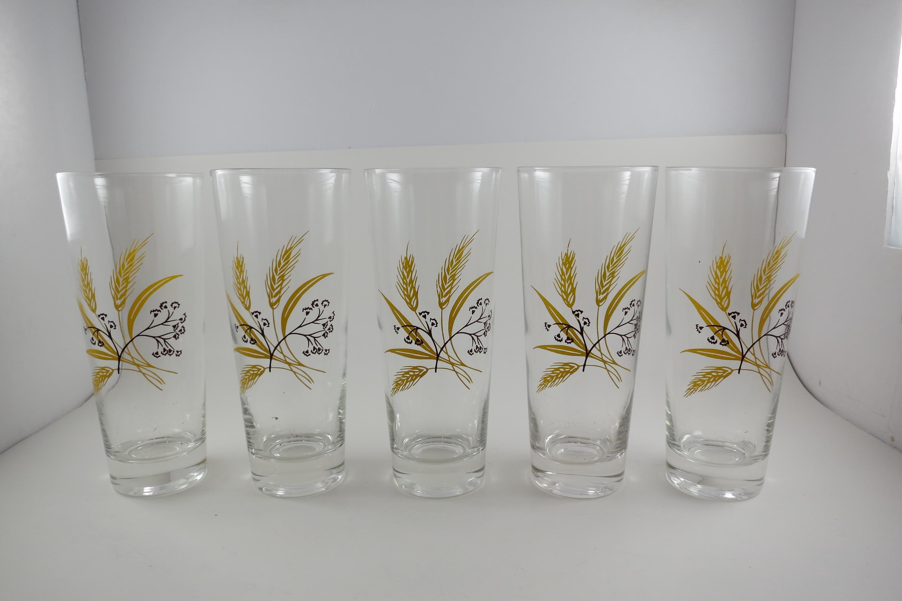 Set of 5 Vintage Homer Laughlin Wheat Design Highball Iced Tea Glasses 6 3/4 Inches Tall Like New Condition. No chips or damages, hardly and use wear. These look almost new! Set of five glasses.
