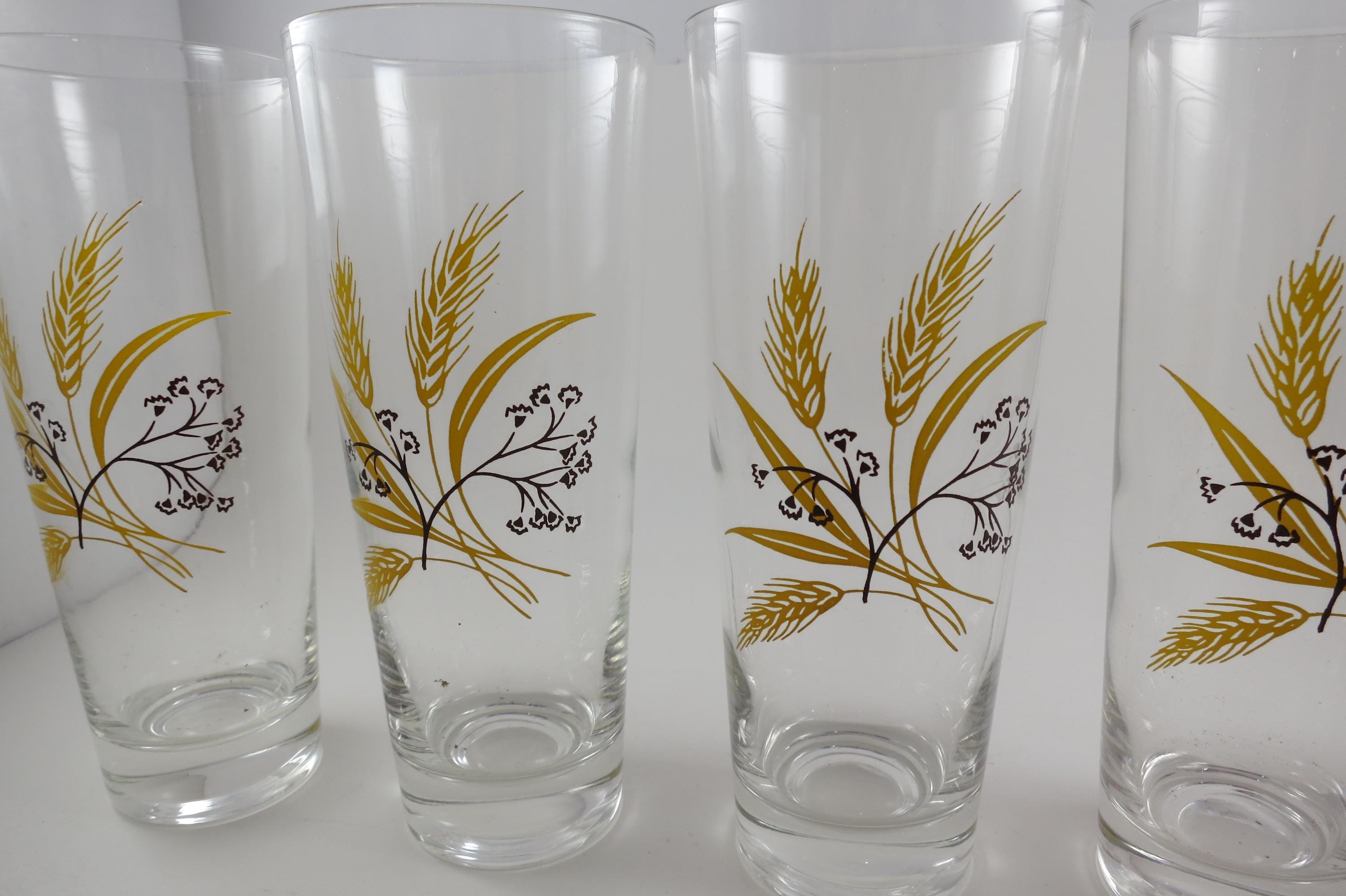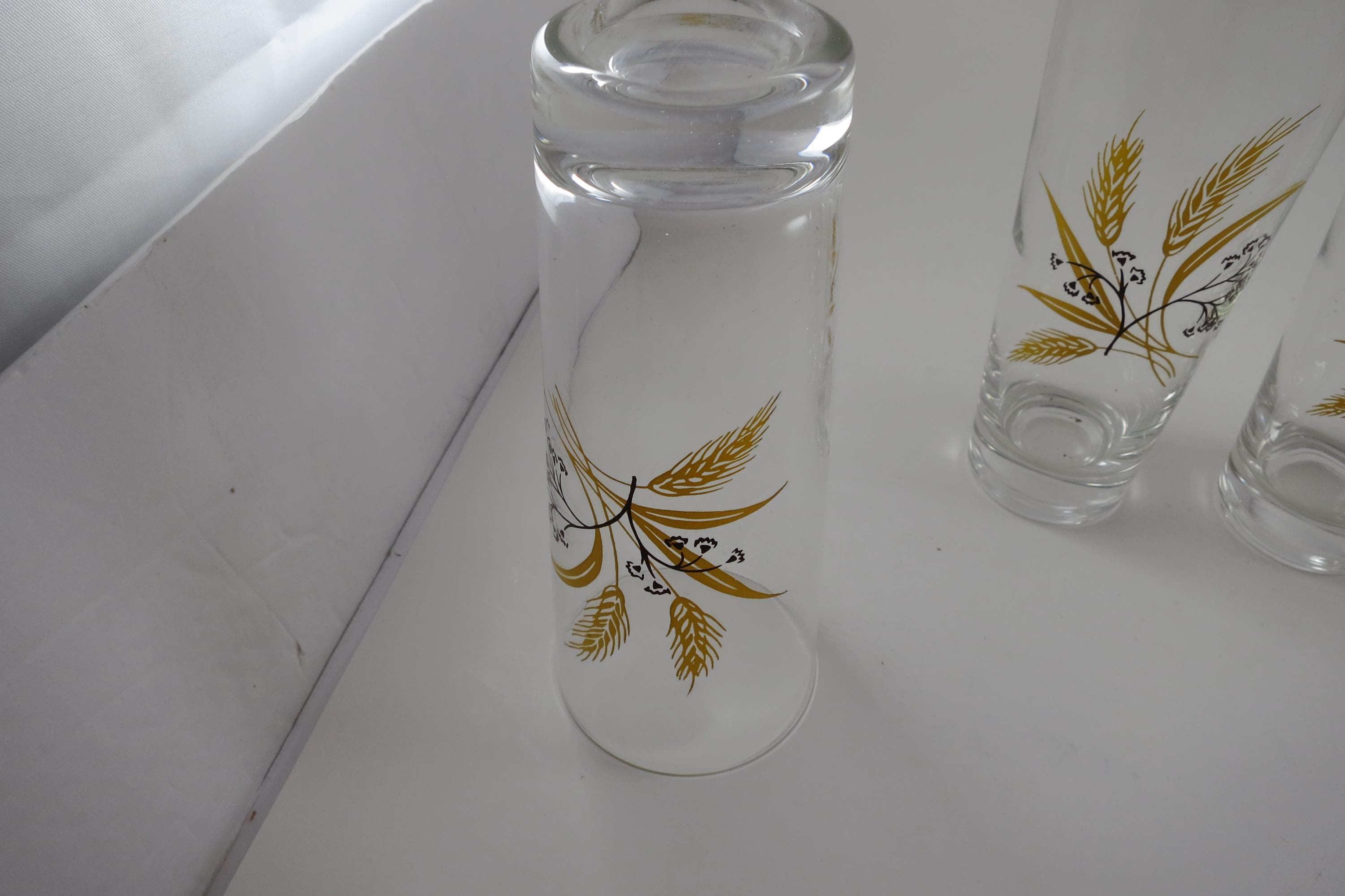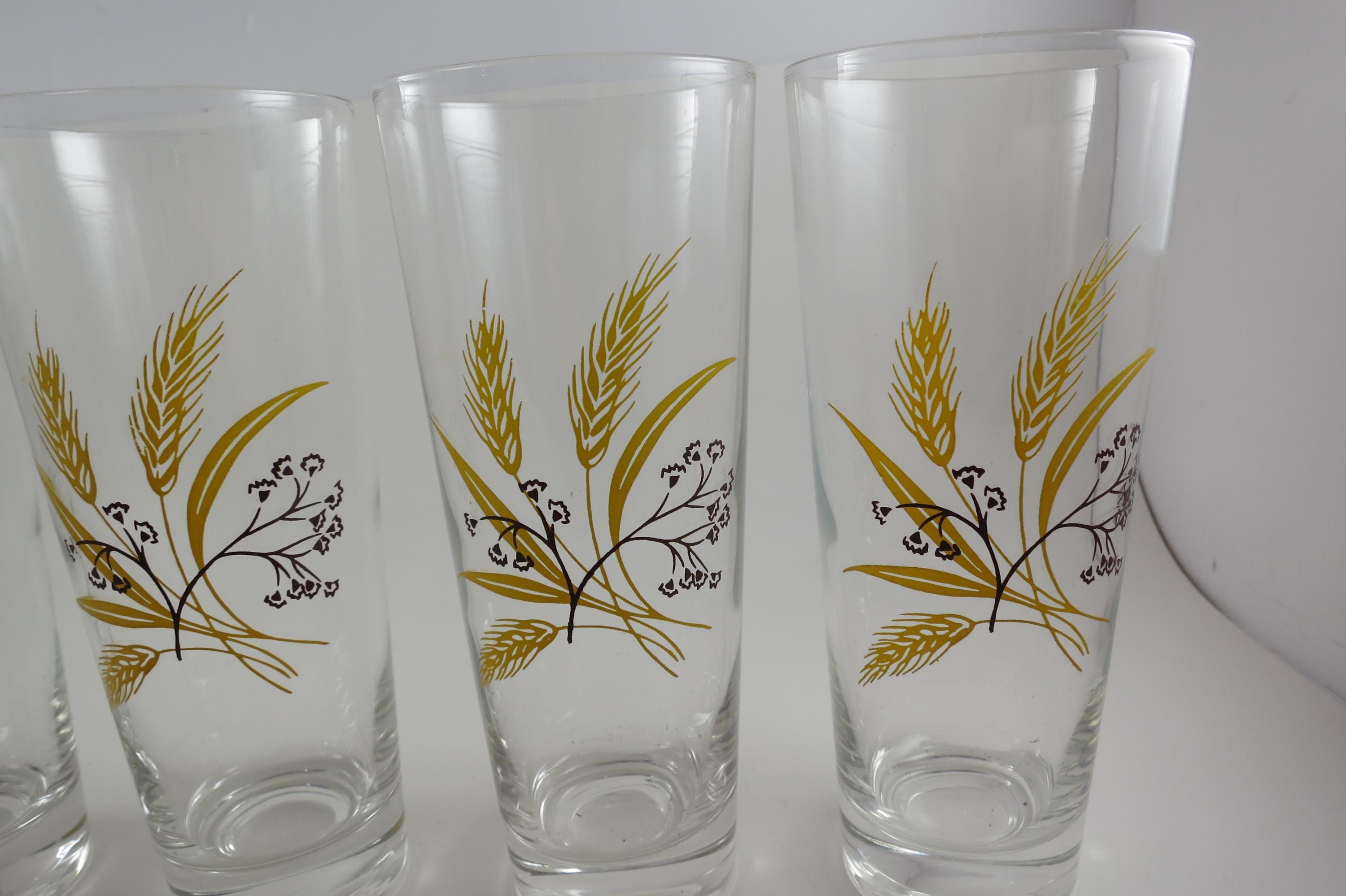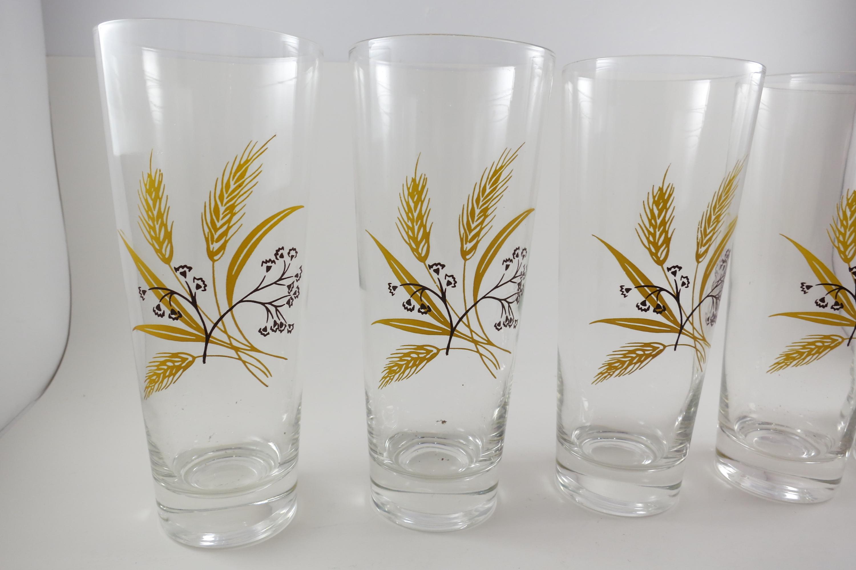 Set of 5 Vintage Homer Laughlin Wheat Design Highball Iced Tea Glasses 6 3/4 Inches Tall Like New Condition. No chips or damages, hardly and use wear. These look almost new! Set of five glasses.
