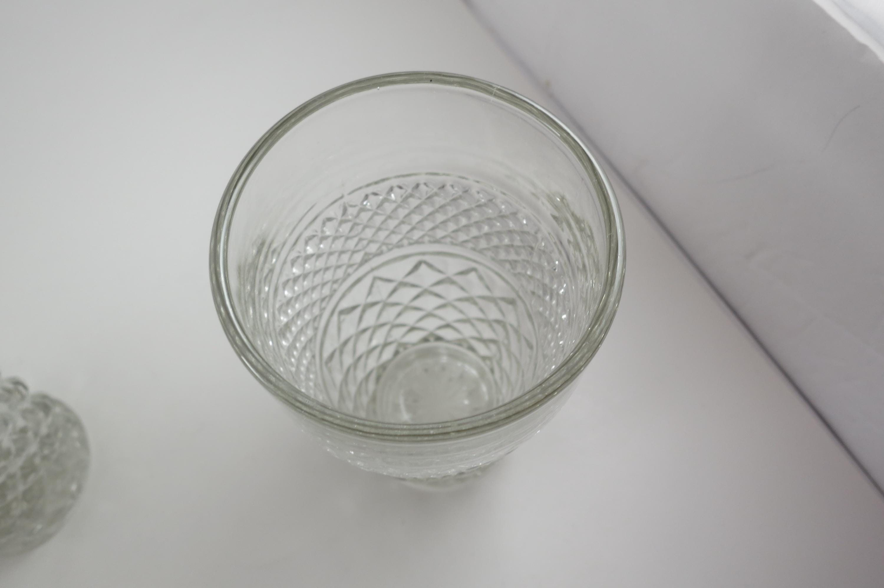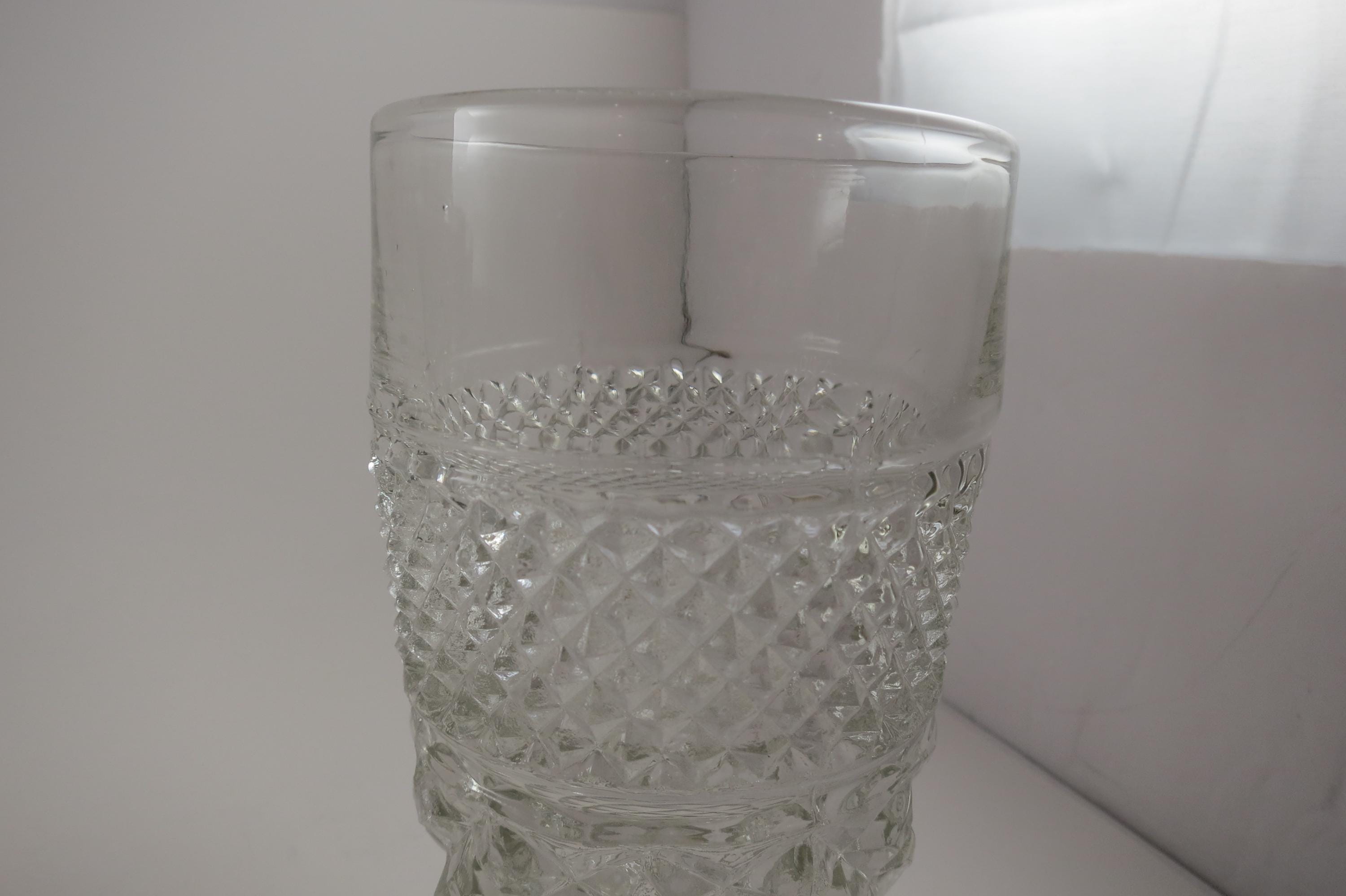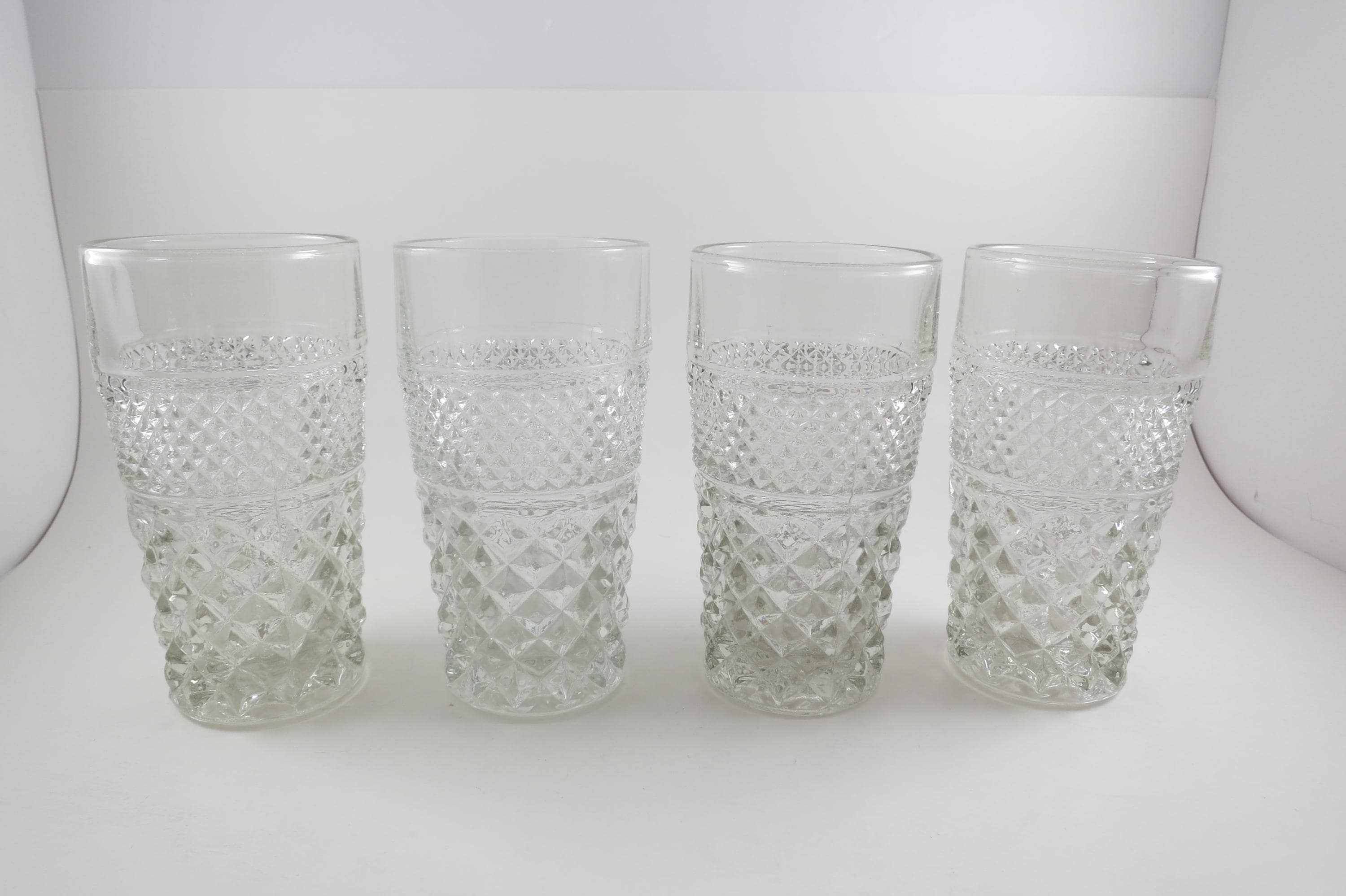 Set of Four Vintage Anchor Hocking Wexford 5 1/2 Inch 11 Ounce Flat Tumblers Clear Cut Diamond Pattern.