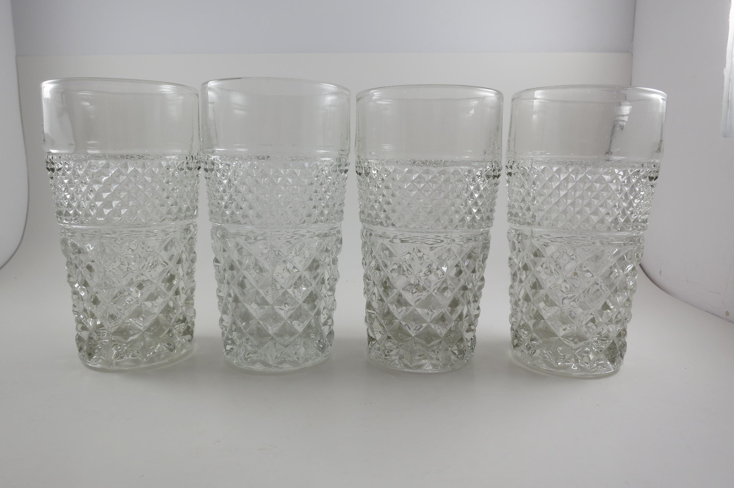 Vintage Anchor Hocking Wexford Tumblers - Diamond Cut Glass, Set of 4