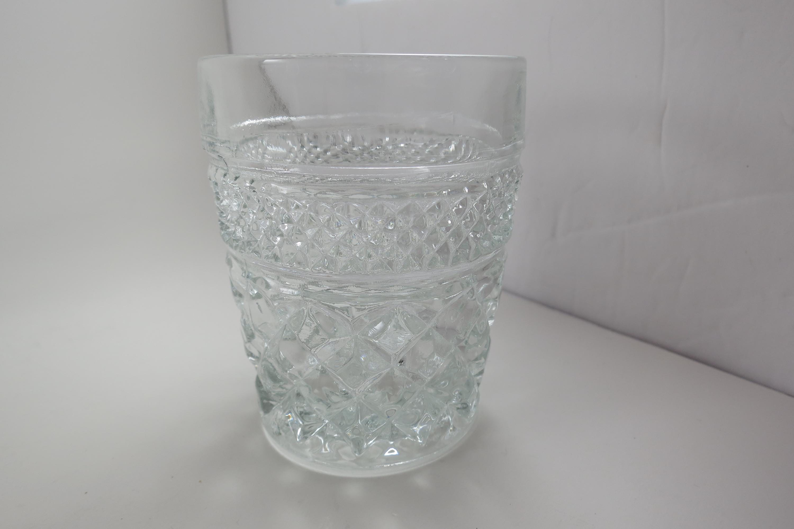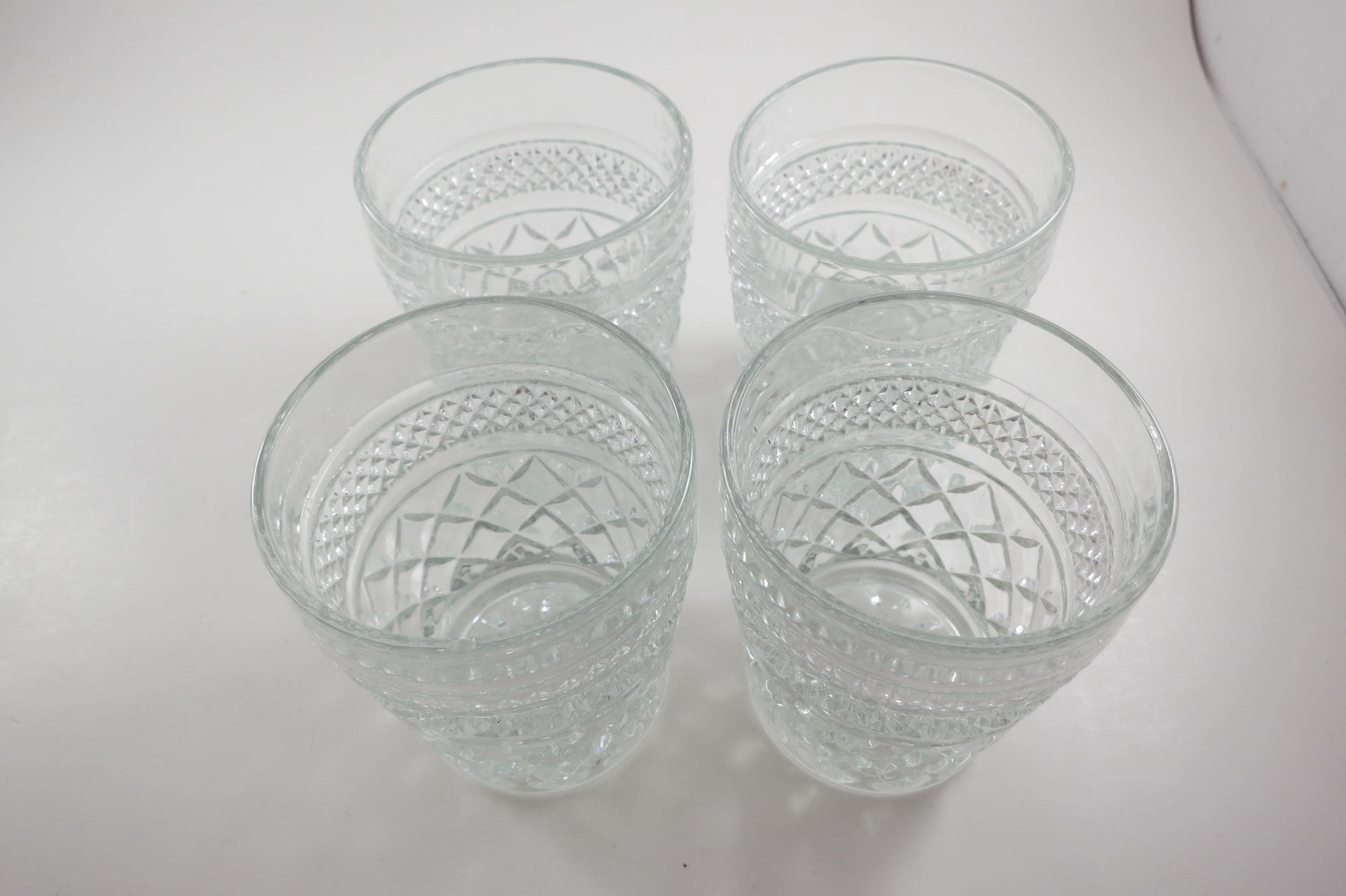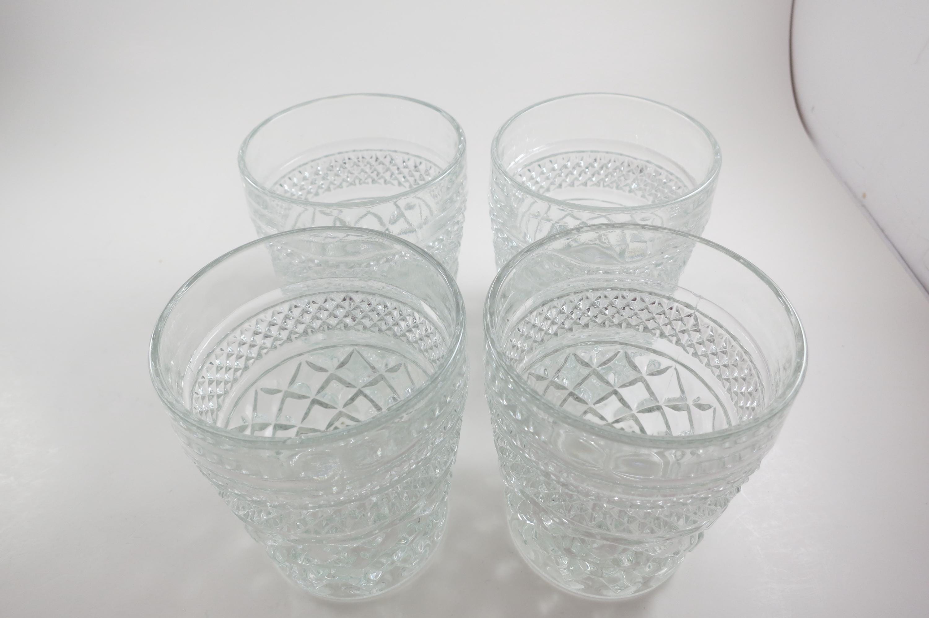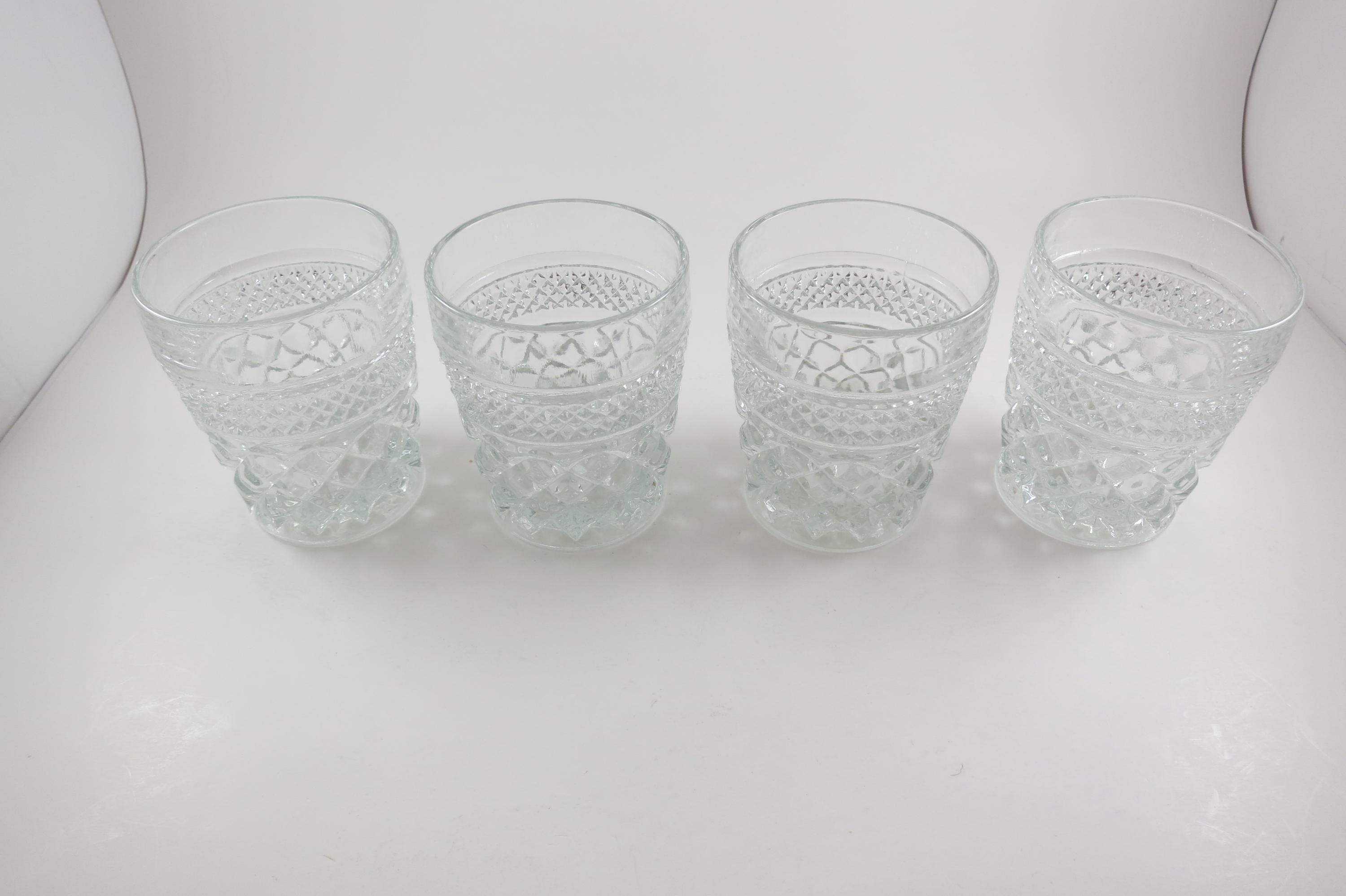 This listing is for a set of 4 Glasses. We have a total of 12 Available so if you would like more just change the quantity in the drop down box. We have a large selection of the Wexford Pattern from an estate sale, including Flat Tumblers, Footed Water Goblets, Old Fashion Tumblers and Juice Glasses in other listings.
