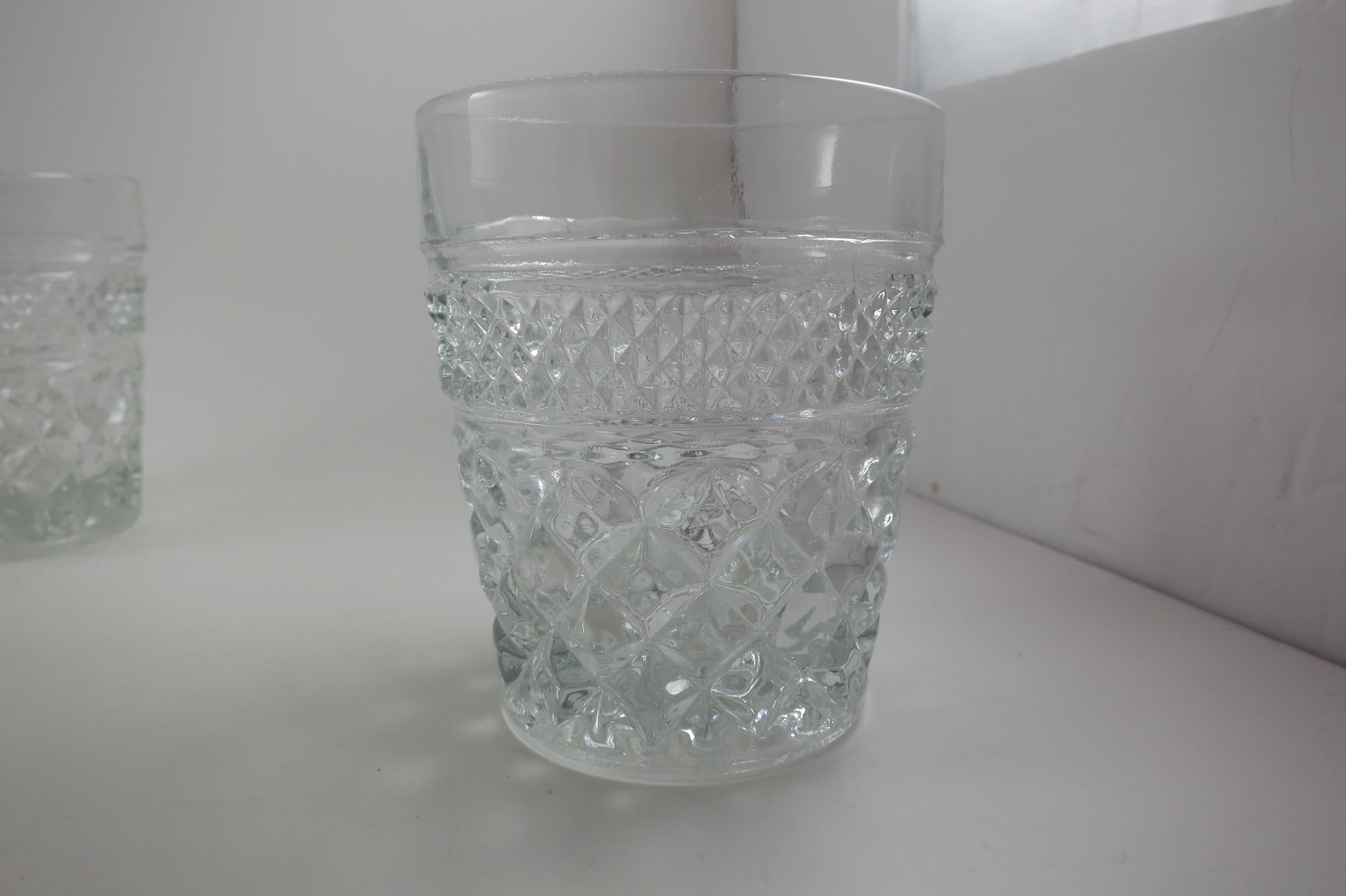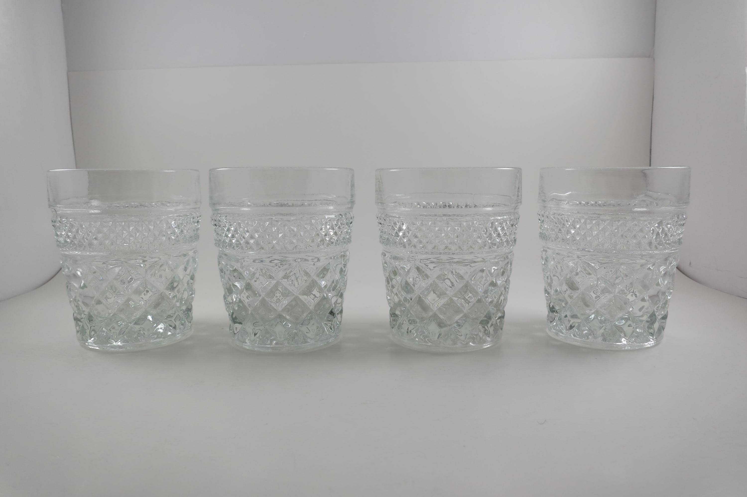 Vintage Anchor Hocking Wexford Diamond Cut Old Fashion Glasses, Set of 4