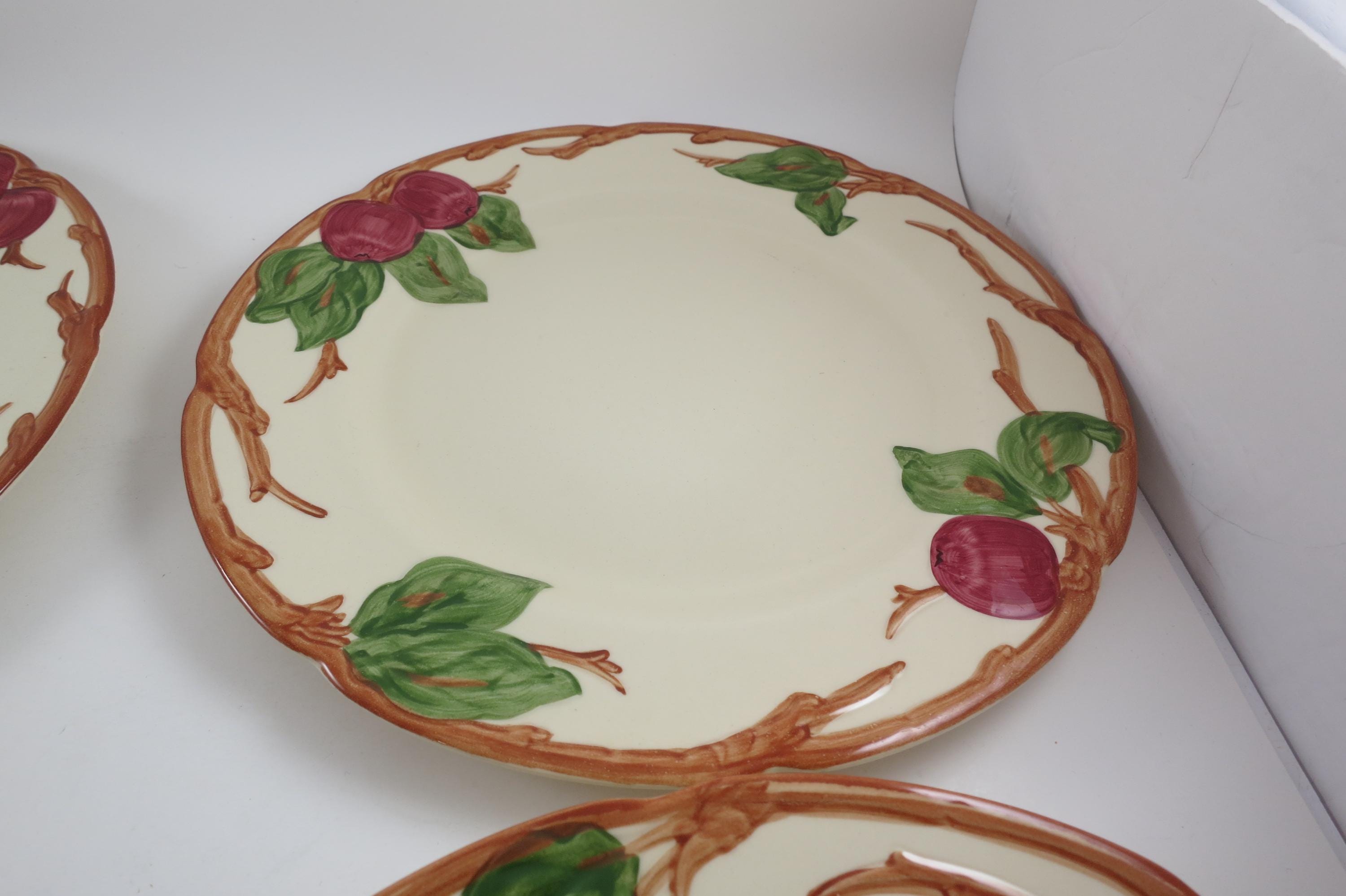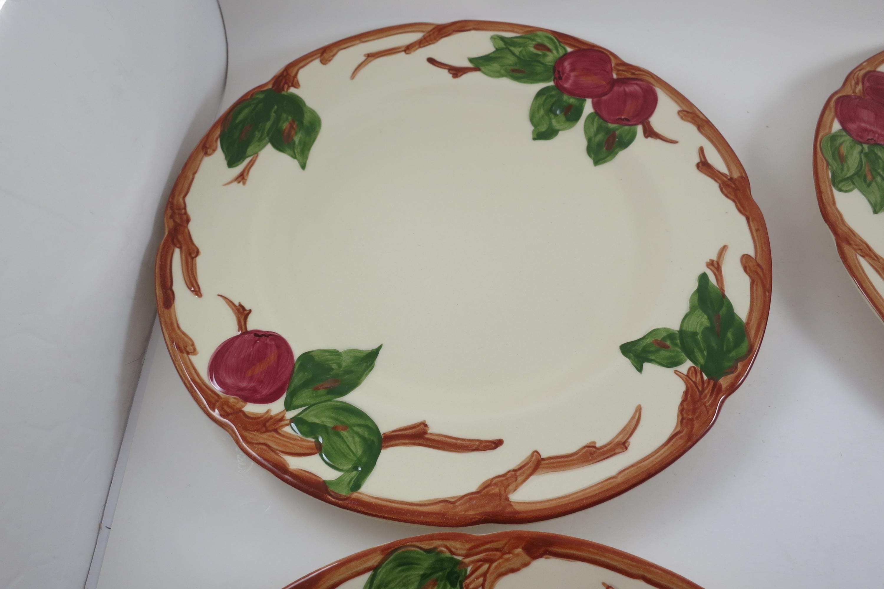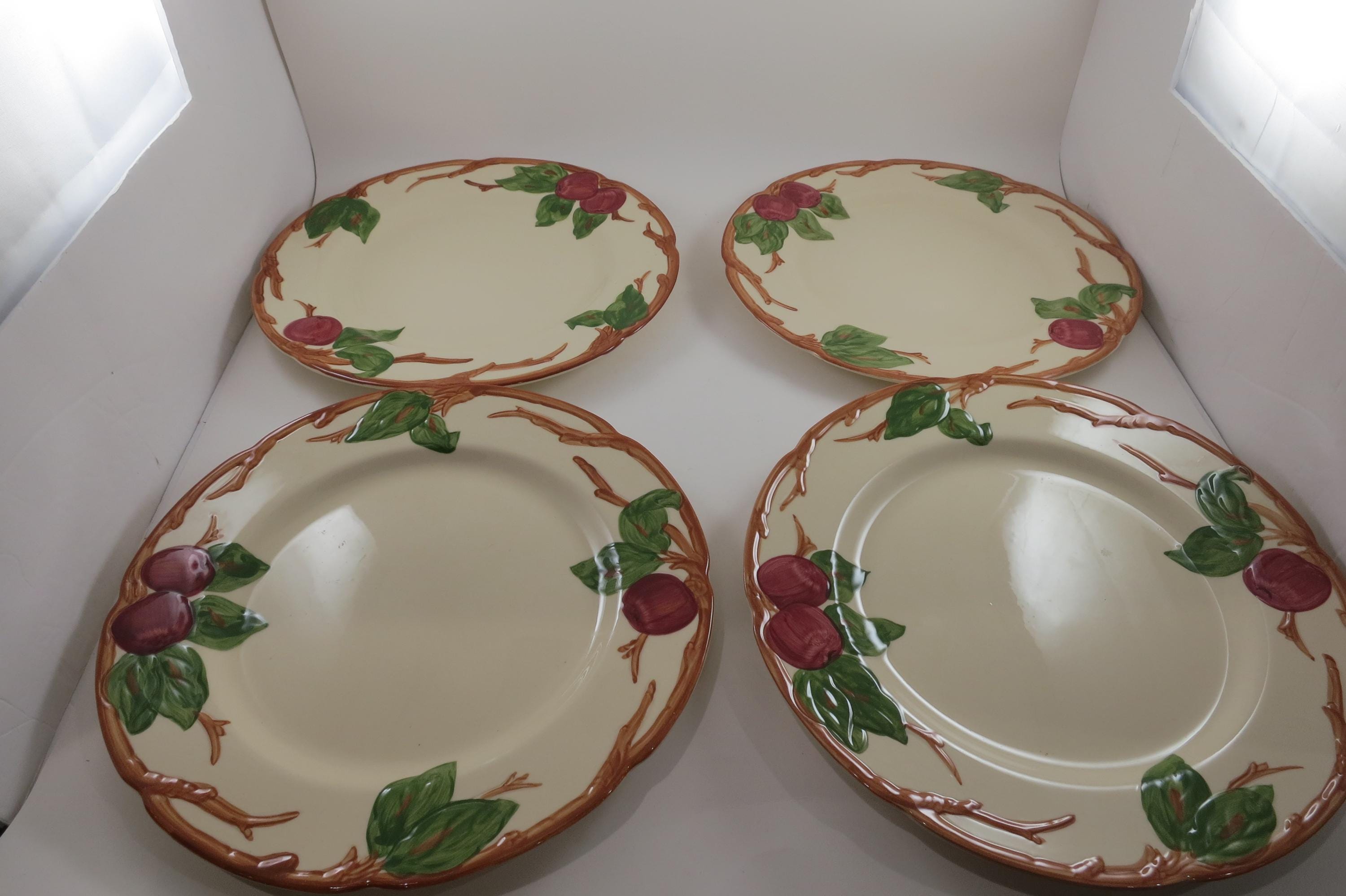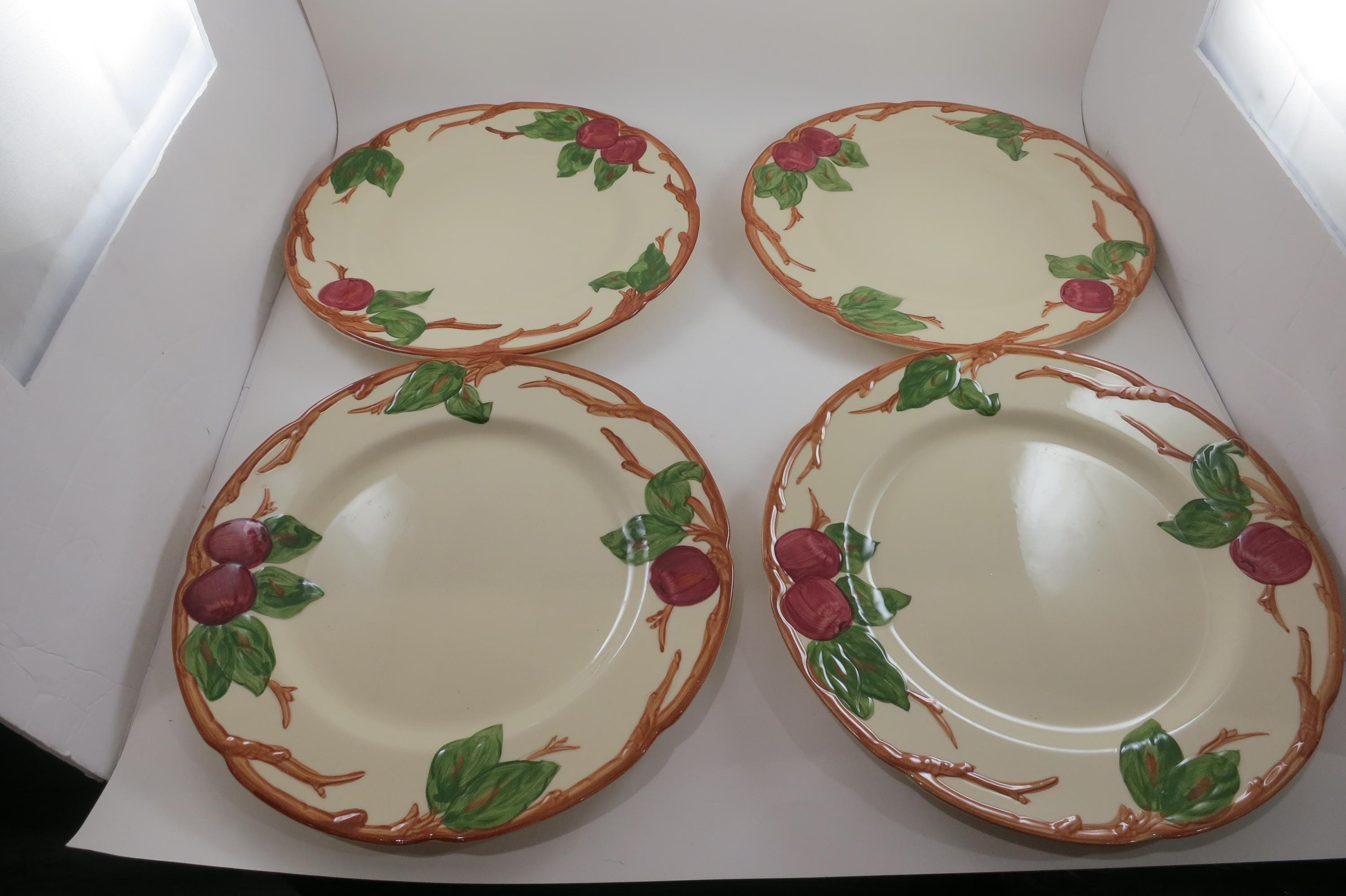 Beautiful Vintage Franciscan Earthenware Apple Pattern Set of Four 10 1/2 Inch Dinner Plates Excellent Used Condition. Excellent condition with no chips, cracks or damages.