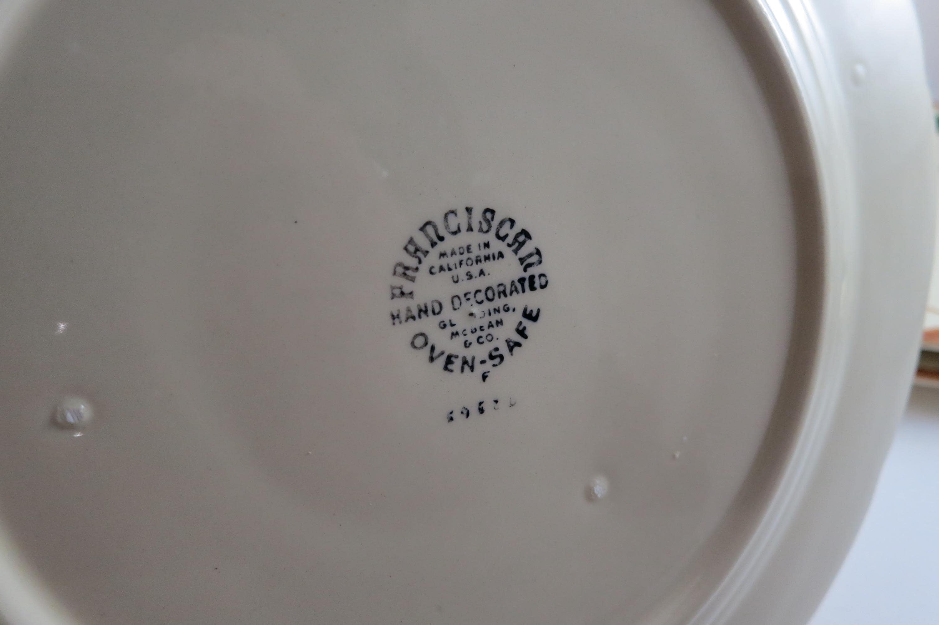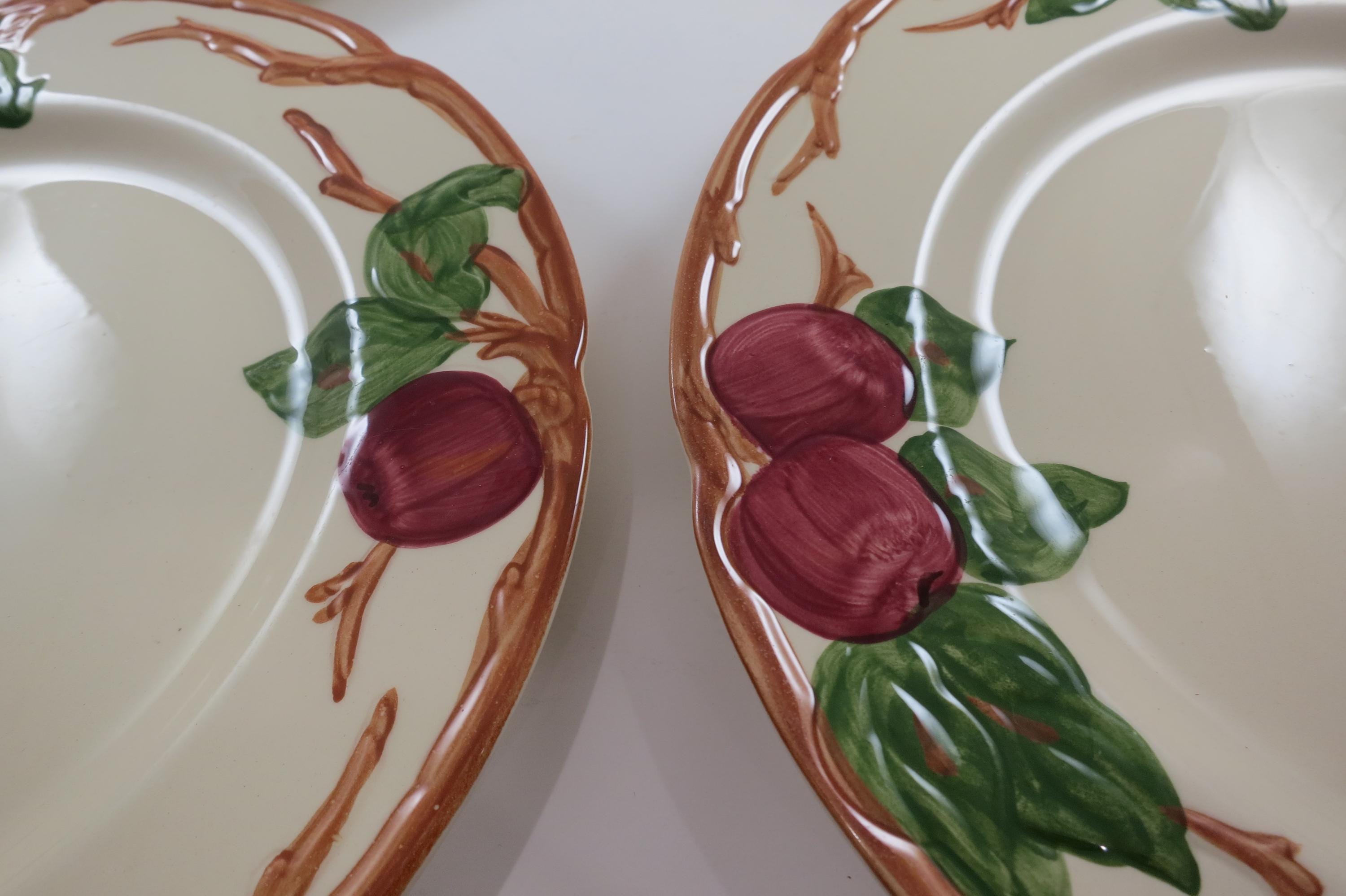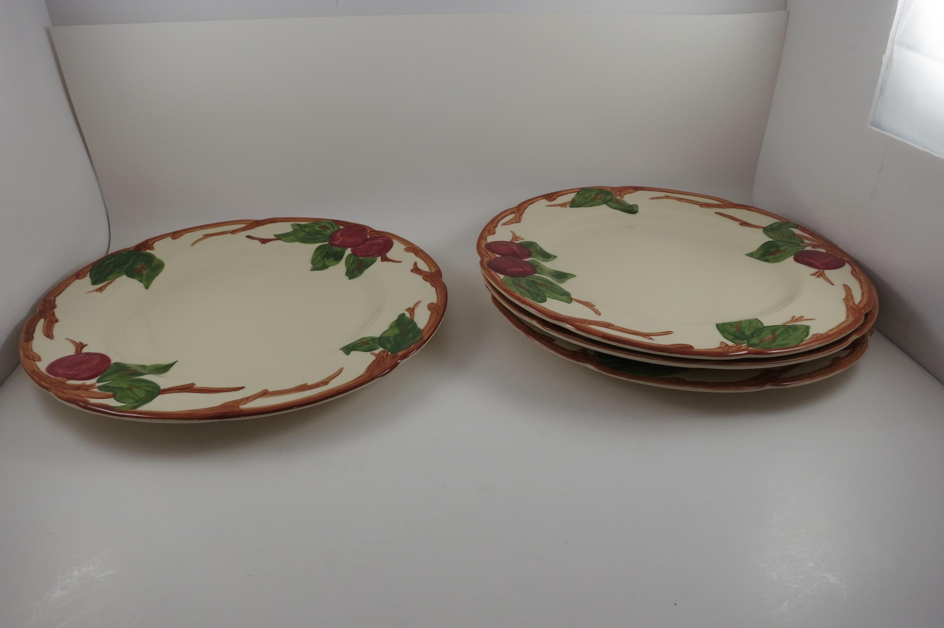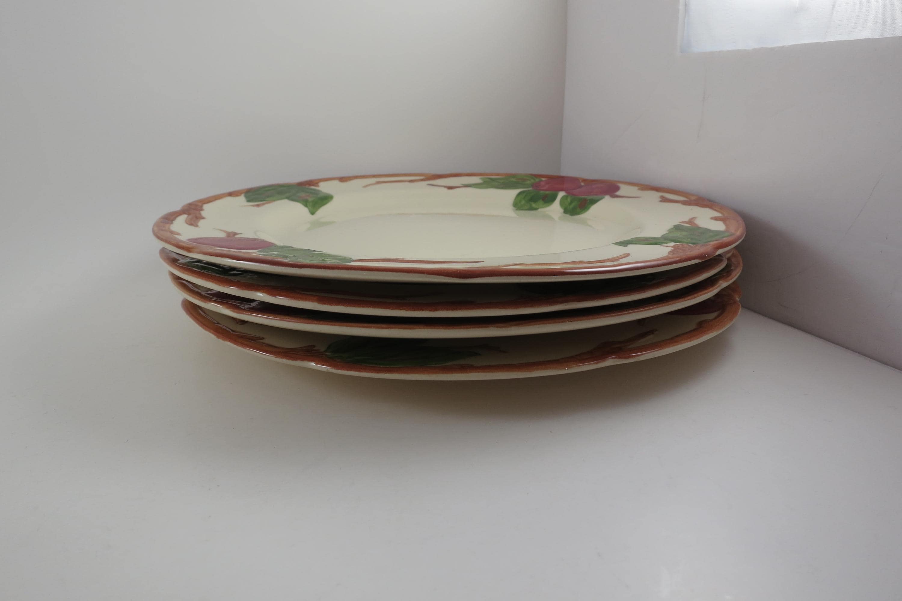 Beautiful Vintage Franciscan Earthenware Apple Pattern Set of Four 10 1/2 Inch Dinner Plates Excellent Used Condition. Excellent condition with no chips, cracks or damages.