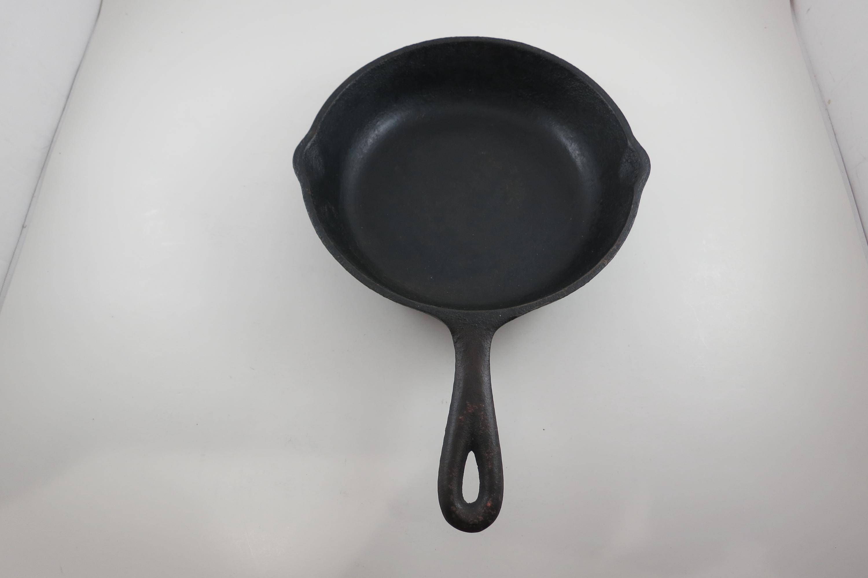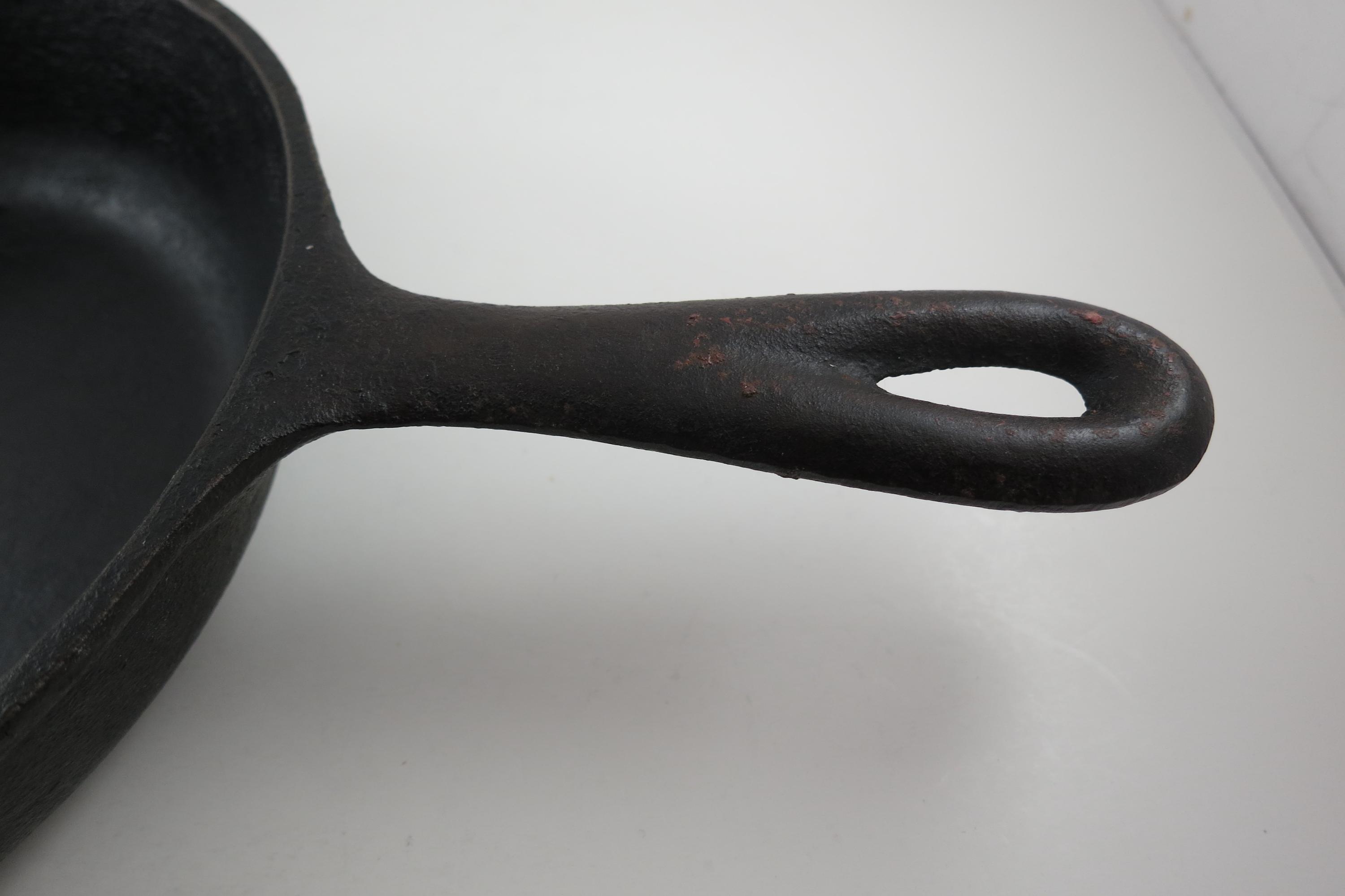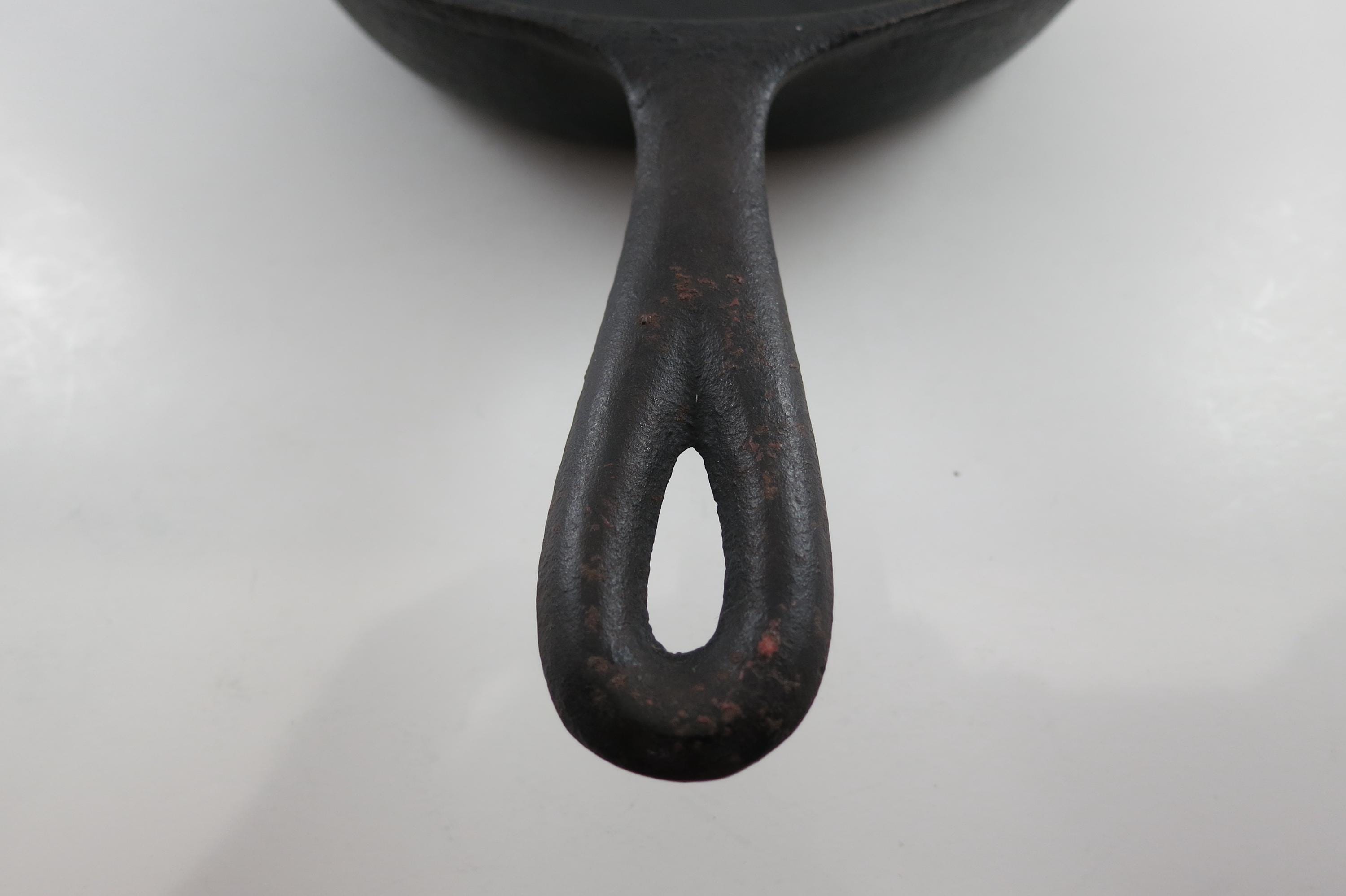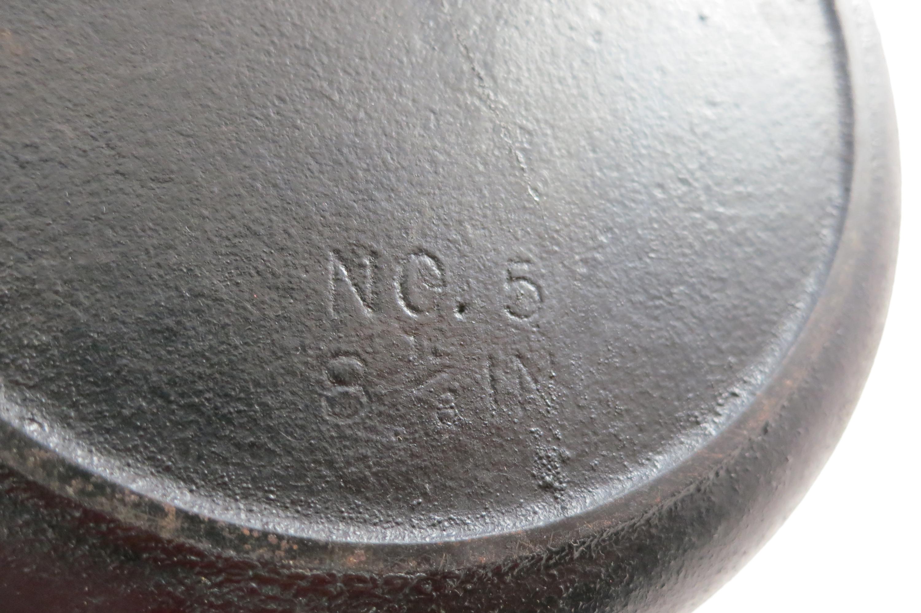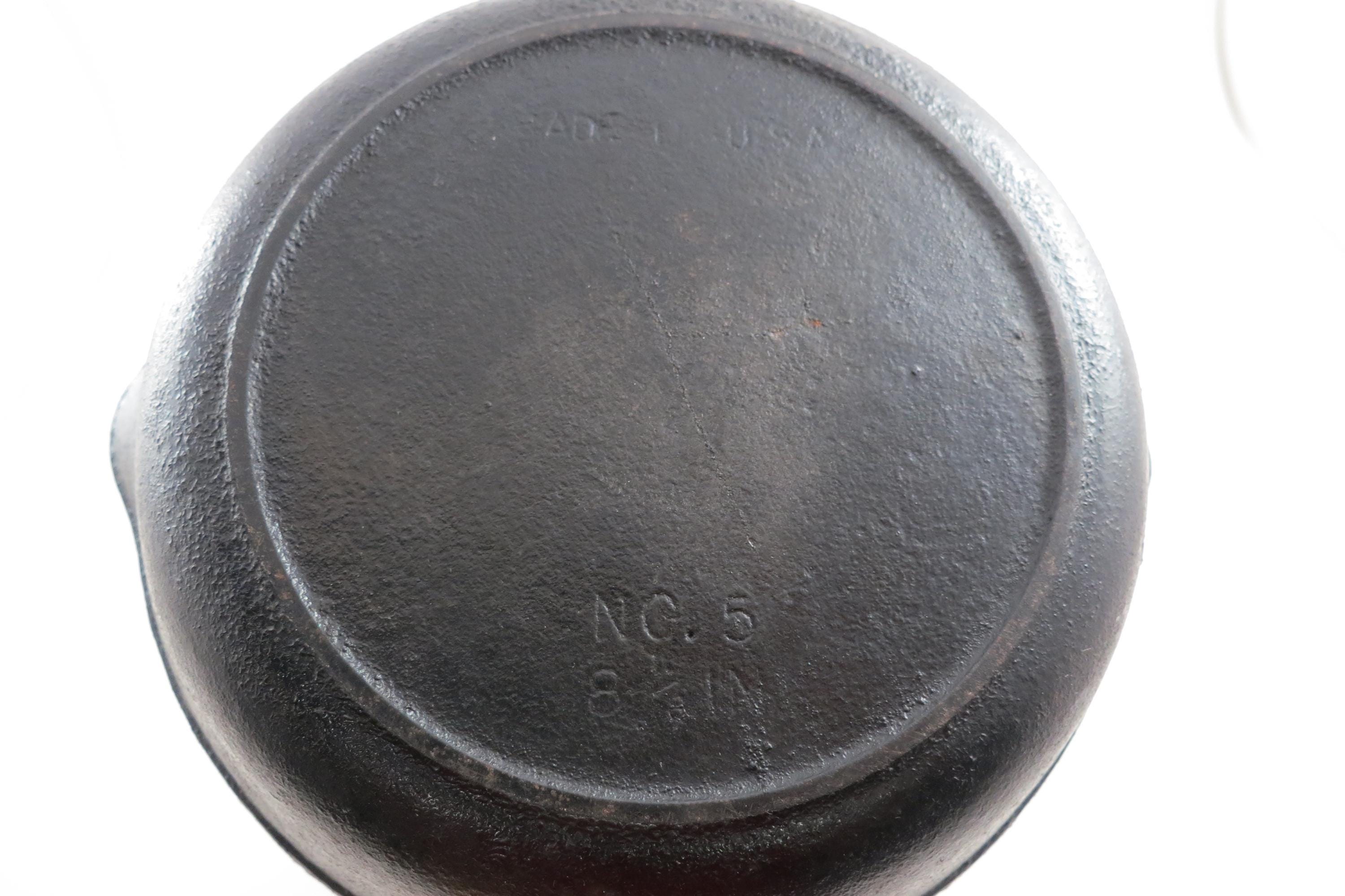 Vintage #5 Cast Iron Skillet: 8 1/8 Inch No 5 Made in USA Excellent Condition. 8 1/8 Inch Diameter, no damages, has been well cared for. Marked USA on the bottom.