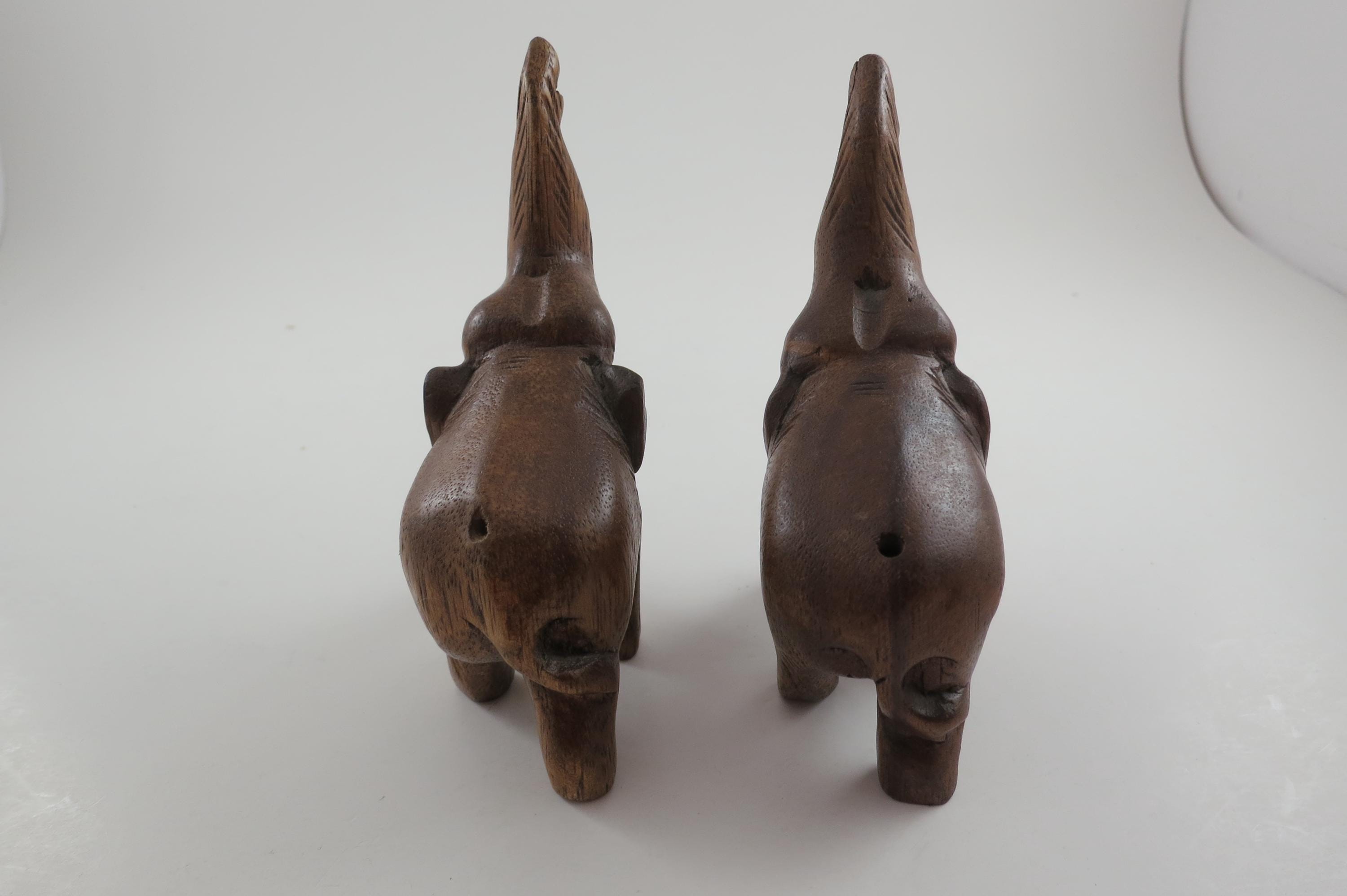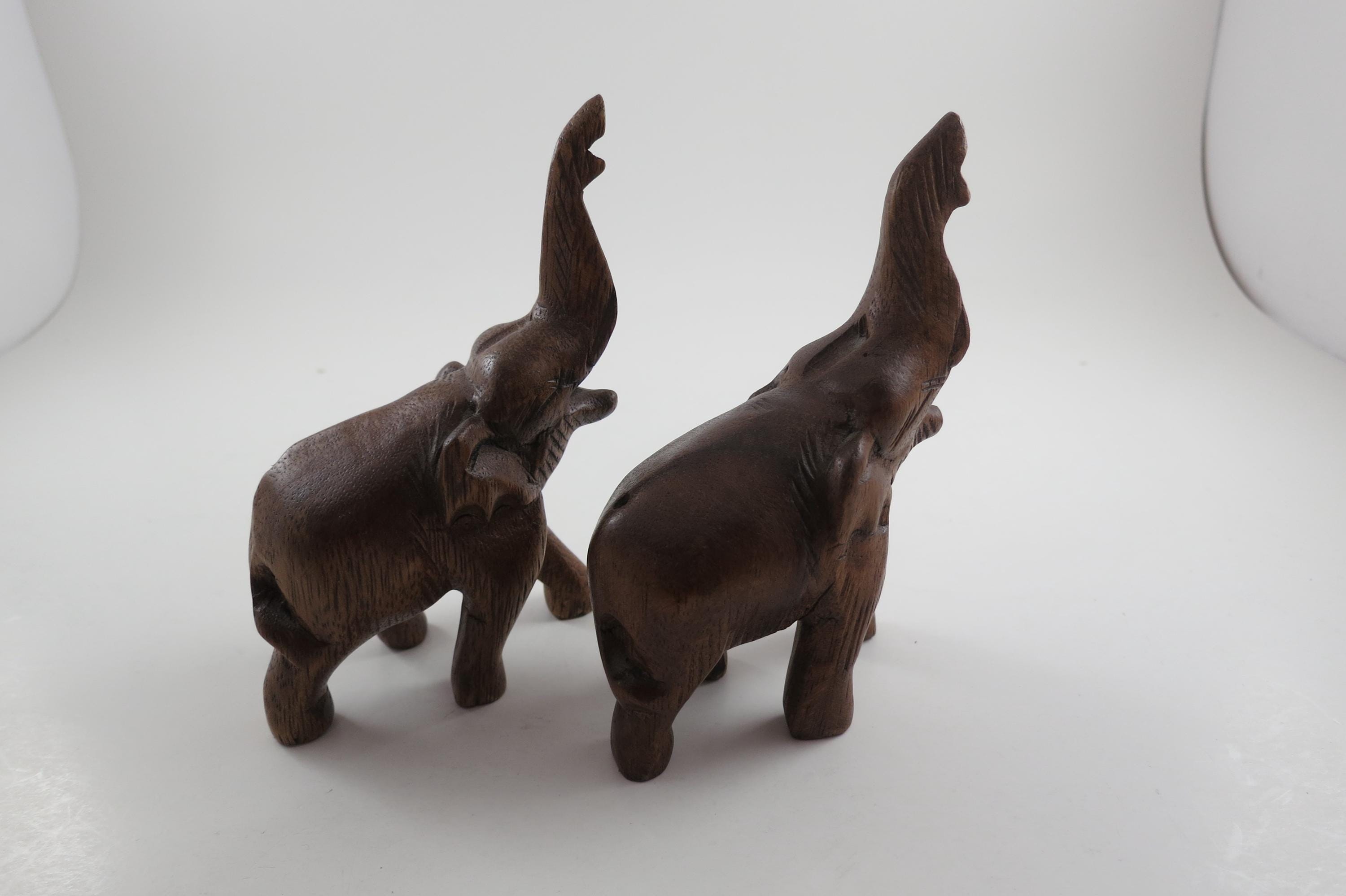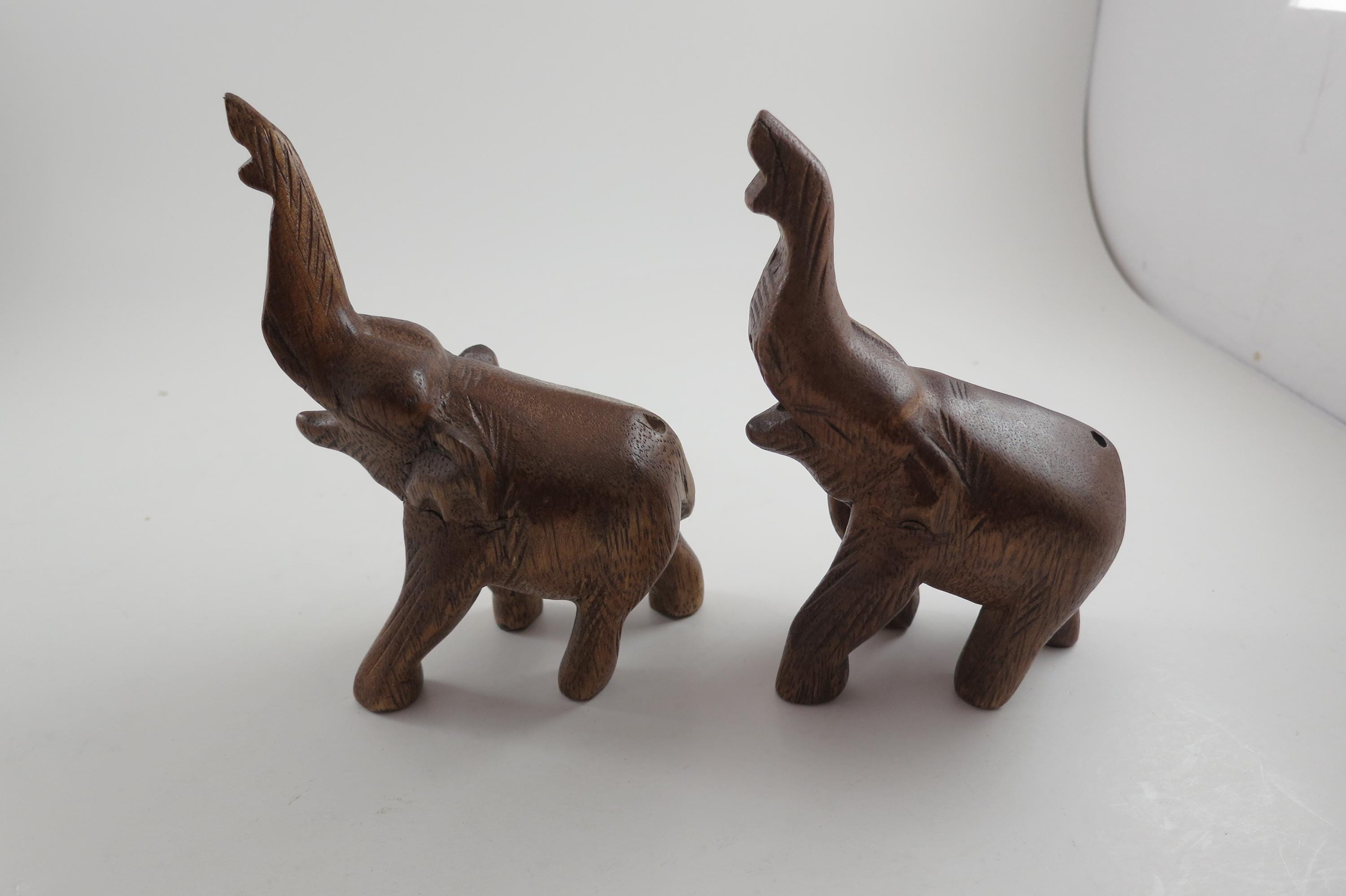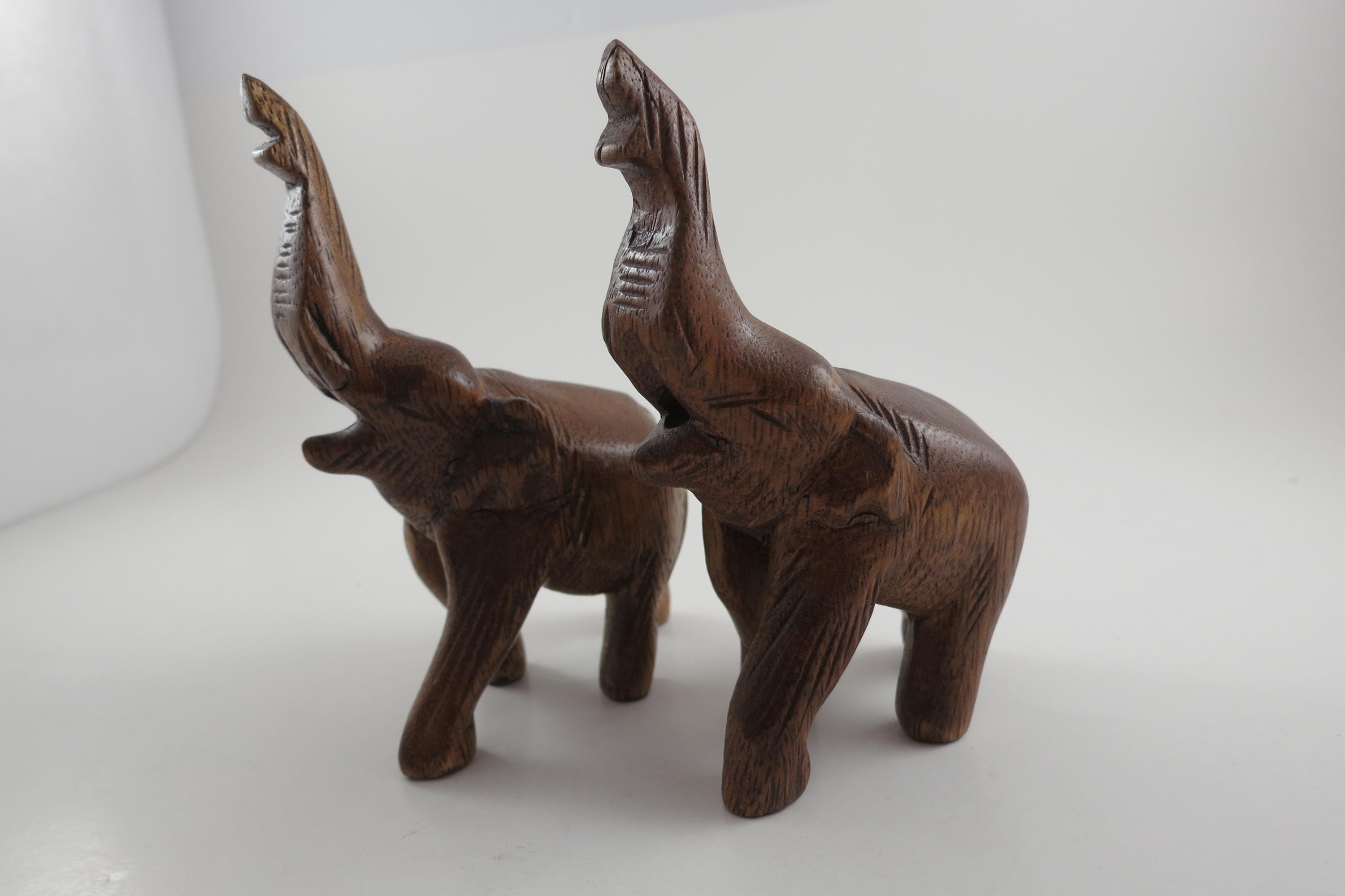 Pair of Vintage Carved Wooden Elephants Matching Pair 3x5. No damages, each measures 3 1/2 inches long and 5 inches tall.