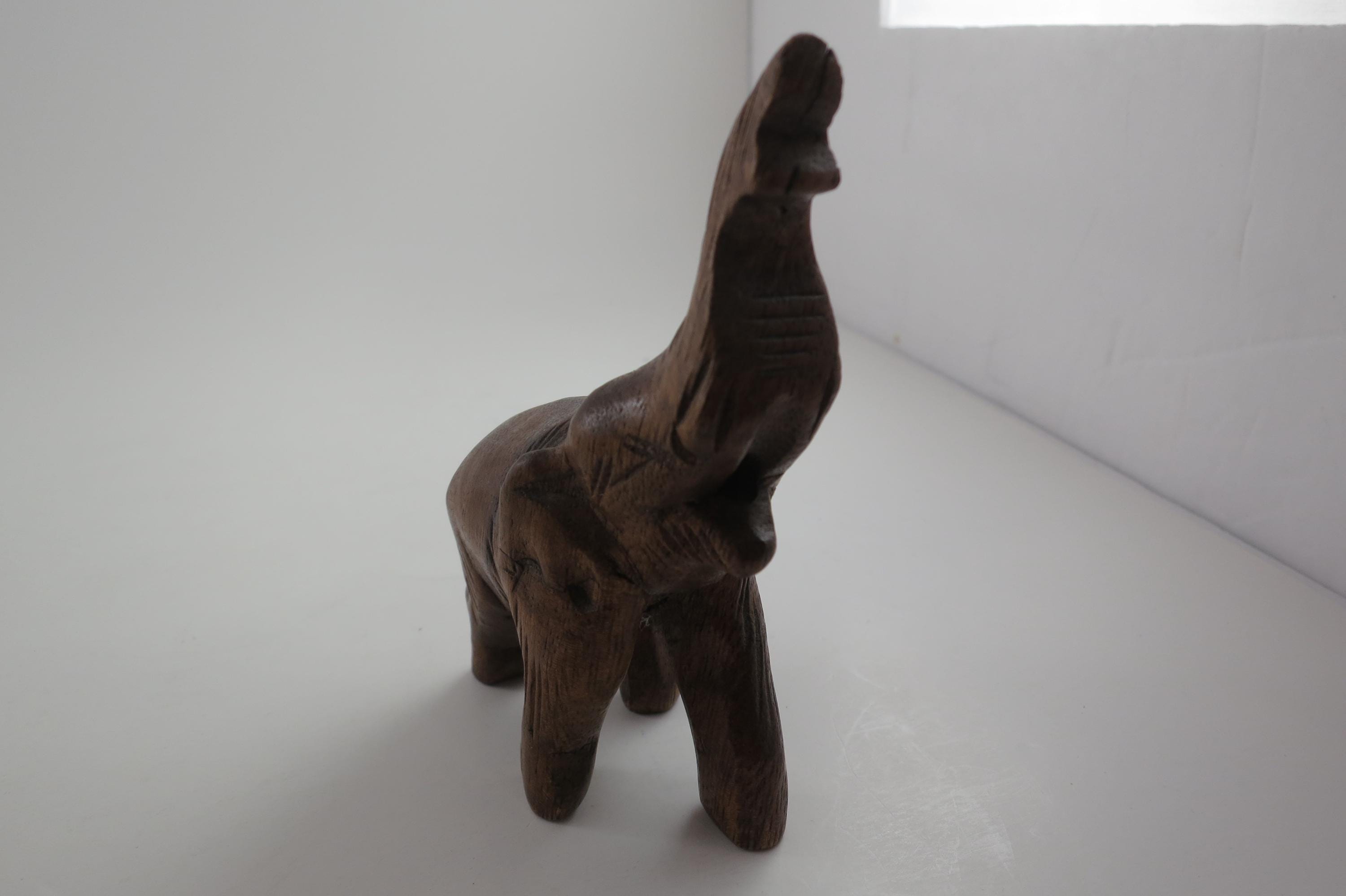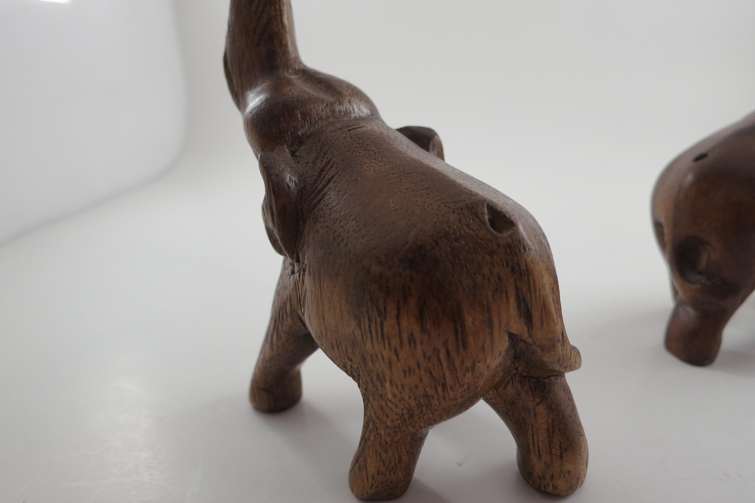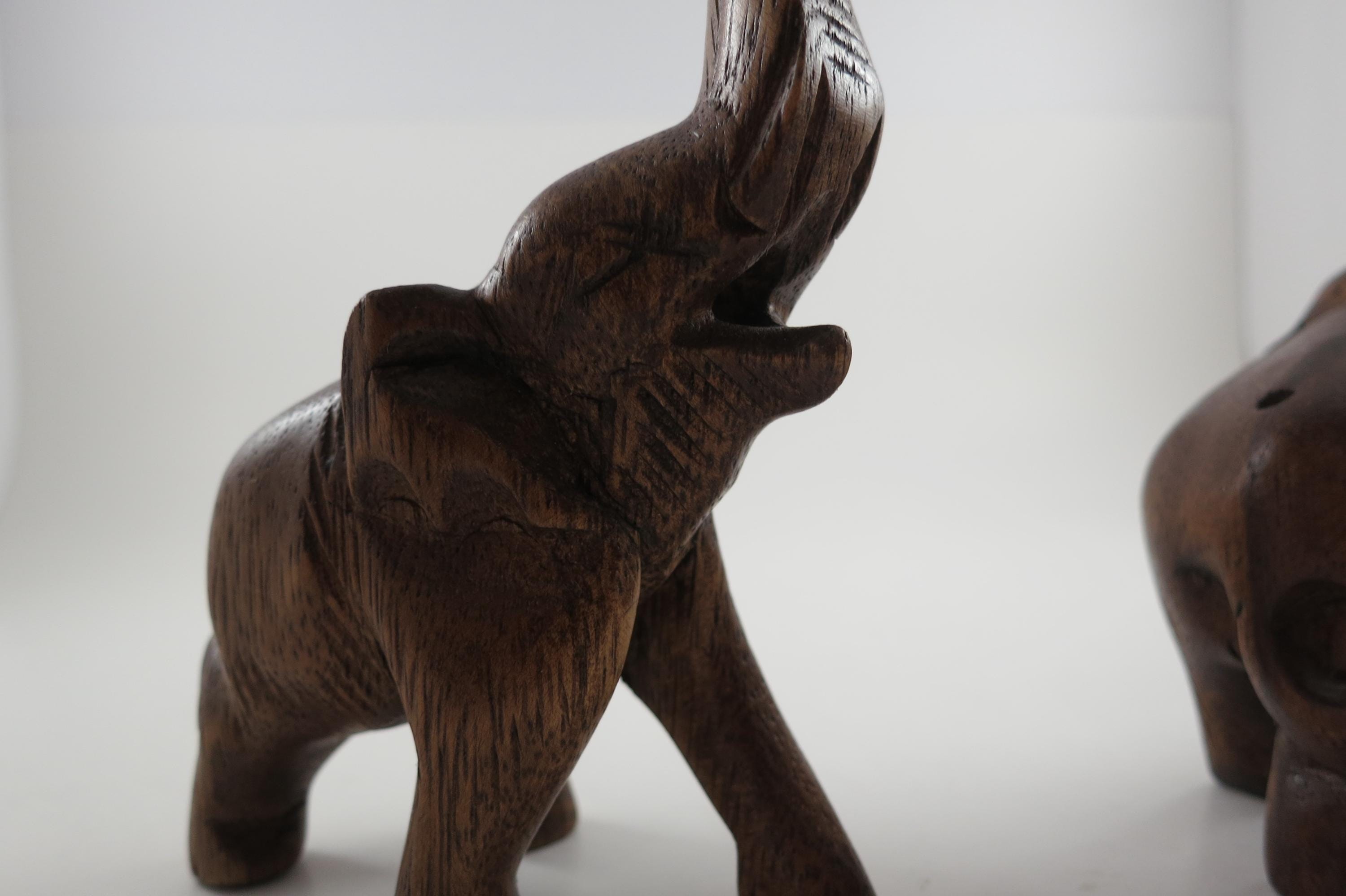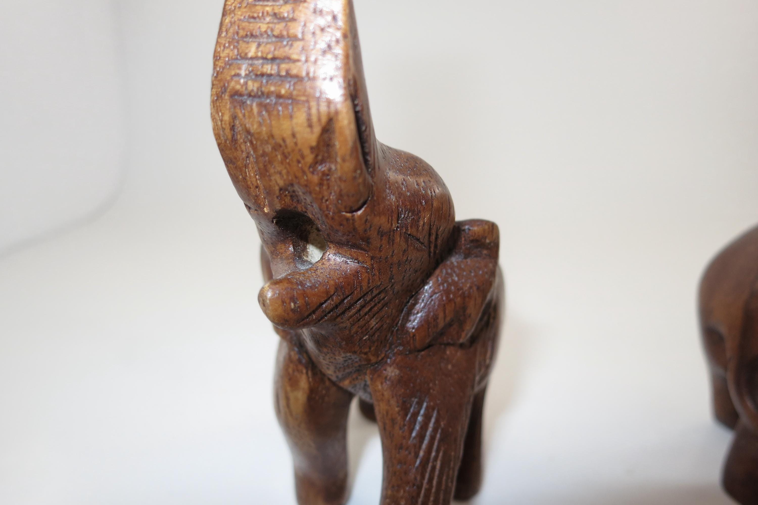 Pair of Vintage Carved Wooden Elephants Matching Pair 3x5. No damages, each measures 3 1/2 inches long and 5 inches tall.