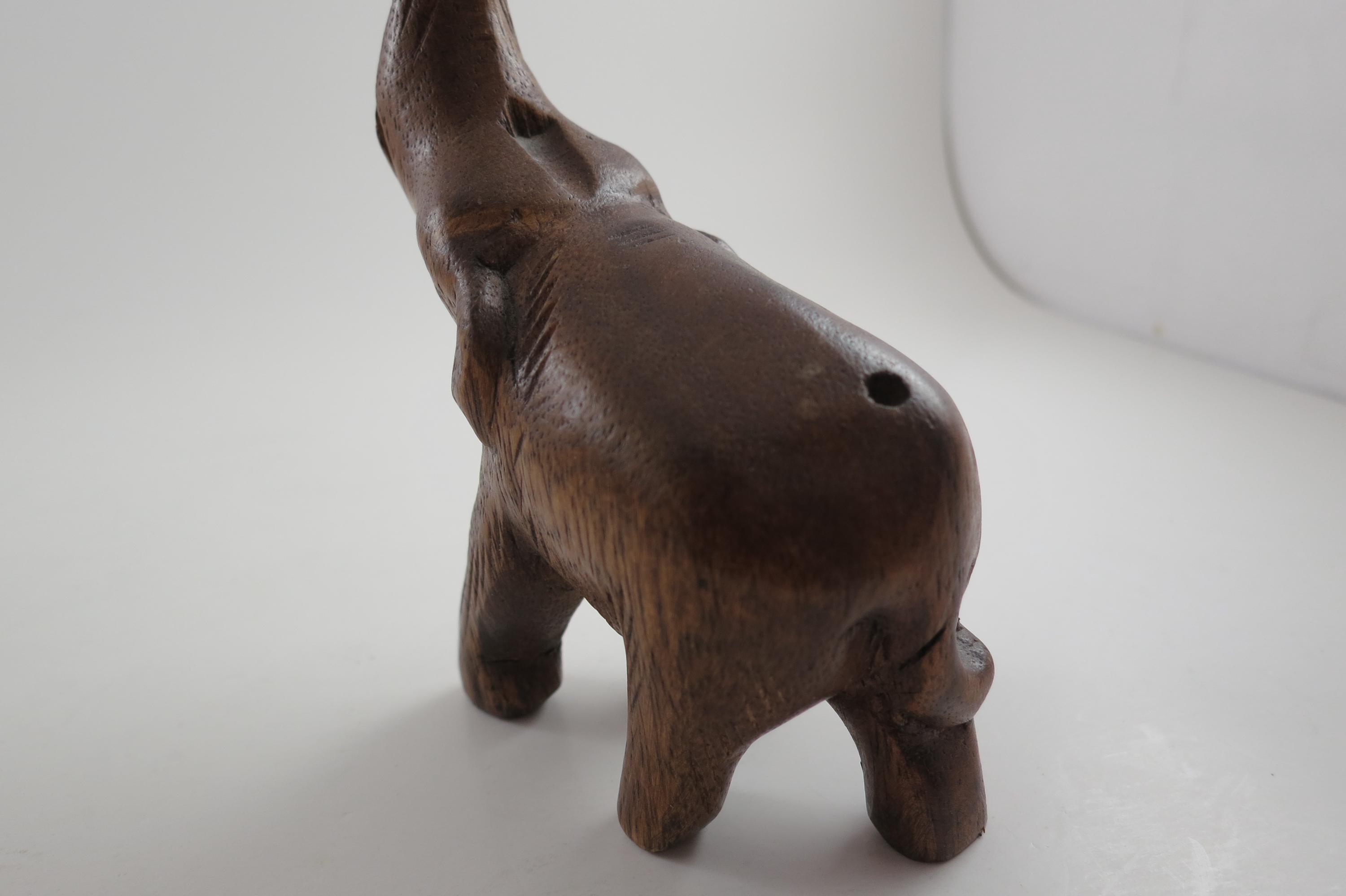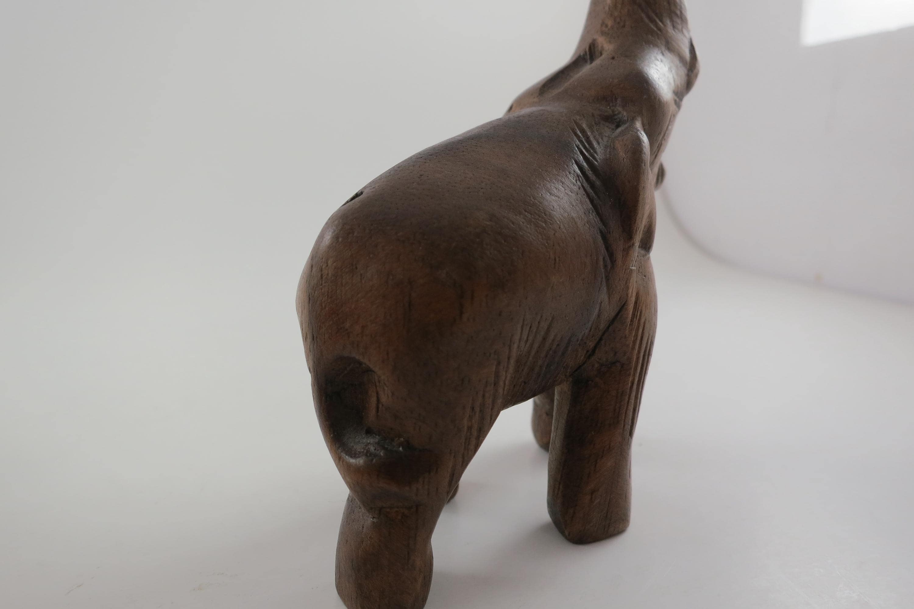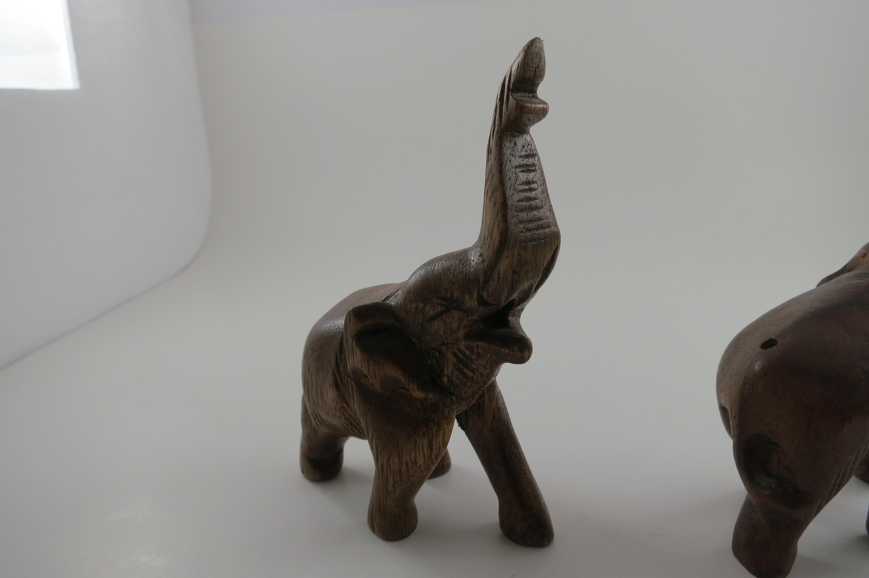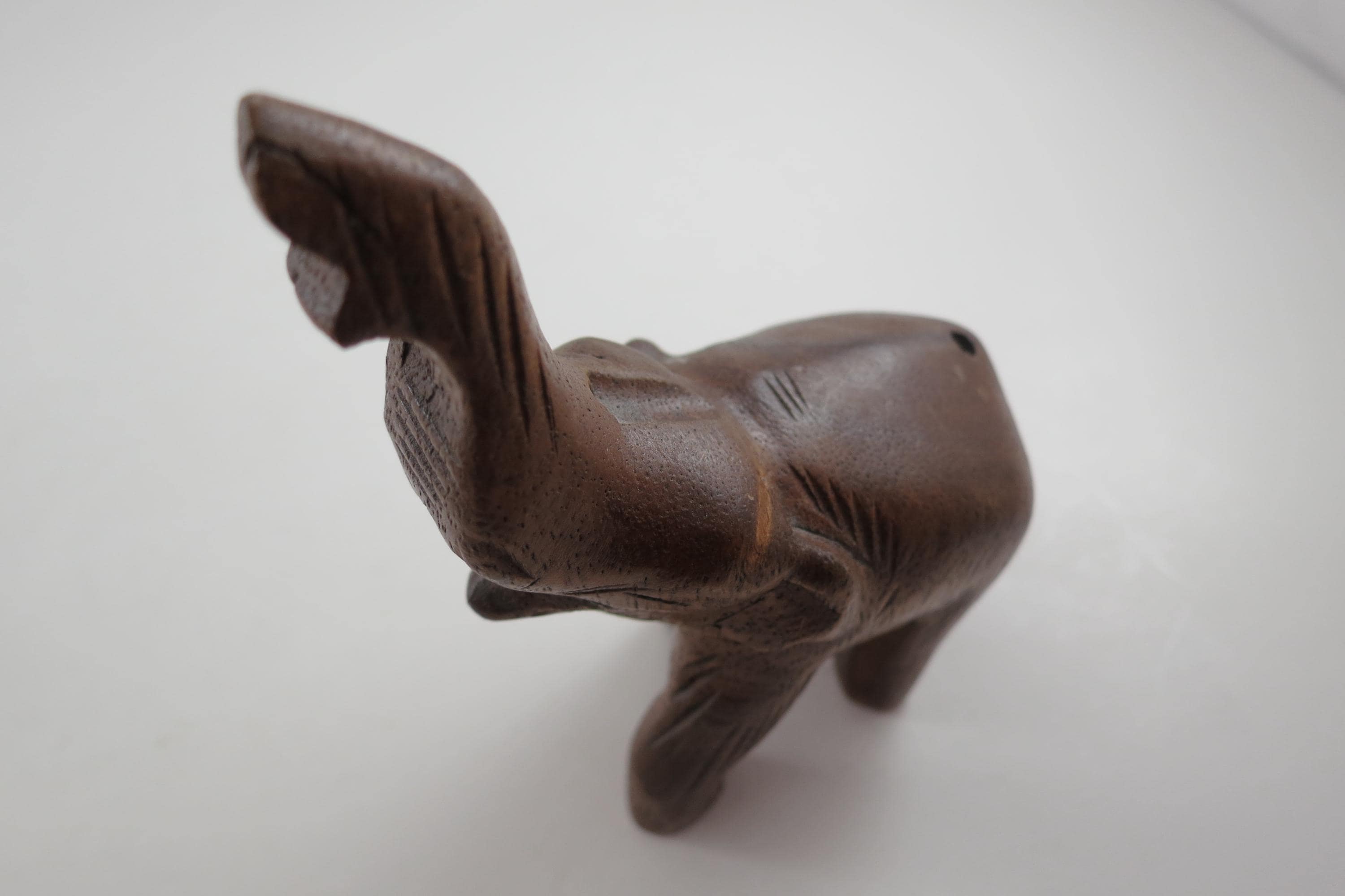 Pair of Vintage Carved Wooden Elephants Matching Pair 3x5. No damages, each measures 3 1/2 inches long and 5 inches tall.