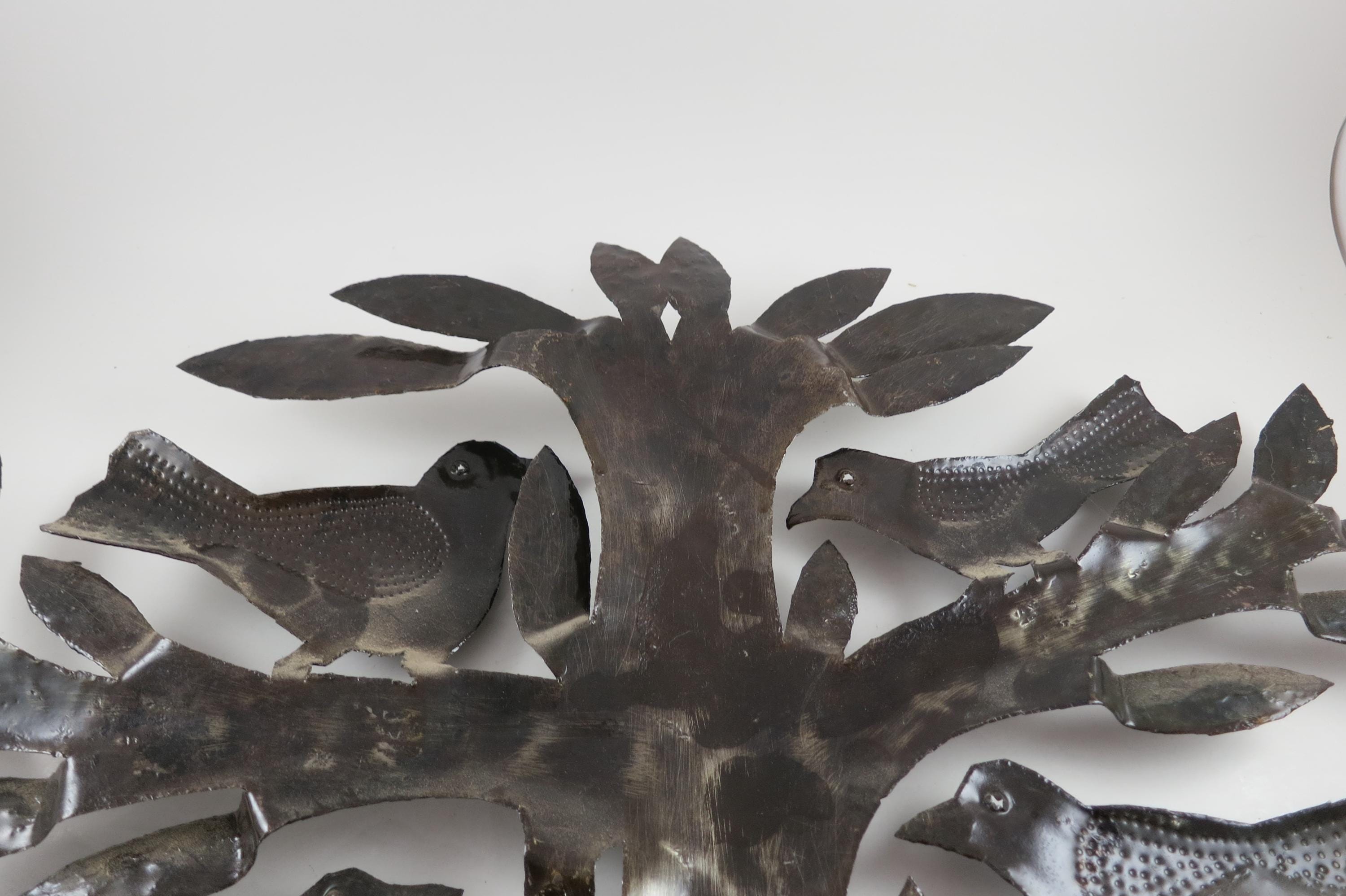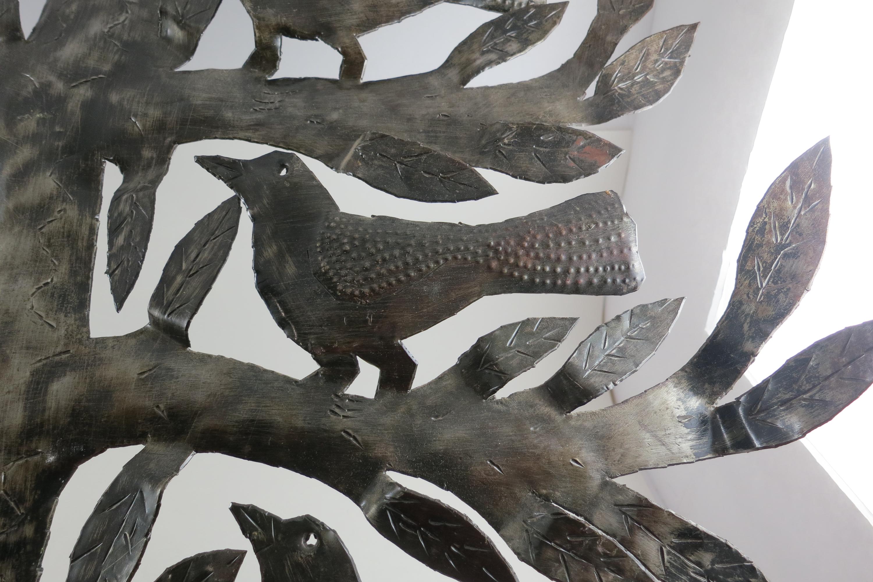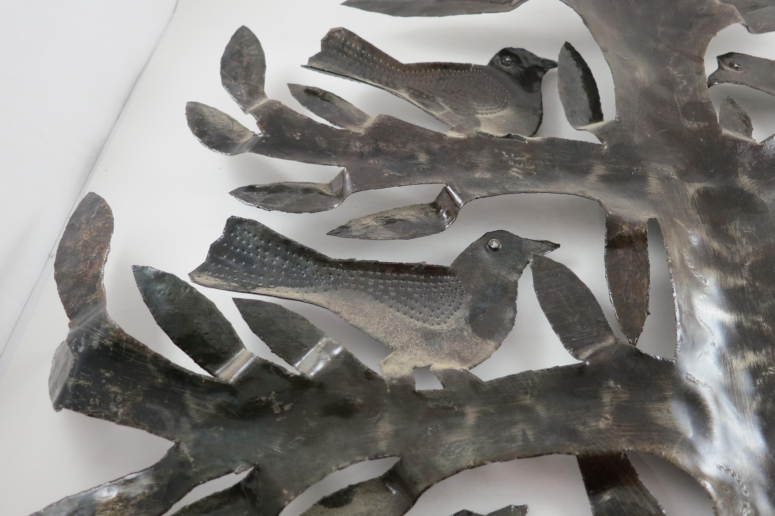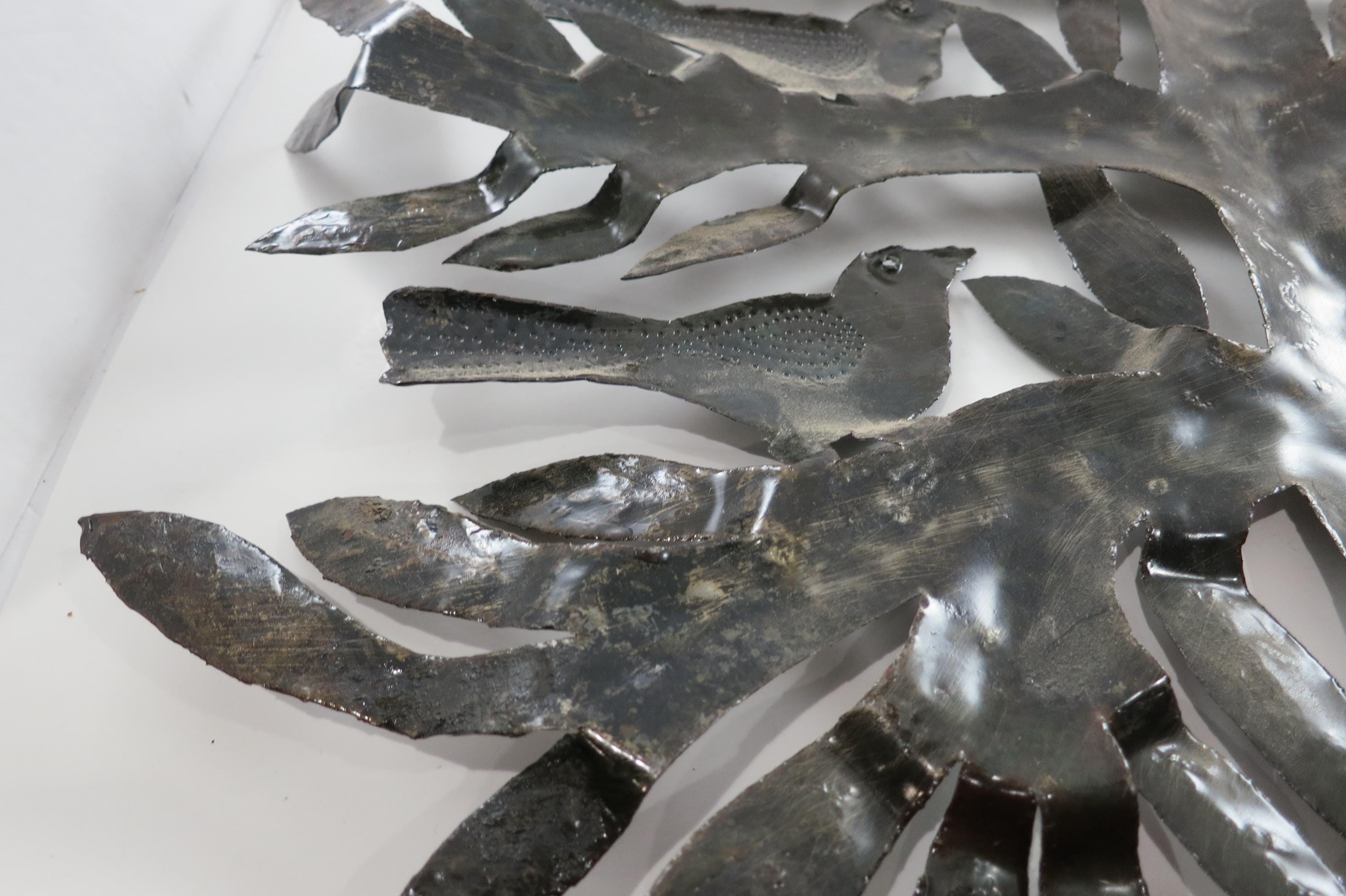 Vintage MCM Folk Art Wall Decor Tree of Birds Large 22x21 Signed Hand Crafted 1980's. Beautiful metal piece that looks stunning on a wall. 22 inches tall and 21 inches wide. Signed by the artist on the back.