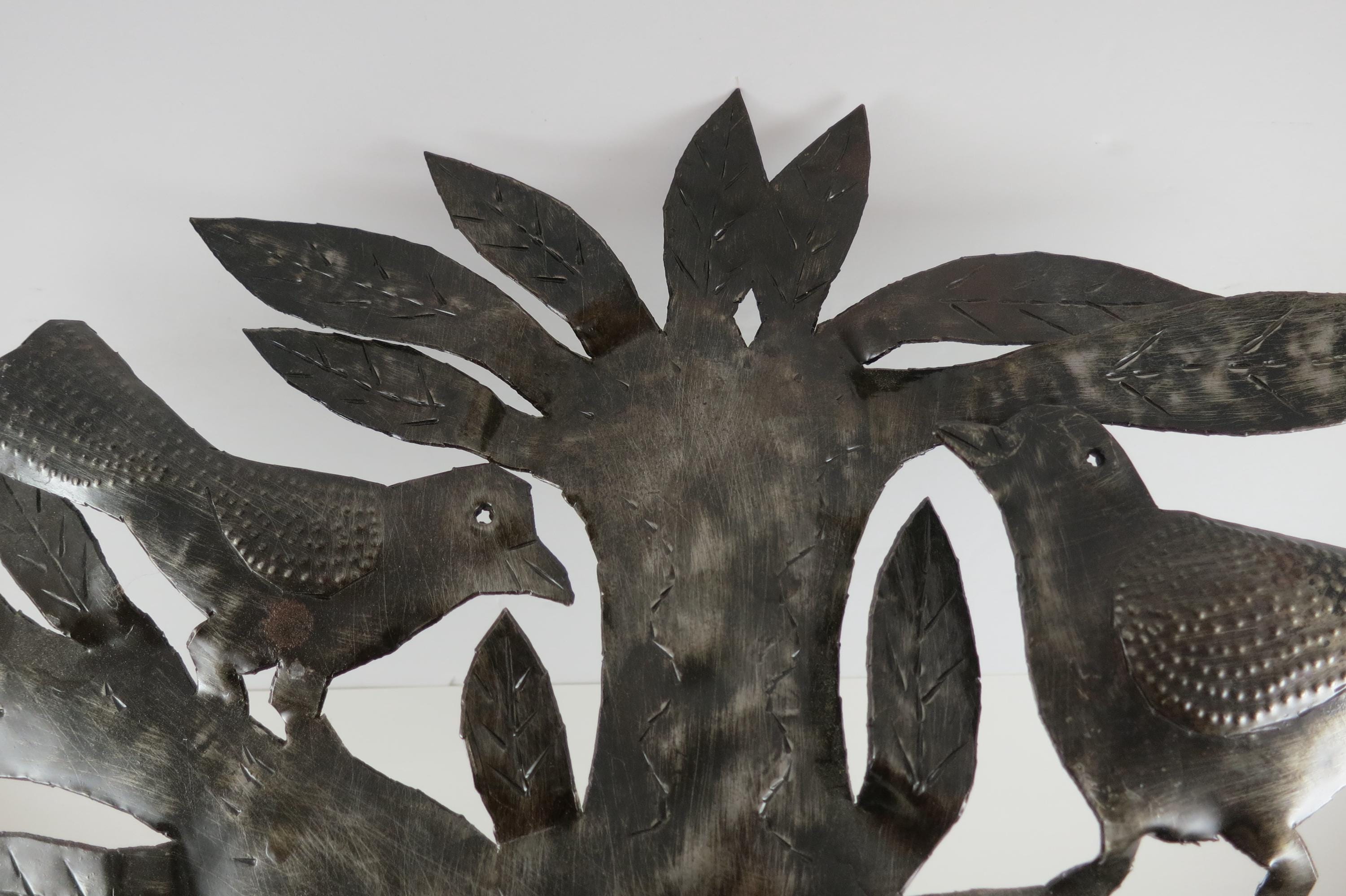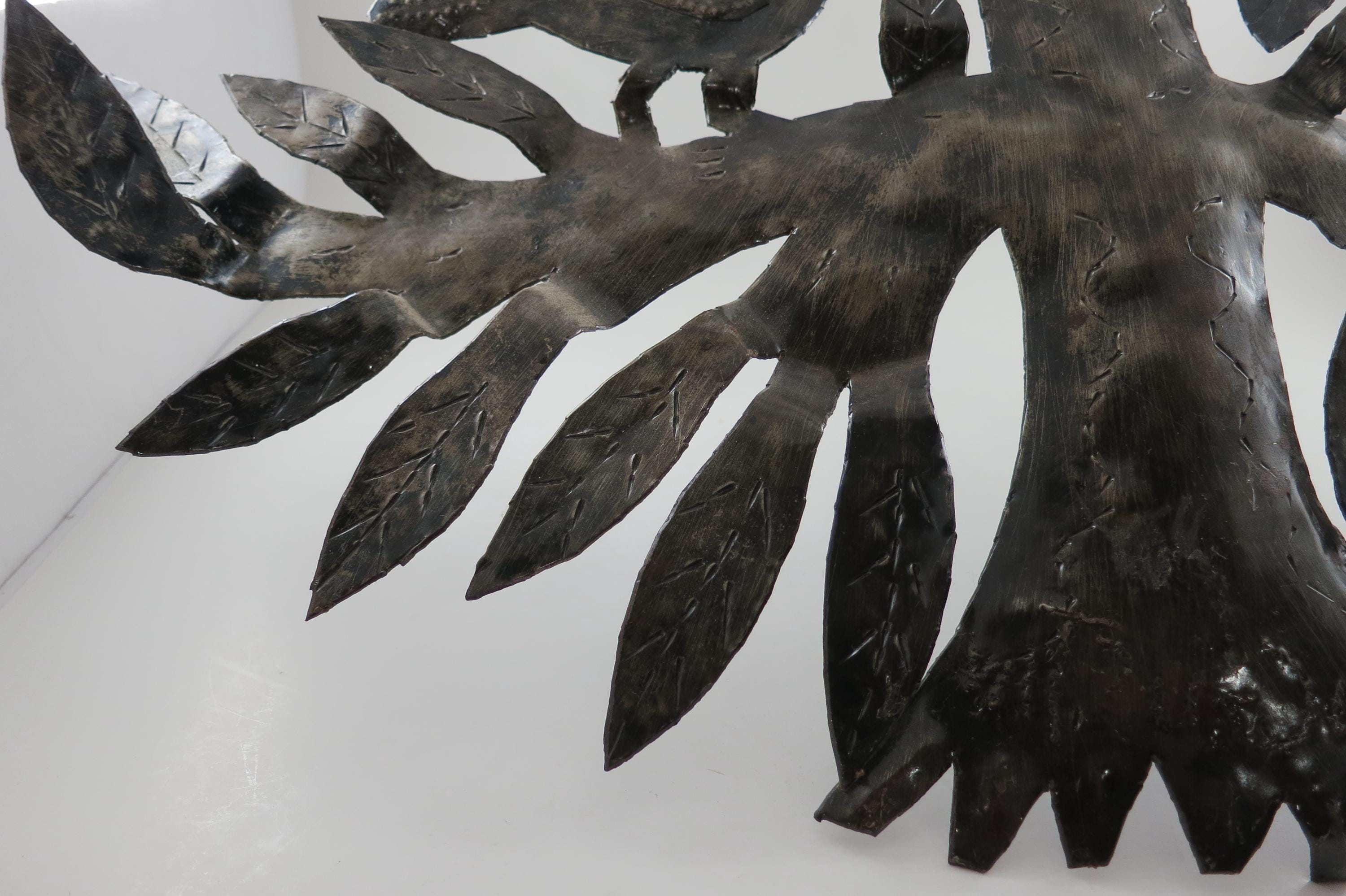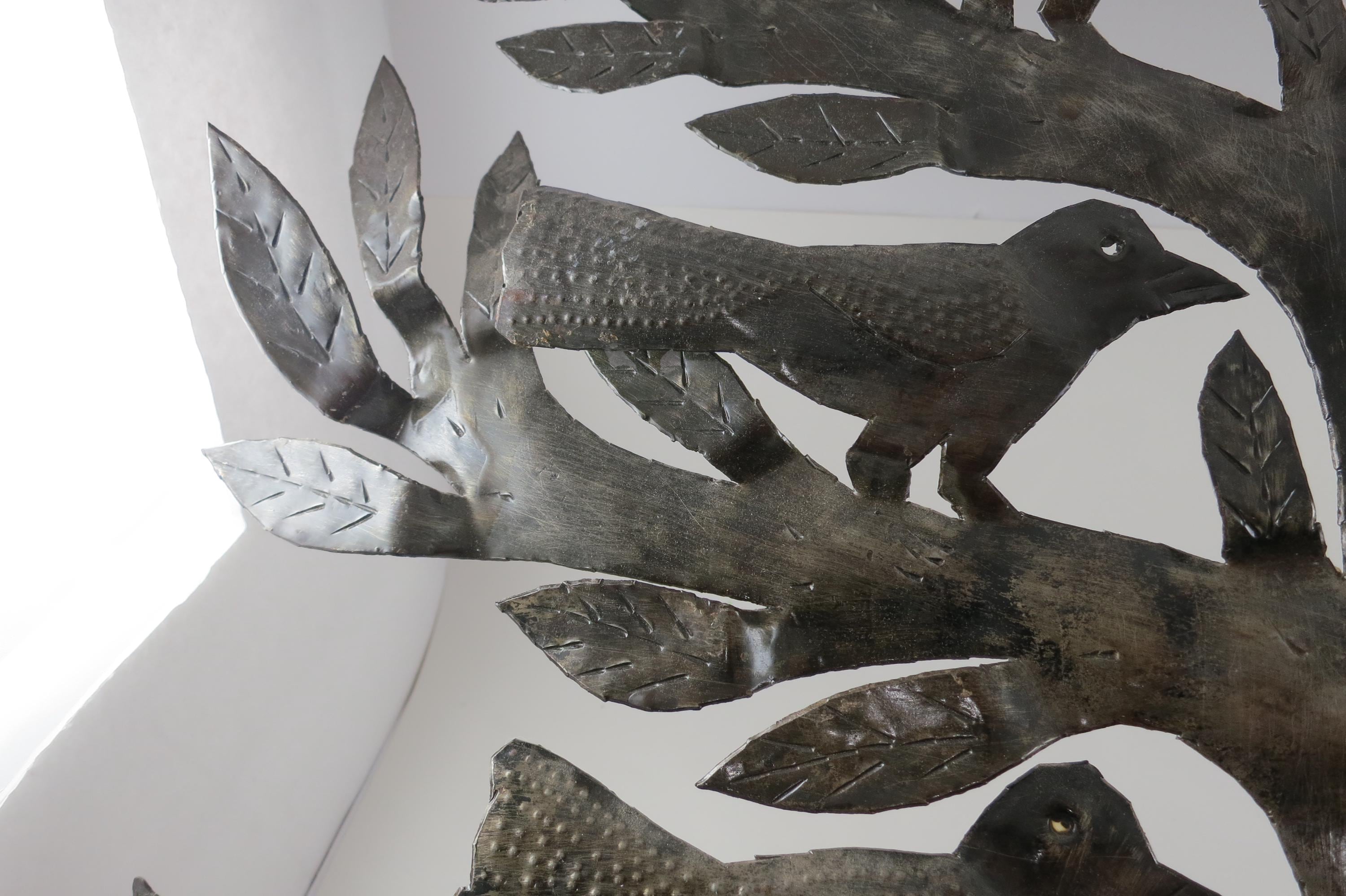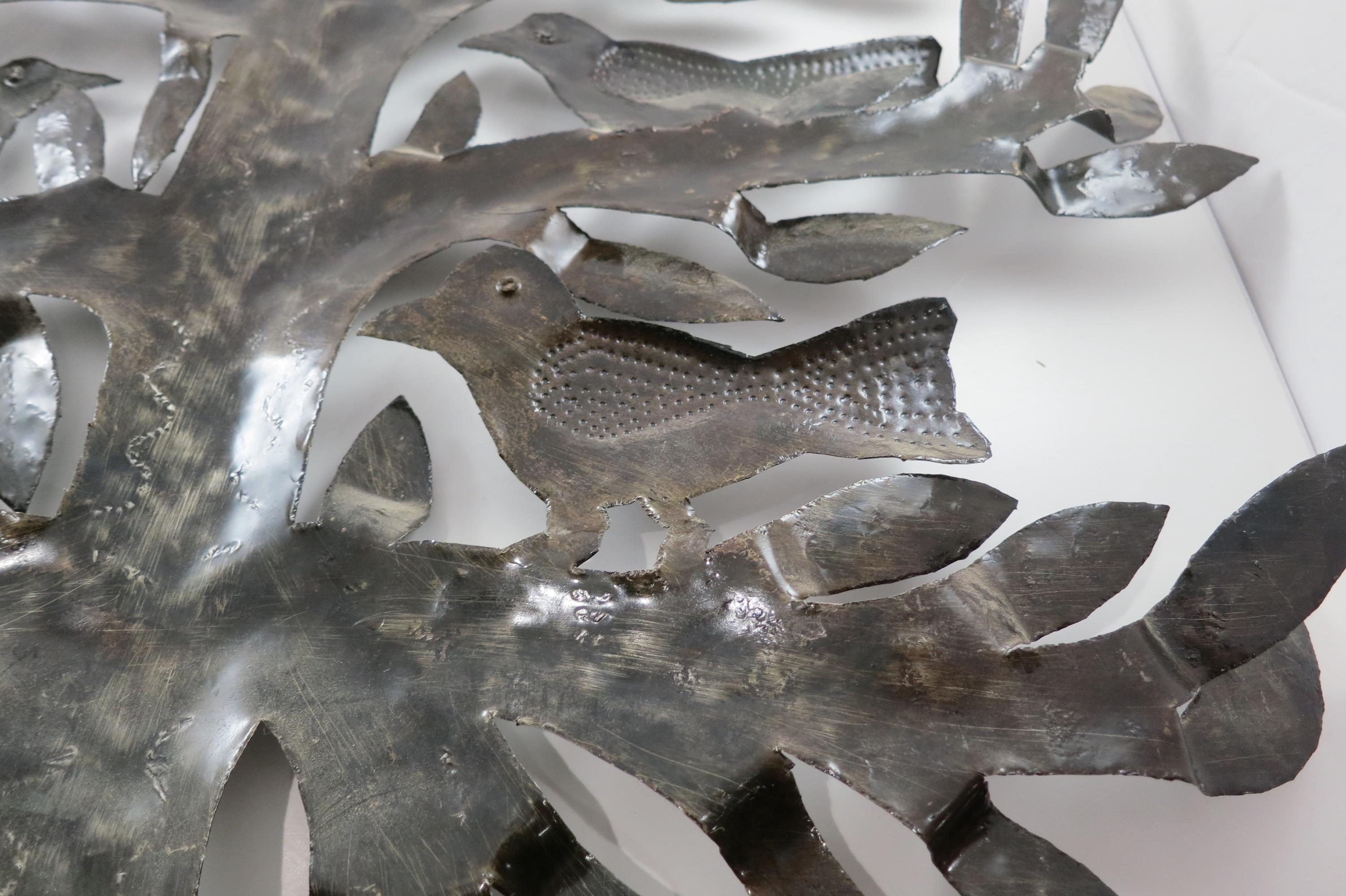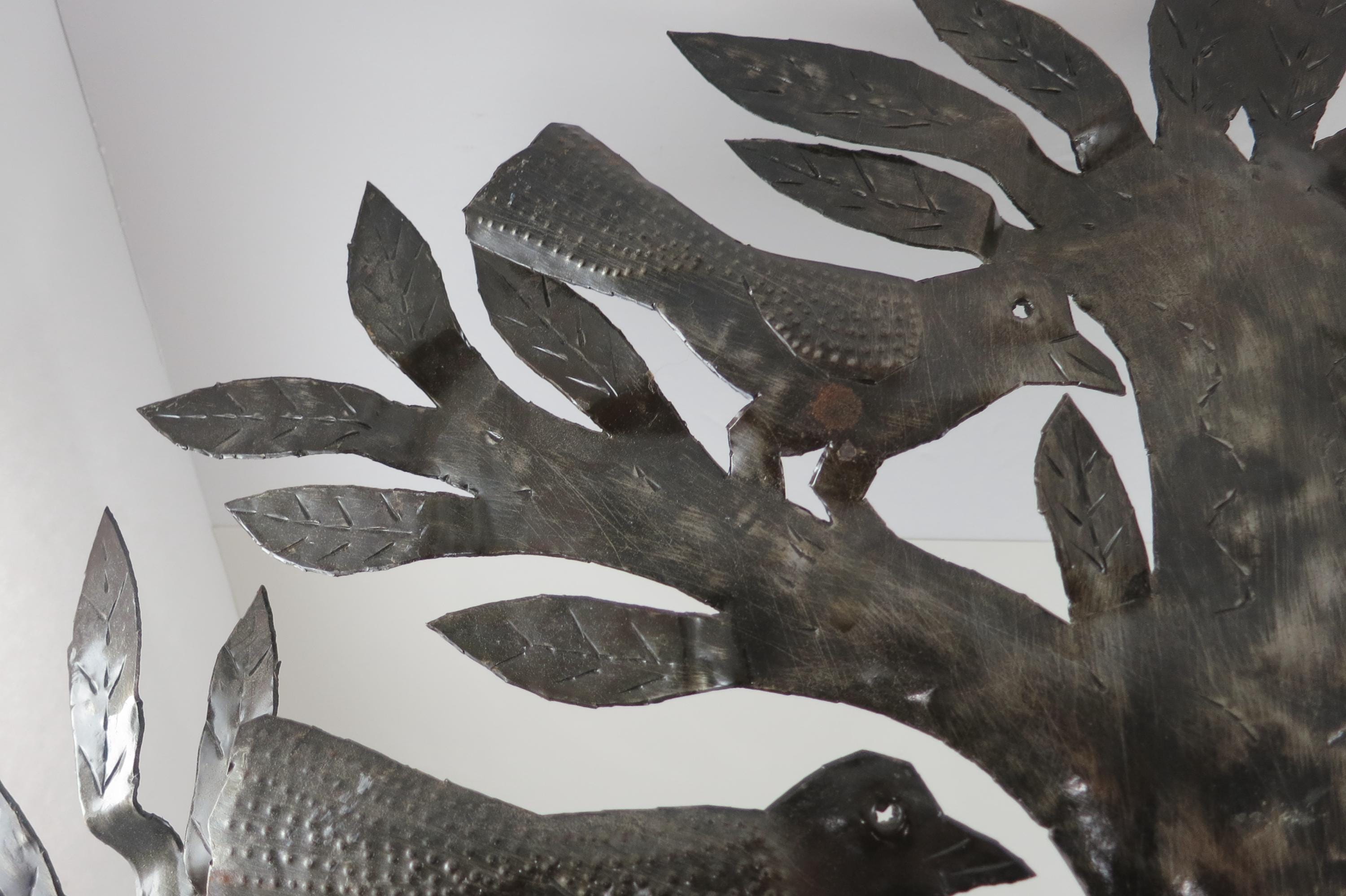 Vintage MCM Folk Art Wall Decor Tree of Birds Large 22x21 Signed Hand Crafted 1980's. Beautiful metal piece that looks stunning on a wall. 22 inches tall and 21 inches wide. Signed by the artist on the back.