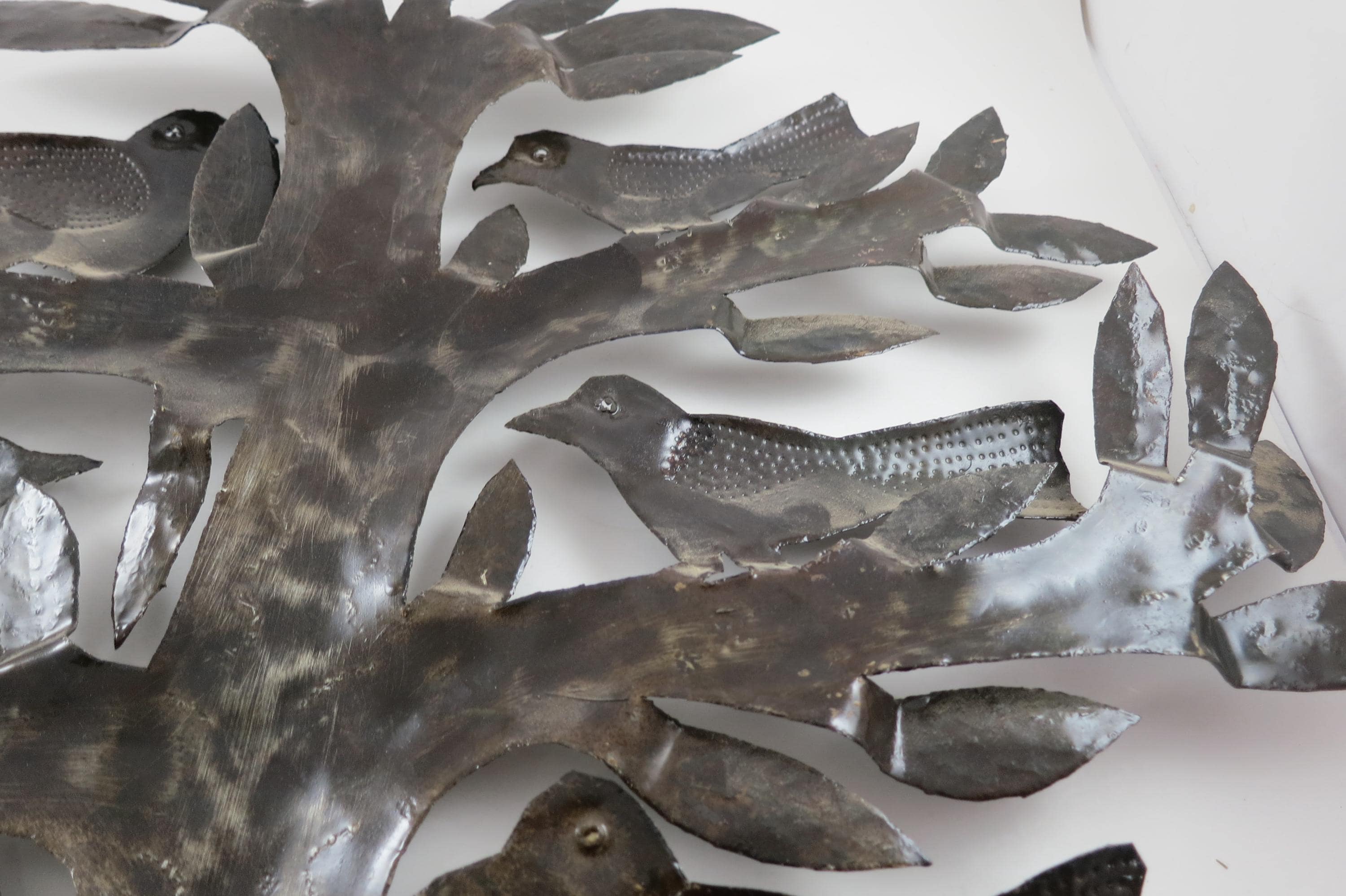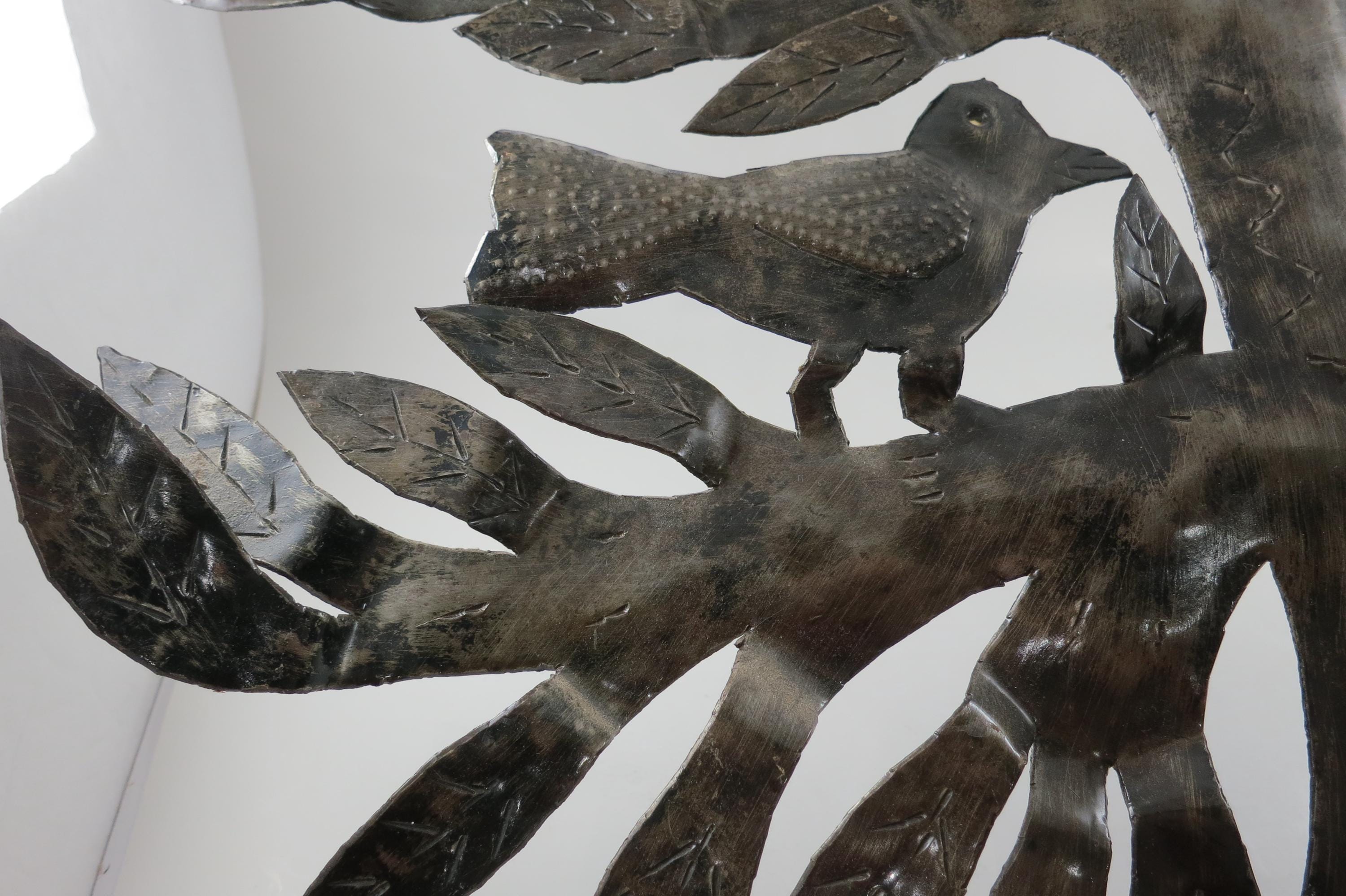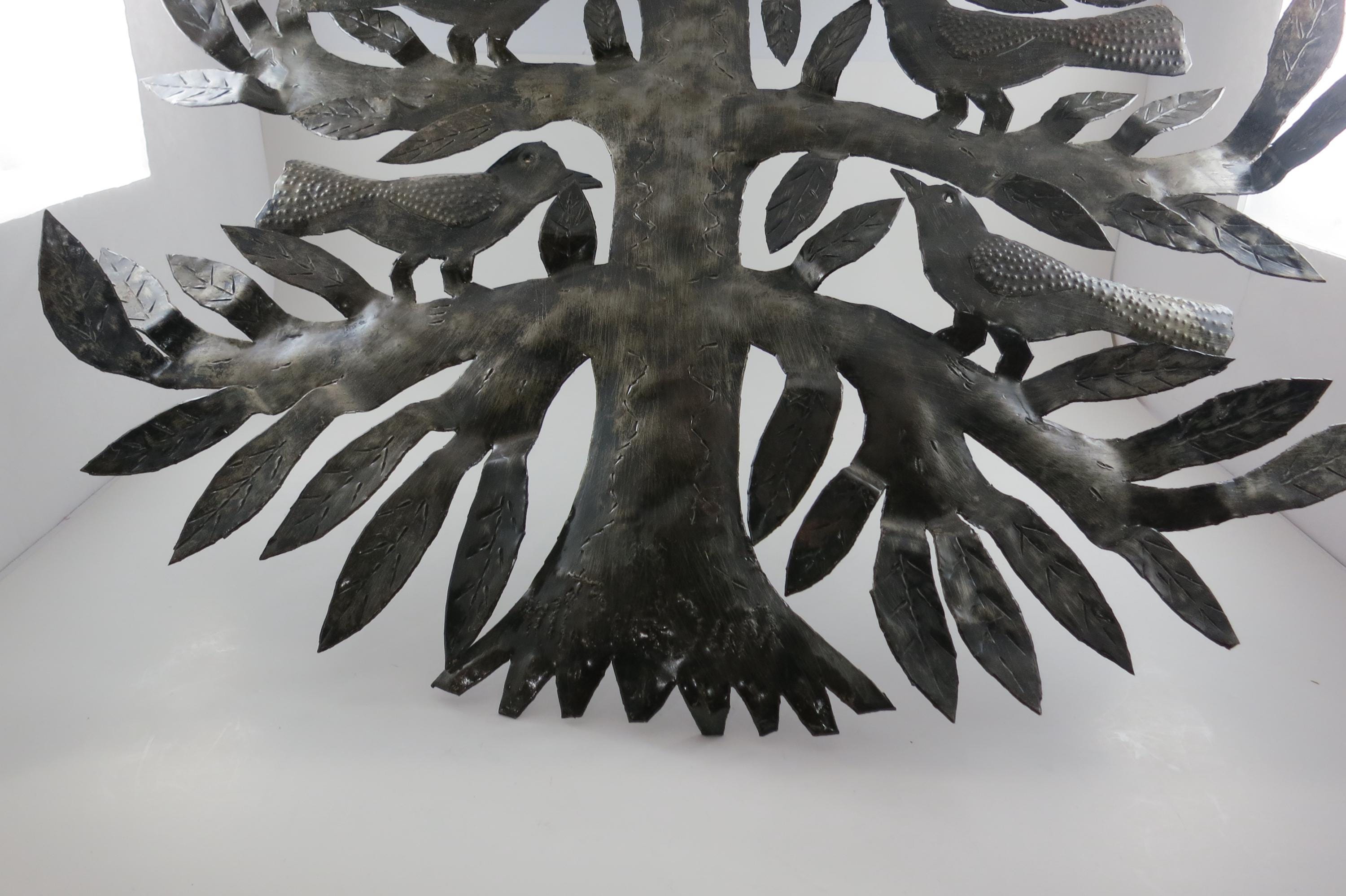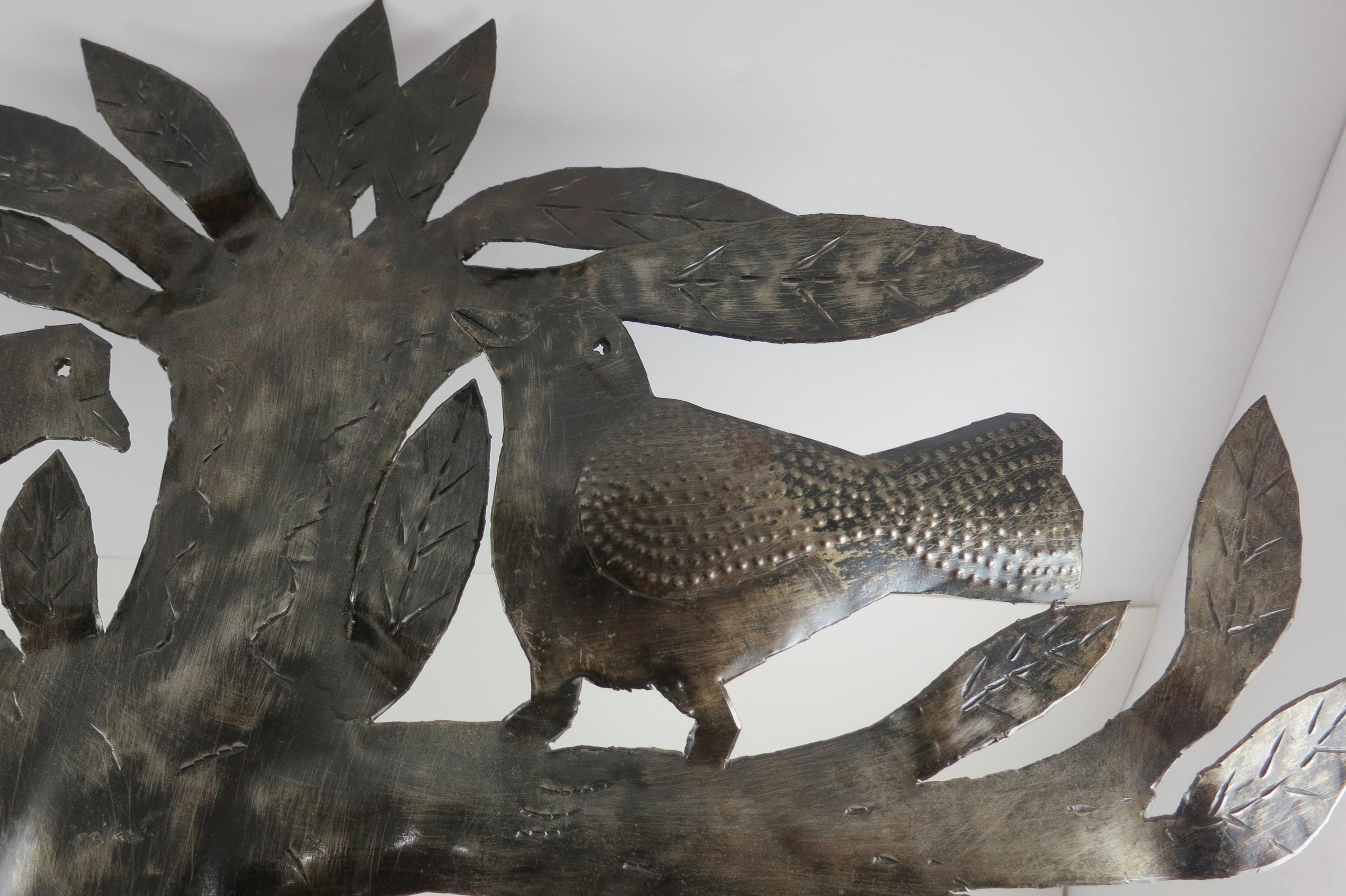 Vintage MCM Folk Art Wall Decor Tree of Birds Large 22x21 Signed Hand Crafted 1980's. Beautiful metal piece that looks stunning on a wall. 22 inches tall and 21 inches wide. Signed by the artist on the back.