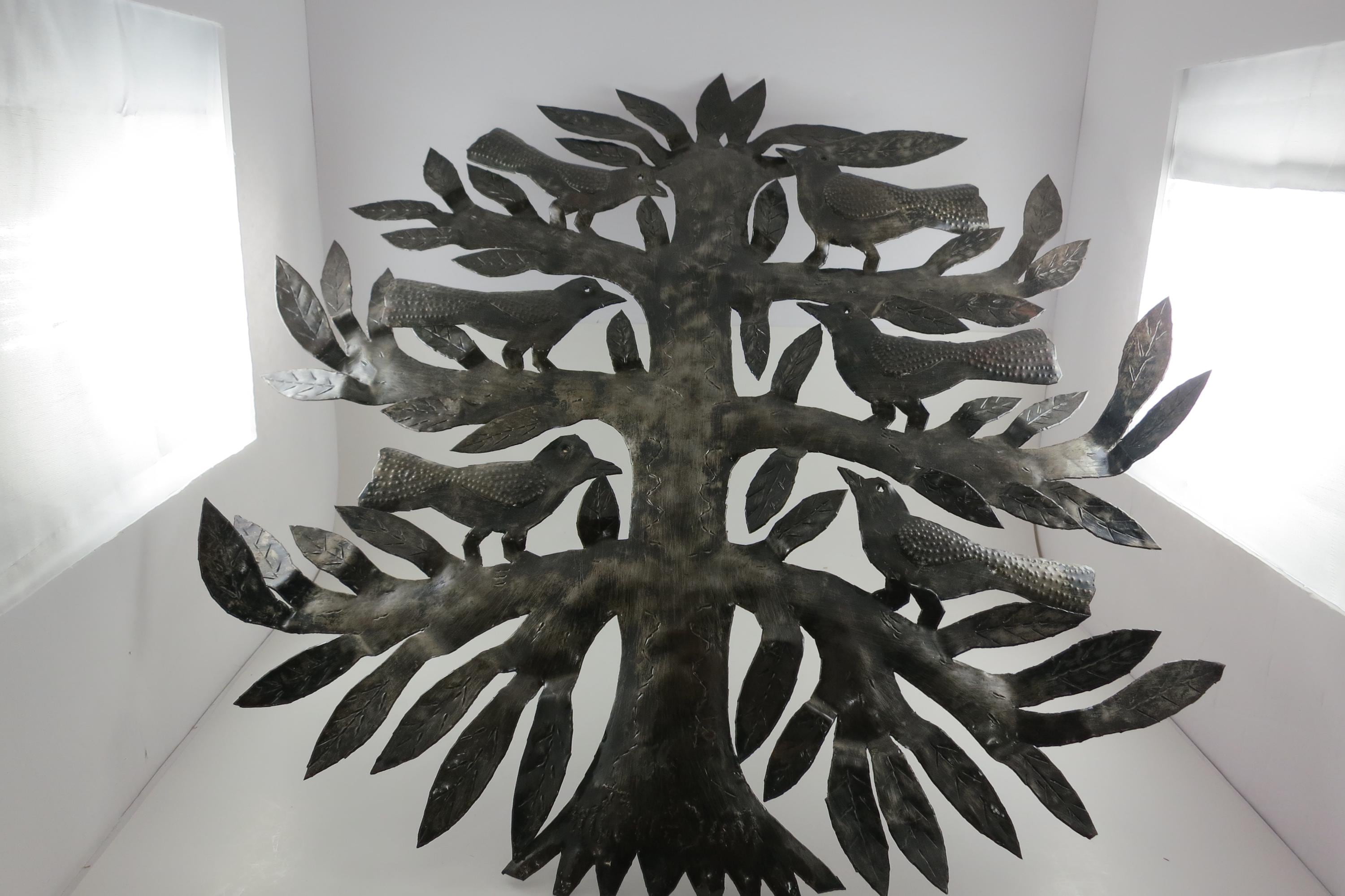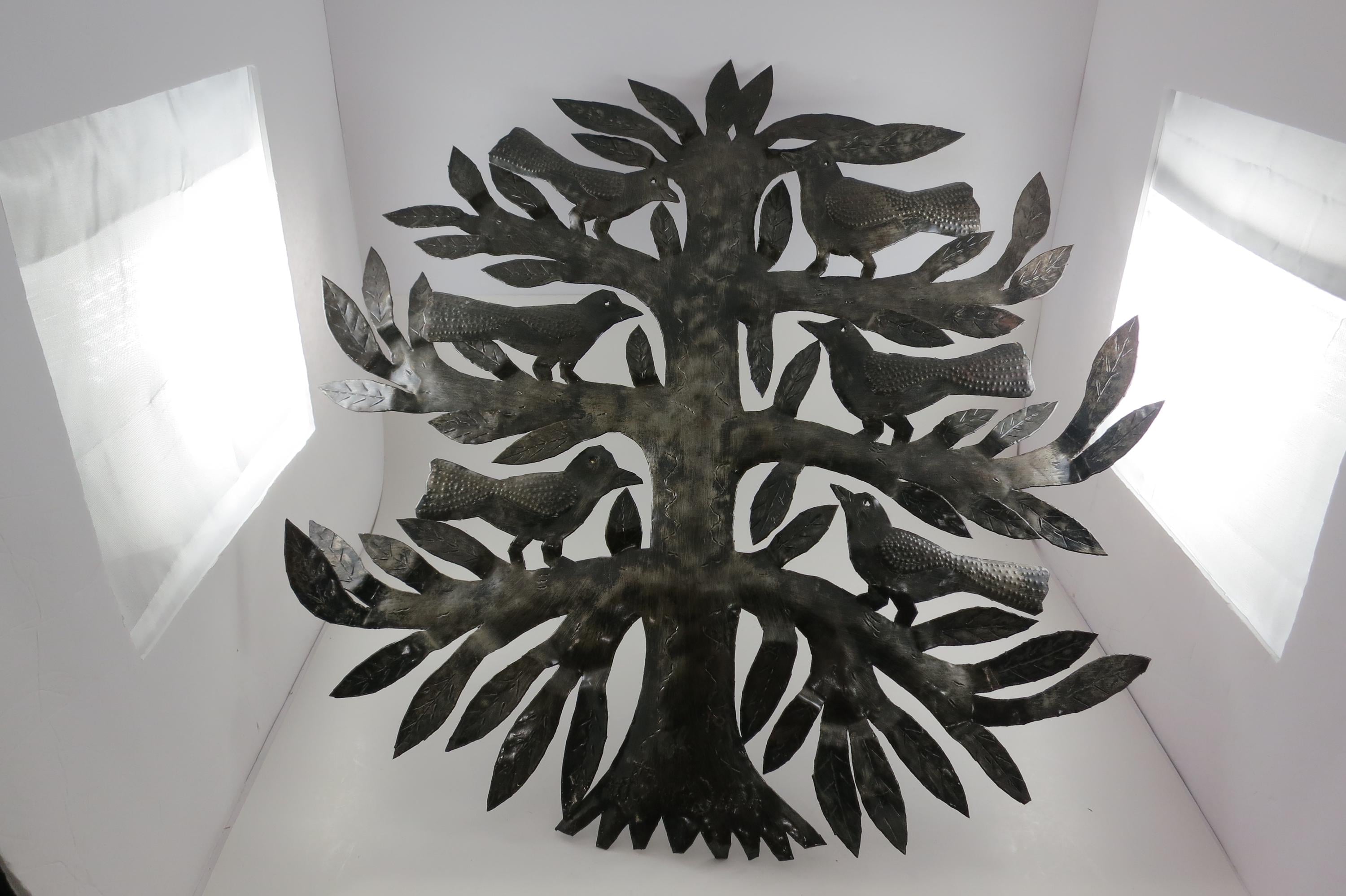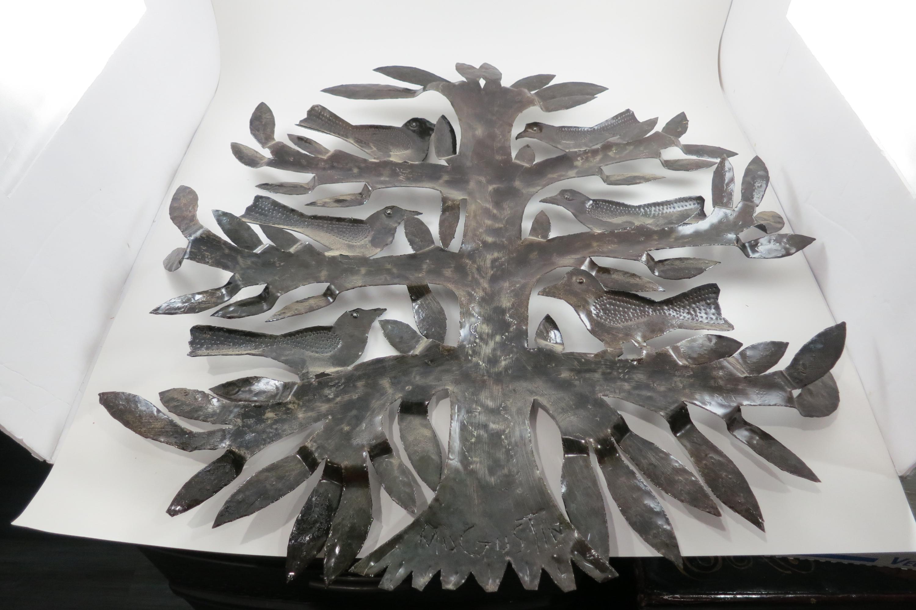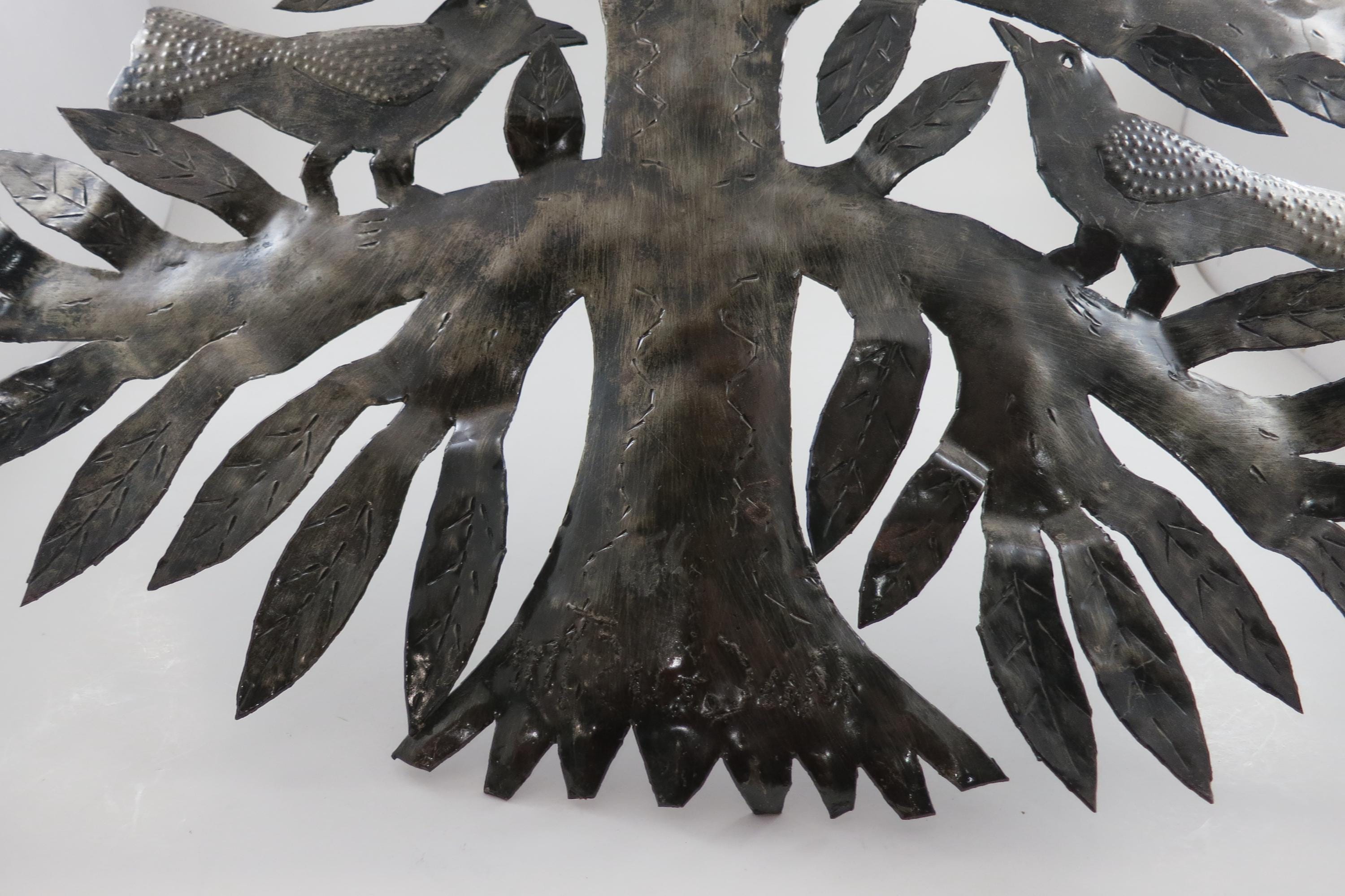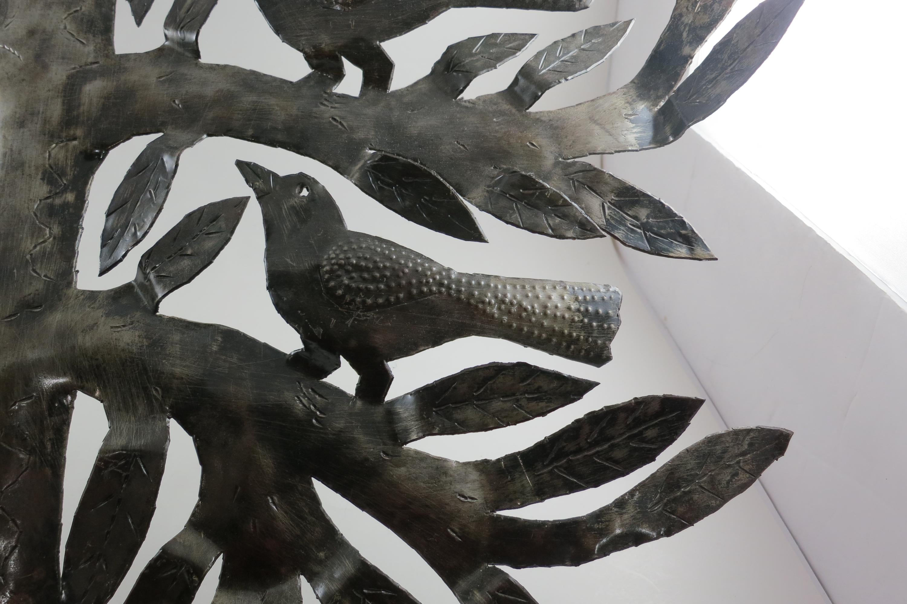 Vintage MCM Folk Art Wall Decor Tree of Birds Large 22x21 Signed Hand Crafted 1980's. Beautiful metal piece that looks stunning on a wall. 22 inches tall and 21 inches wide. Signed by the artist on the back.