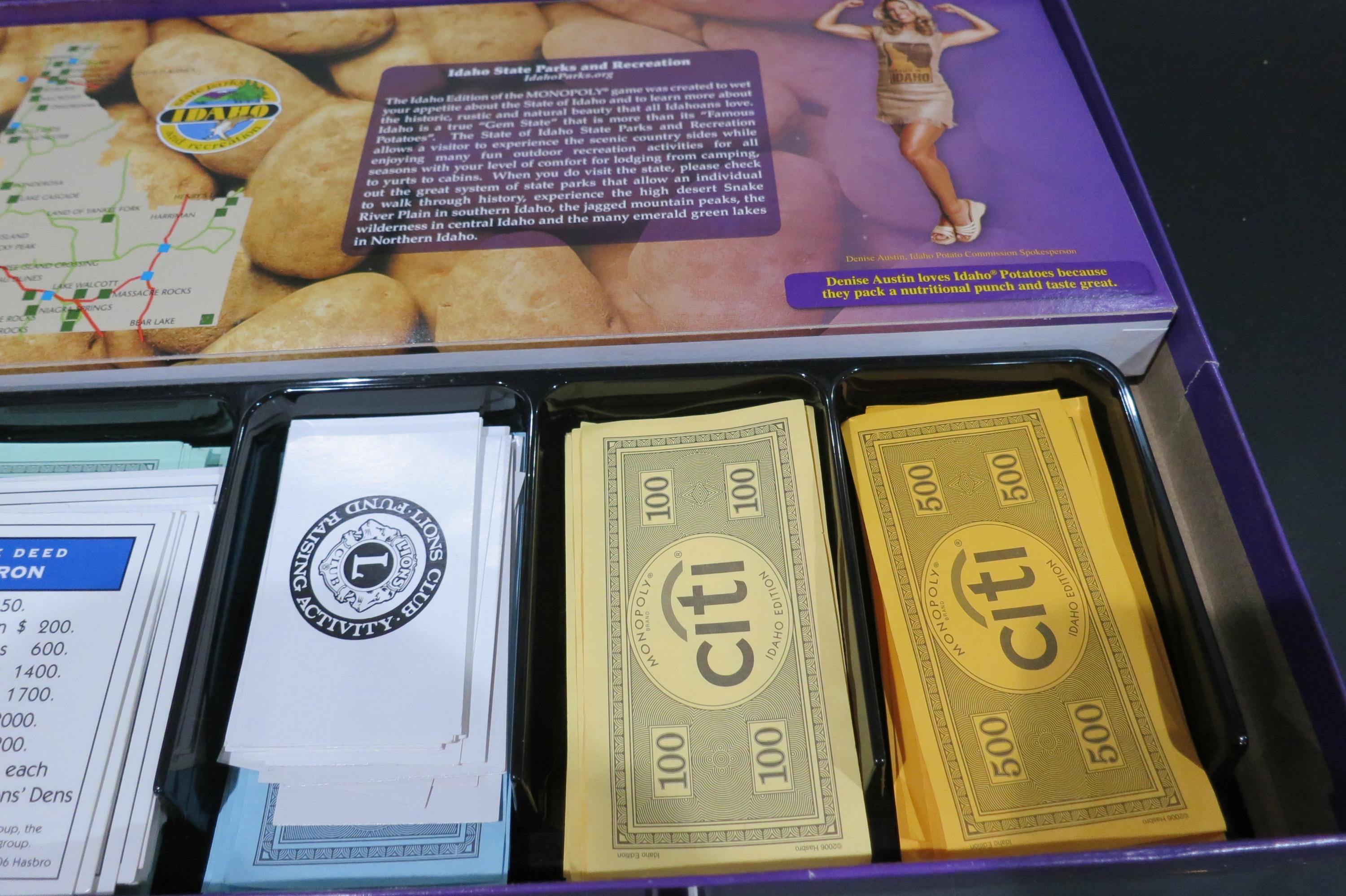 2005 Monopoly Board Game: Idaho Edition 100% Complete Custom Tokens. Great game and one of the harder variations to find. At least on the East Coast Anyway!! Ready to play!