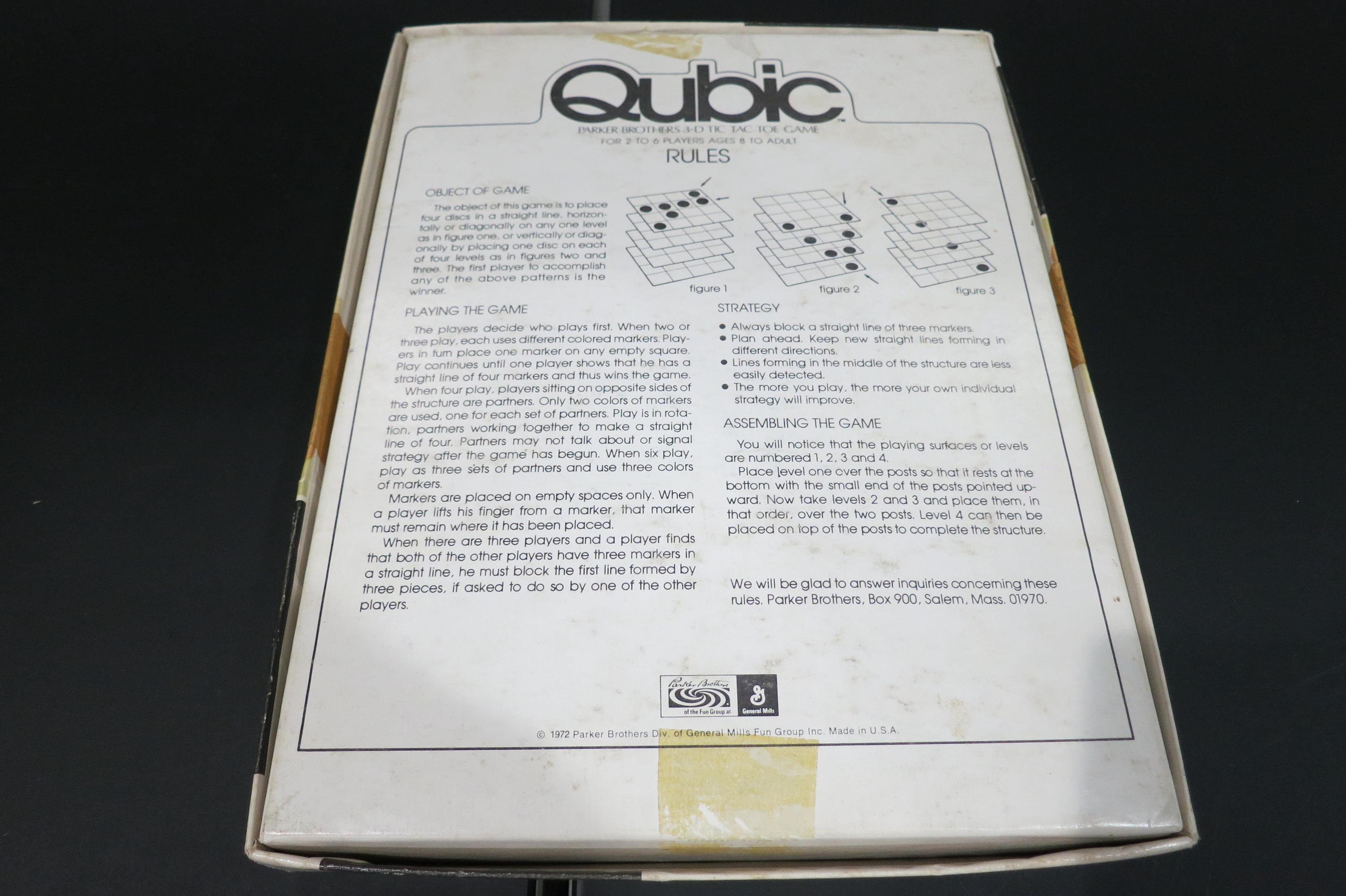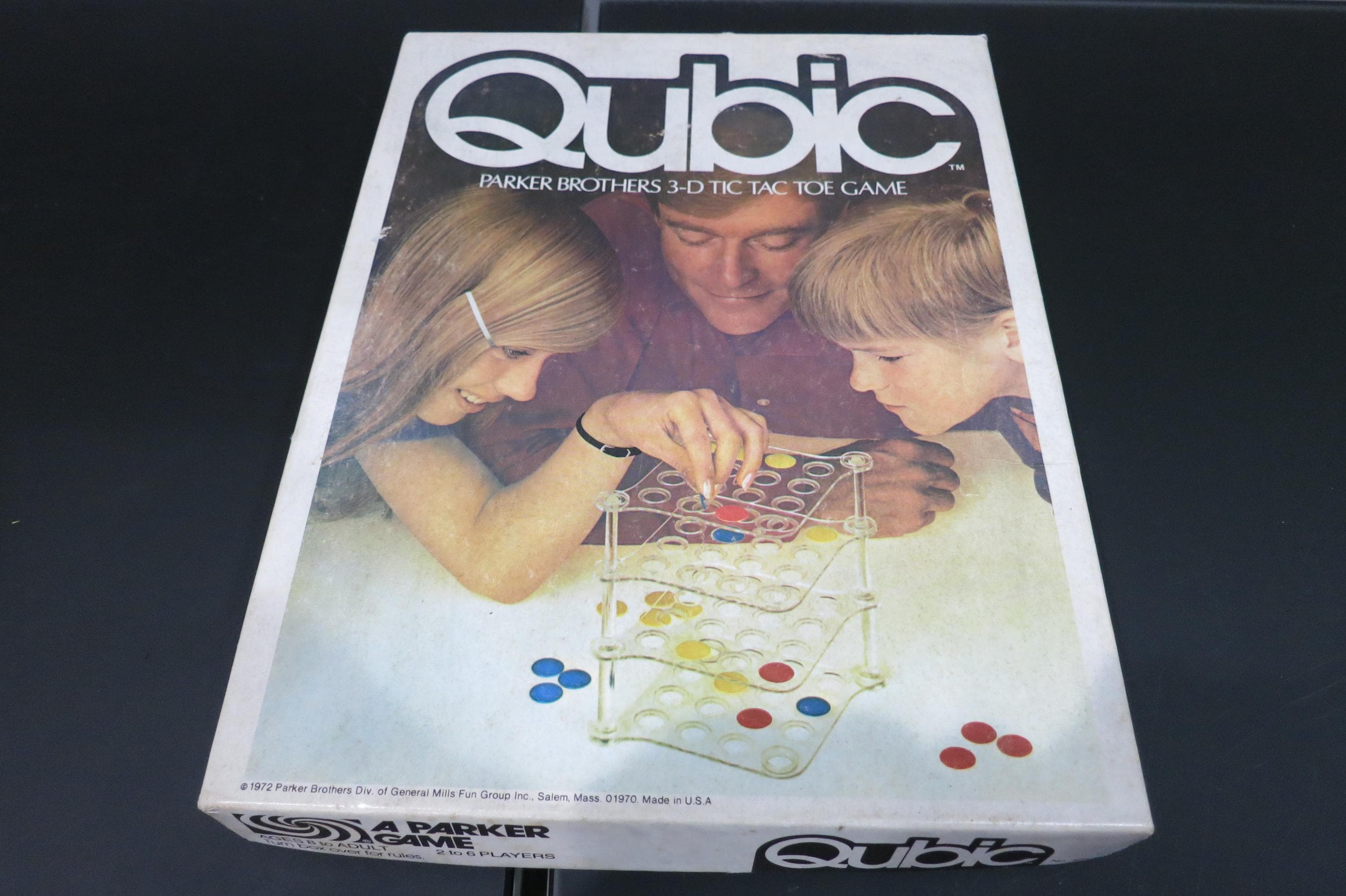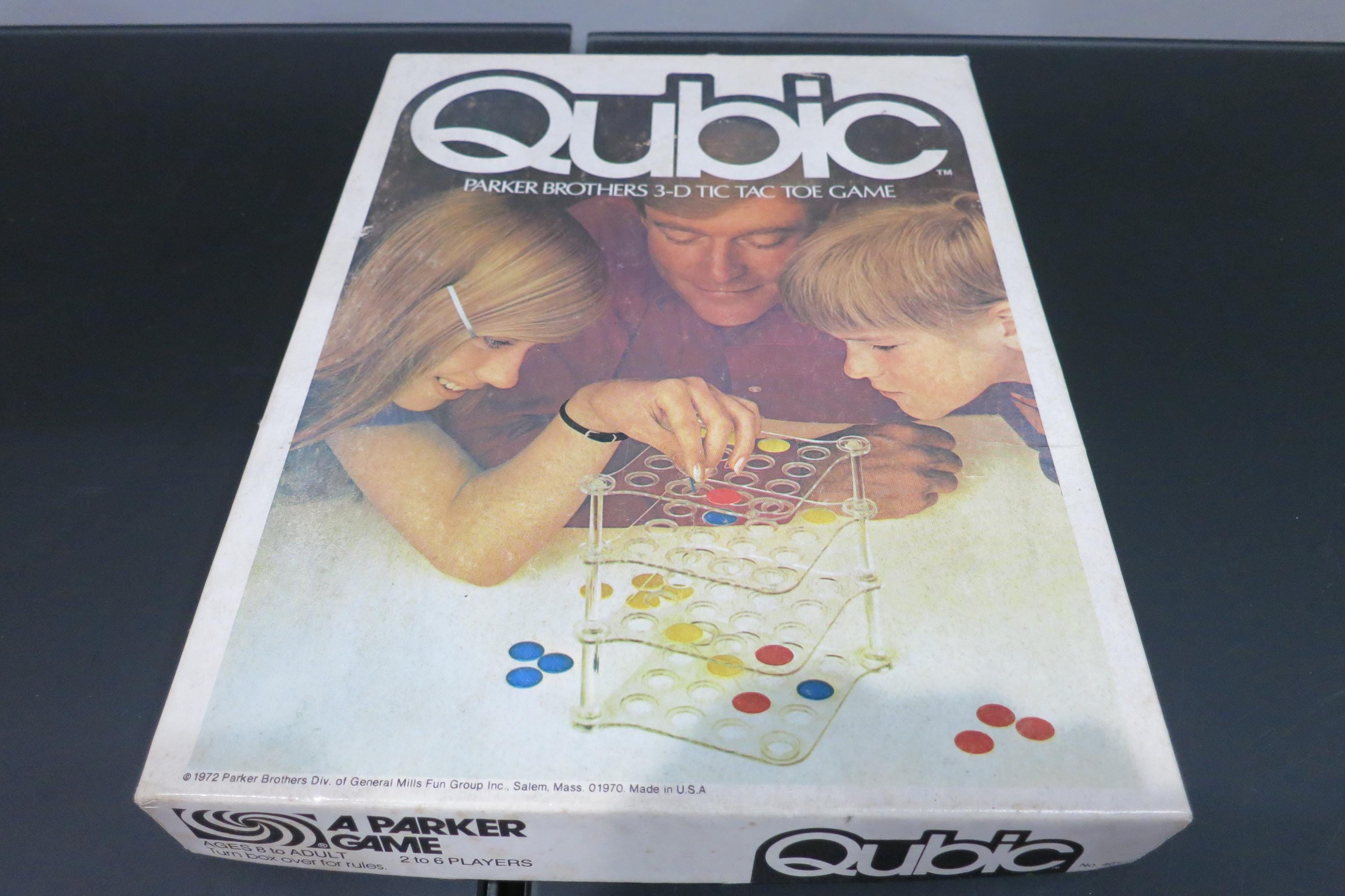 Vintage 1960's Board Game Qubic 3-D Tic Tac Toe Game Complete In Original Box. Hours of enjoyment, great game. Box is also in good condition with normal wear.
