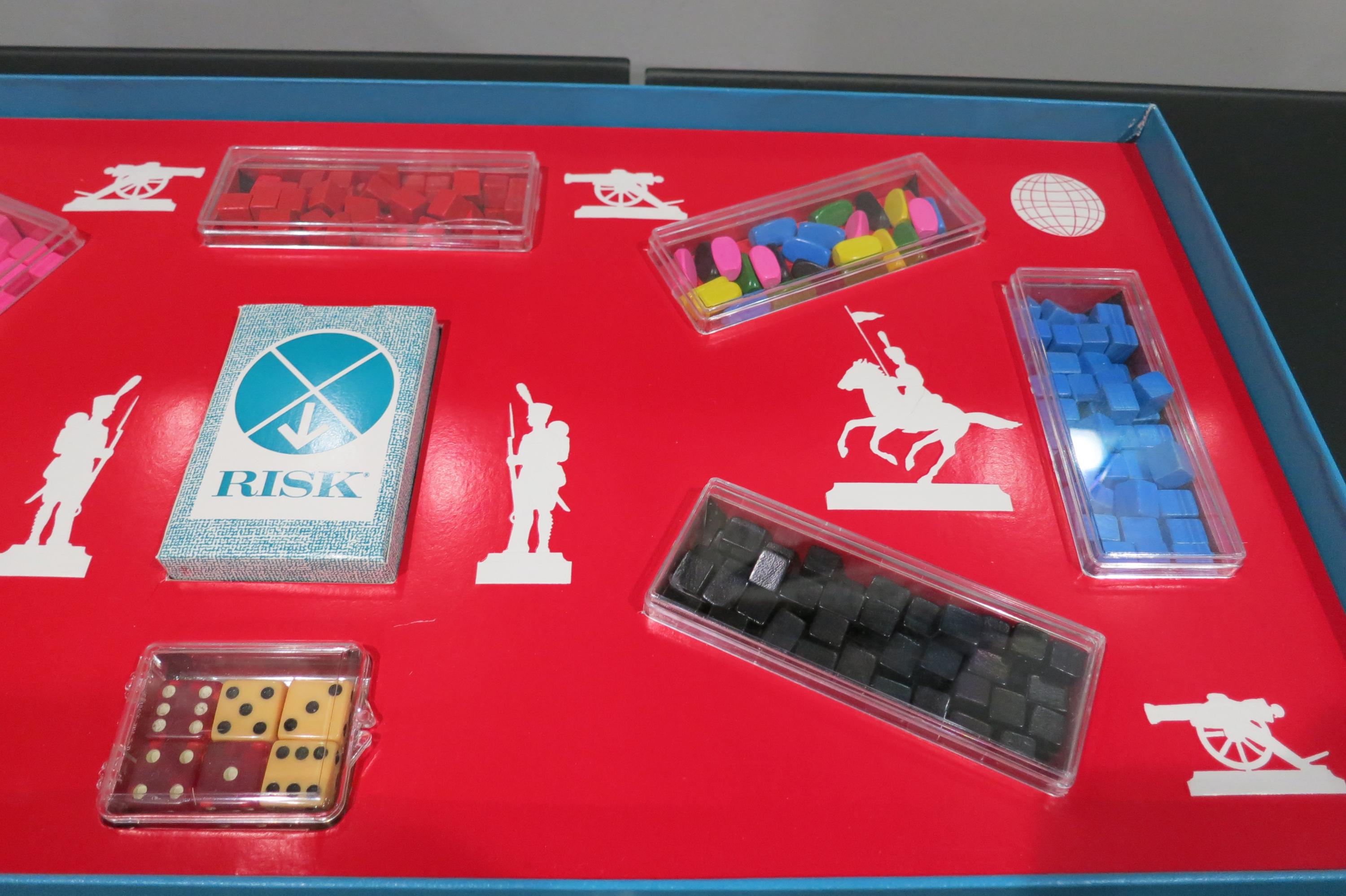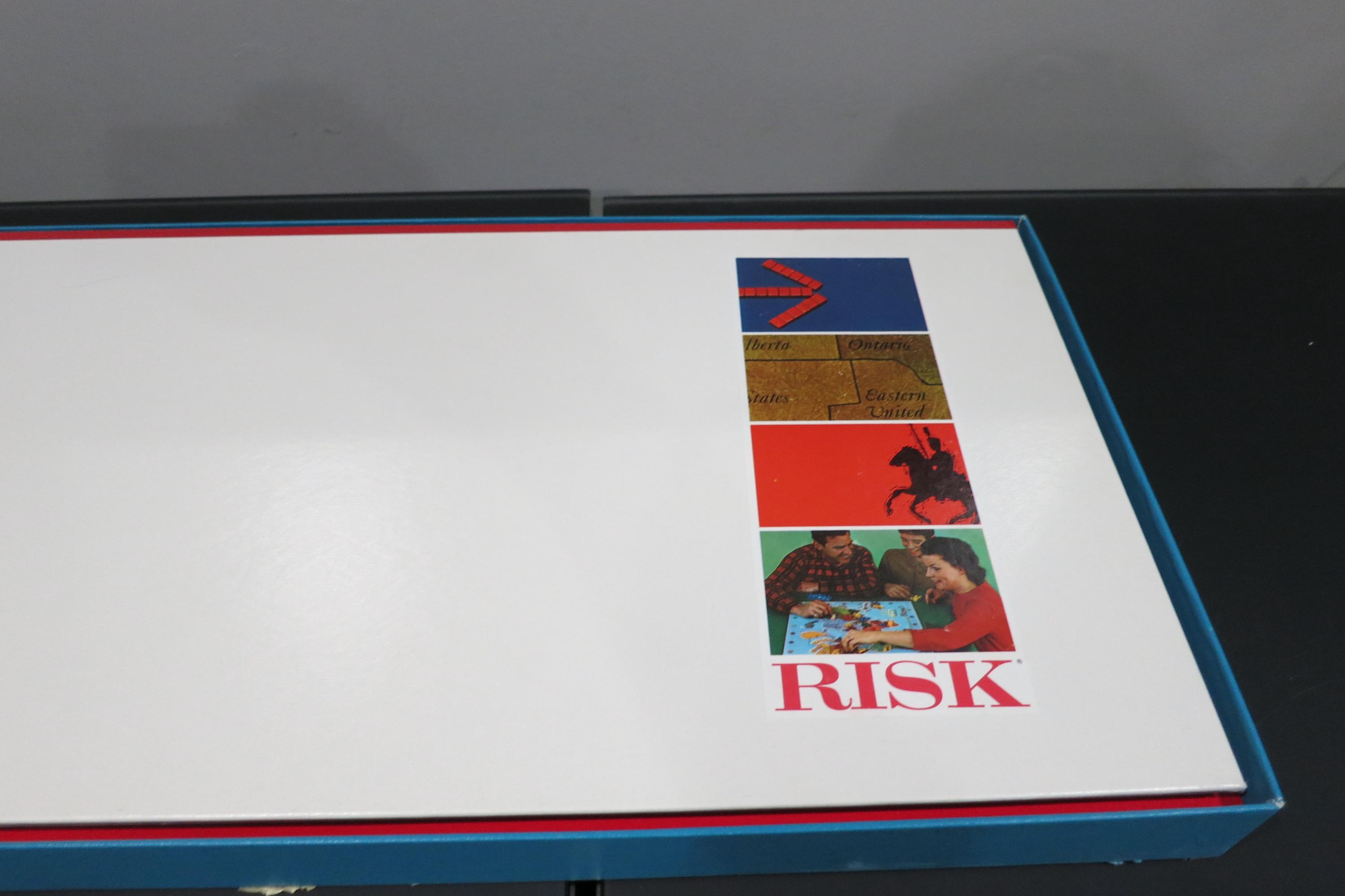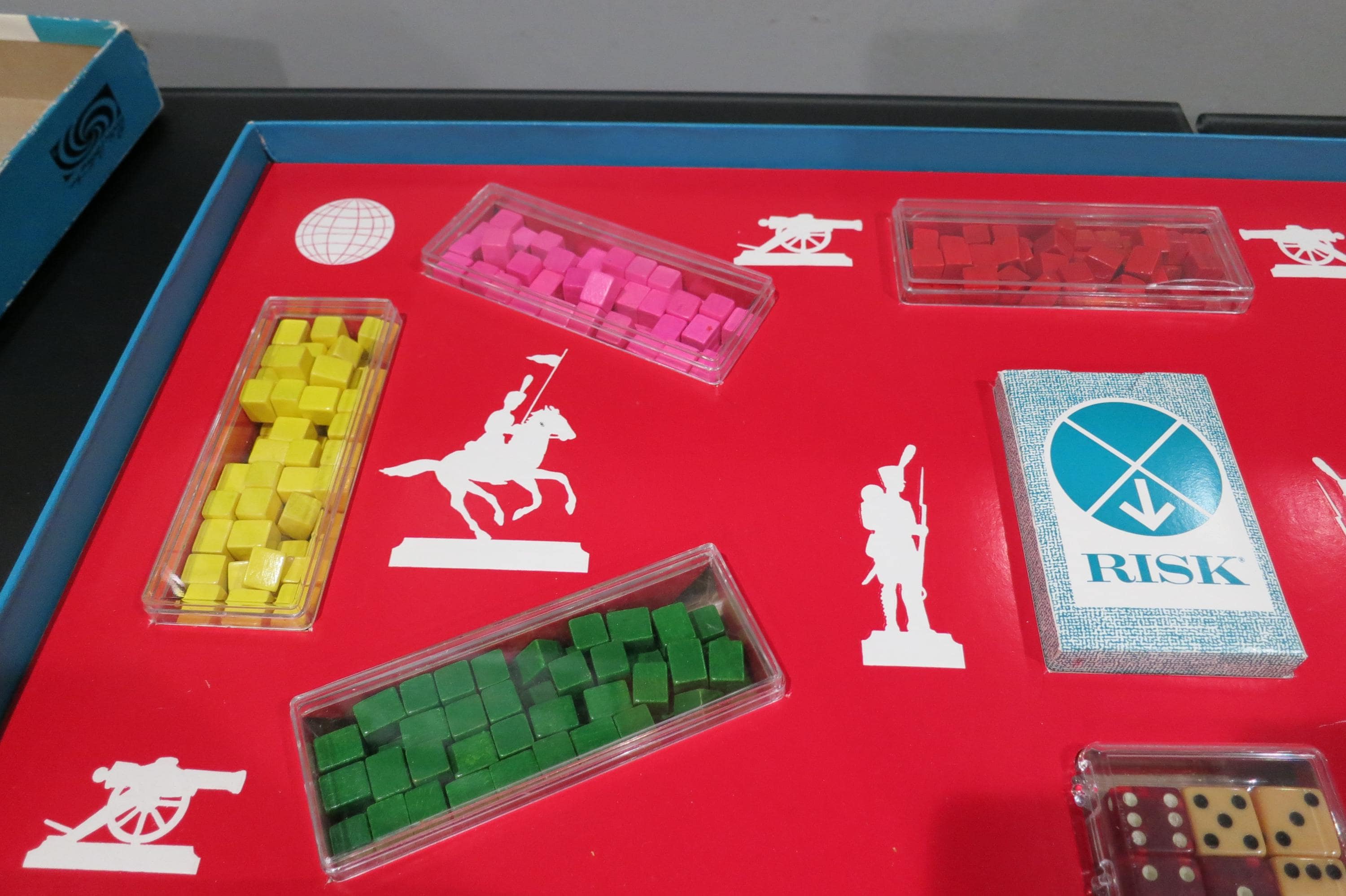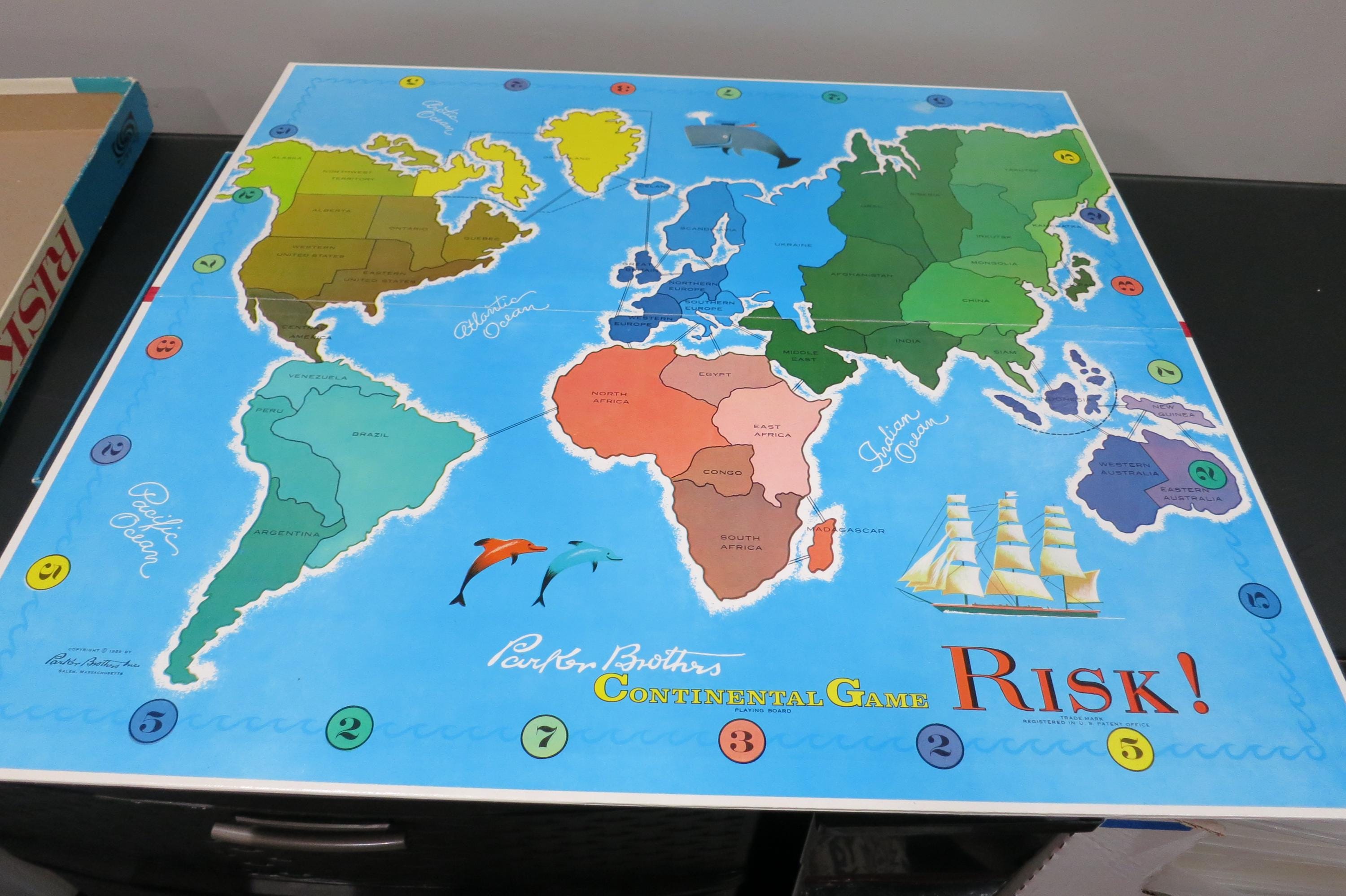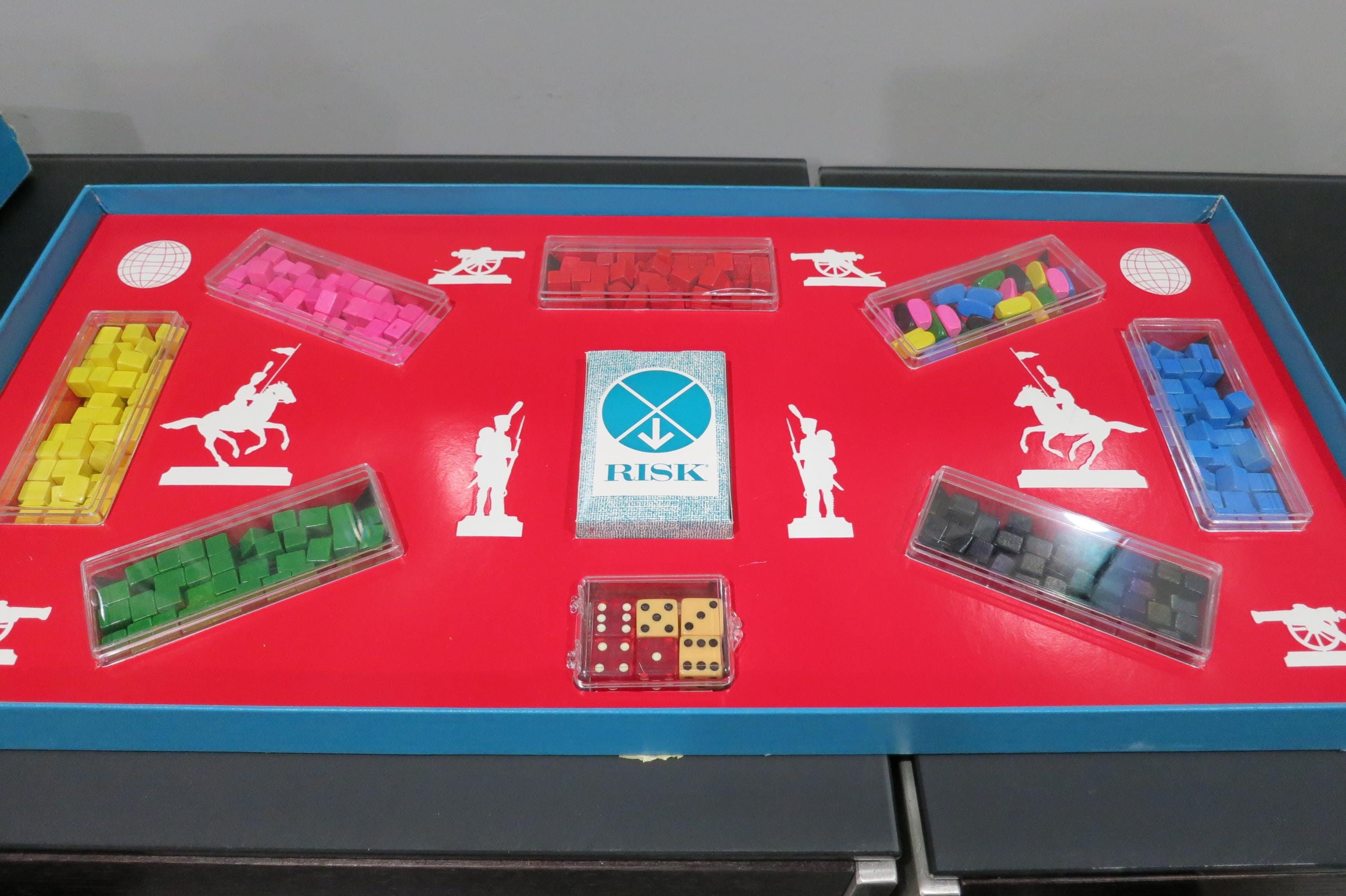 Vintage 1968 Parker Brothers Board Game RISK 100% Complete Excellent Condition Wooden Playing Pieces . Can provide hours upon hours of enjoyment. Includes the original instructions. Much neater than the brand new in the store version!! This one has wooden playing pieces. Very nice set. Box has 2 taped corners and wear to the bottom.
