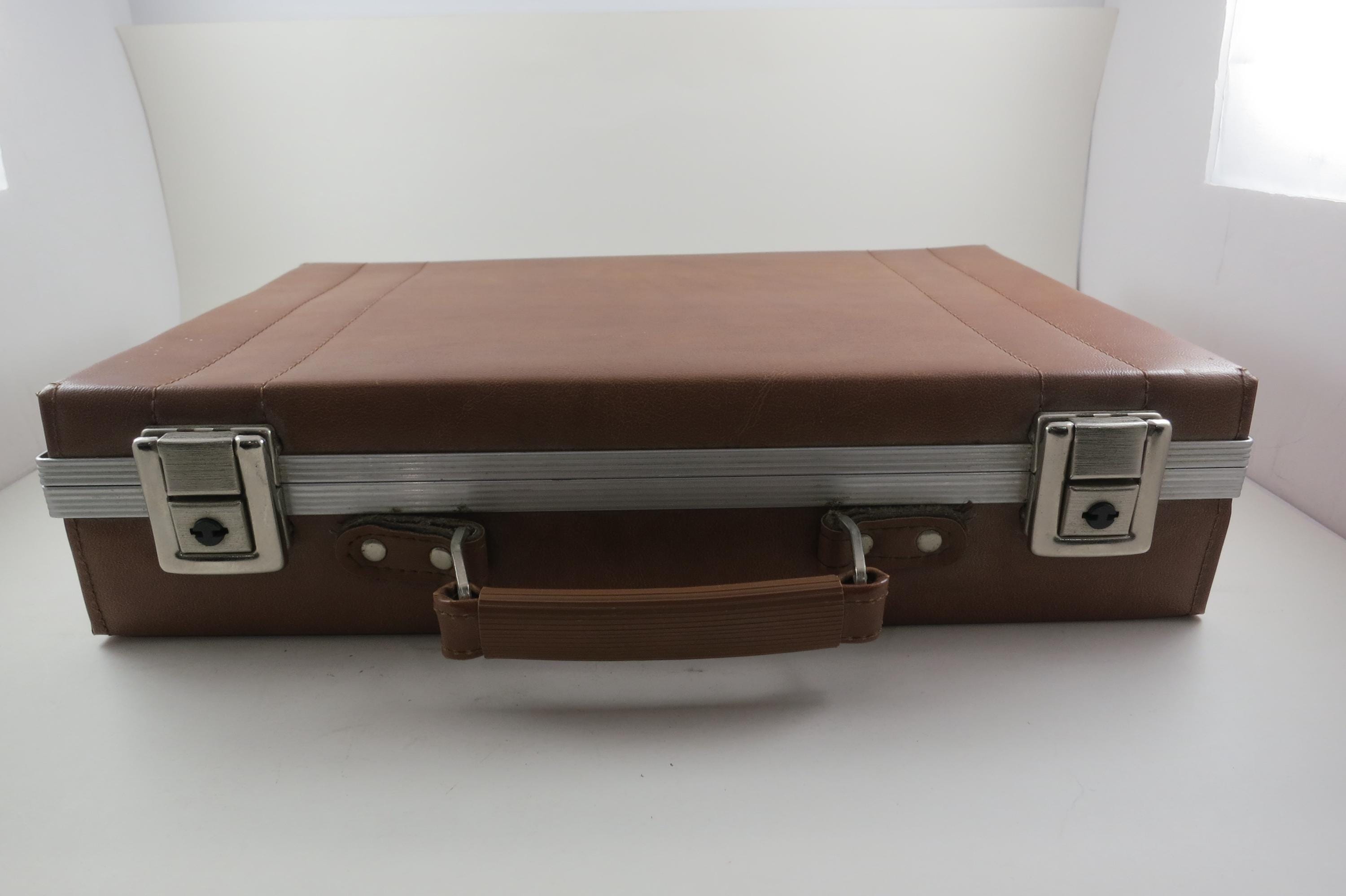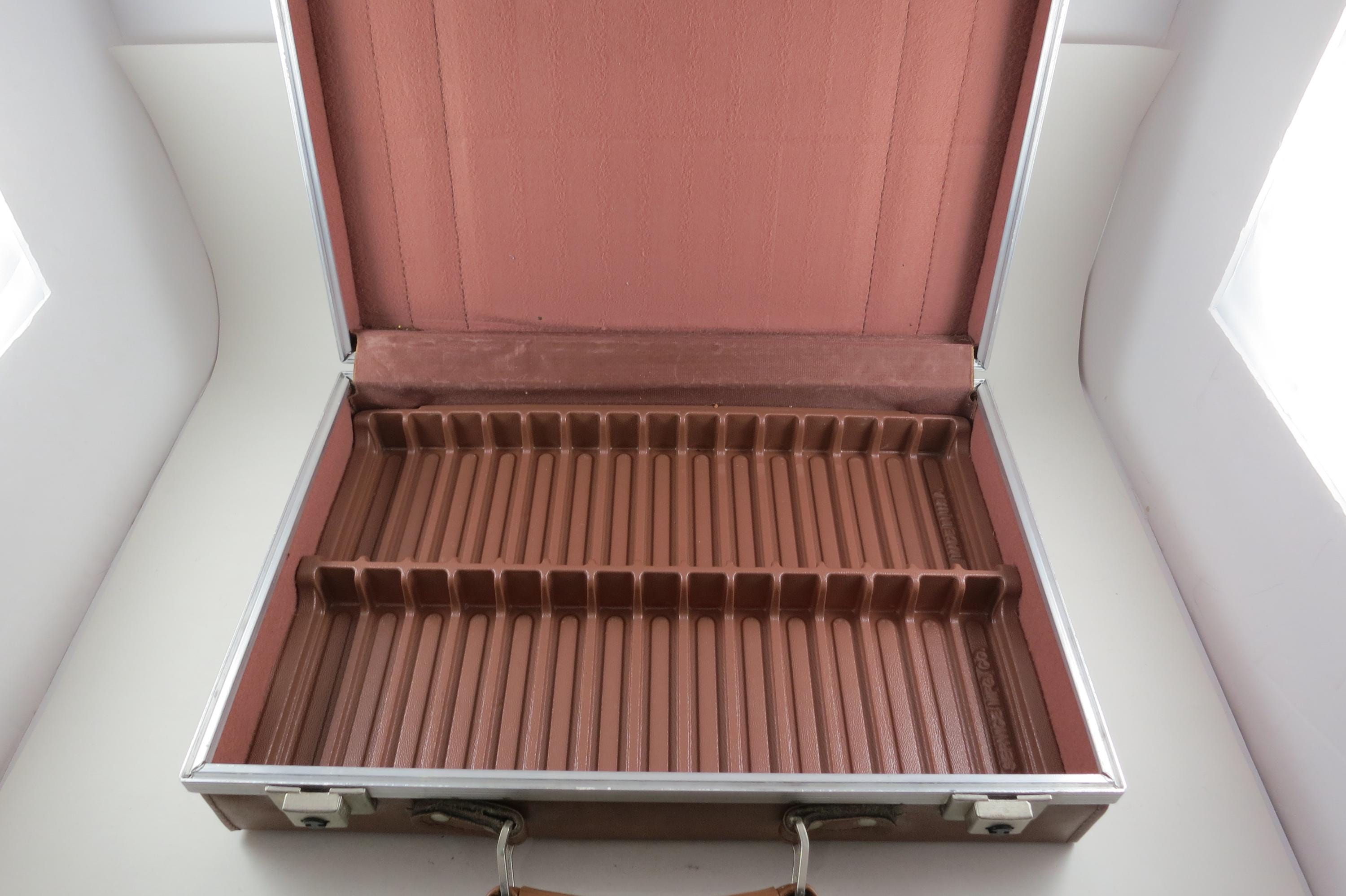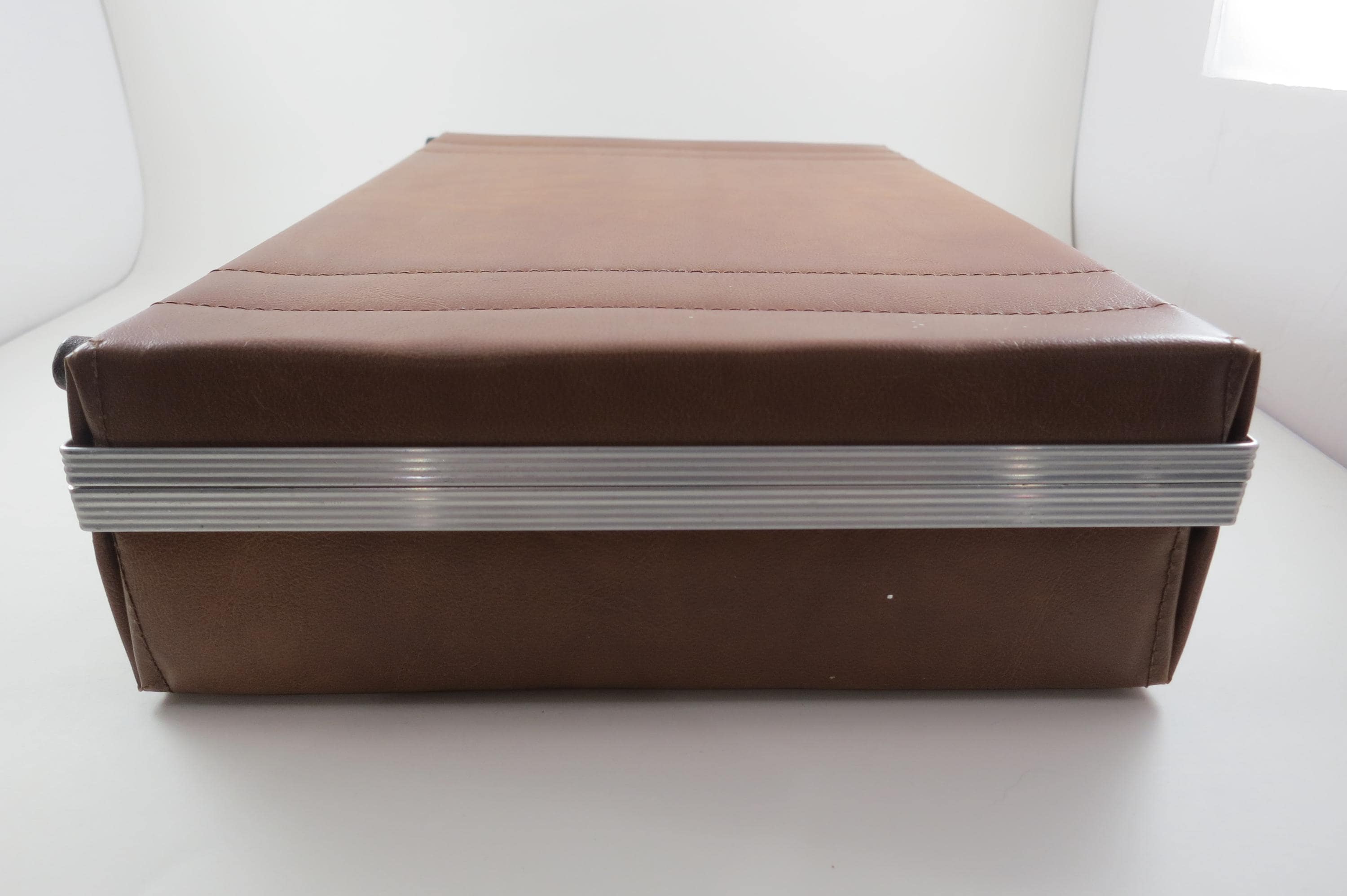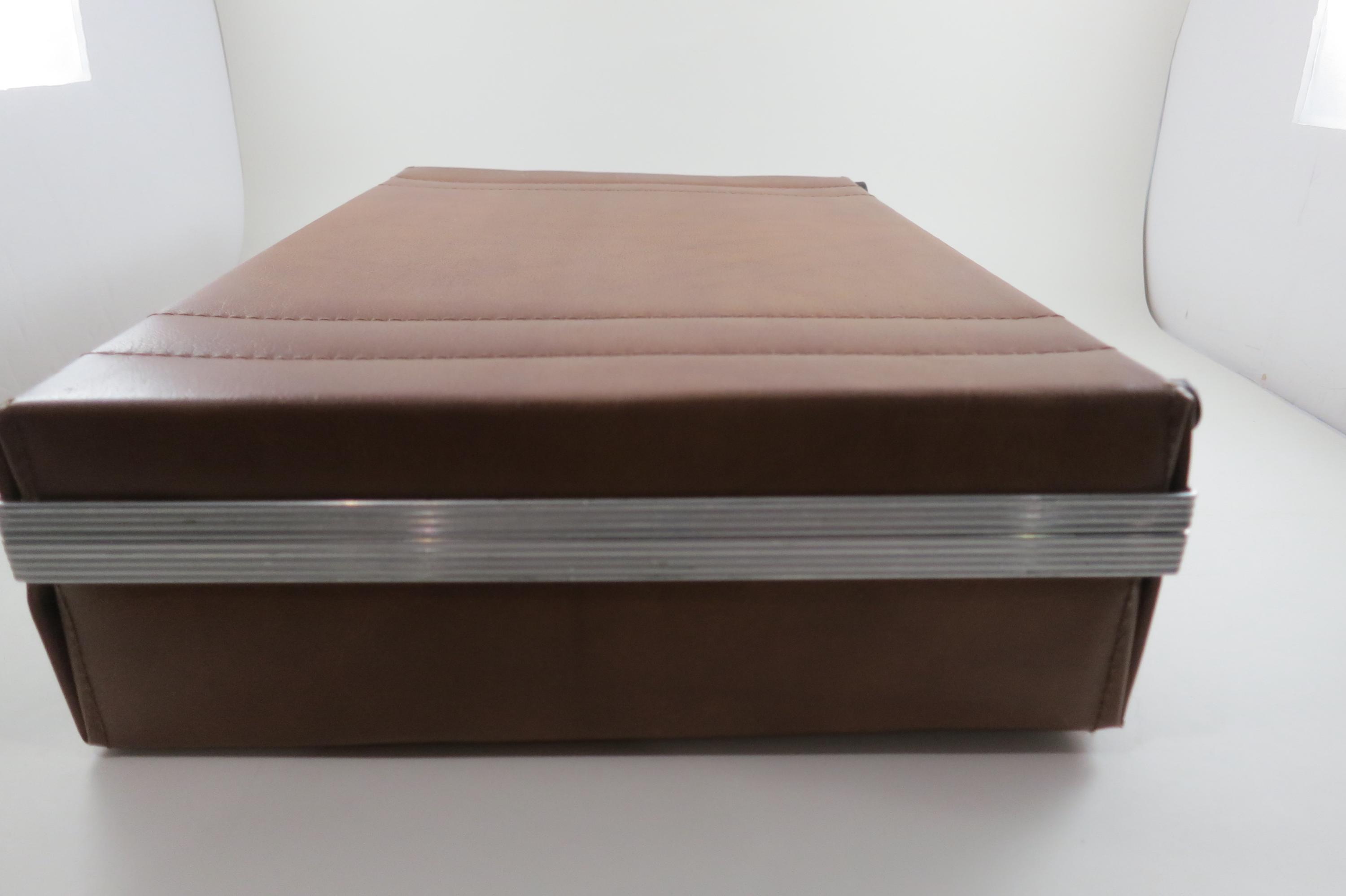 Service Mfg Co 30 Cassette Hard Shell Carrying Case Faux Brown Leather Double Latches and Handle Excellent Condition