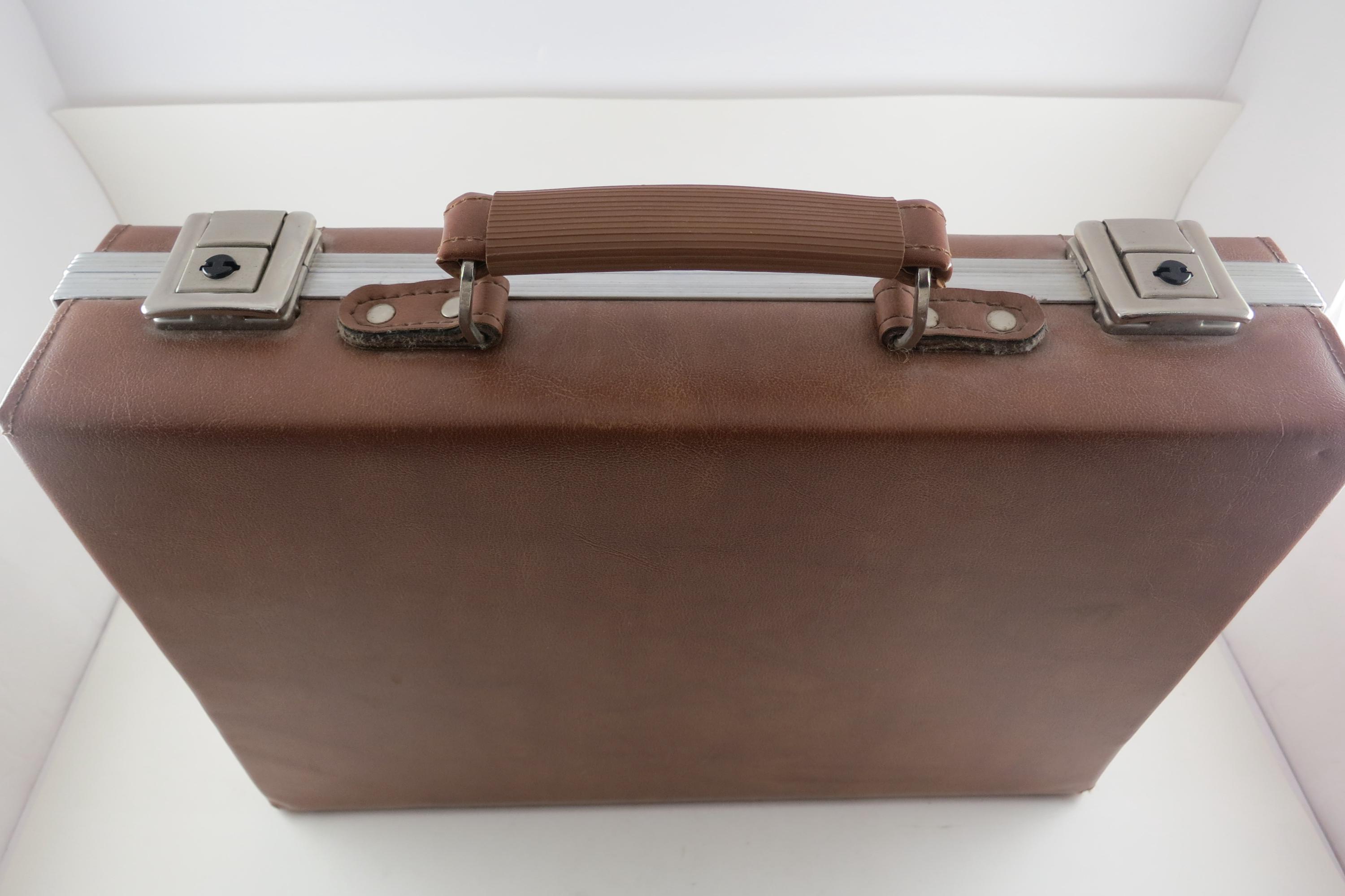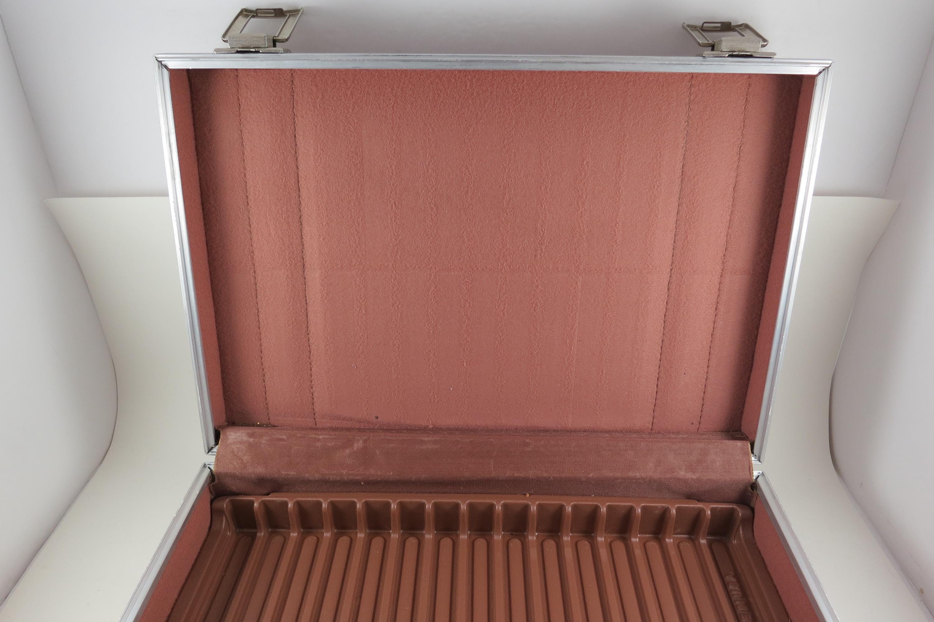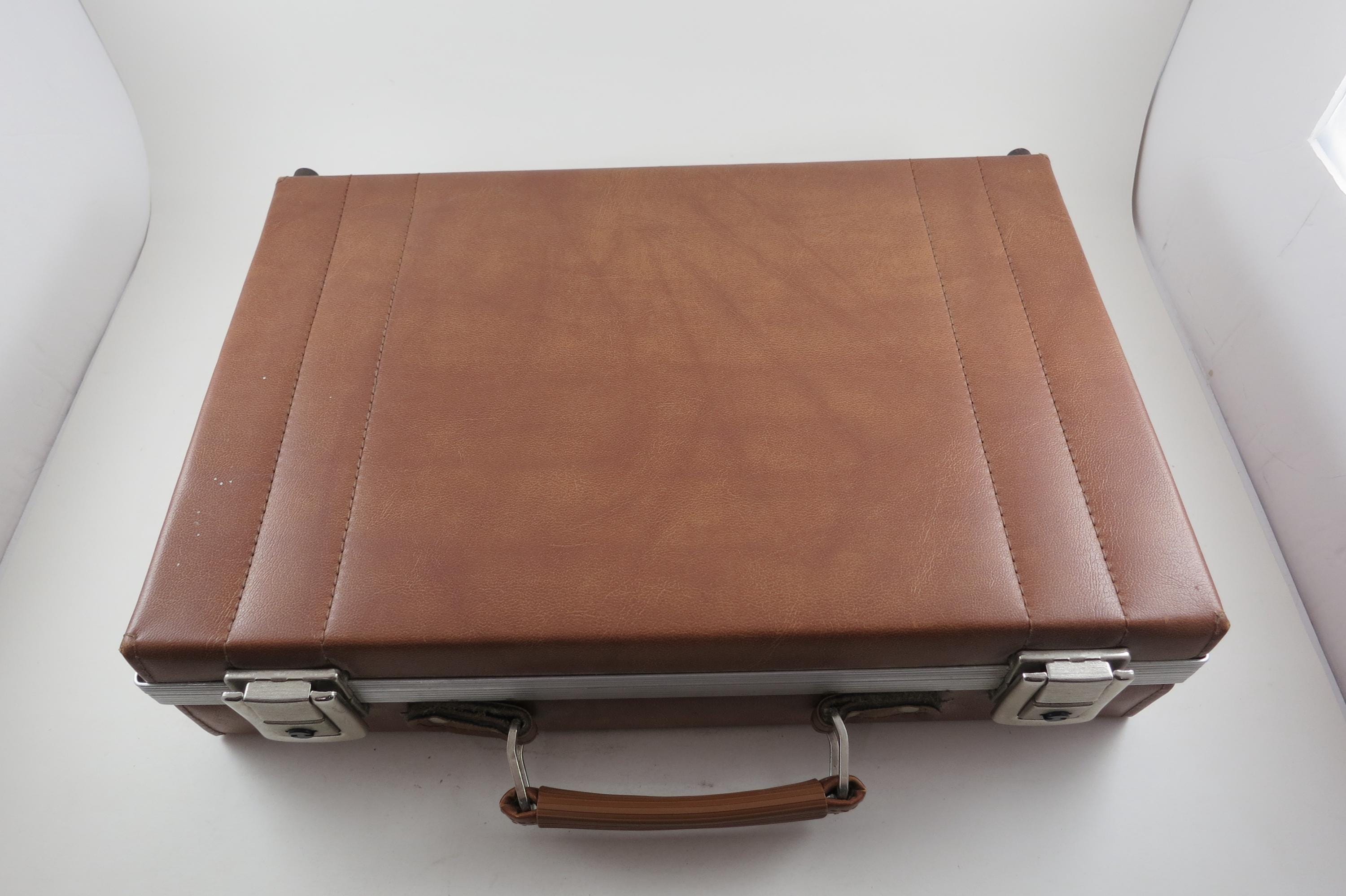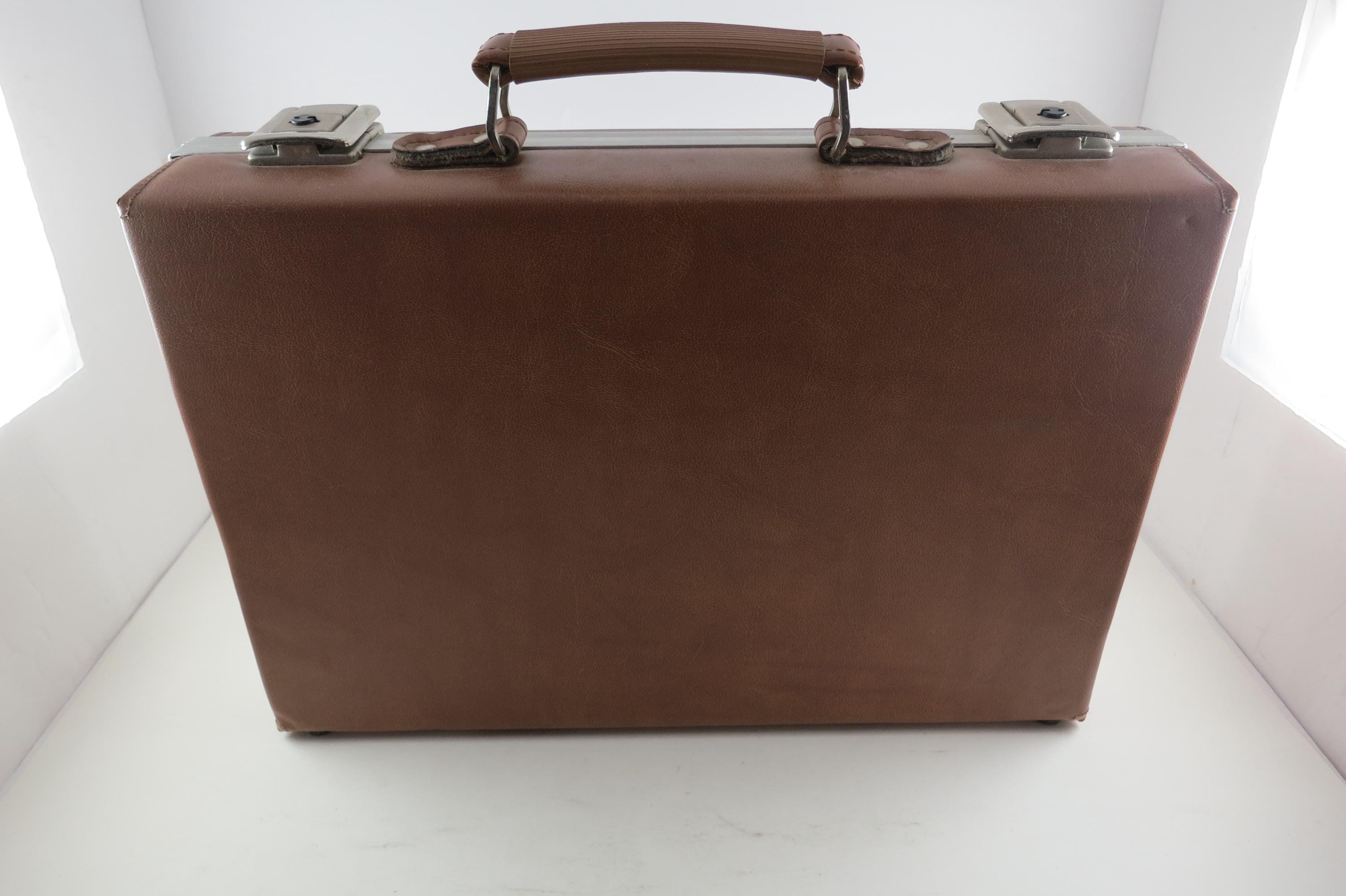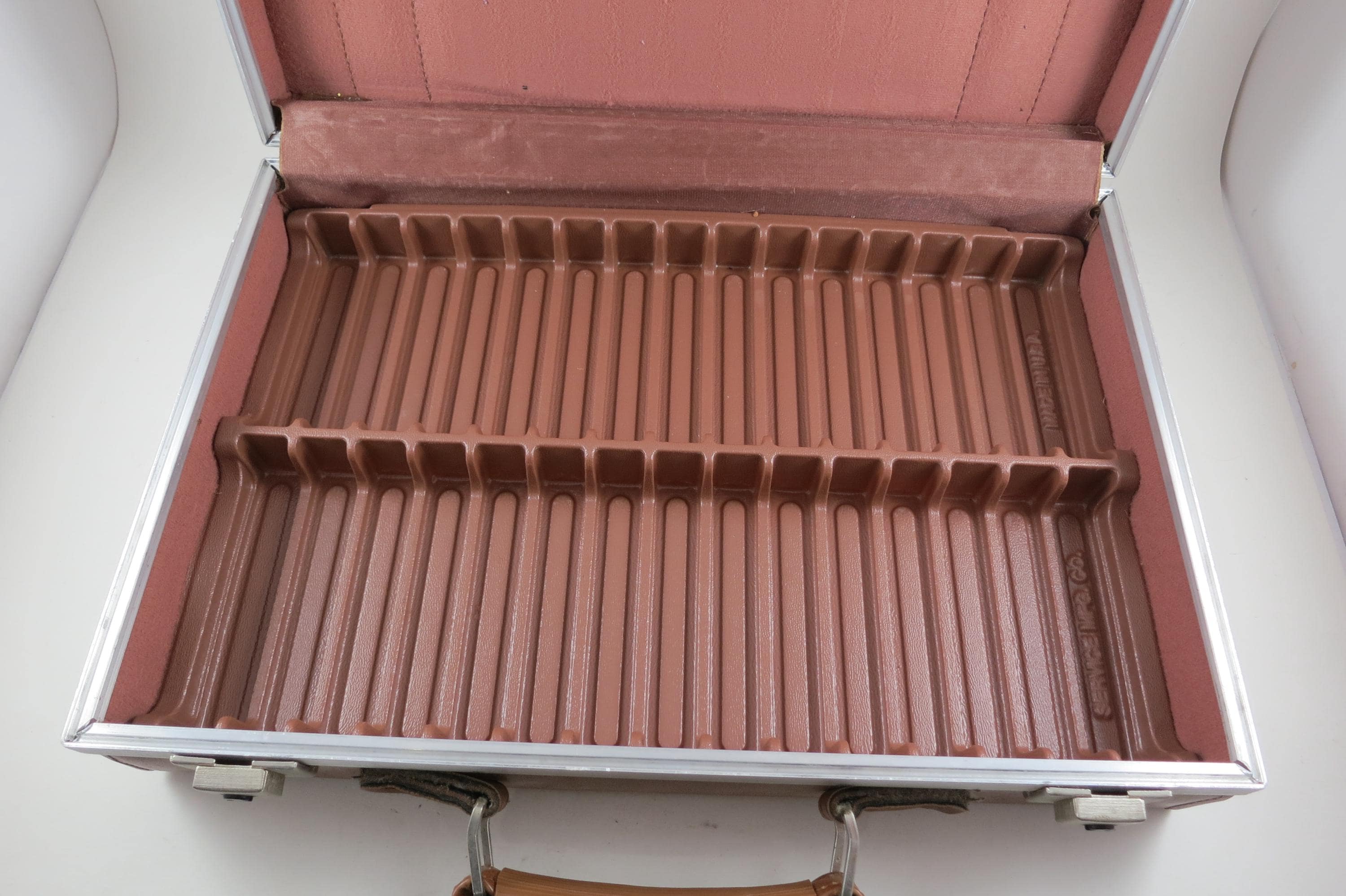 Service Mfg Co 30 Cassette Hard Shell Carrying Case Faux Brown Leather Double Latches and Handle Excellent Condition