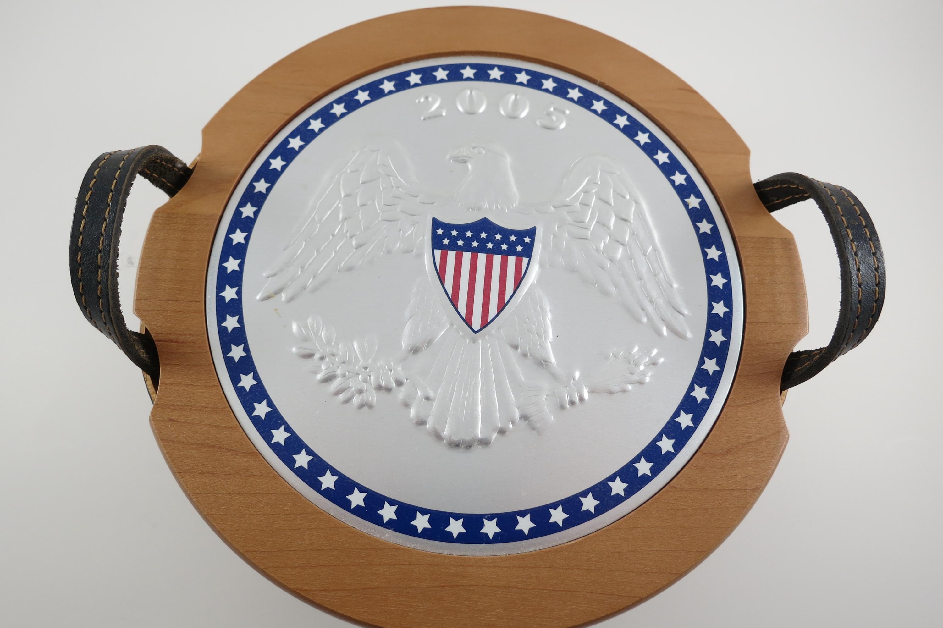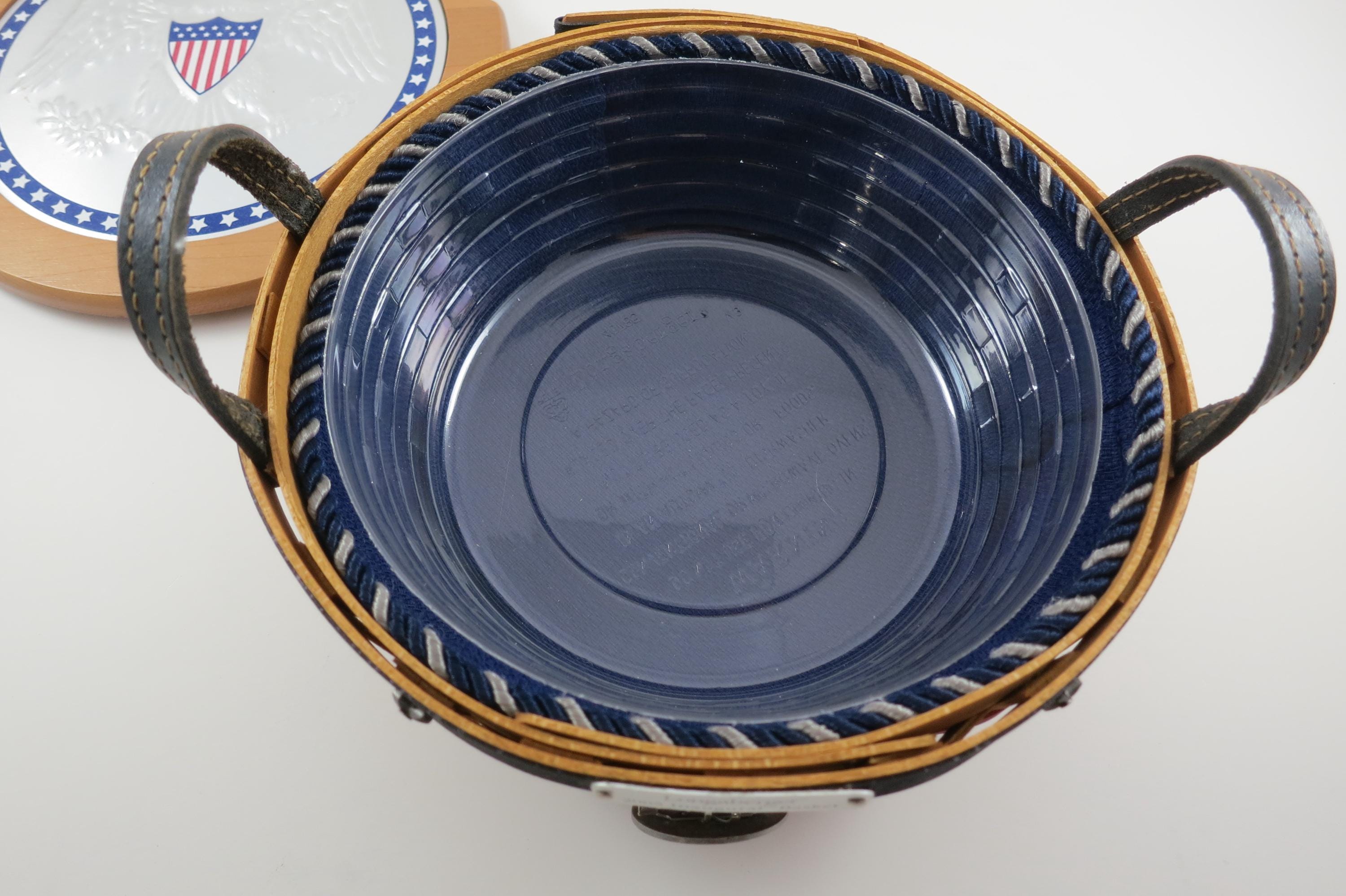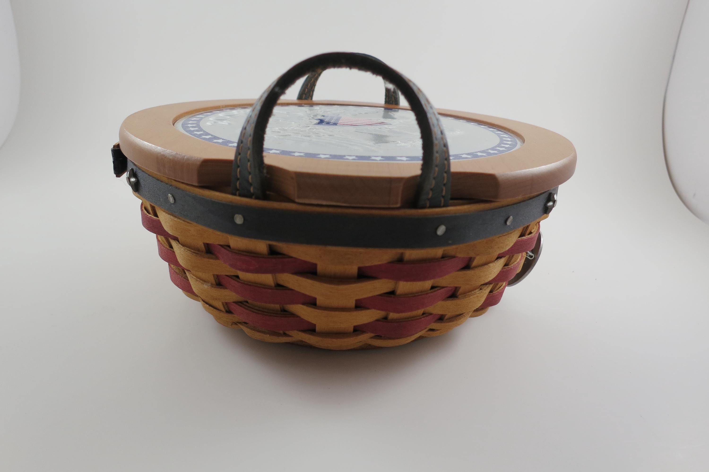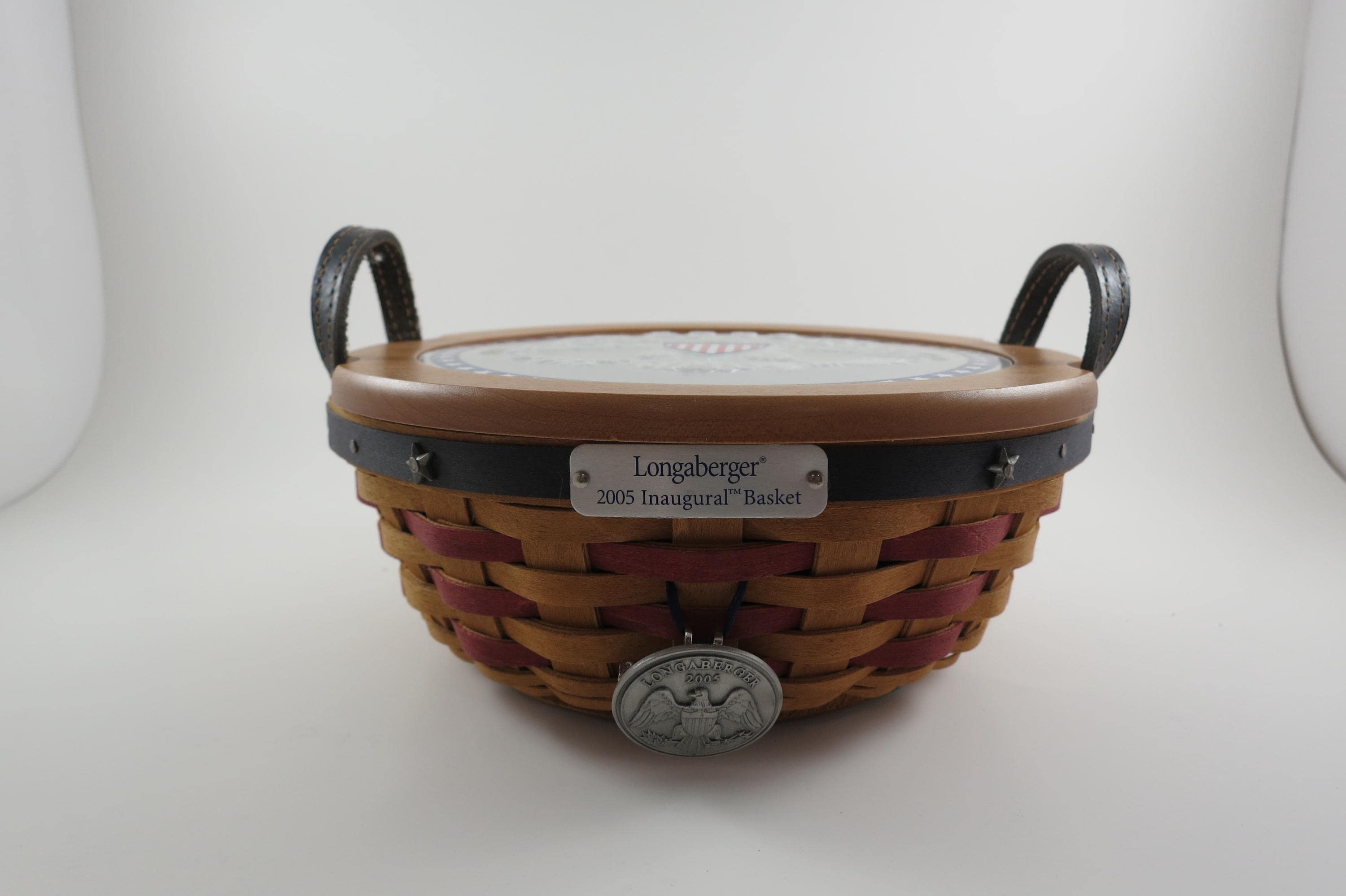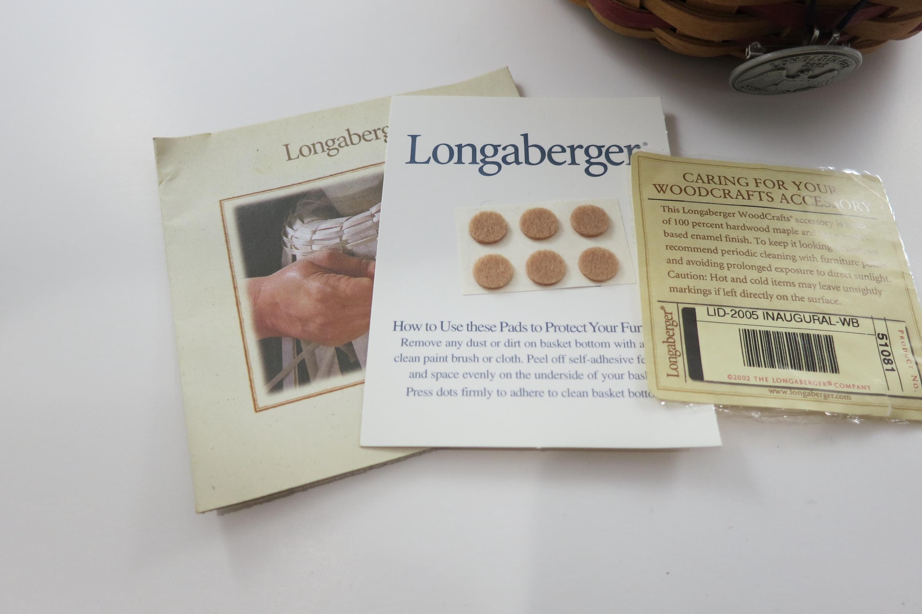 2005 Longaberger Inaugural Basket with Lid Liner Plastic Protector Tie On Excellent Condition