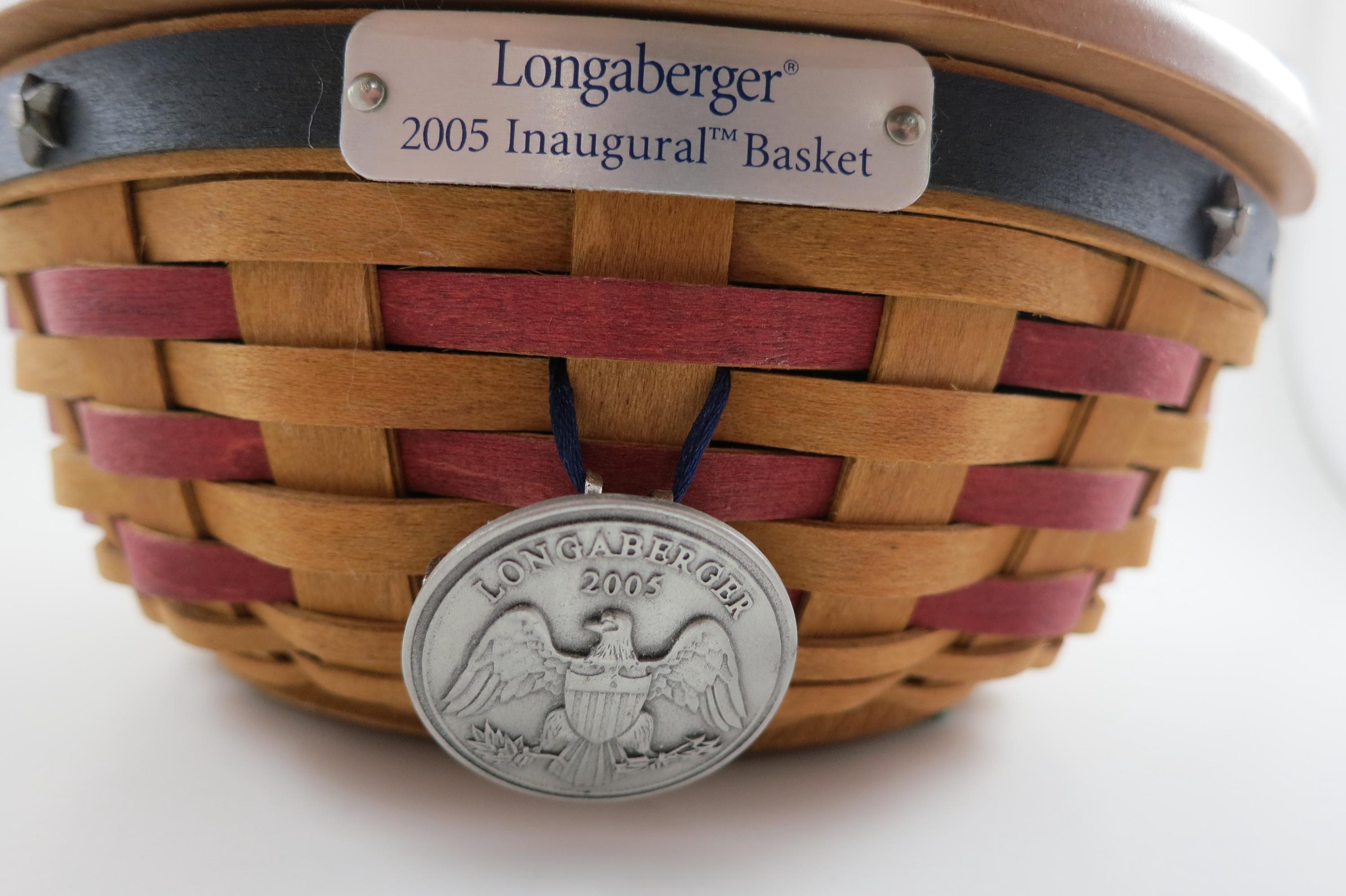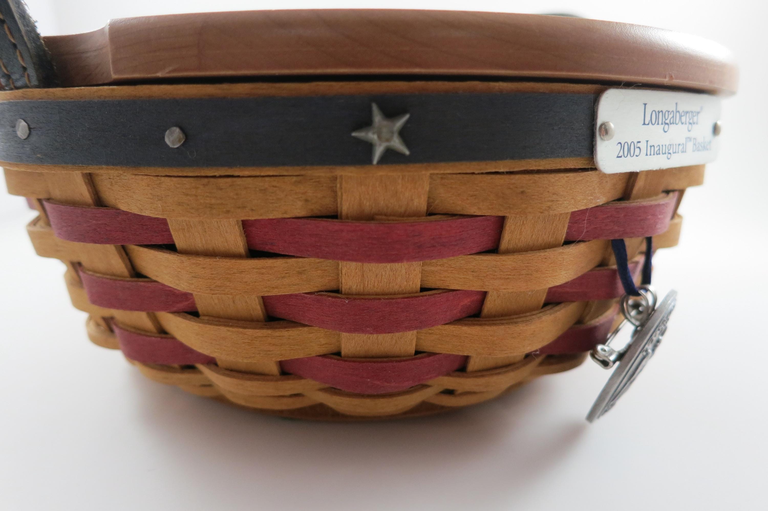2005 Longaberger Inaugural Basket with Lid Liner Plastic Protector Tie On Excellent Condition.