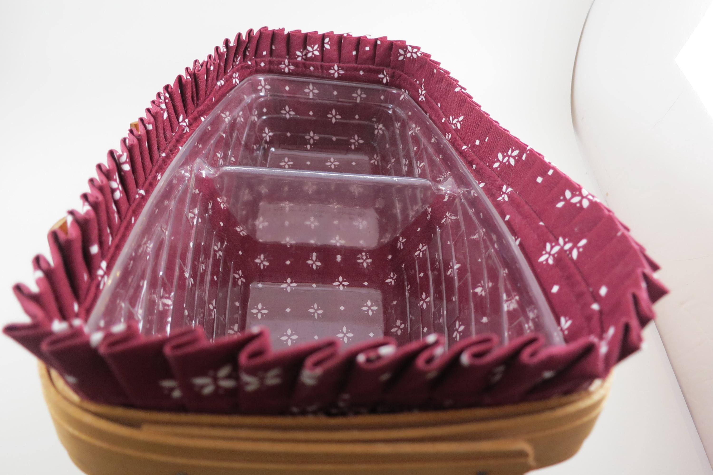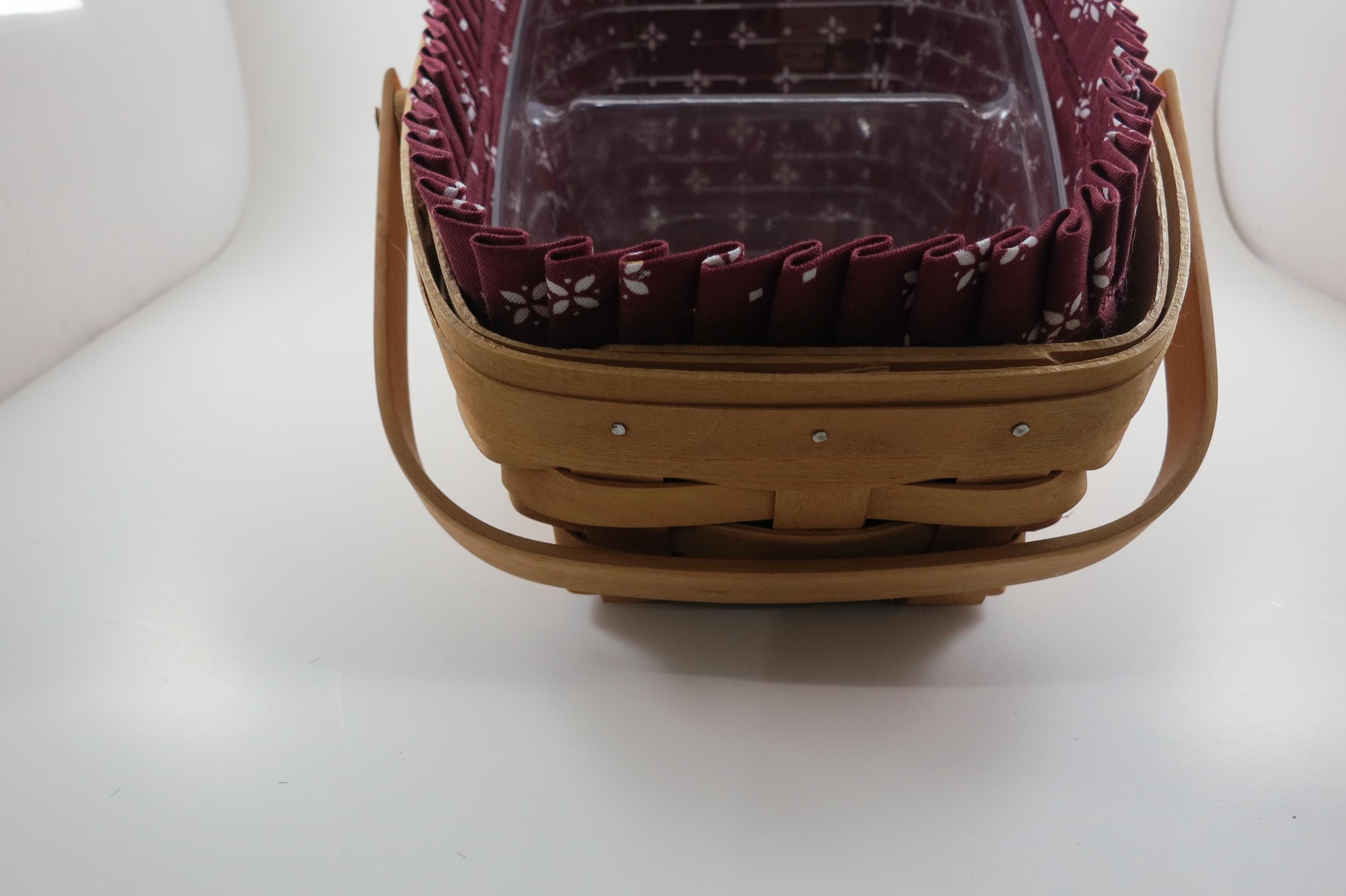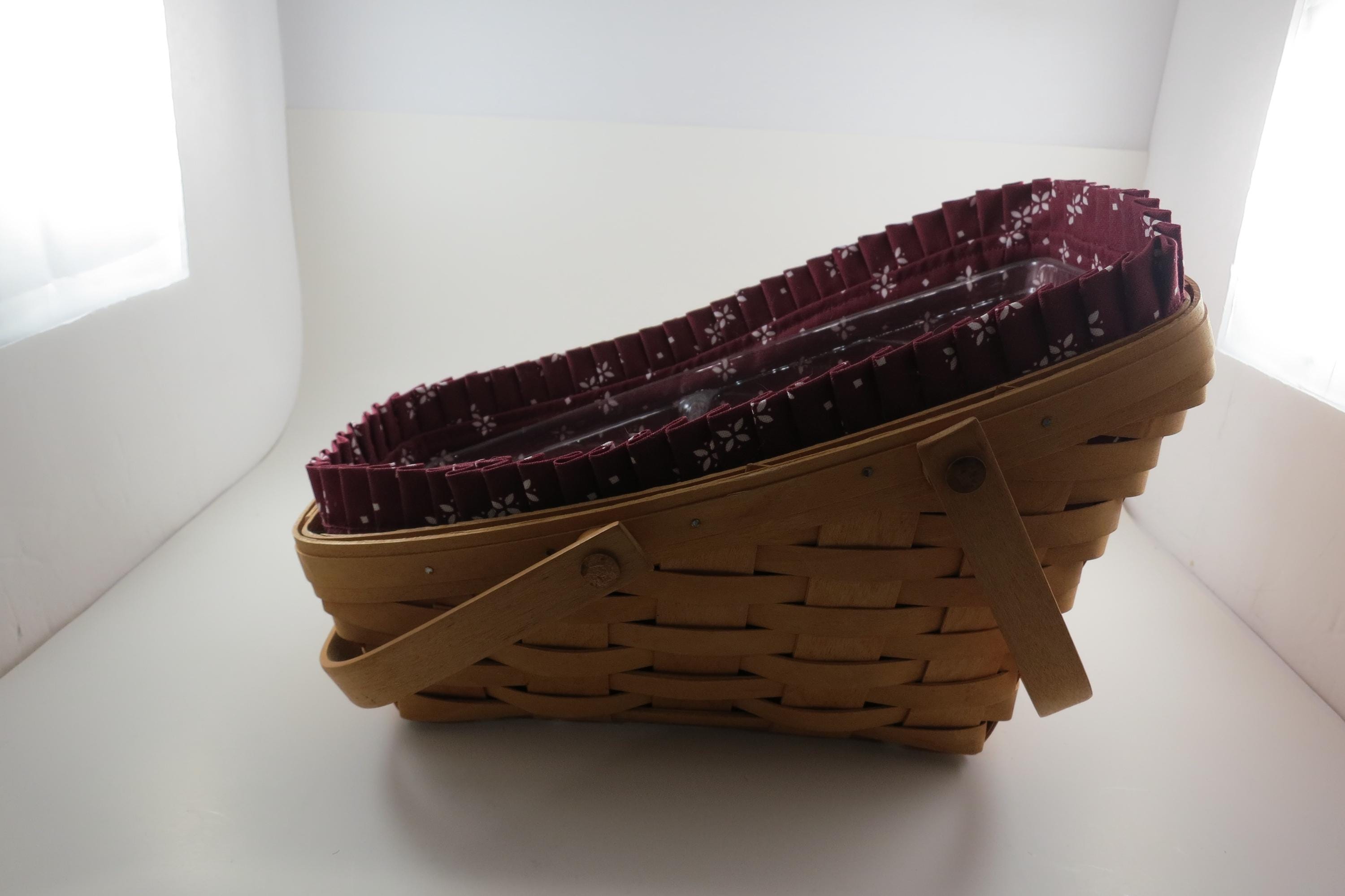2004 Longaberger Vegetable Basket with Red Cloth Liner Divided Protector Swing Handles