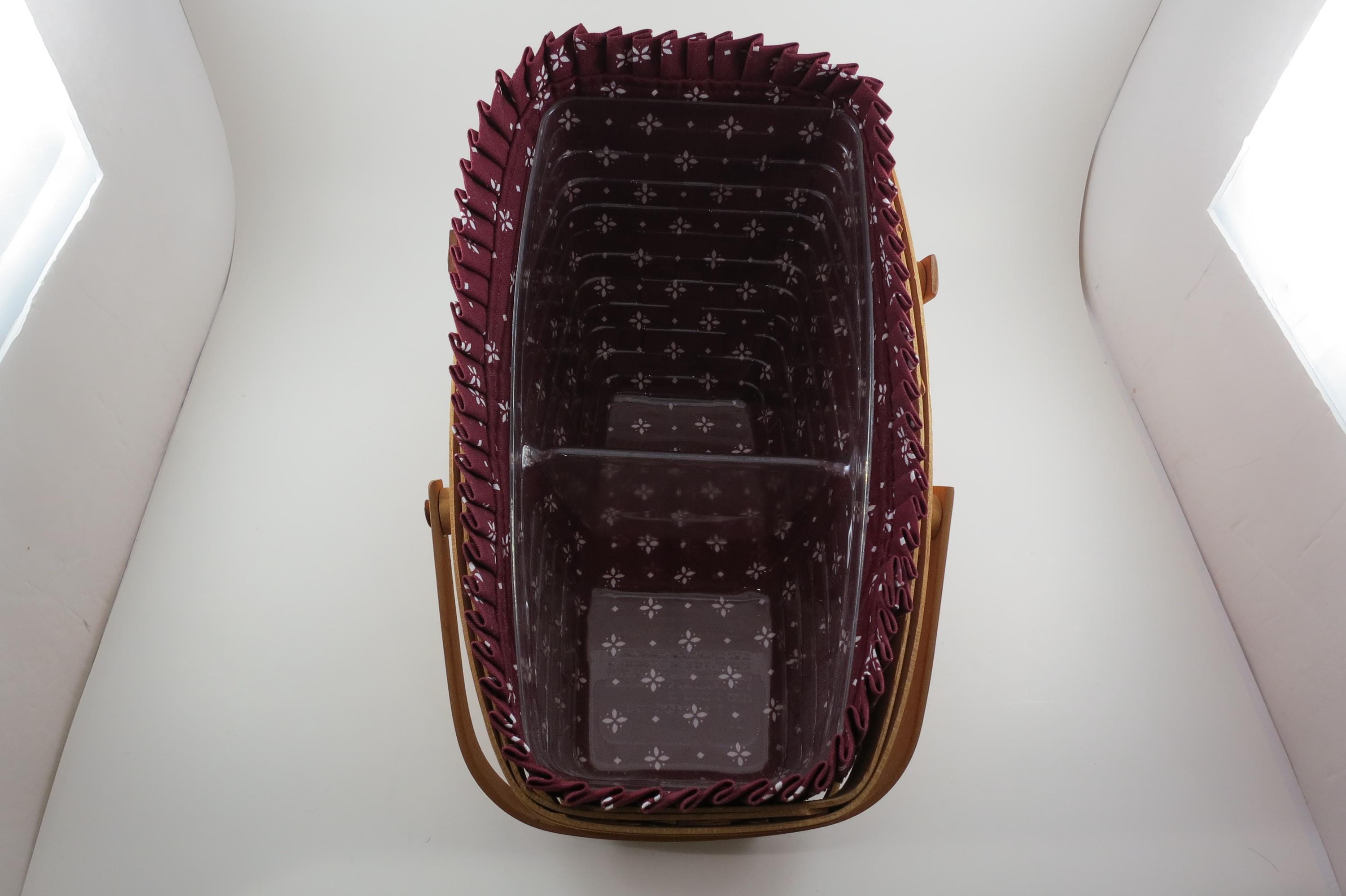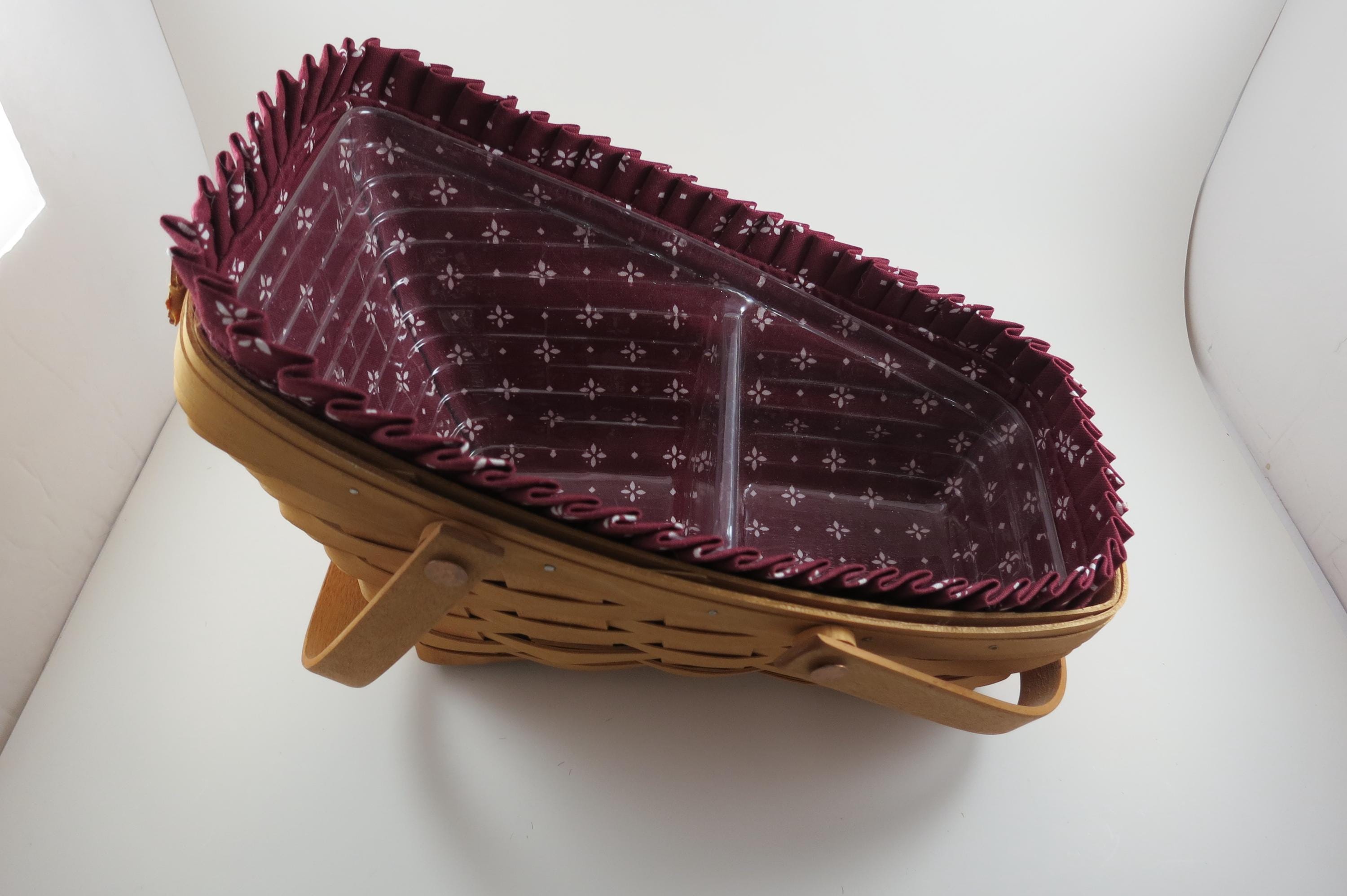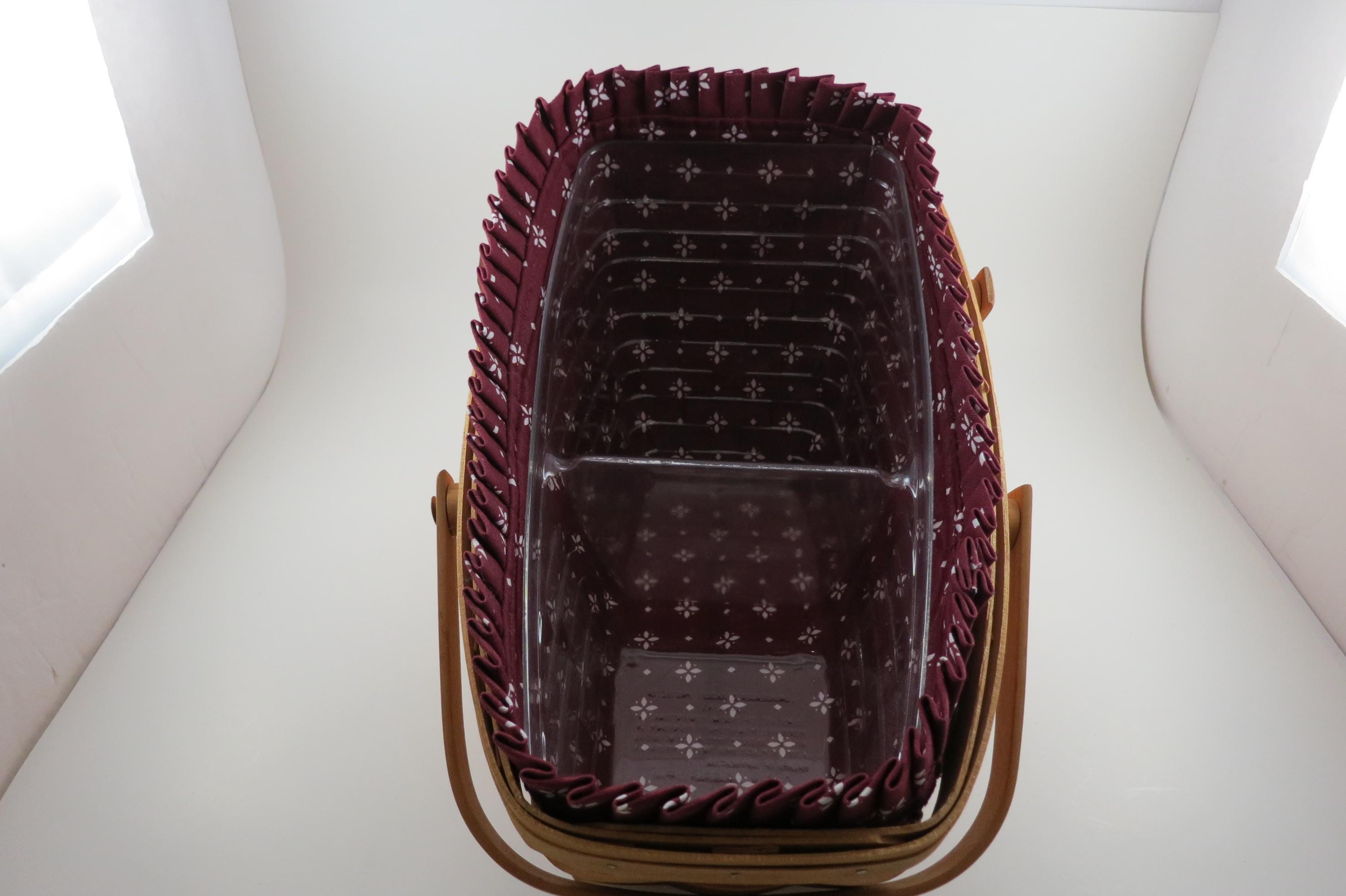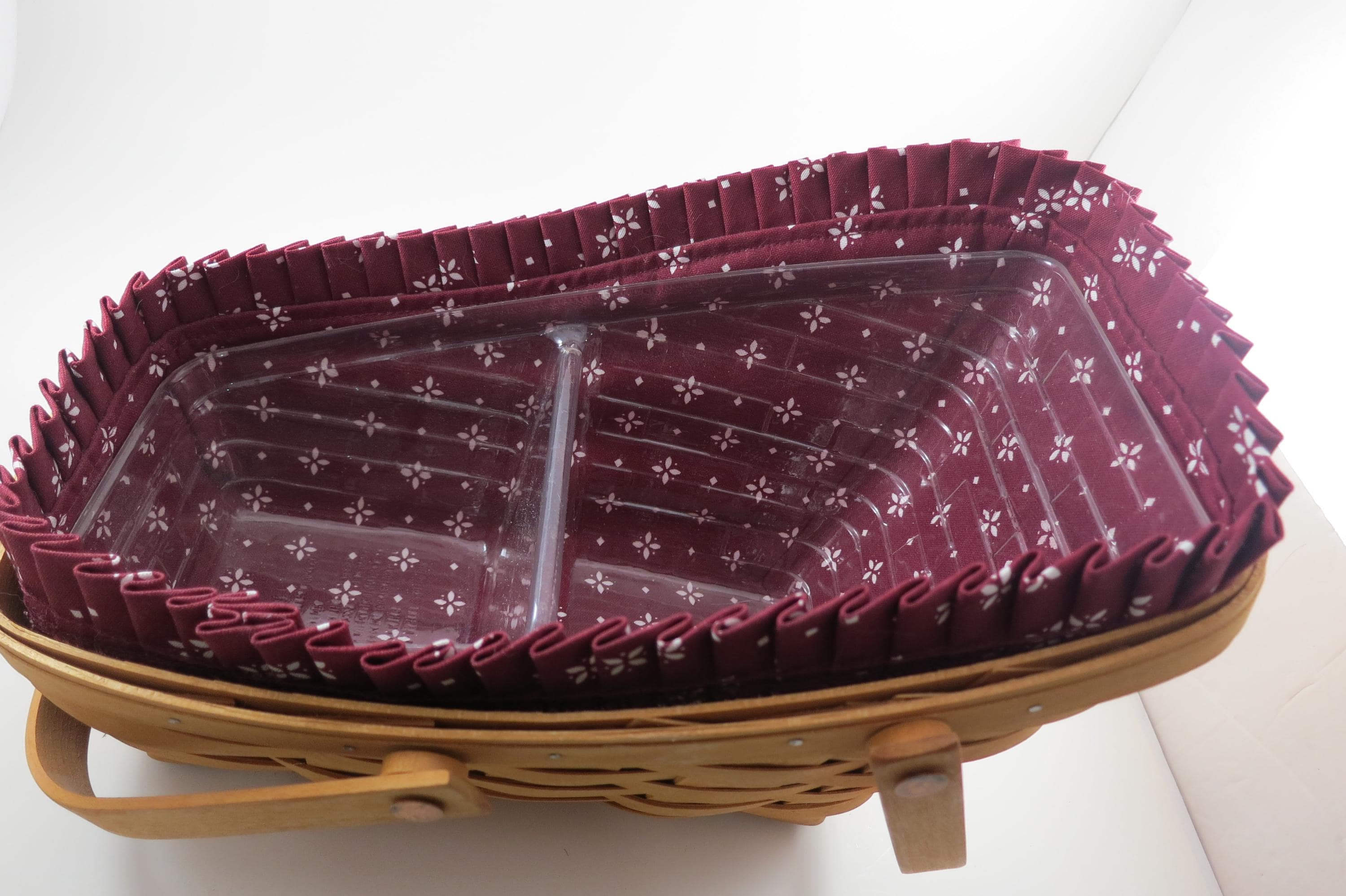 2004 Longaberger Vegetable Basket with Red Cloth Liner Divided Protector Swing Handles