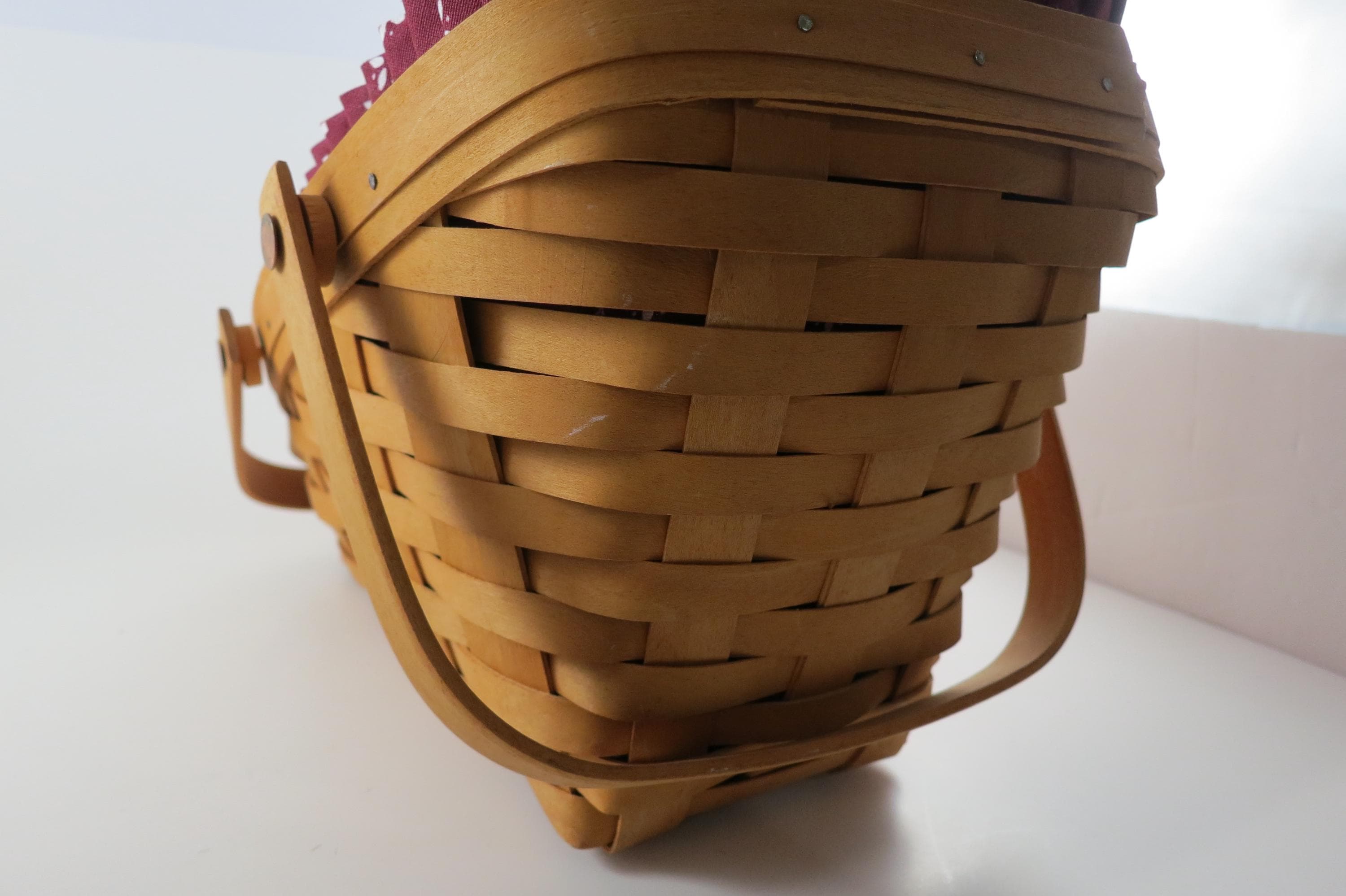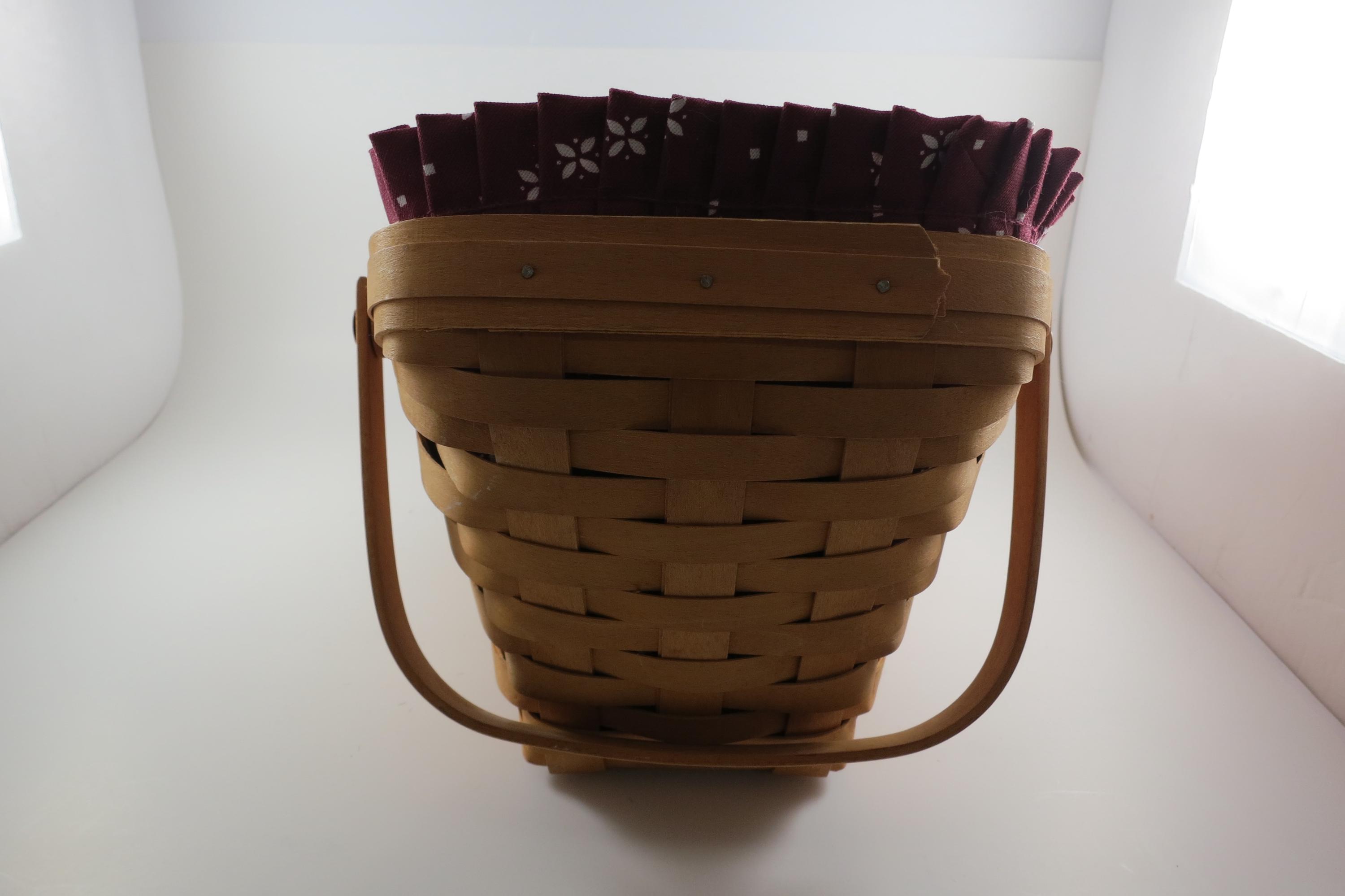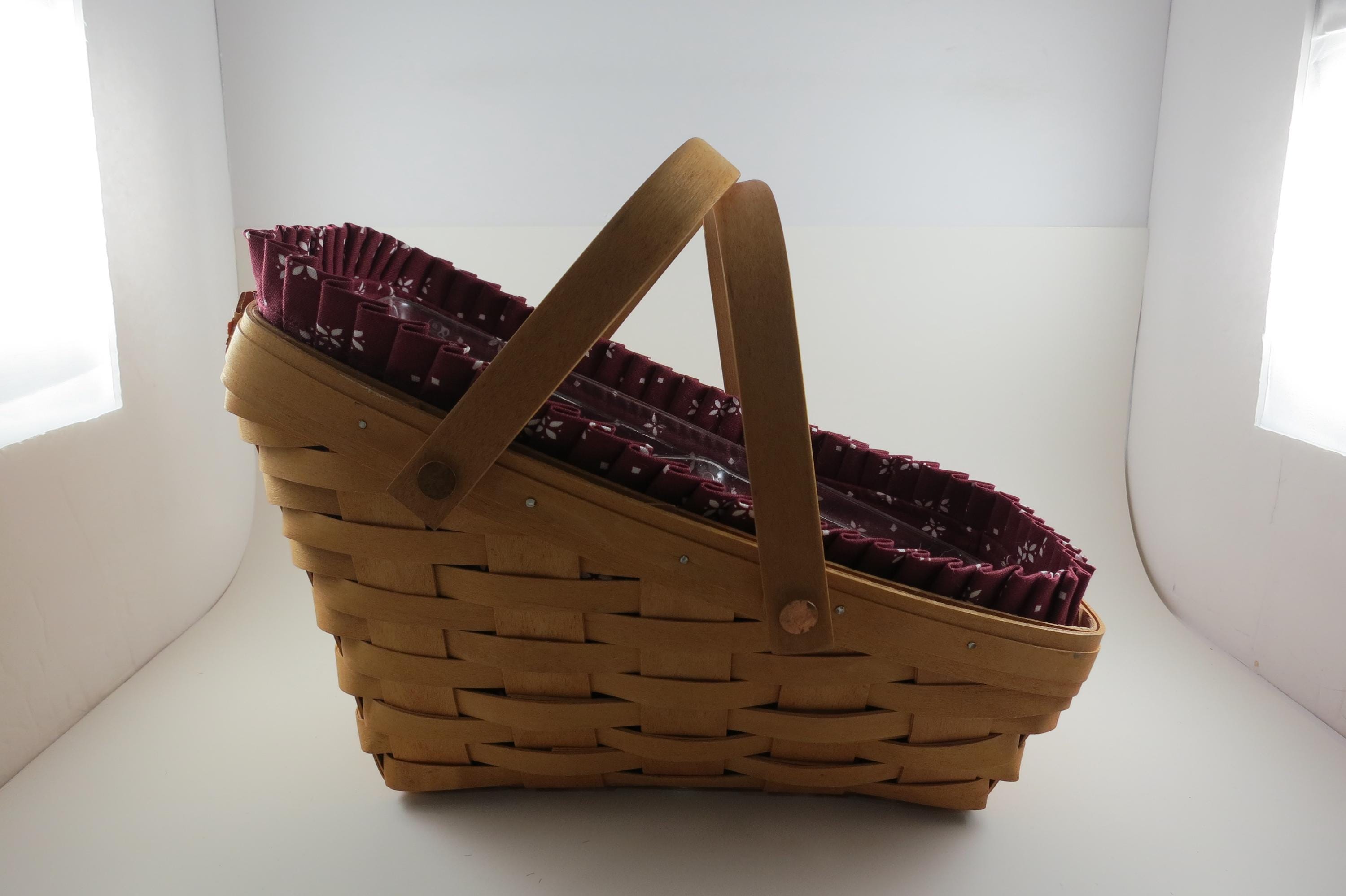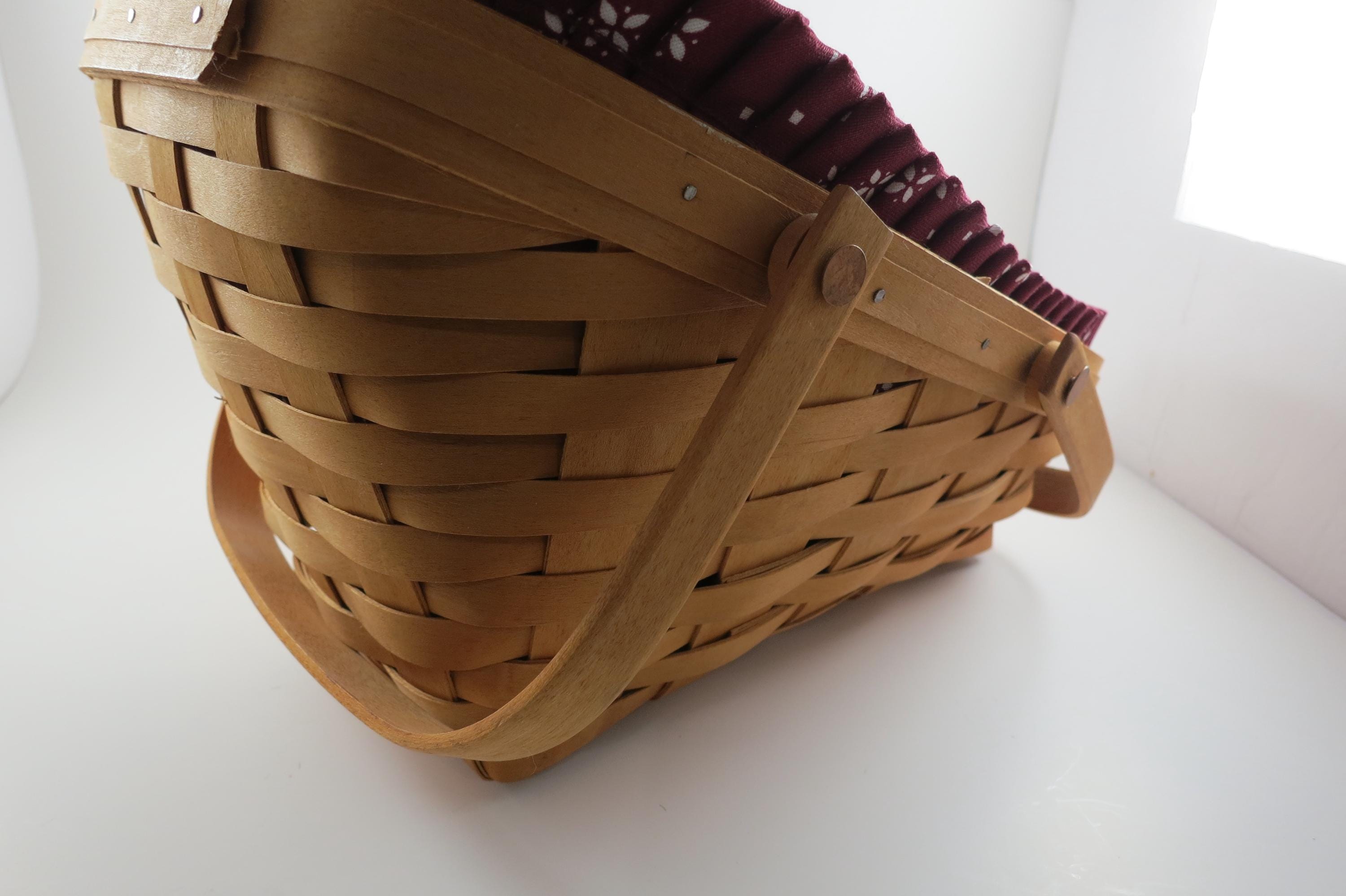 2004 Longaberger Vegetable Basket with Red Cloth Liner Divided Protector Swing Handles.