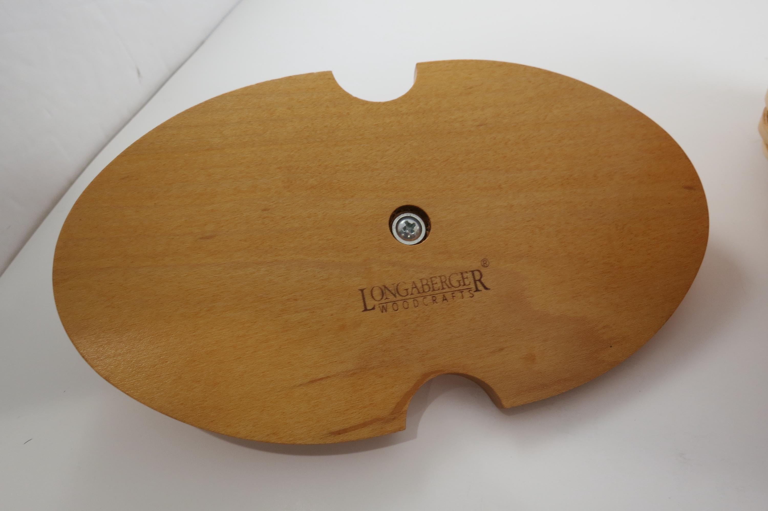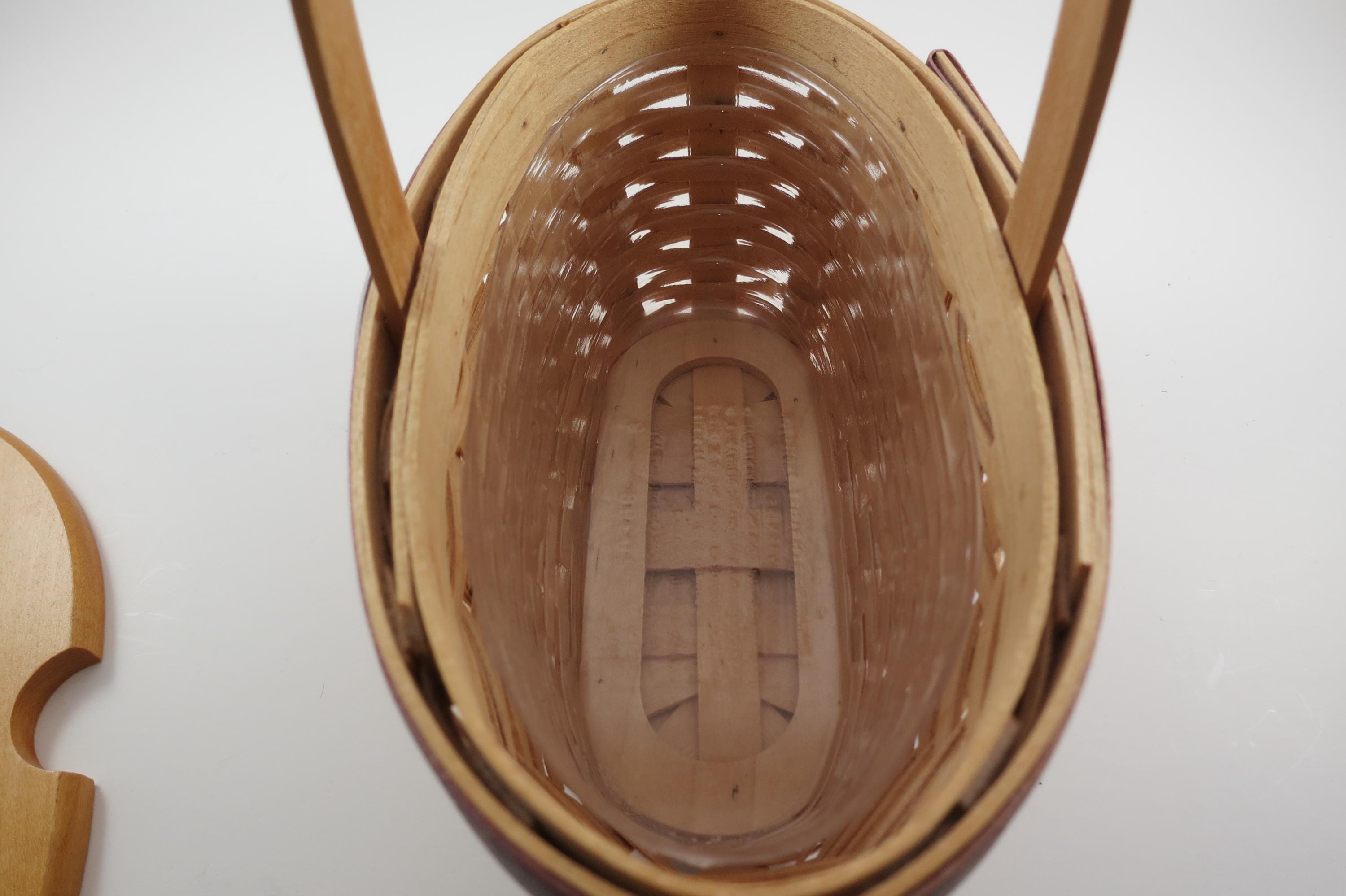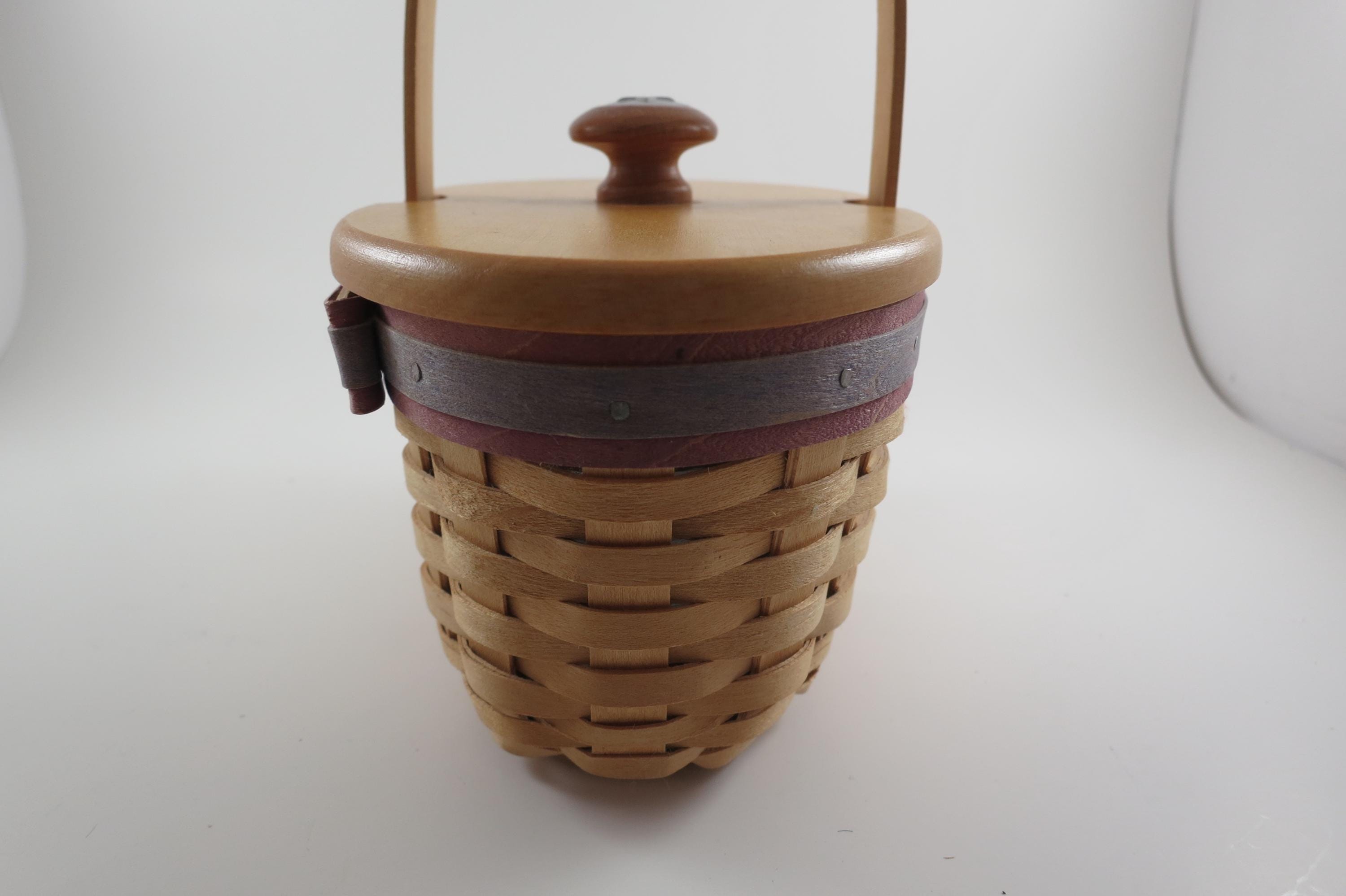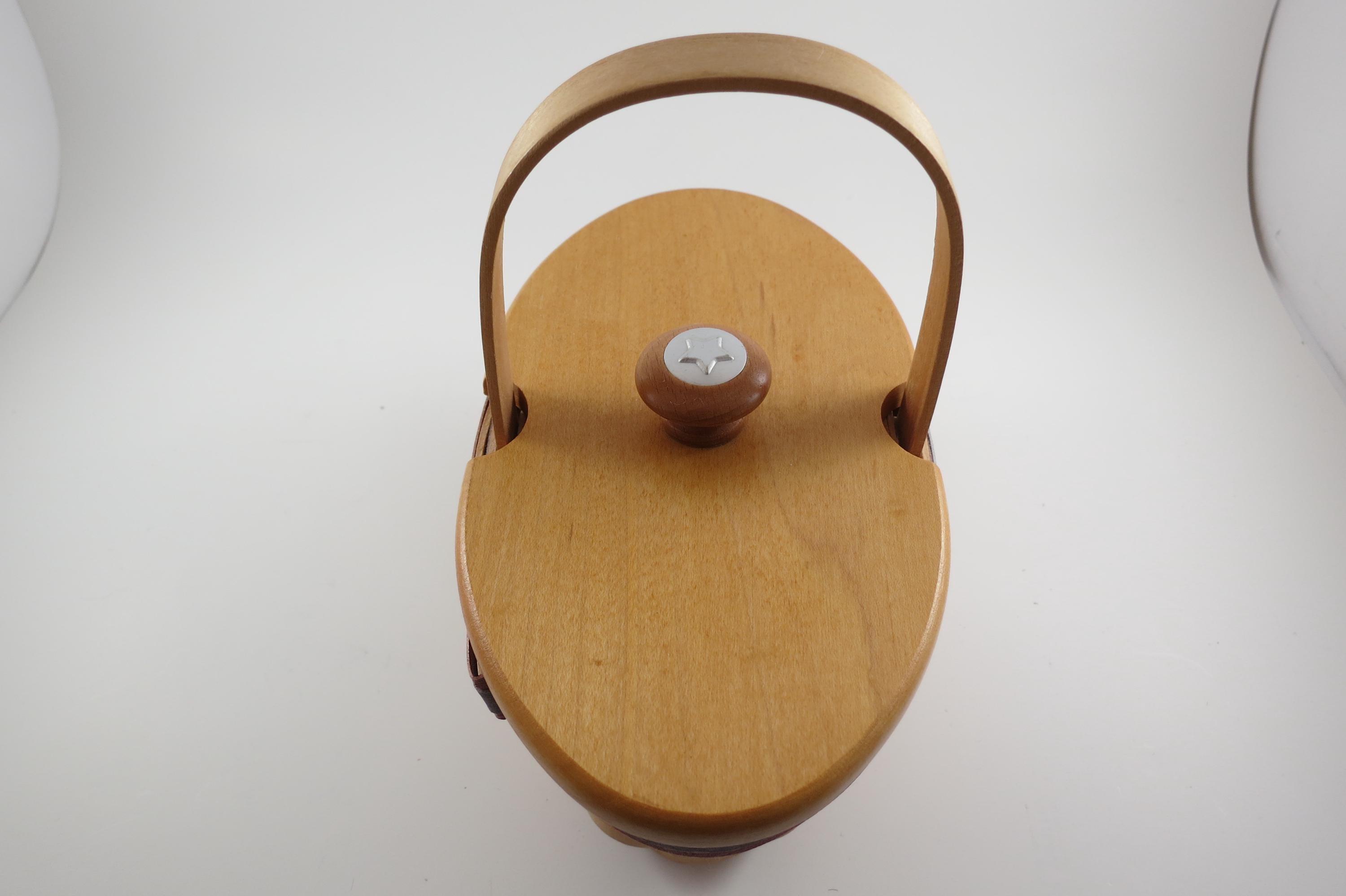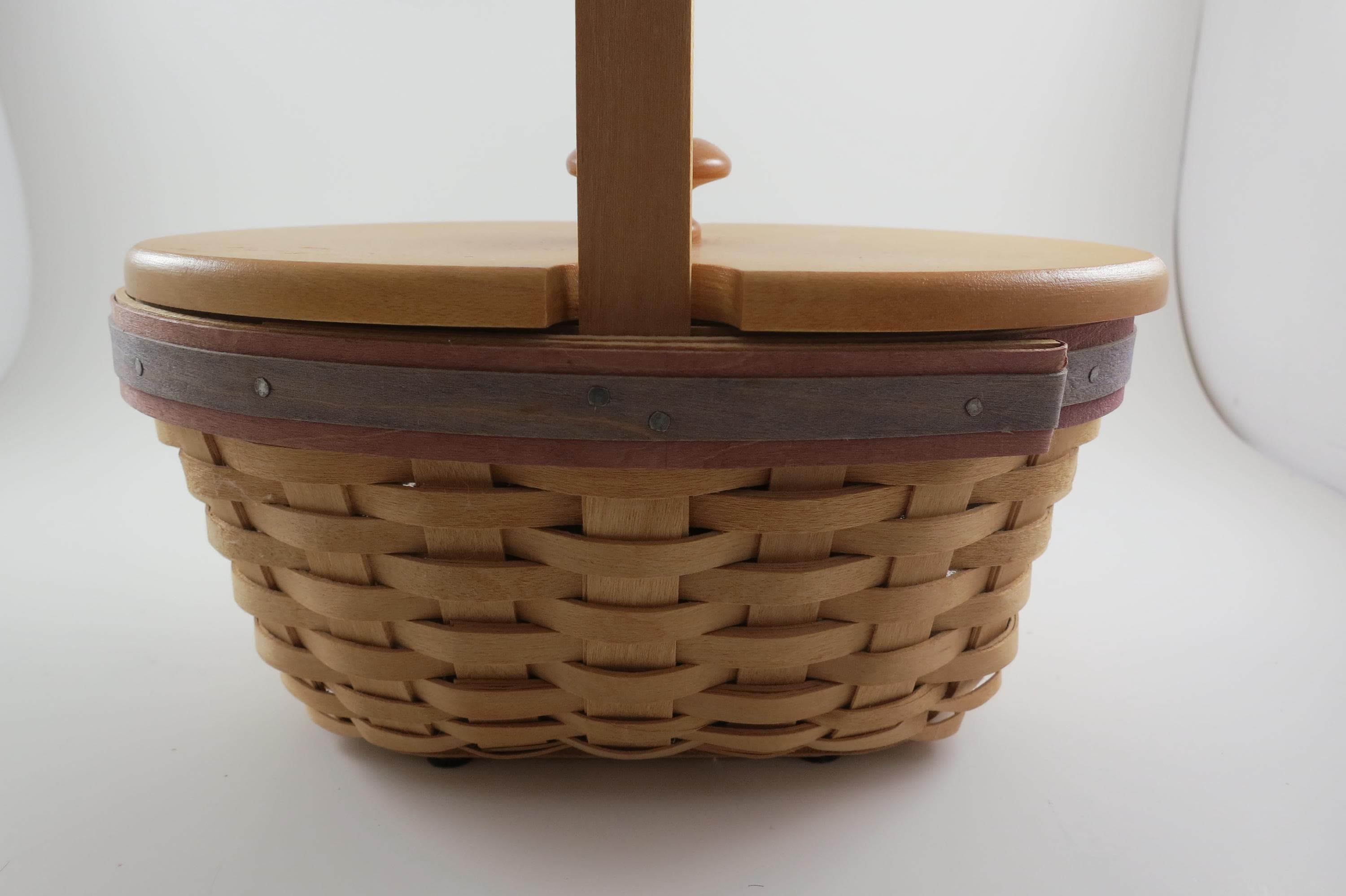 As with all Authentic Longabergers, this one is artist initialed and dated on the bottom. Includes the plastic protector and wooden lid. Measures 8 inches wide, 4 1/2 inches deep and 3 3/4 inches tall. (height is 8 inches with the handle included).