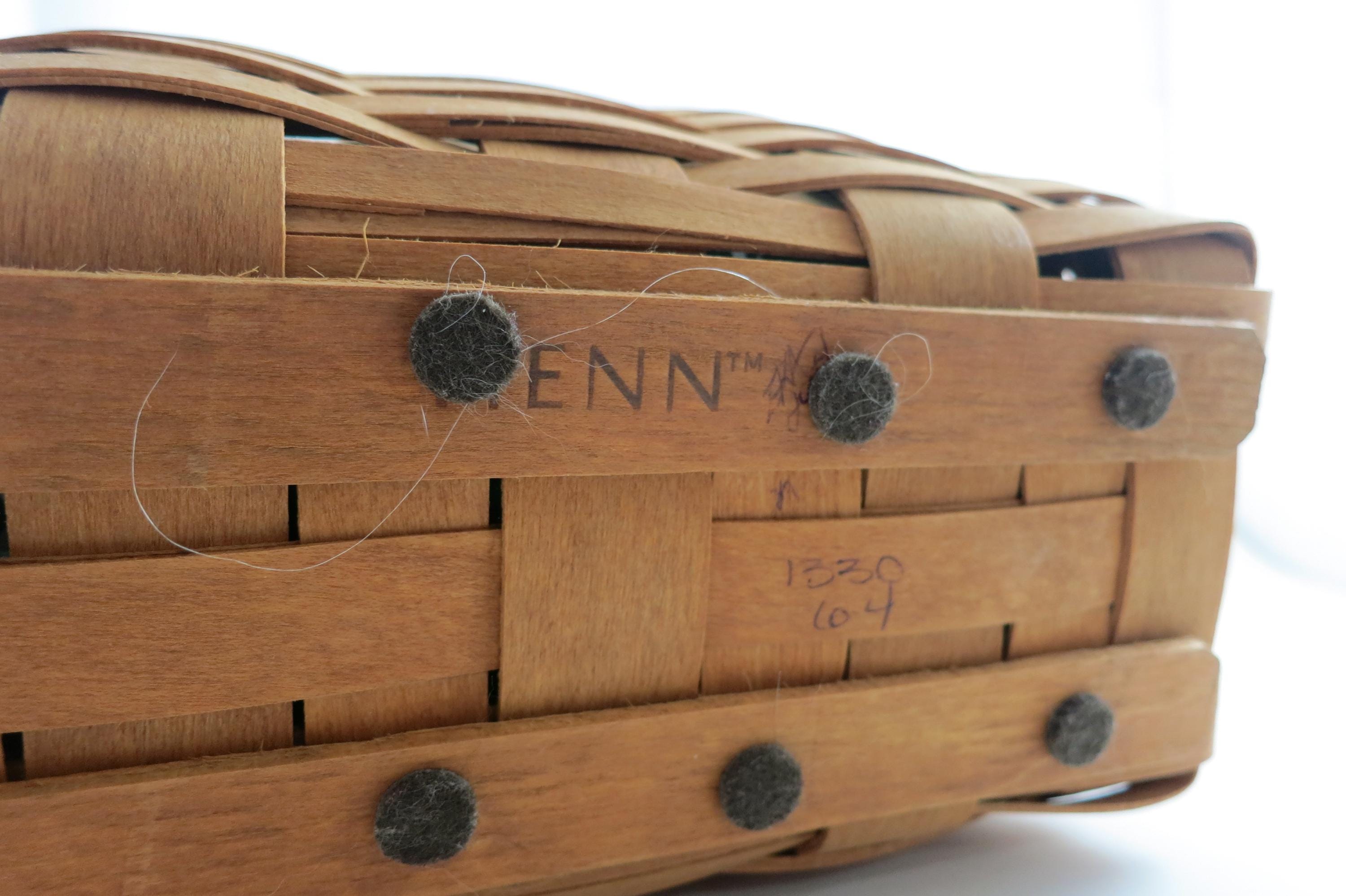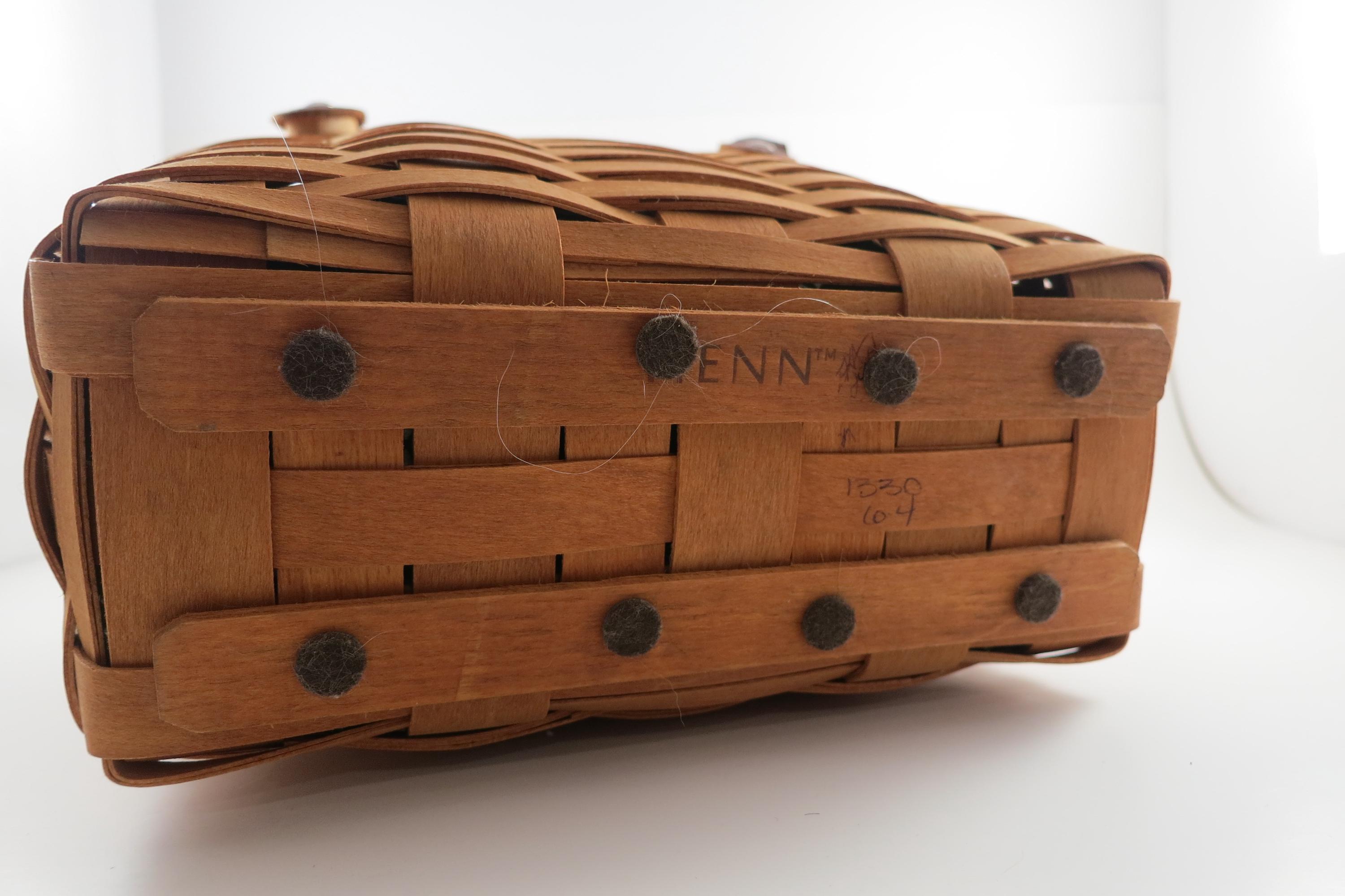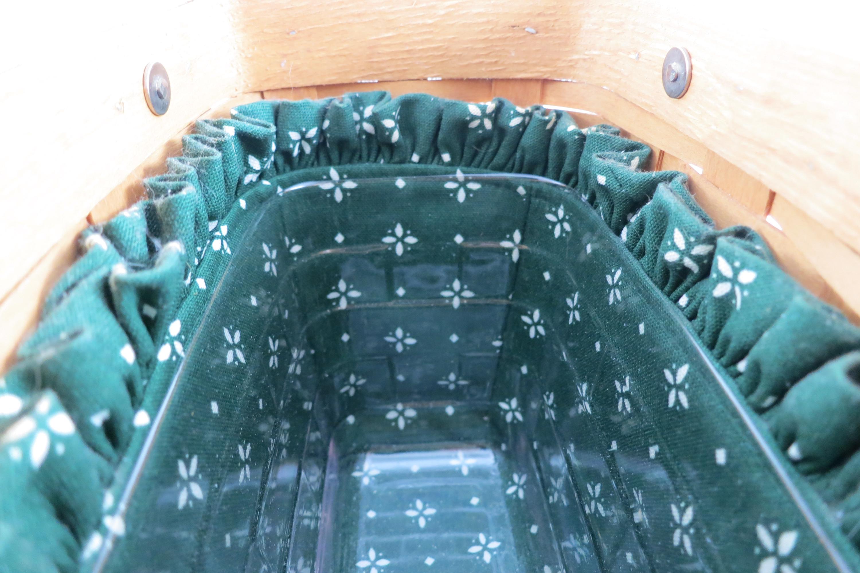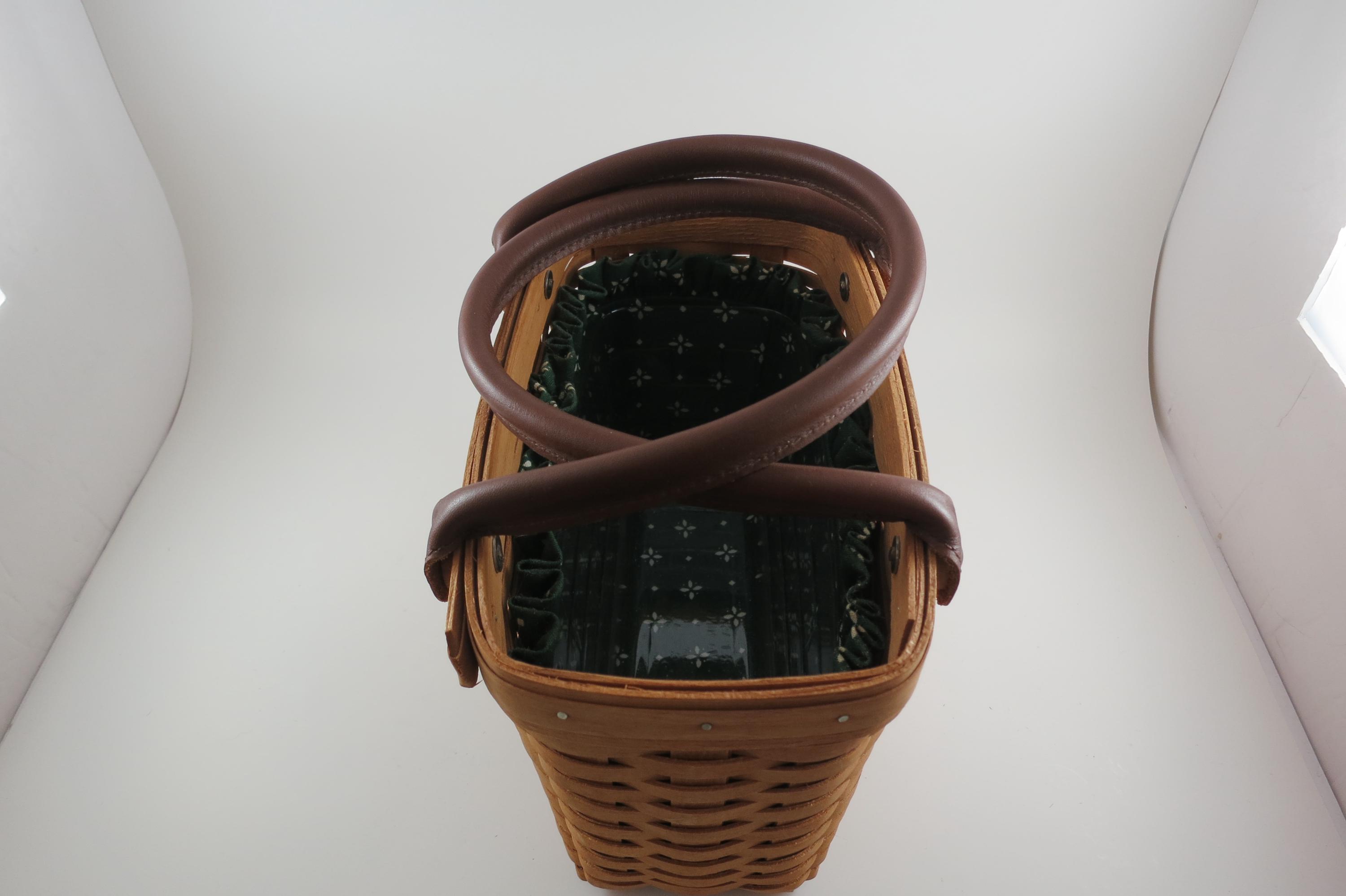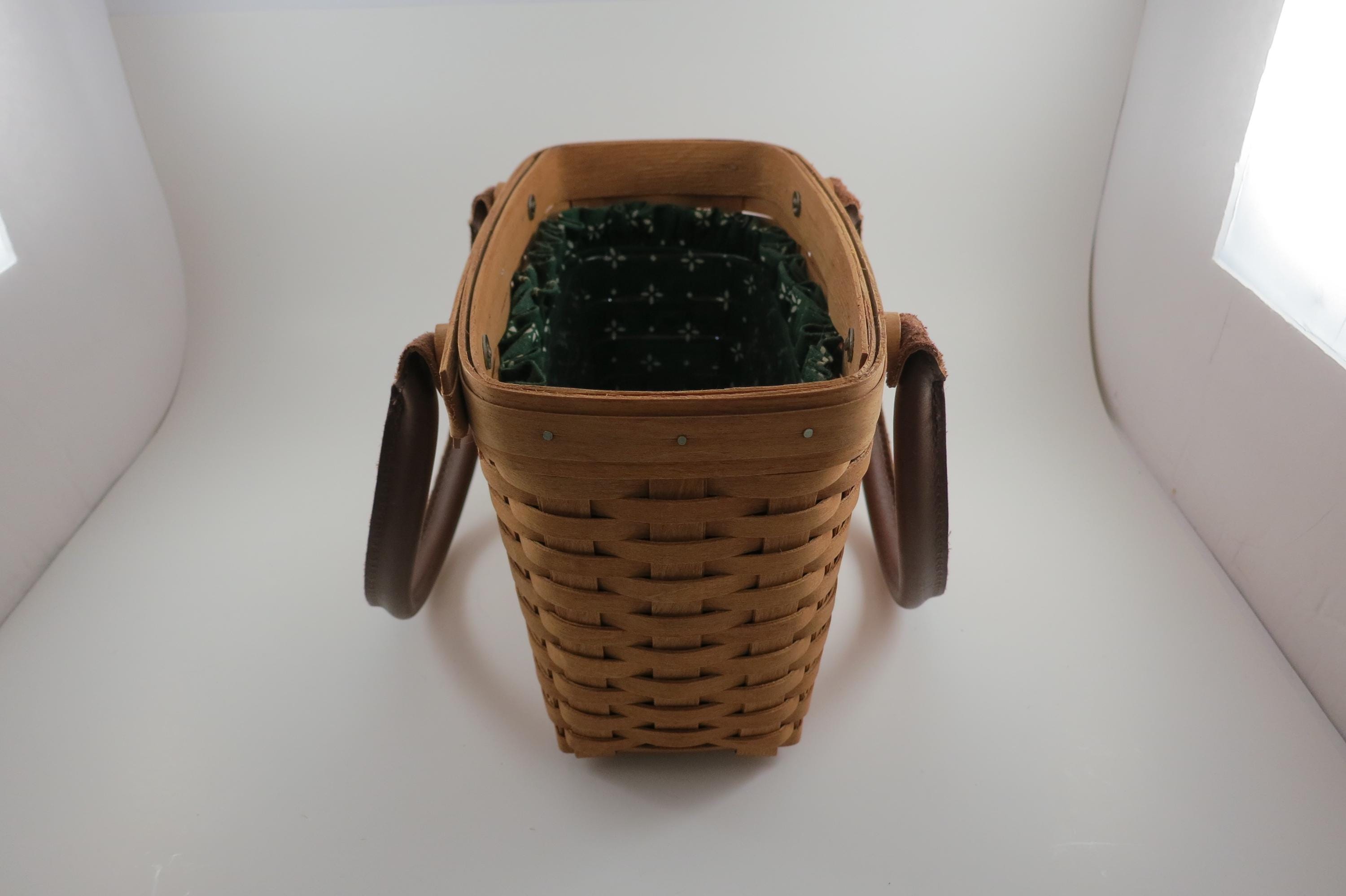 Longaberger Summertime Purse Handbag Basket Double Leather Handles Green Cloth Liner and Protector Excellent Condition. Signed and dated on the bottom. Includes the green checkered cloth liner, dual leather handles and plastic protector. Measures 9 3/4 inches wide, 5 1/2 inches deep and 7 Inches Tall. Very Nice Basket!