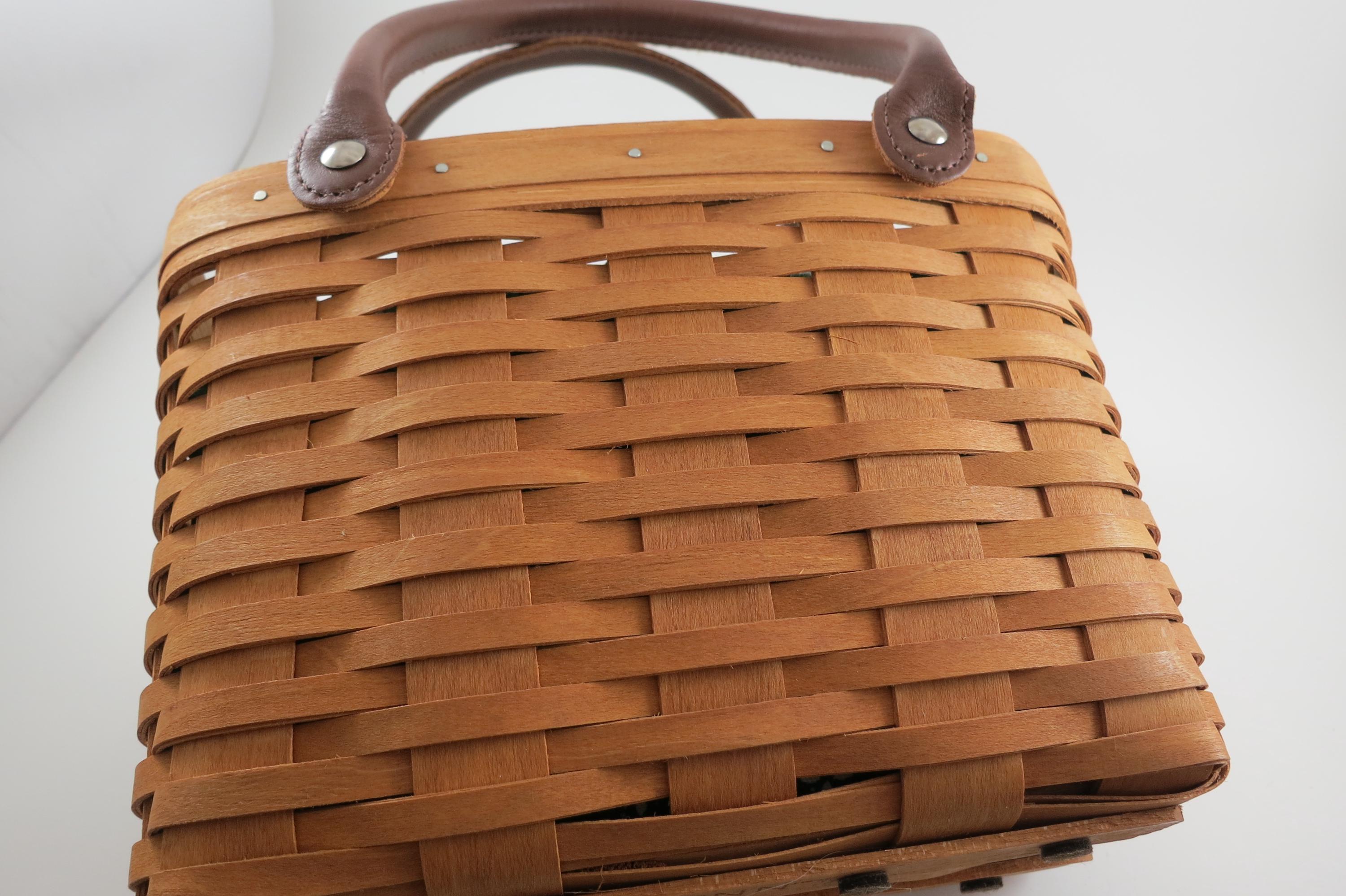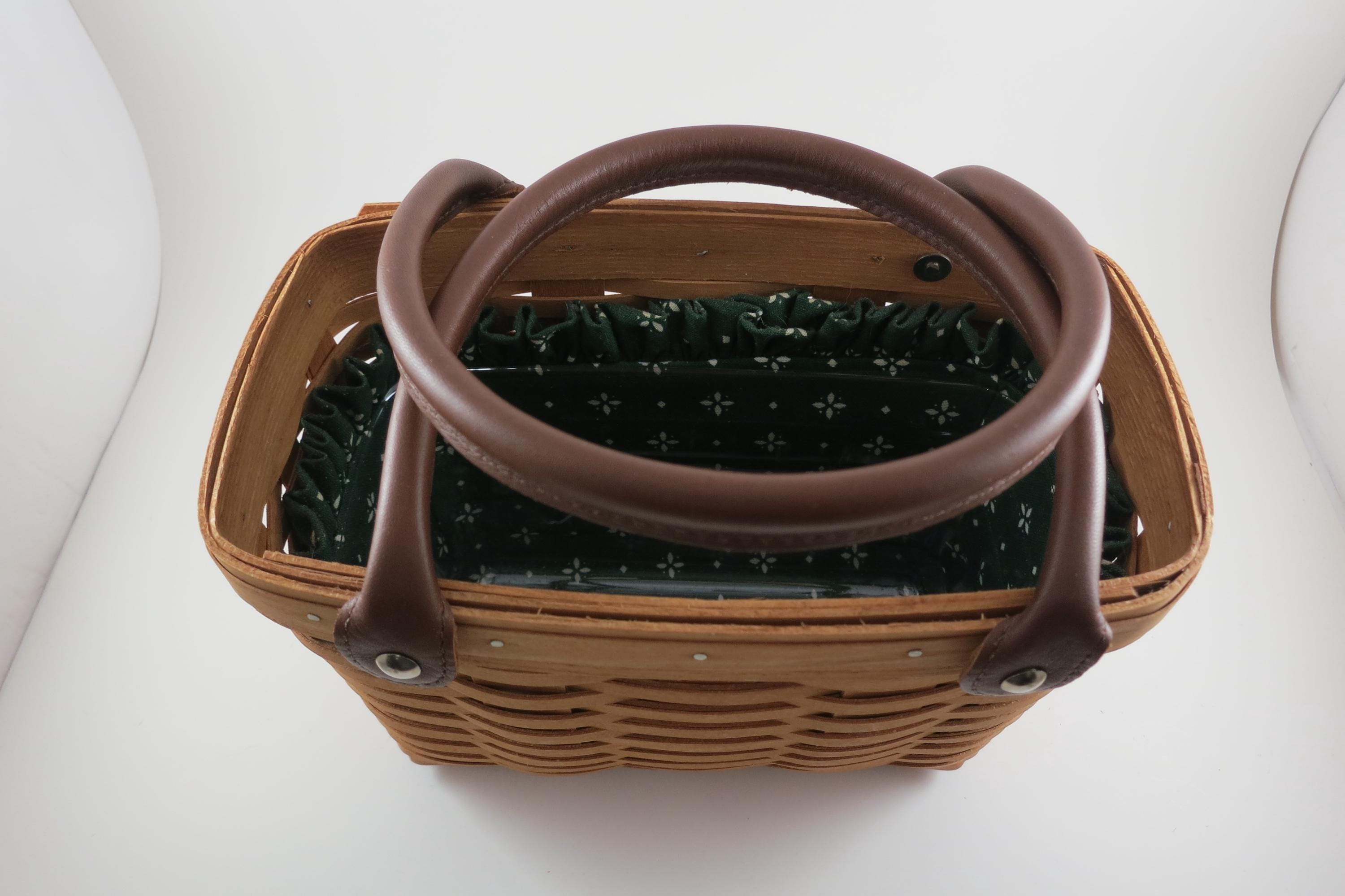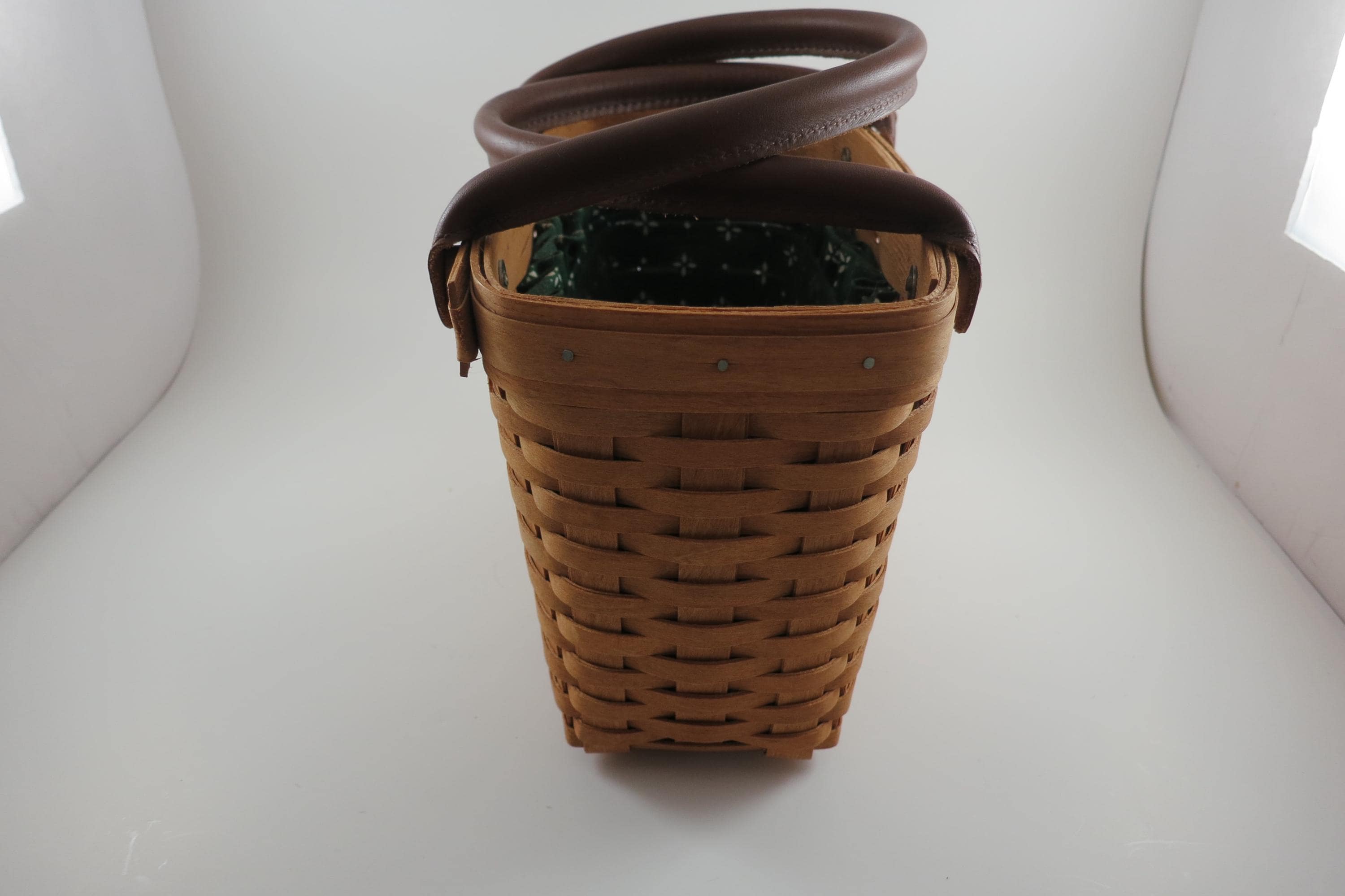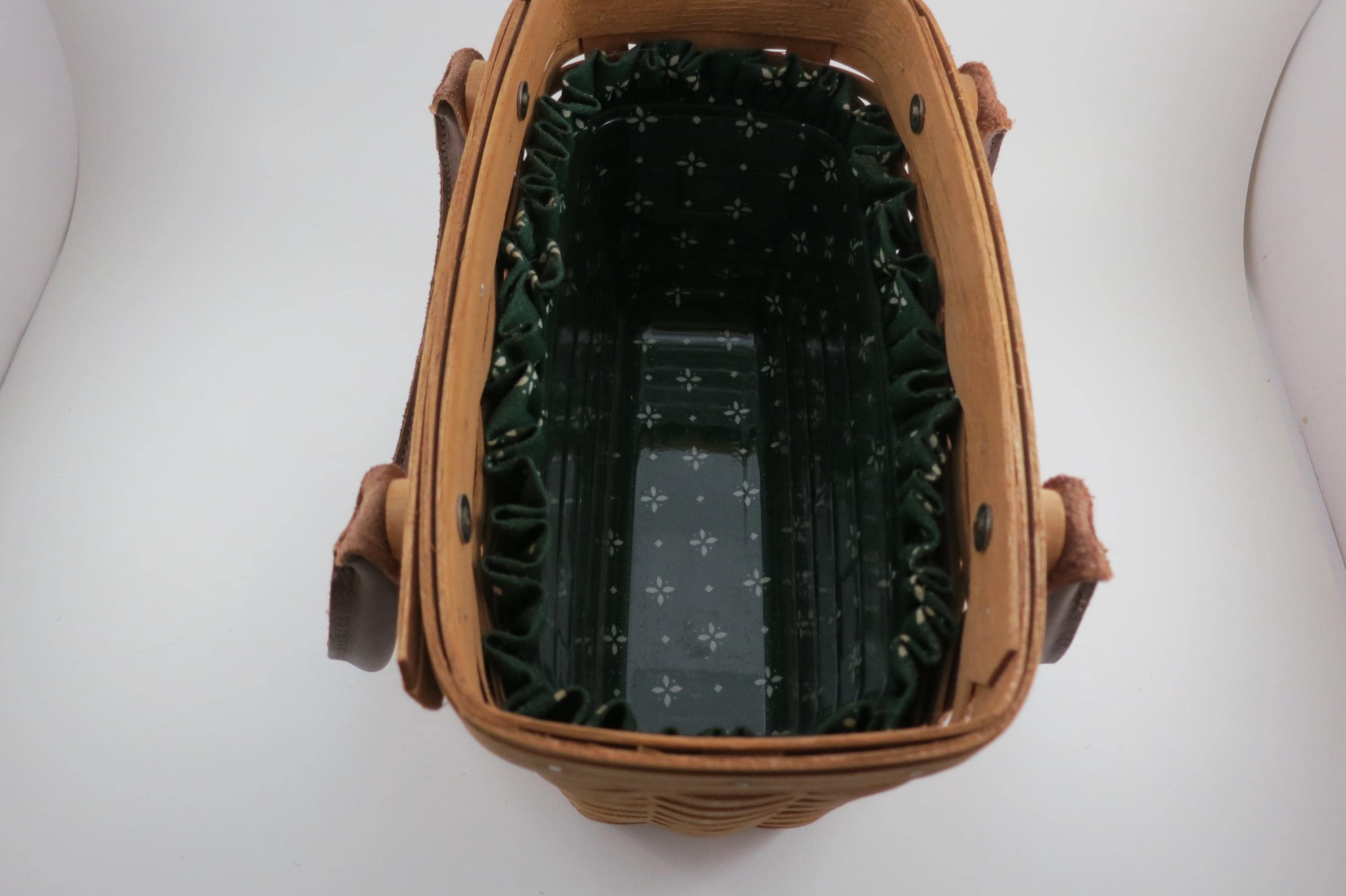 Longaberger Summertime Purse Handbag Basket Double Leather Handles Green Cloth Liner and Protector Excellent Condition