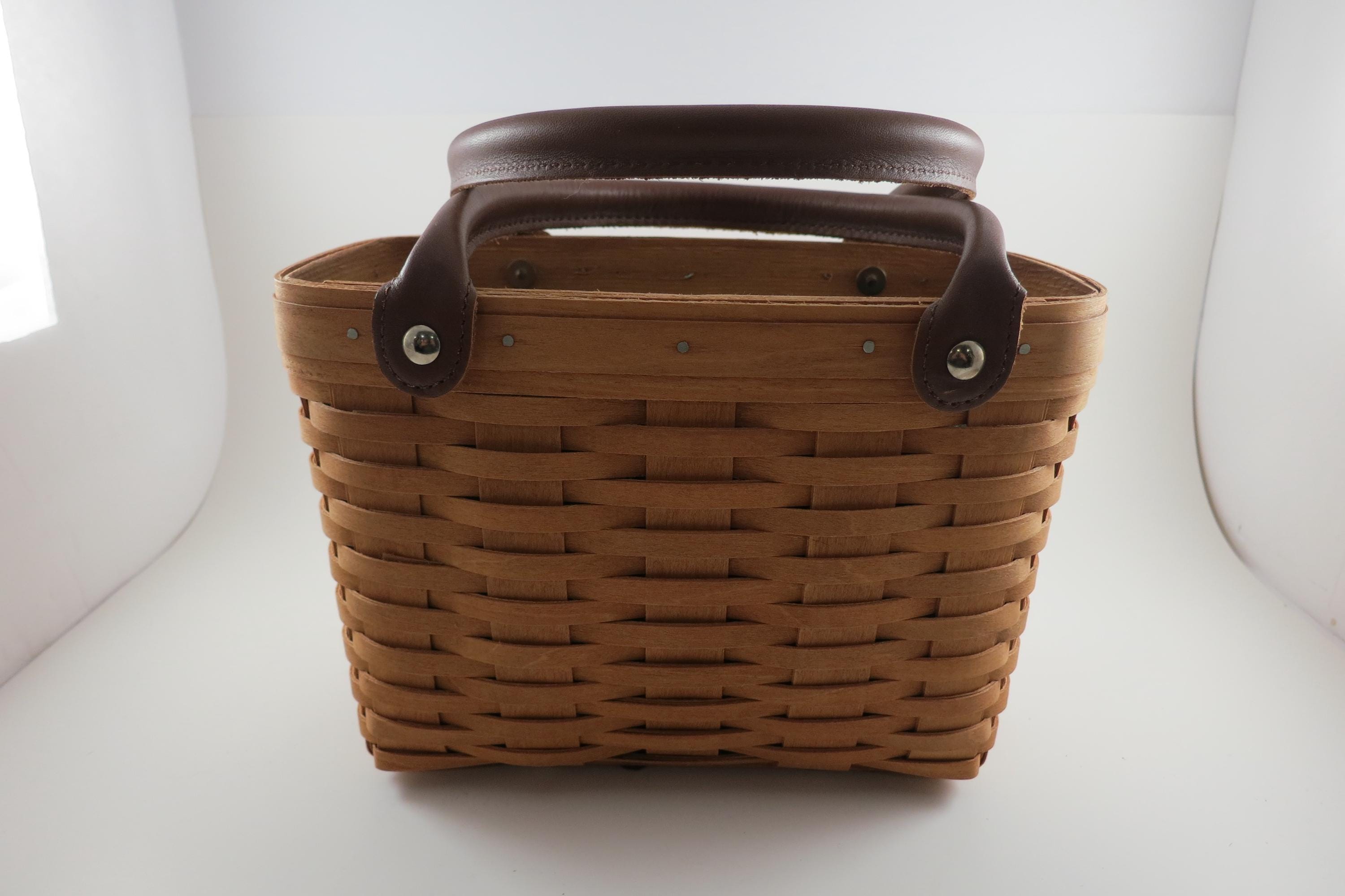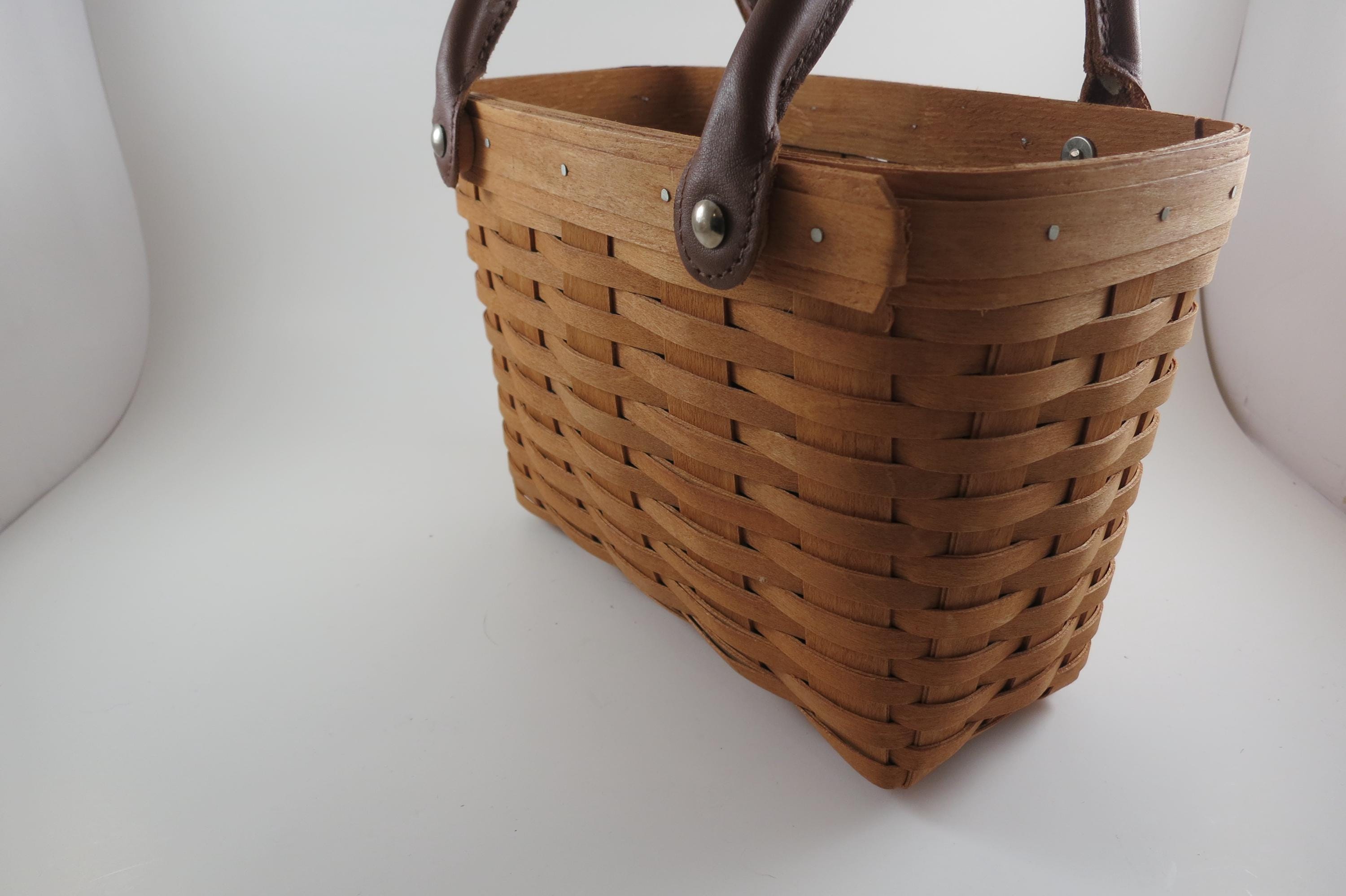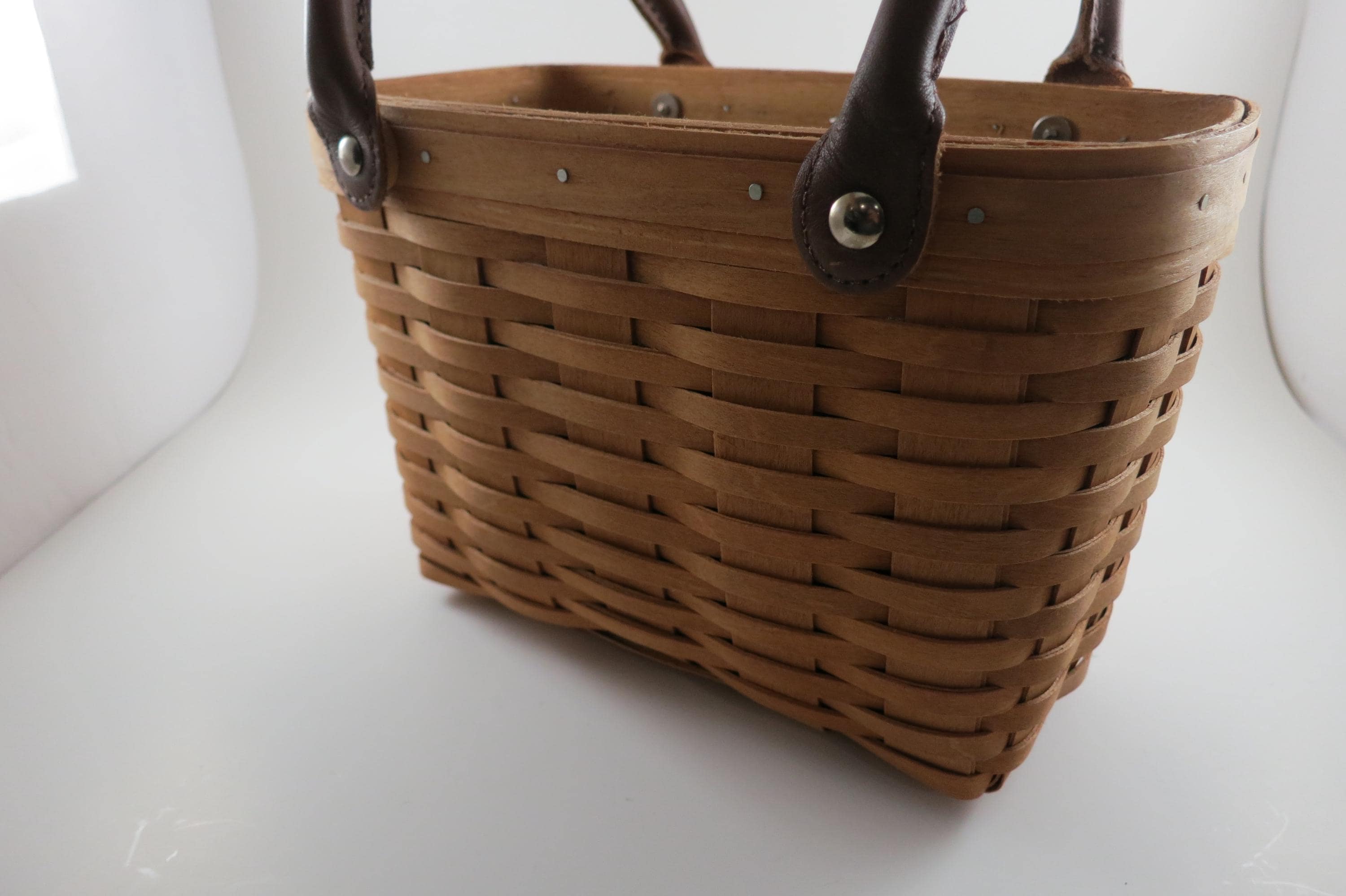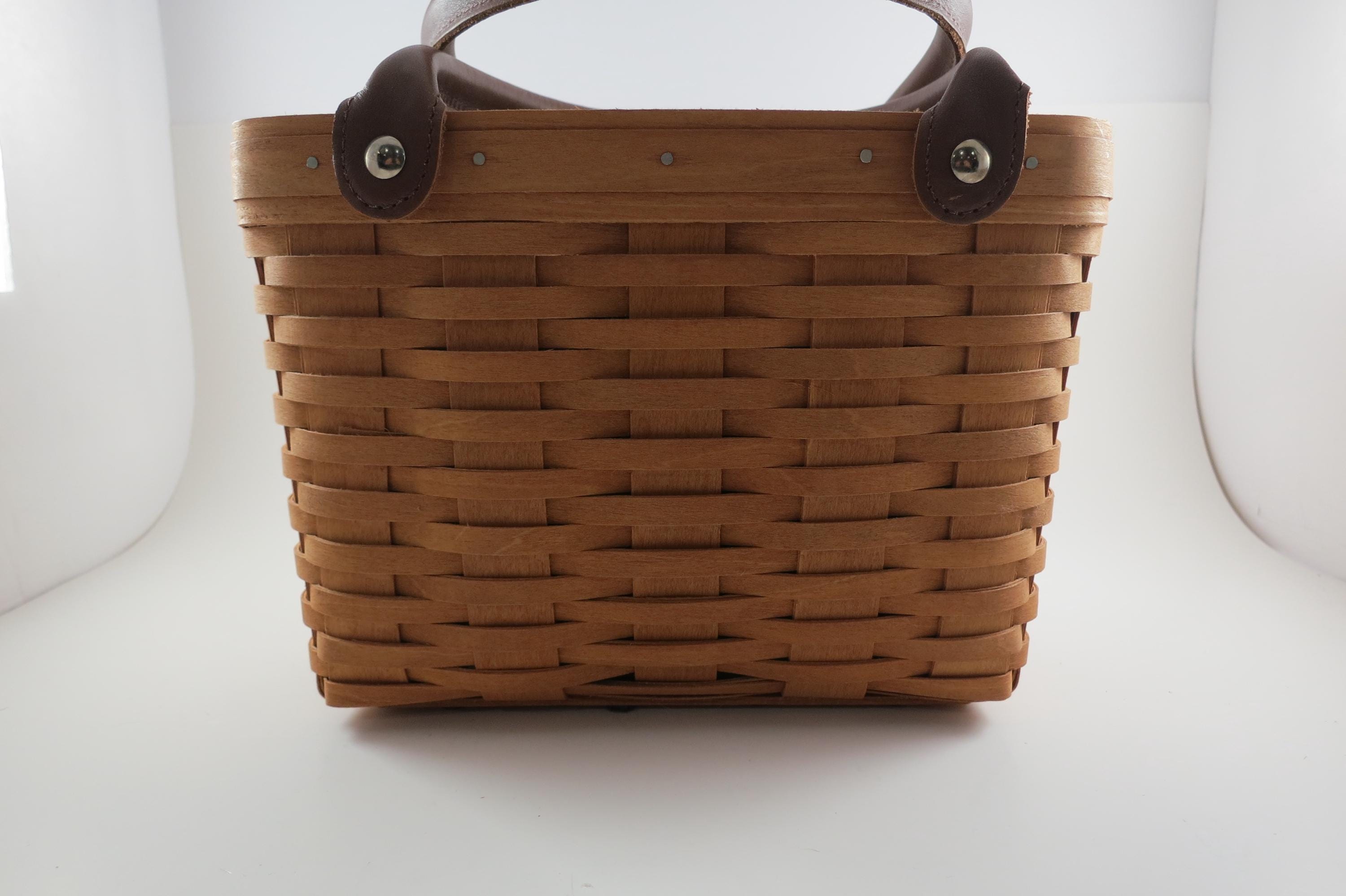 Longaberger Summertime Purse Handbag Basket Double Leather Handles Green Cloth Liner and Protector Excellent Condition