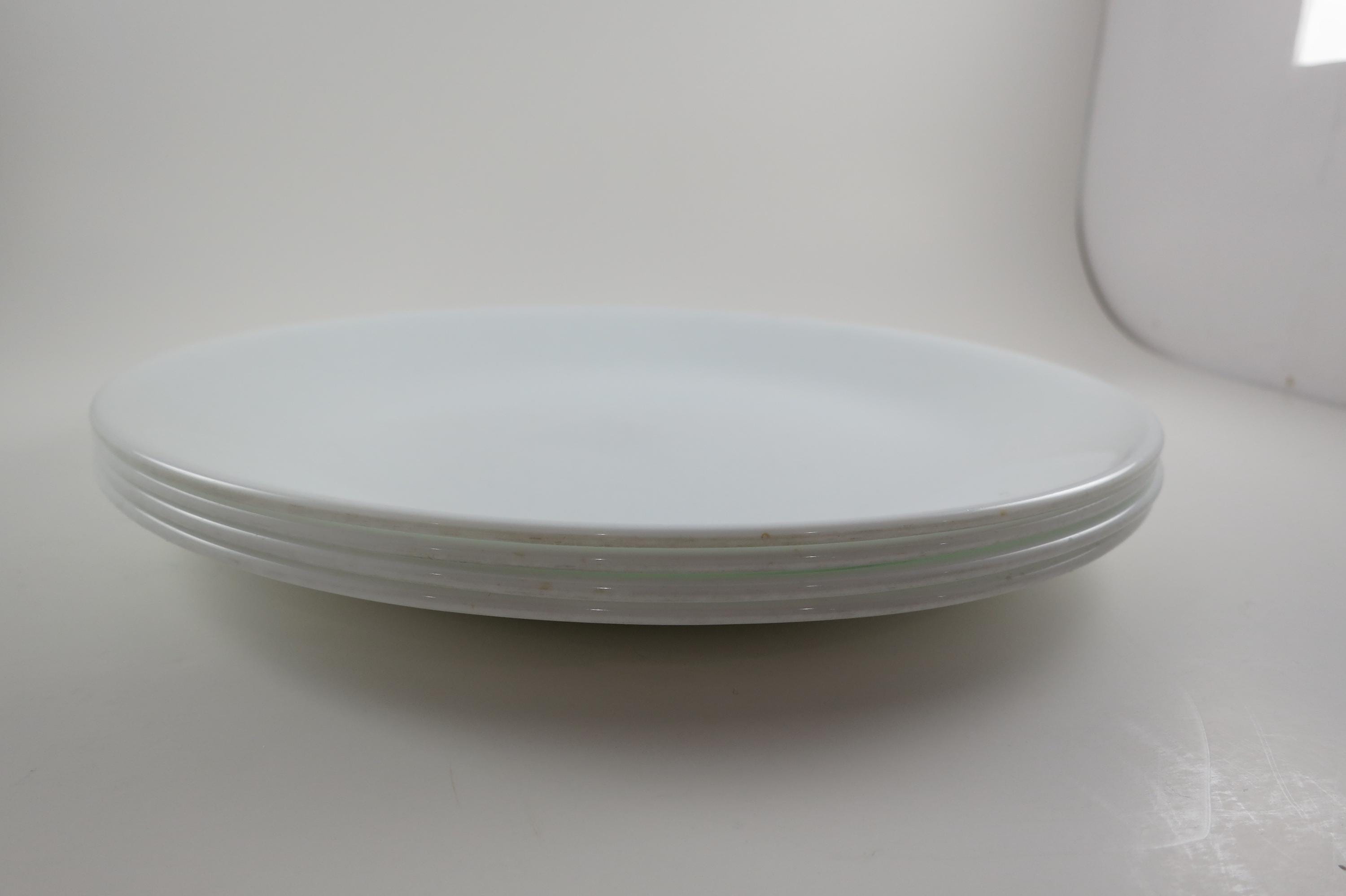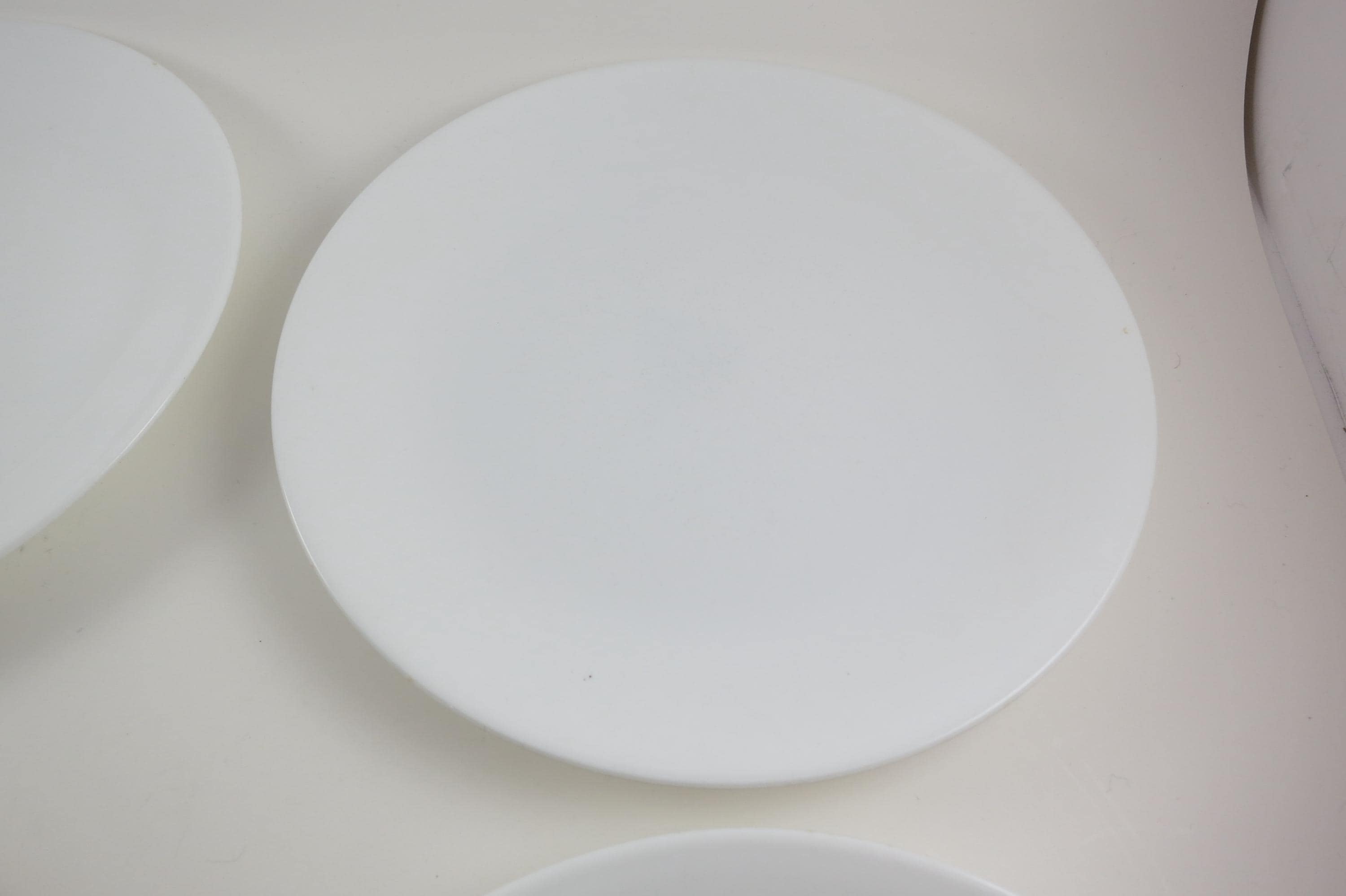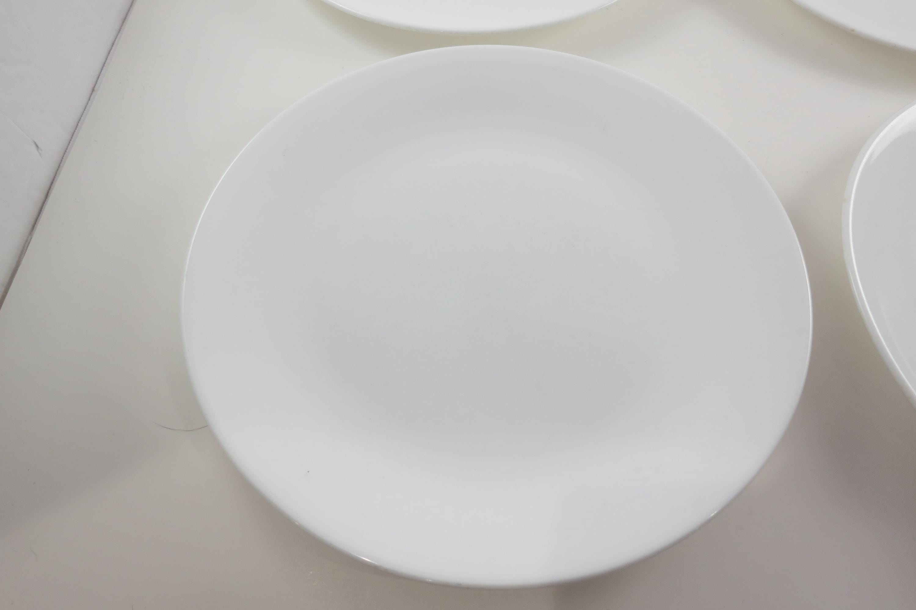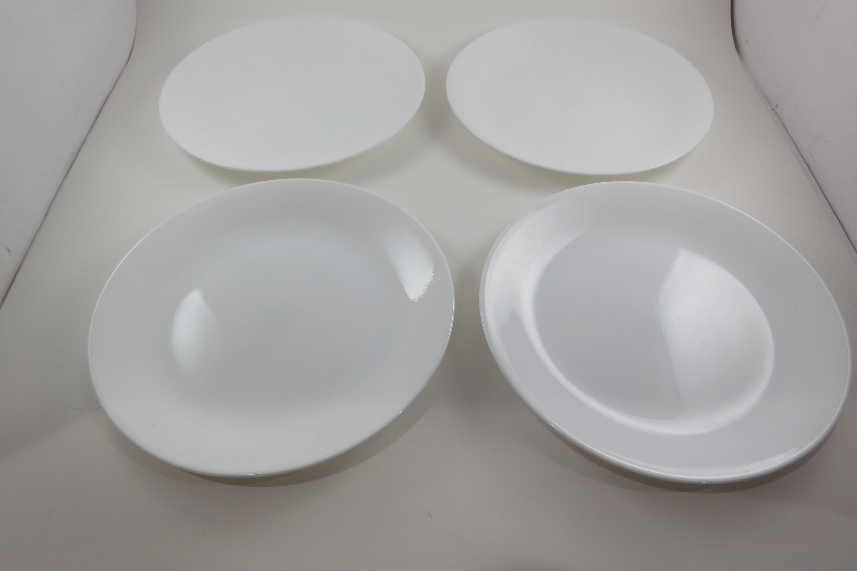 Set of Four Vintage Corelle by Corning All White Pattern 8 1/2 Inch Salad Plates Excellent Used Condition. No chips, cracks or damages. Ready to keep using!
