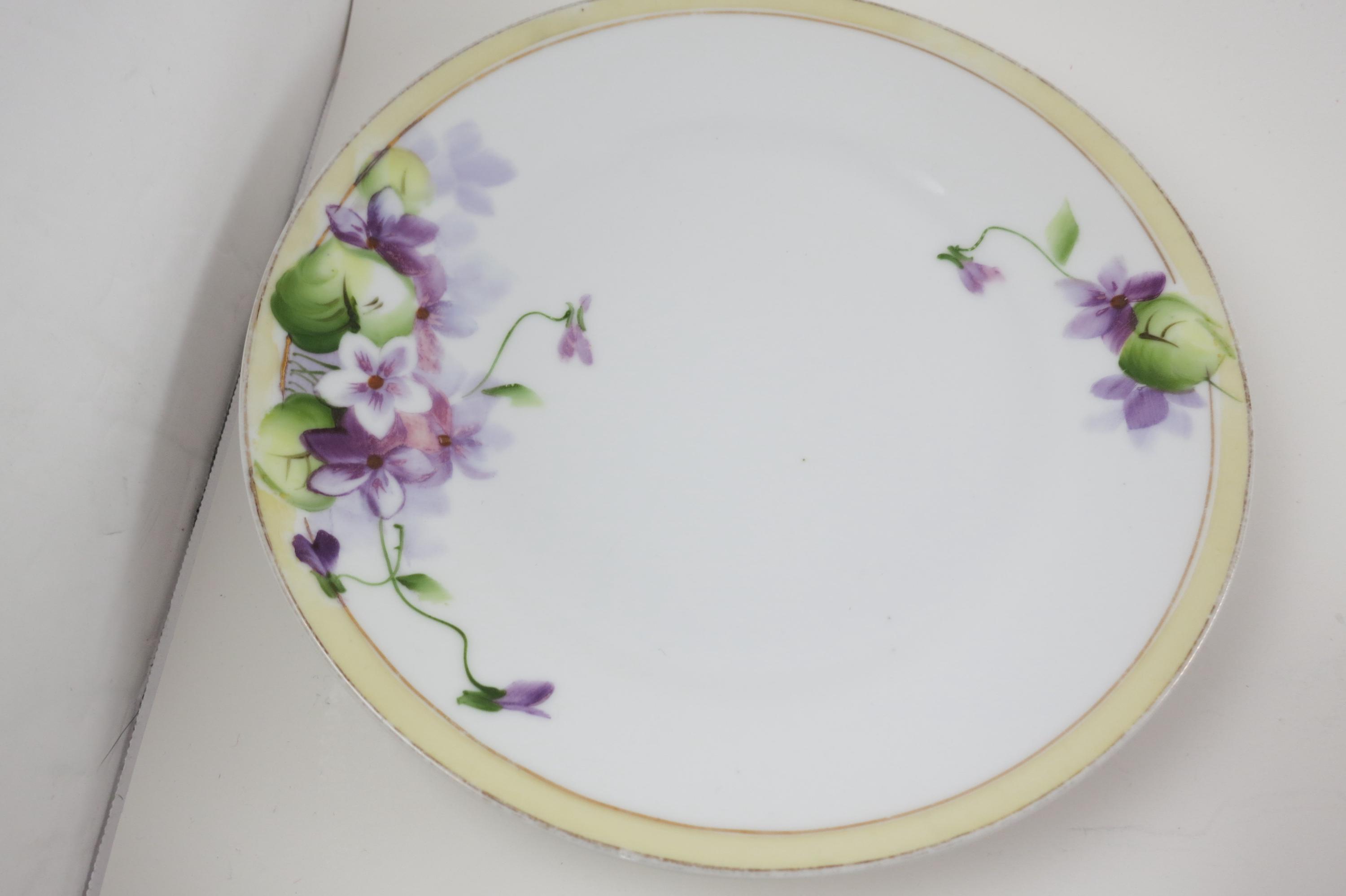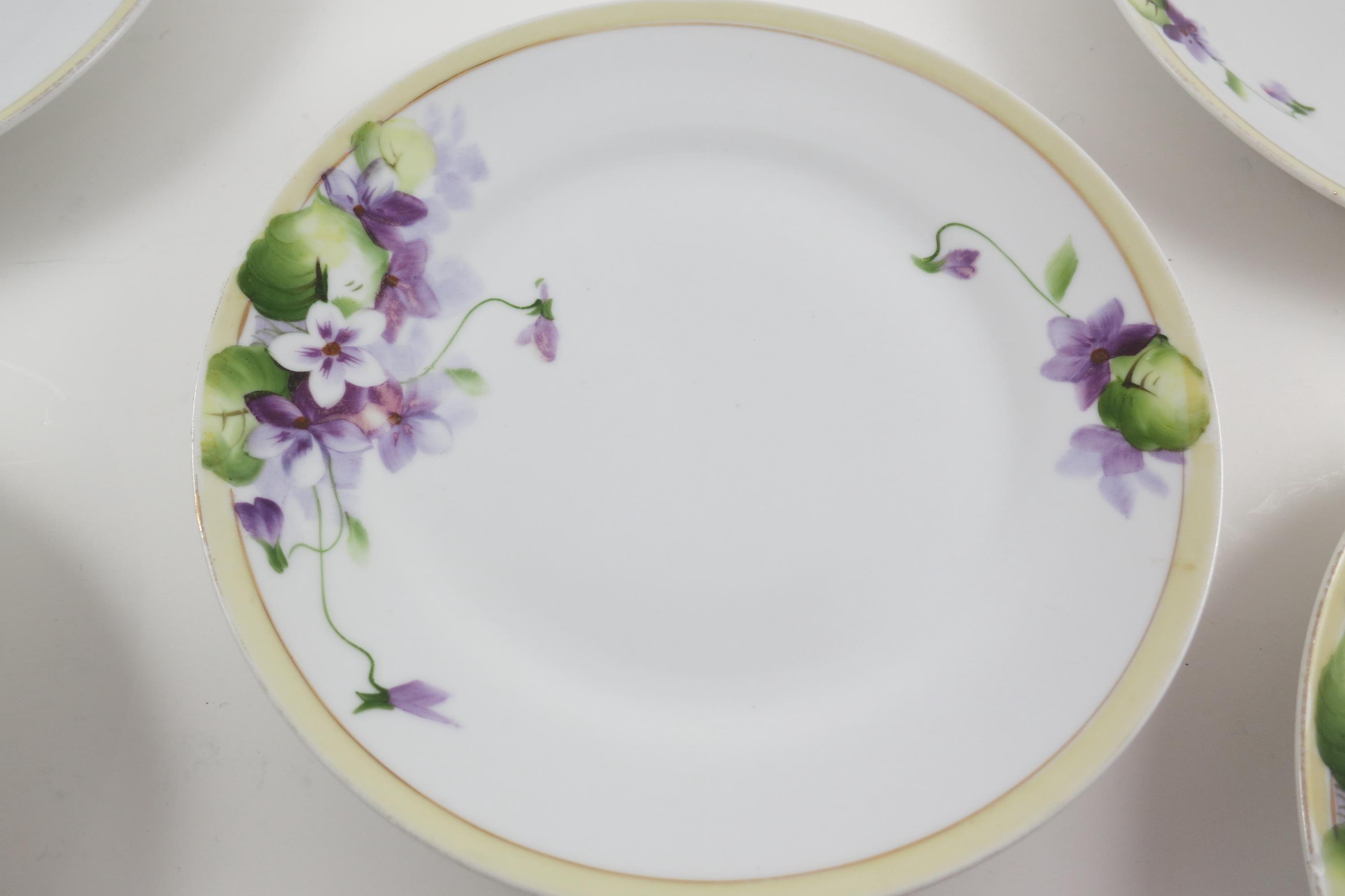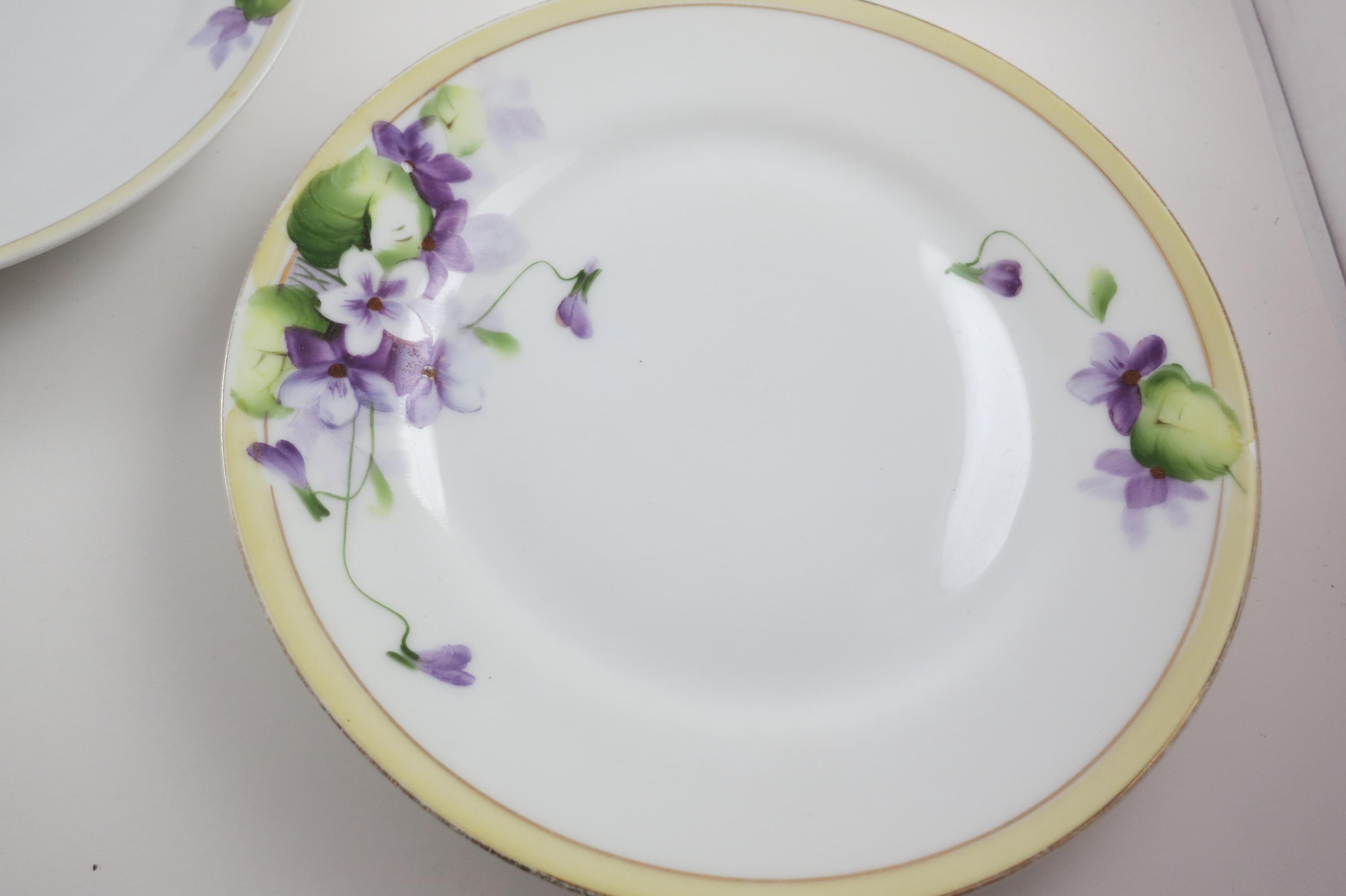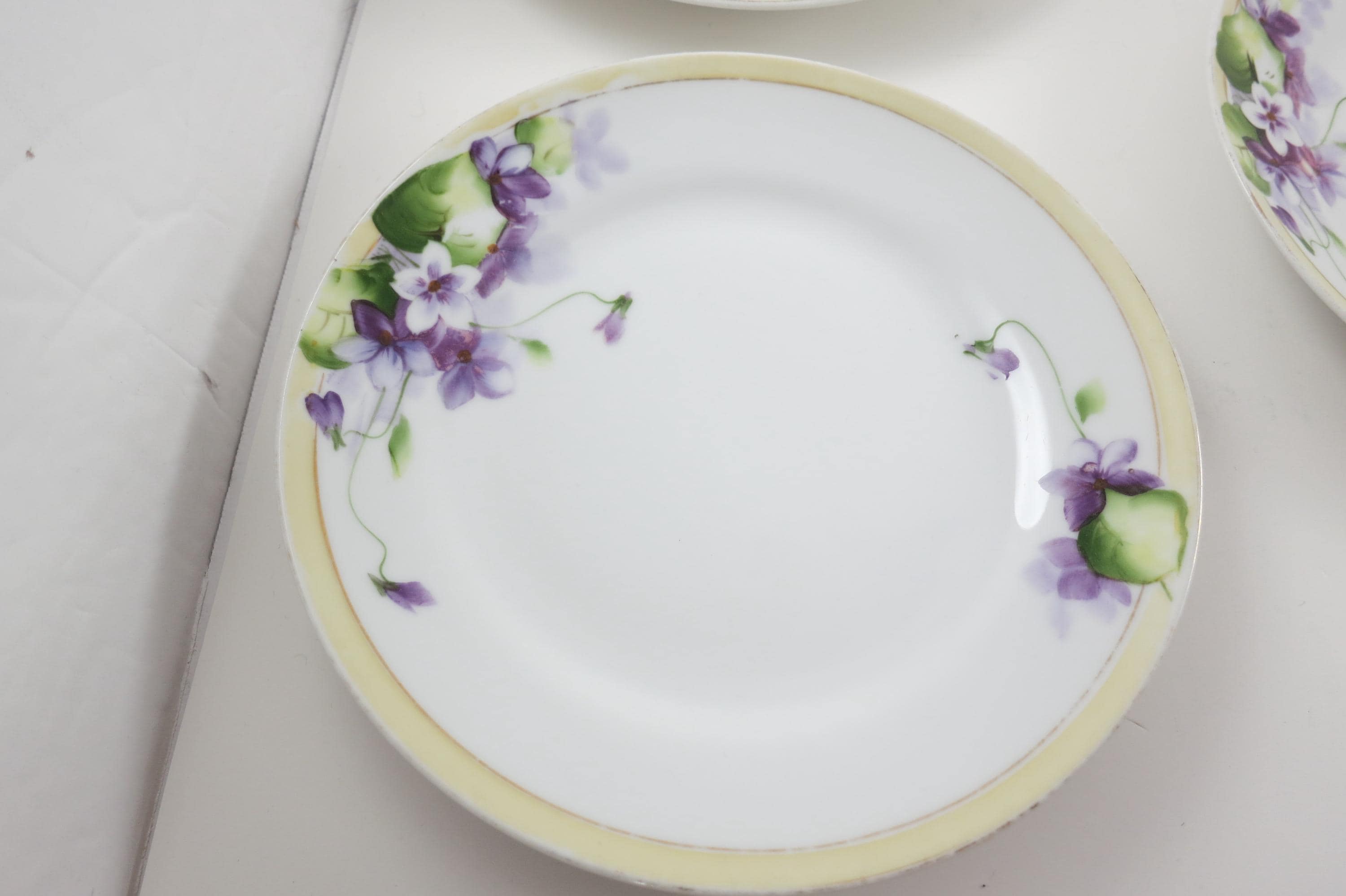 Vintage Nippon Hand Painted 6 Piece Snack Cake Set Purple Floral Excellent Original Condition