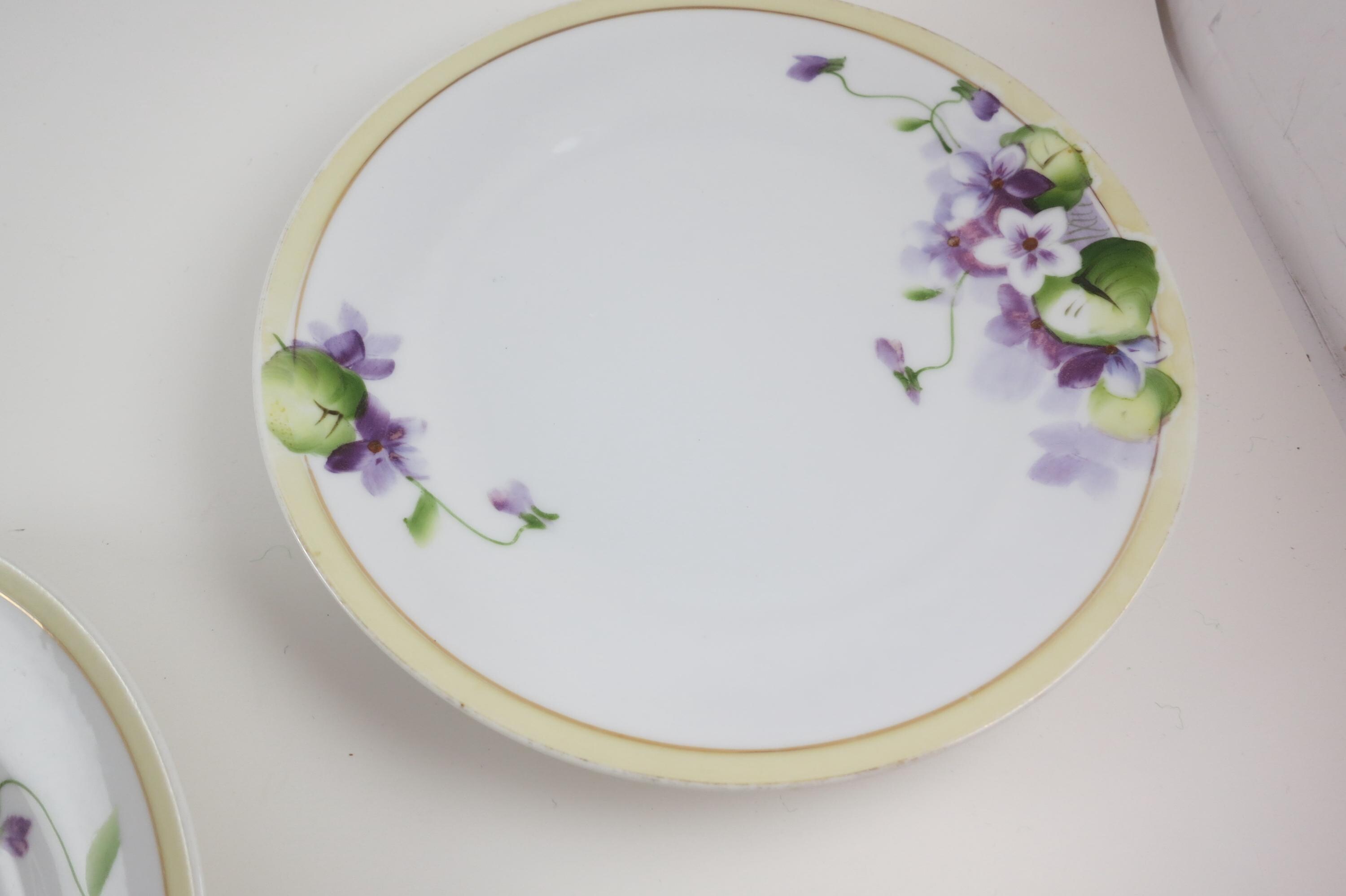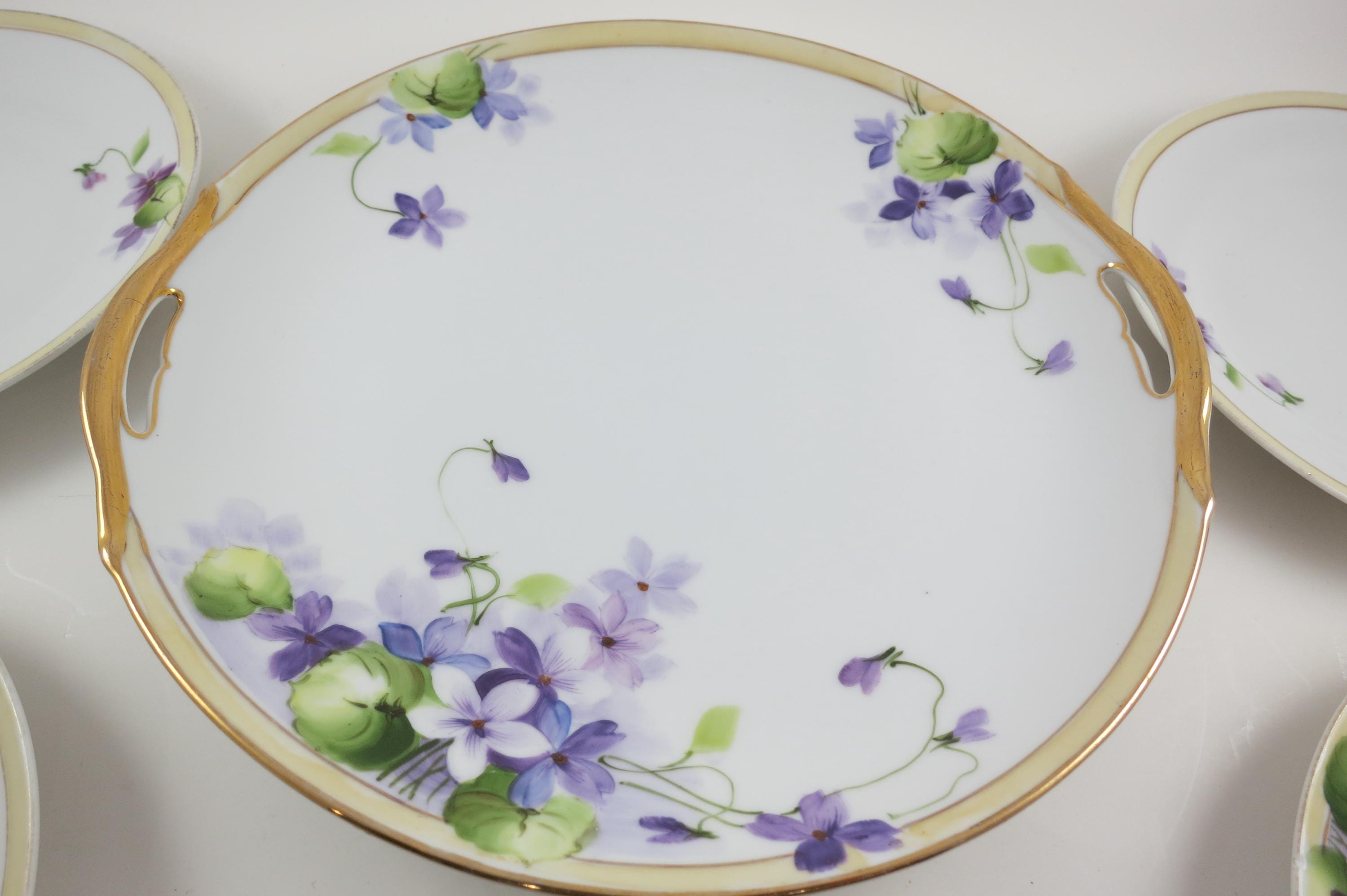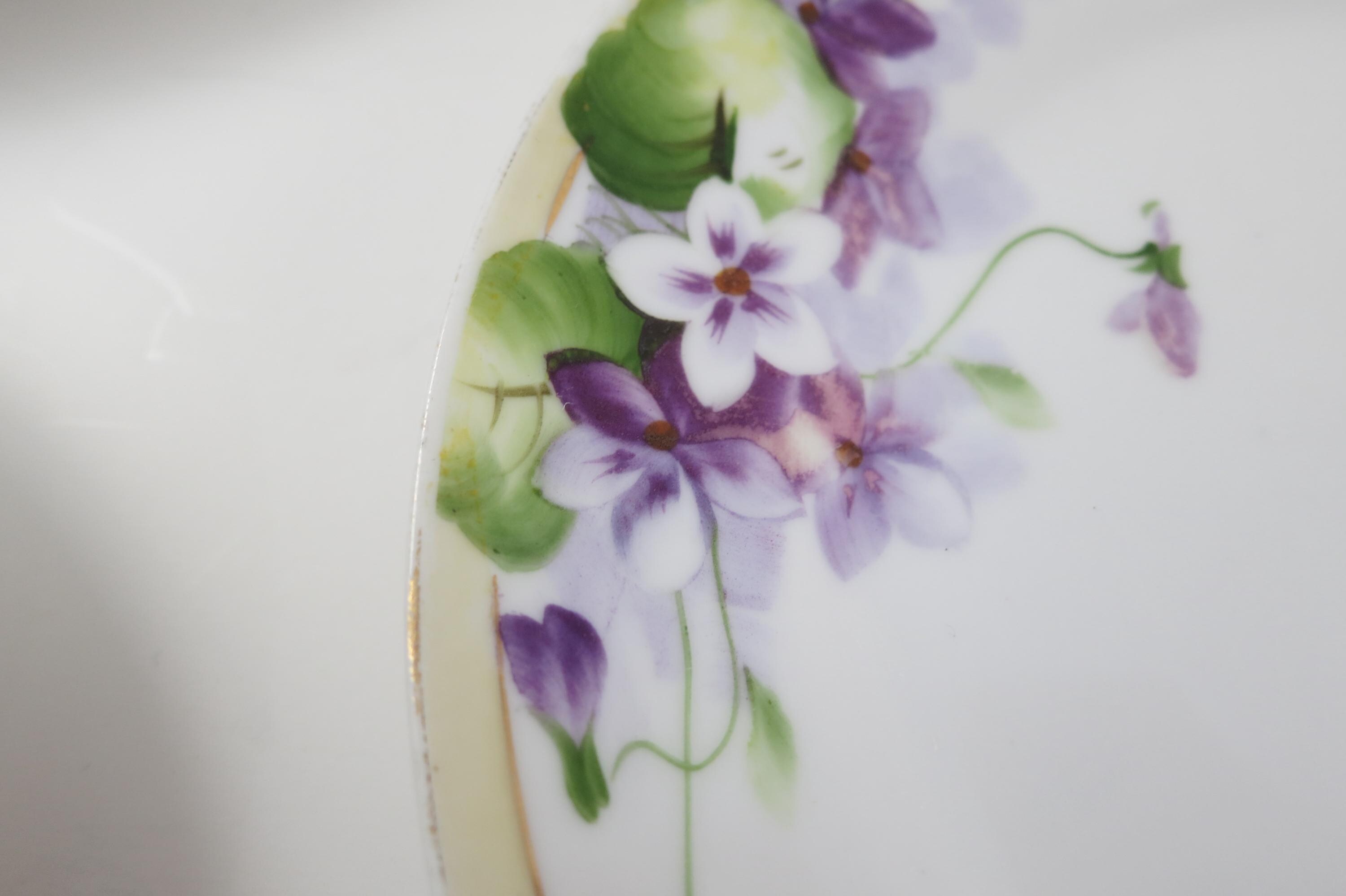 Vintage Nippon Hand Painted 6 Piece Snack Cake Set Purple Floral Excellent Original Condition