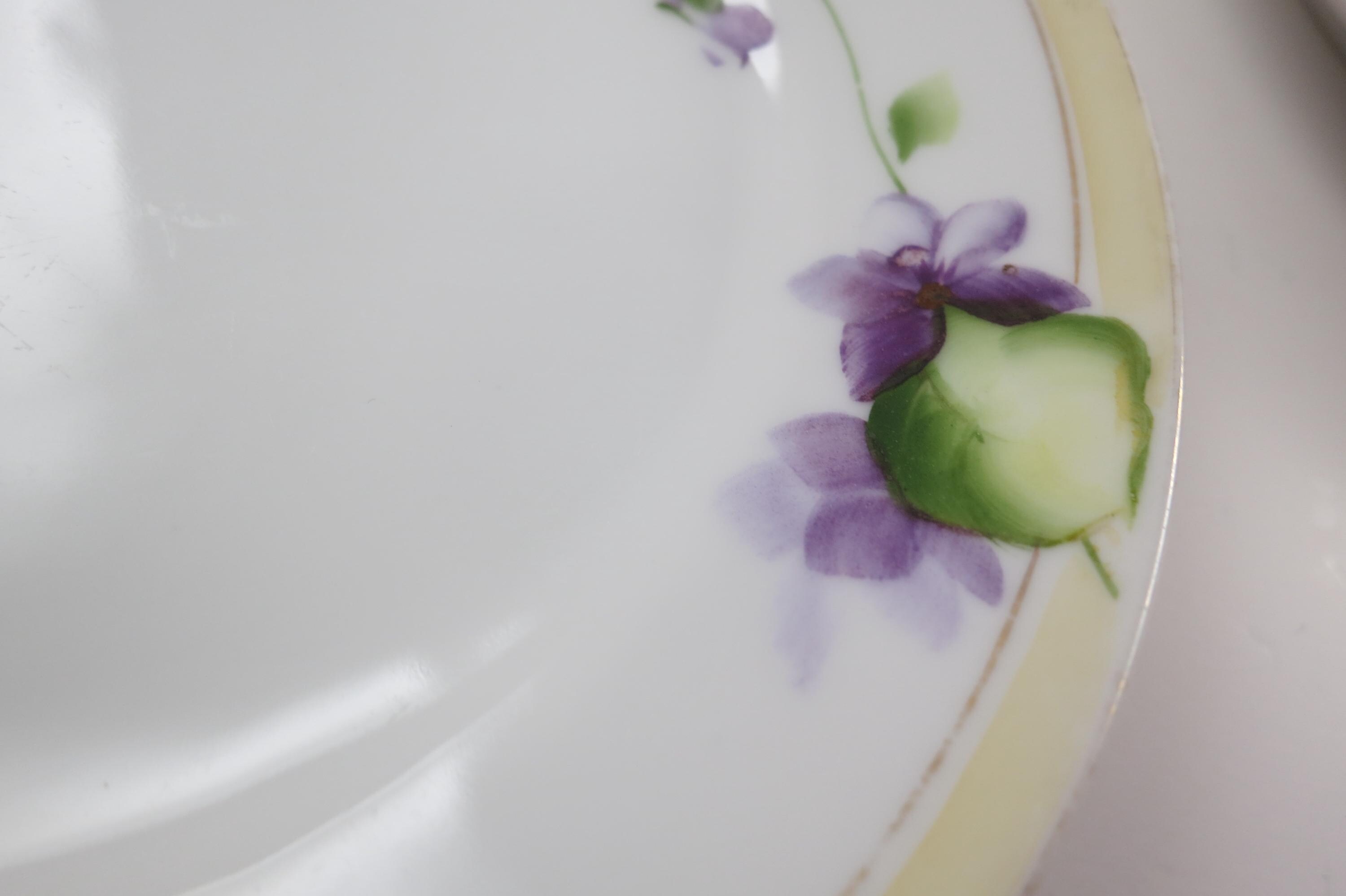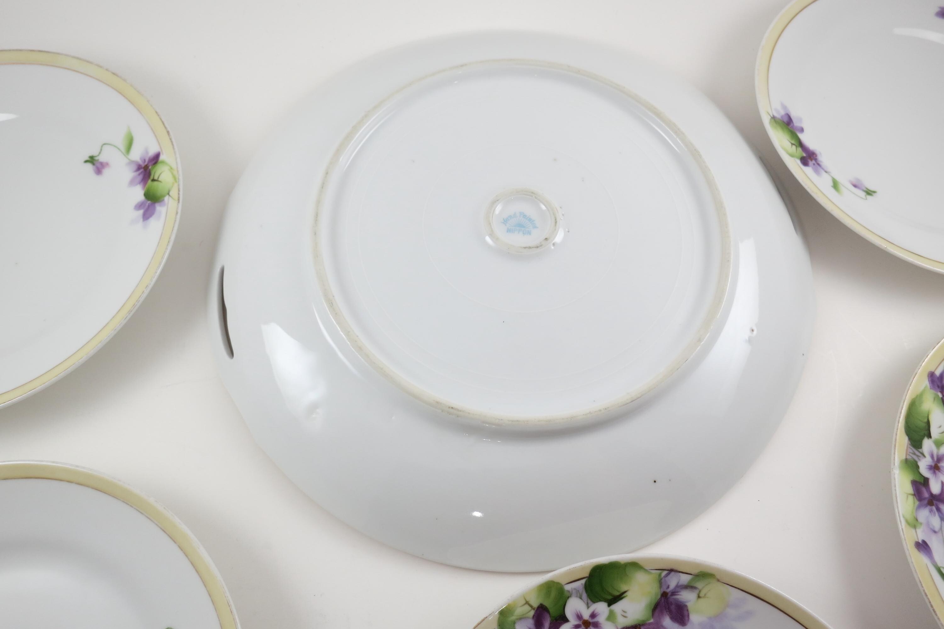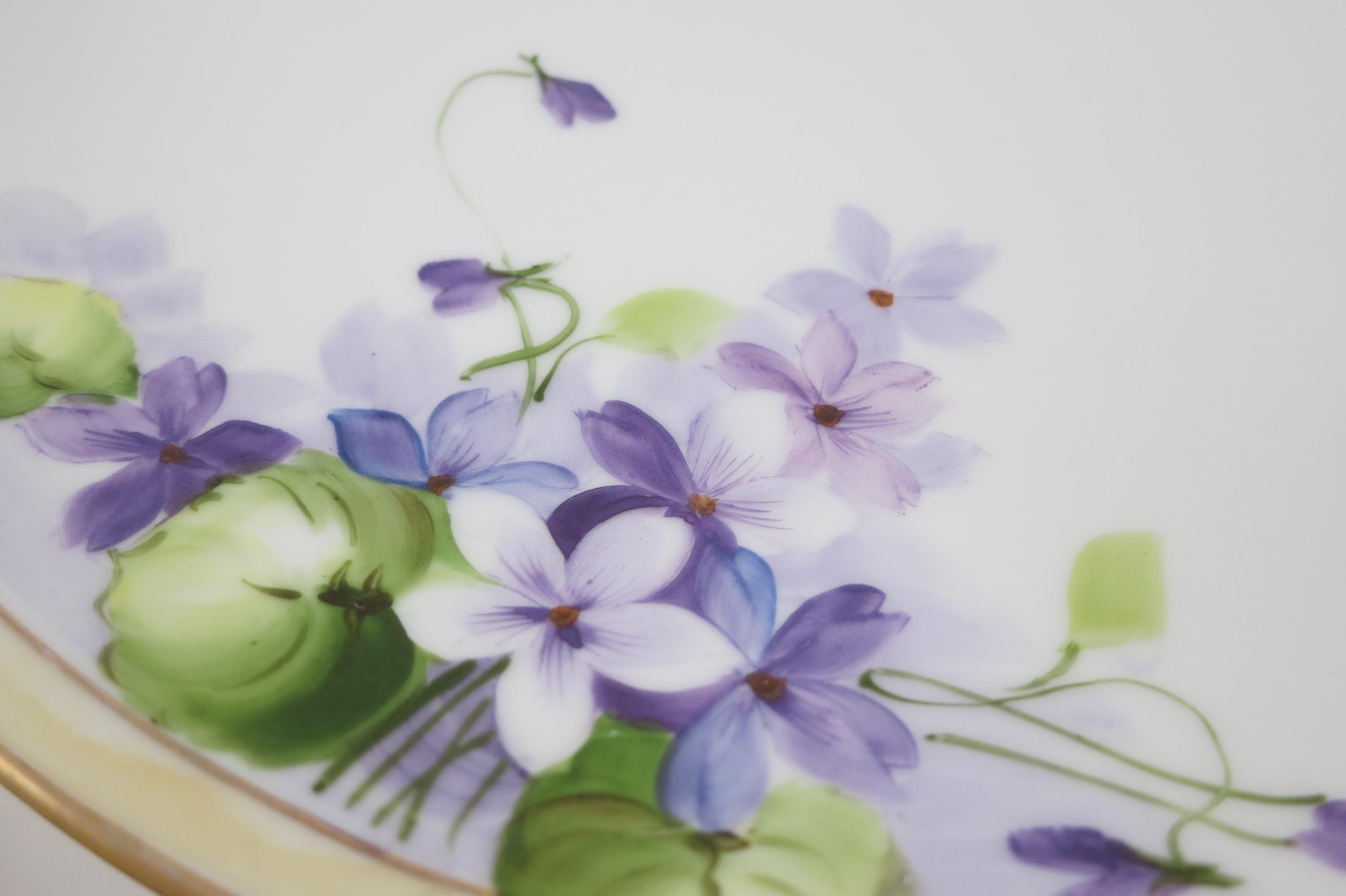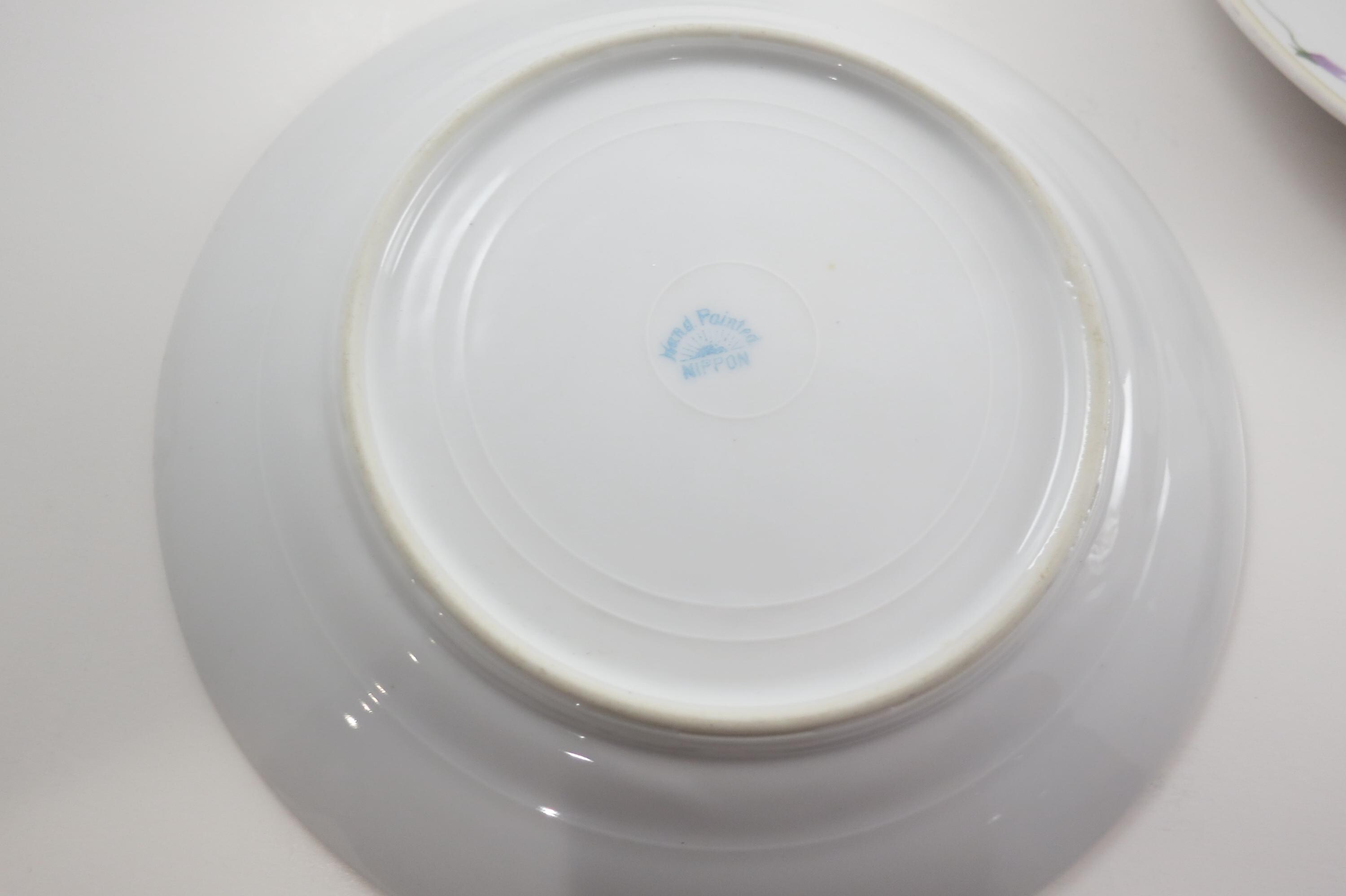 Vintage Nippon Hand Painted 6 Piece Snack Cake Set Purple Floral Excellent Original Condition