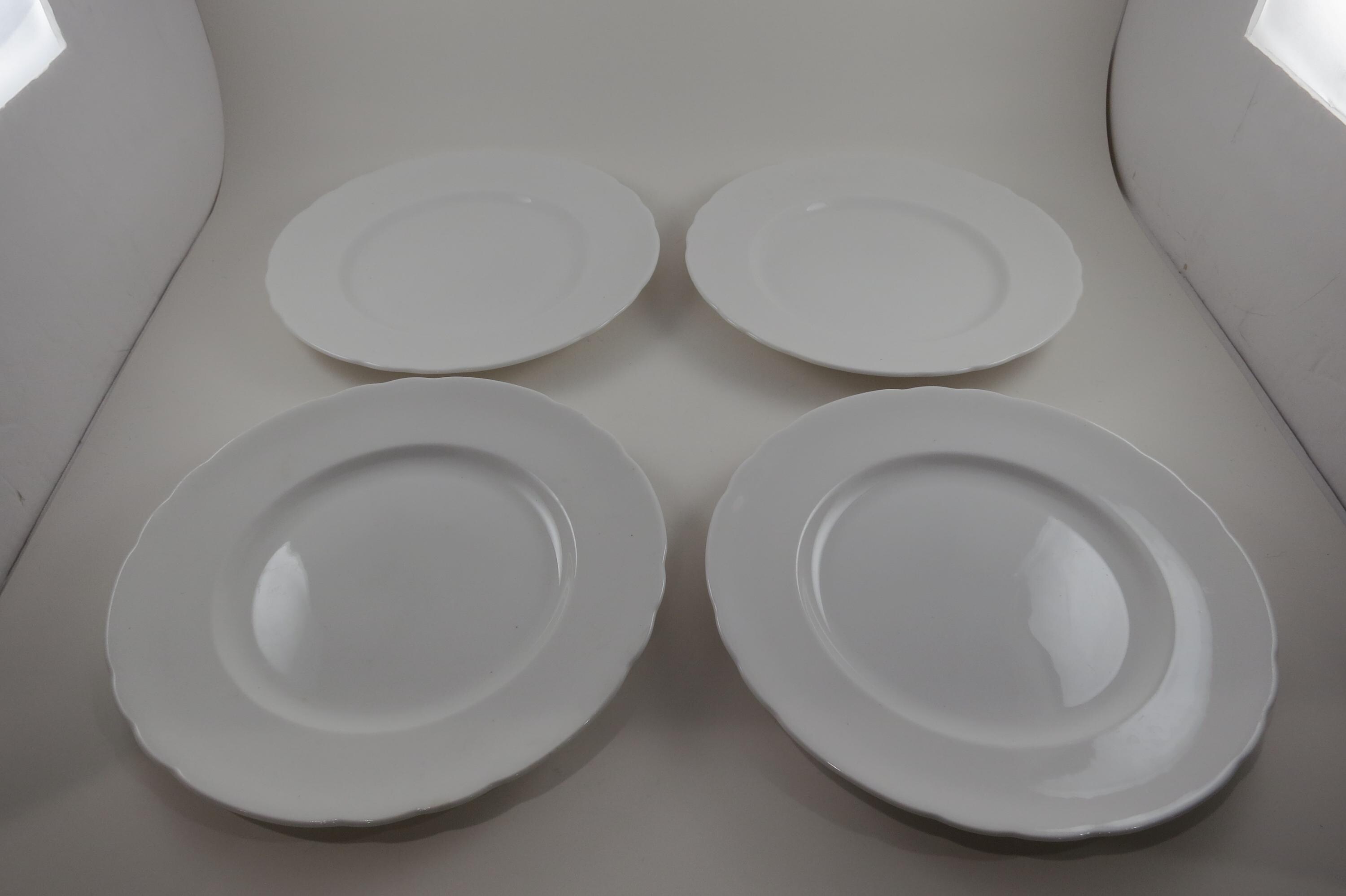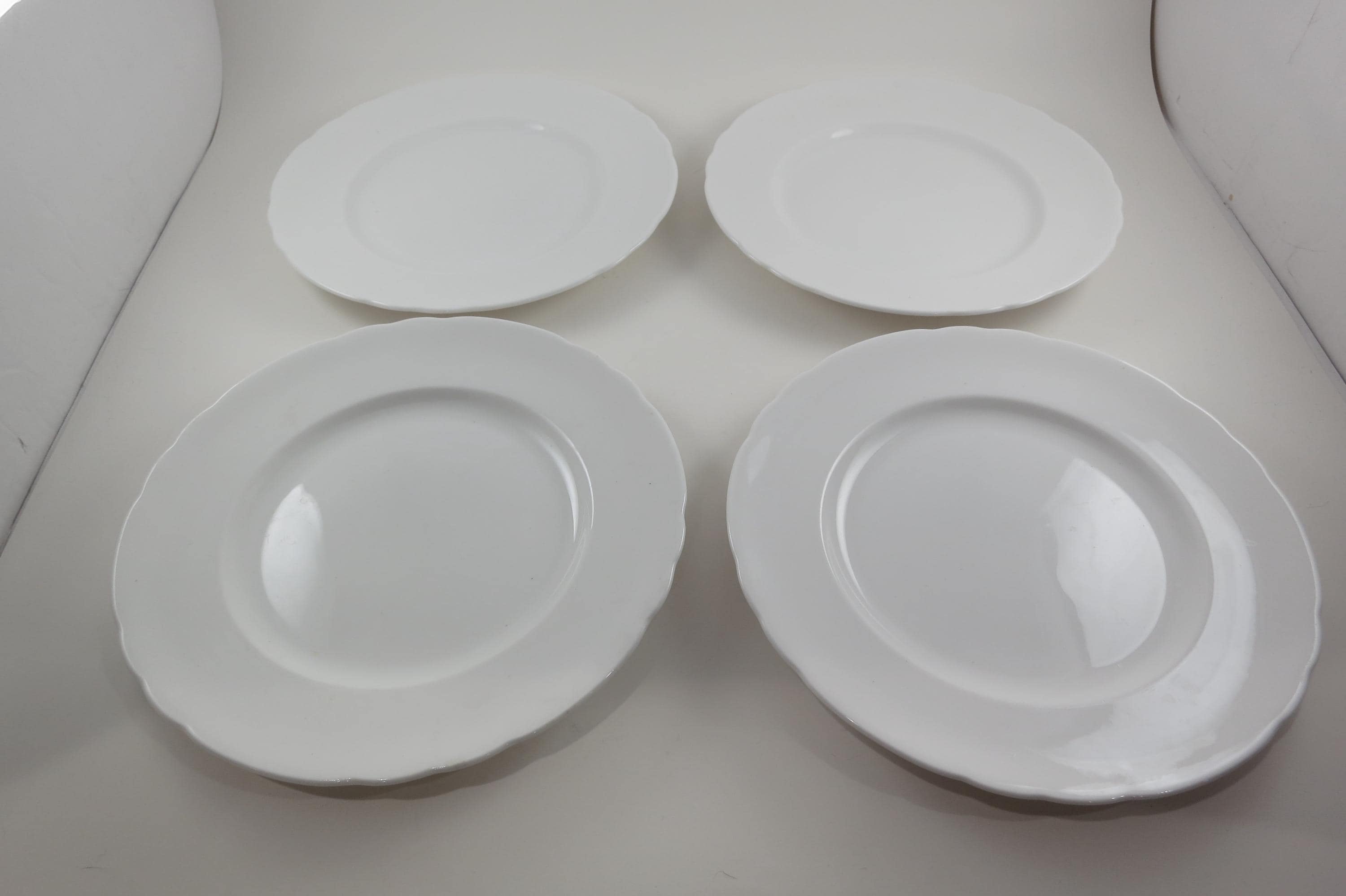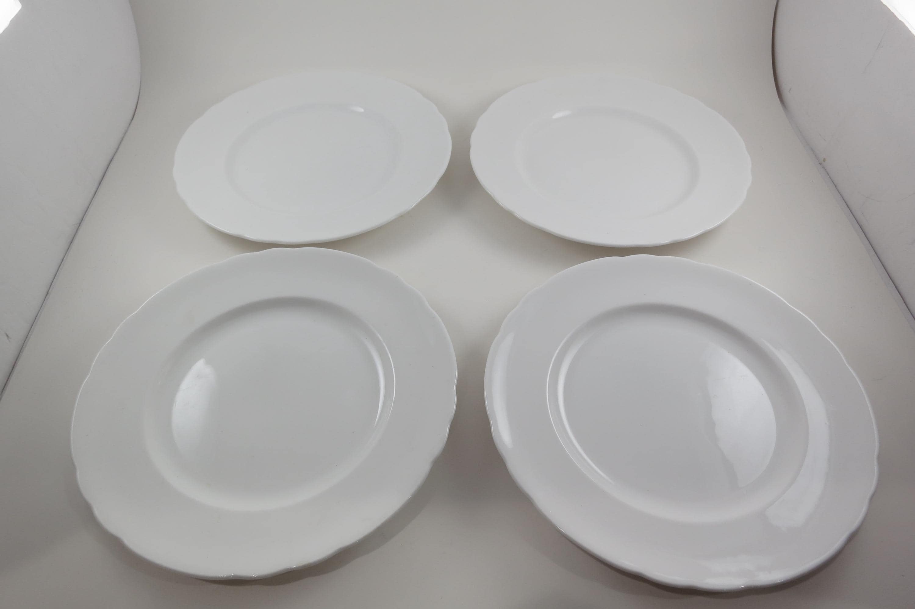 Set of Four Tuscan Fine Bone China Solid White 8 1/4 Inch Salad Plates Pristine Condition