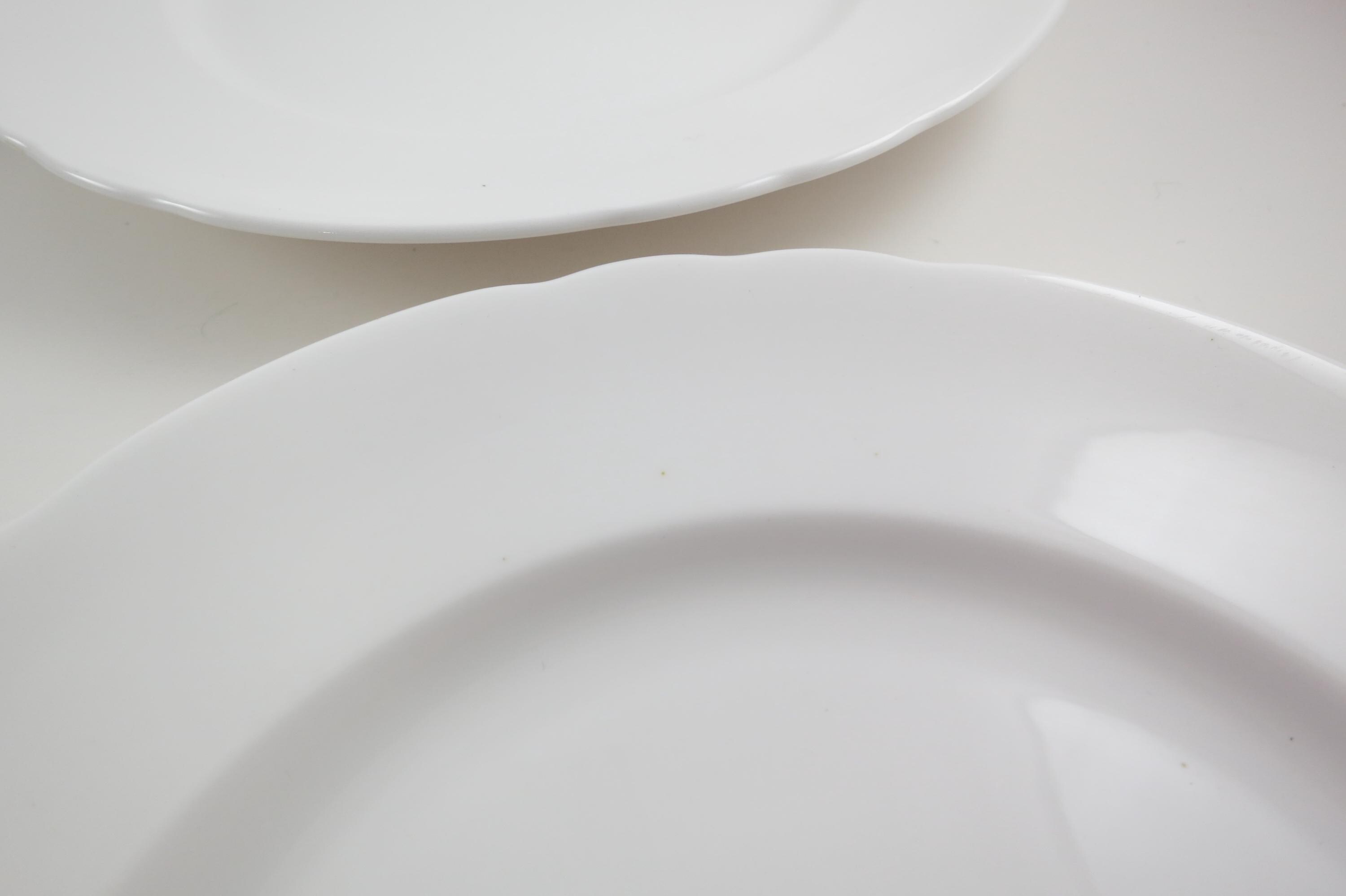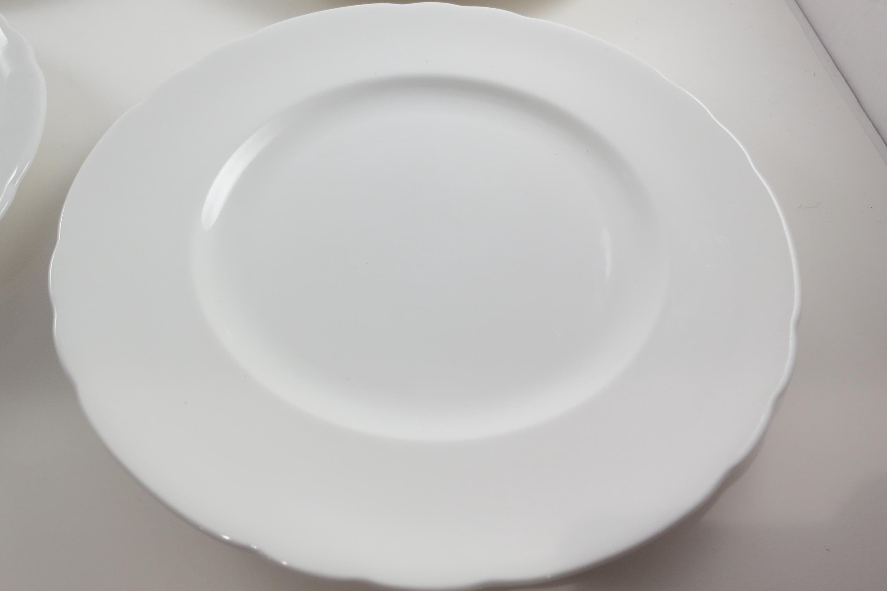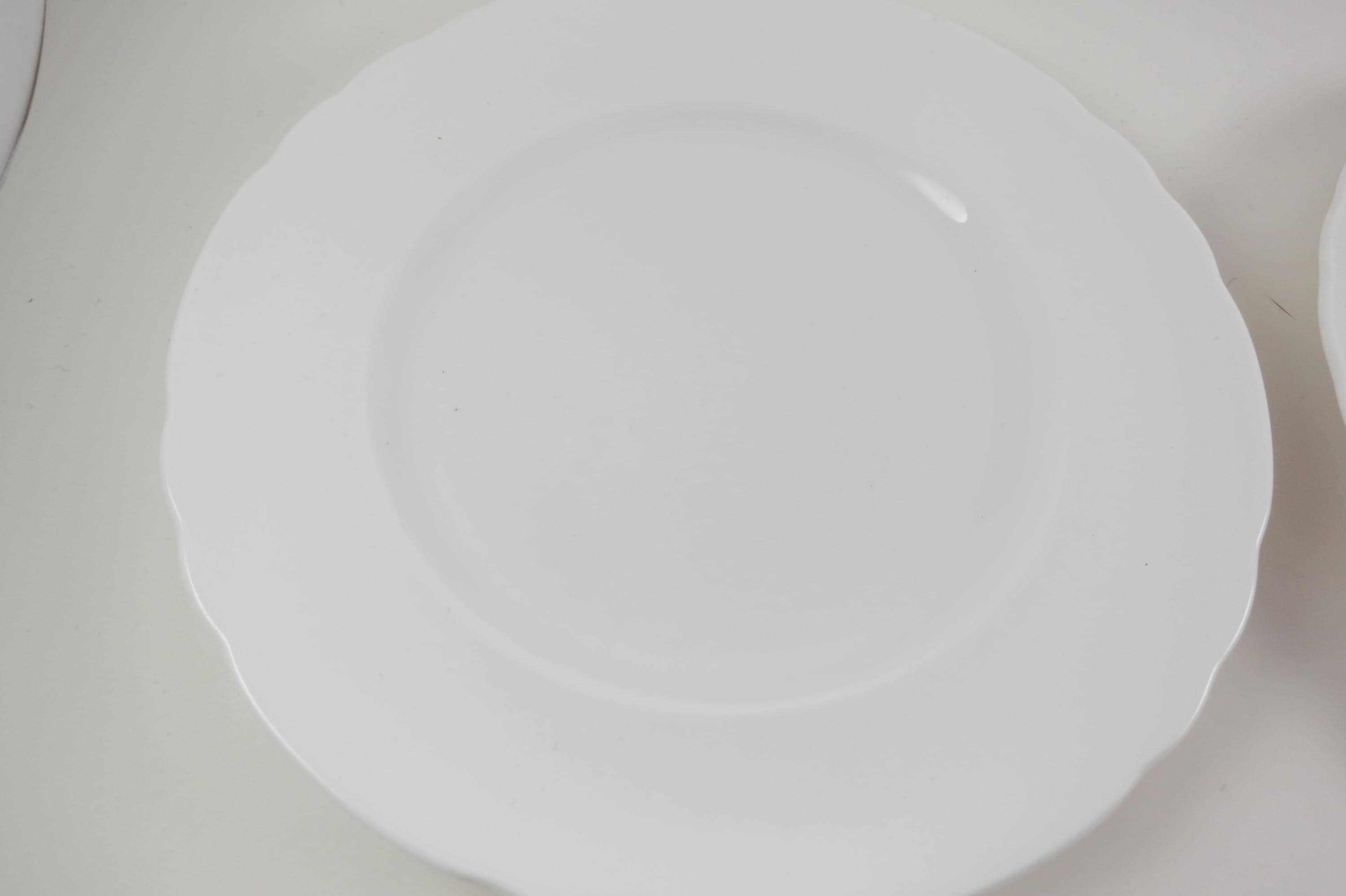 Set of Four Tuscan Fine Bone China Solid White 8 1/4 Inch Salad Plates Pristine Condition