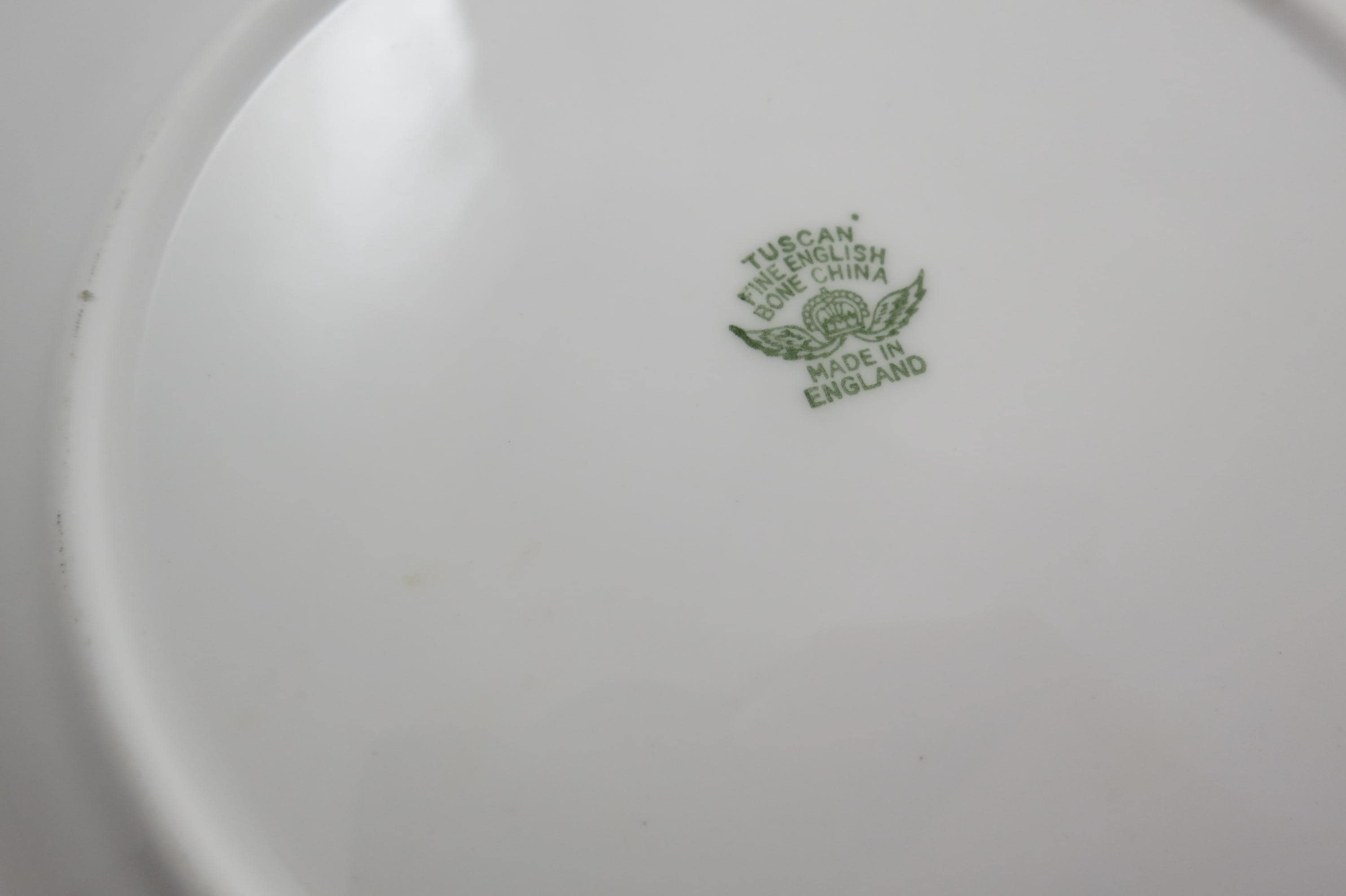 Set of Four Tuscan Fine Bone China Solid White 8 1/4 Inch Salad Plates Pristine Condition. No chips, cracks or damages. Fabulous high quality Tuscan FBC.