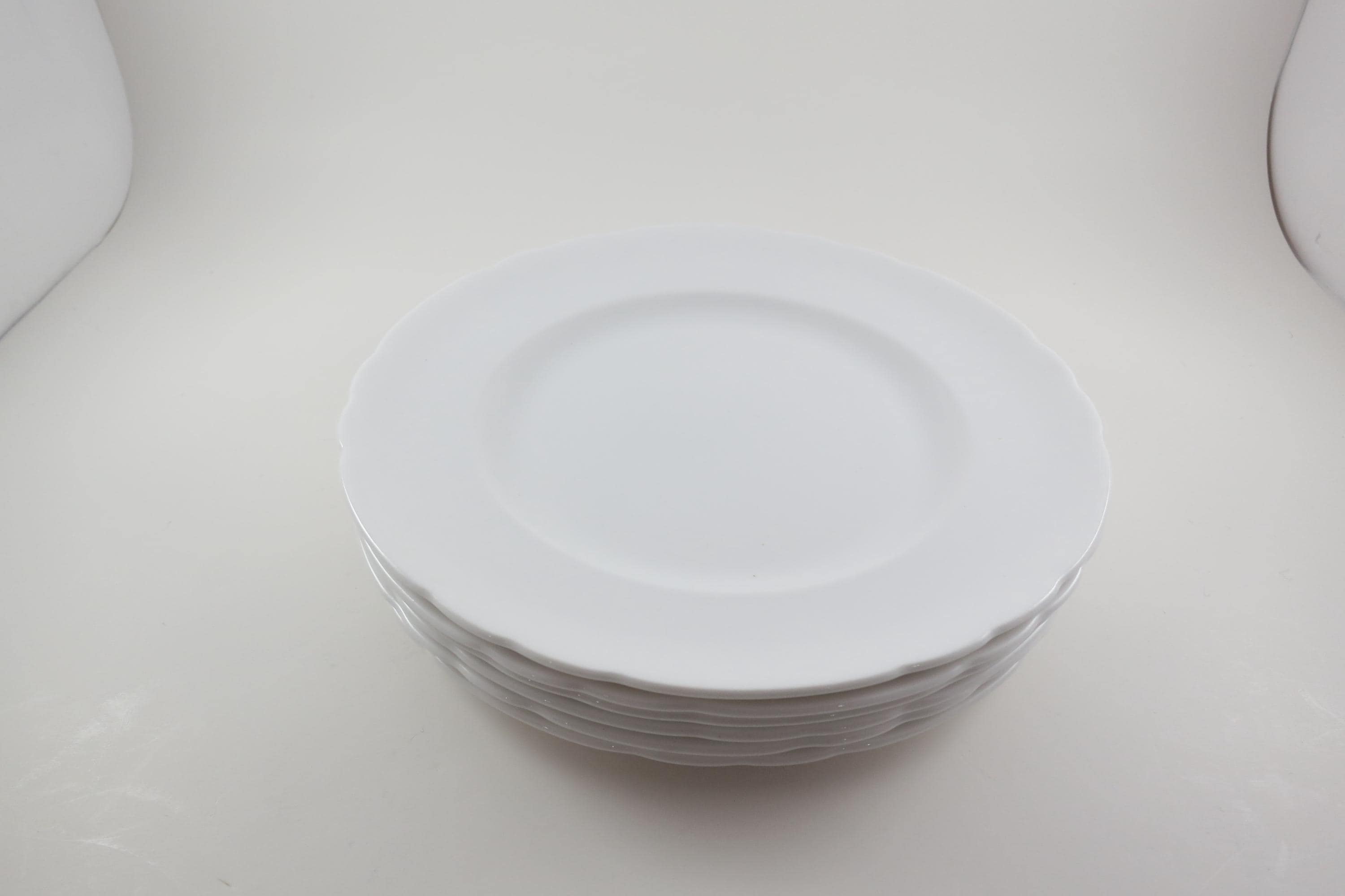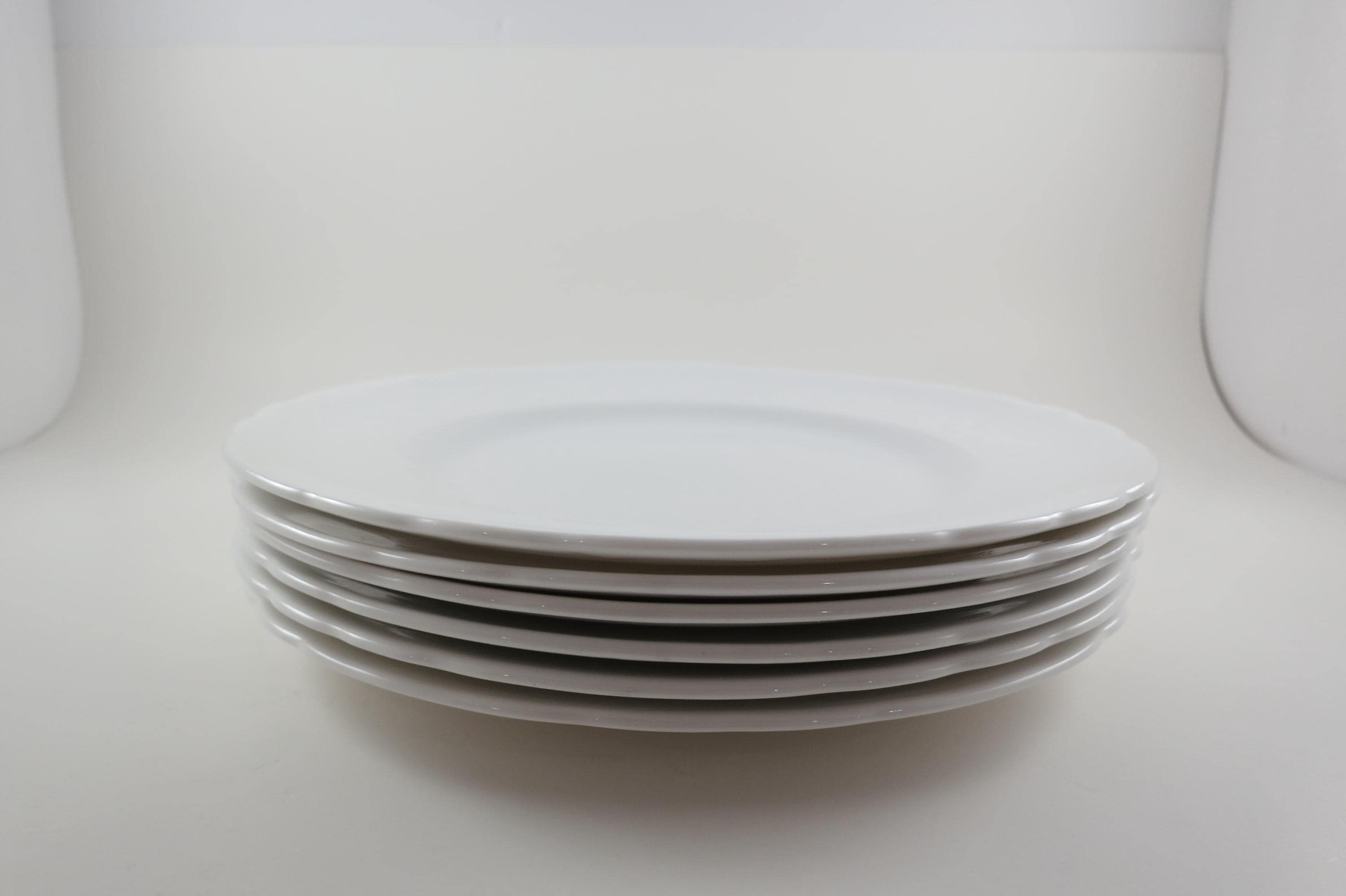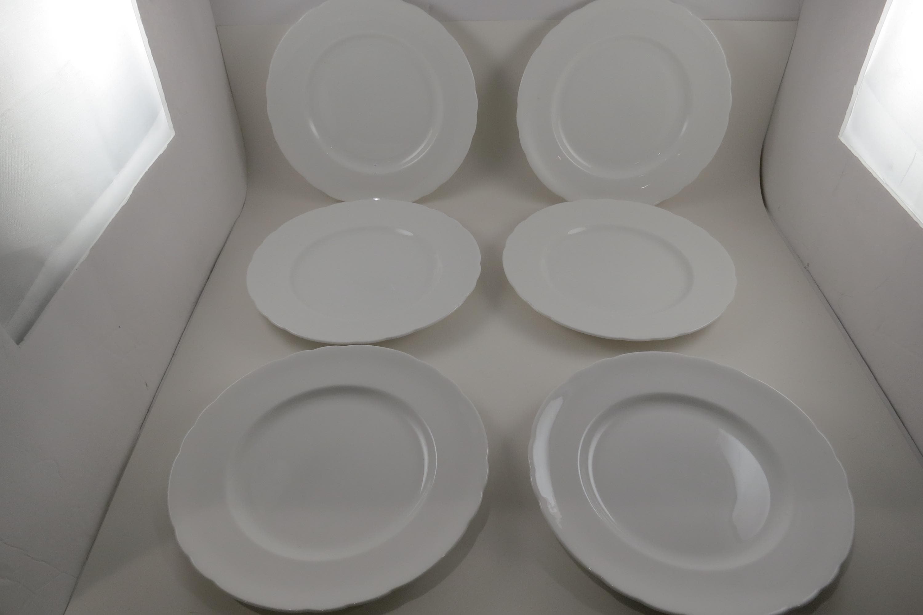 Set of Six Tuscan Fine Bone China Solid White 8 1/4 Inch Salad Plates Pristine Condition