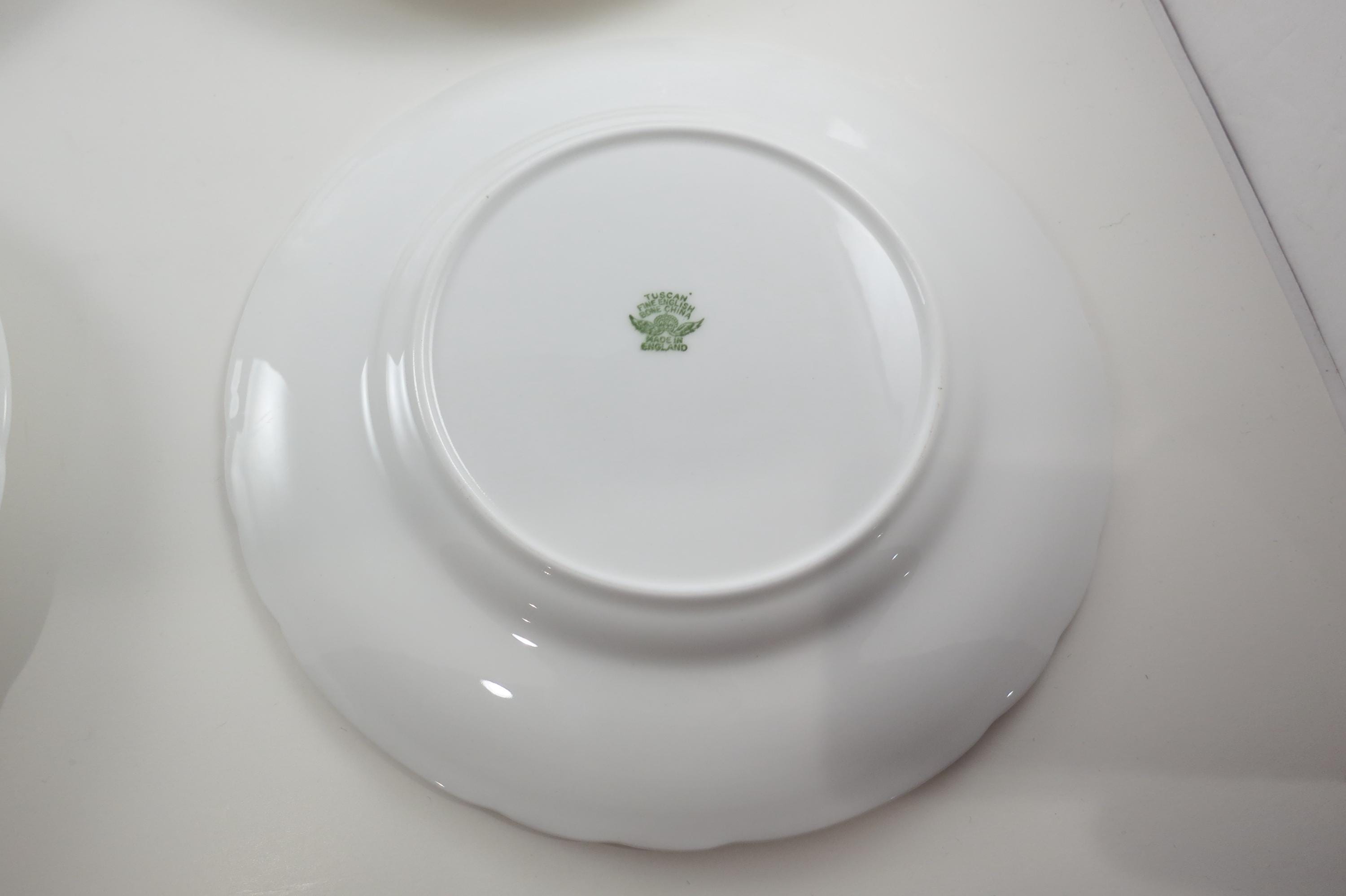 Set of Six Tuscan Fine Bone China Solid White 8 1/4 Inch Salad Plates Pristine Condition. No chips, cracks or damages. Fabulous high quality Tuscan FBC.