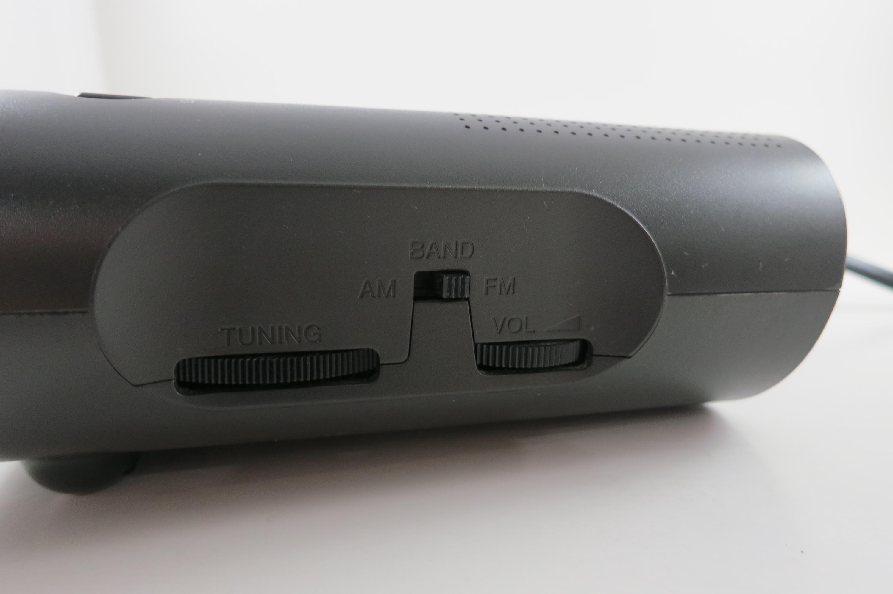 Has large green numbers. Alarm can be either the radio or a buzzer. Has sleep mode as well as a single alarm.