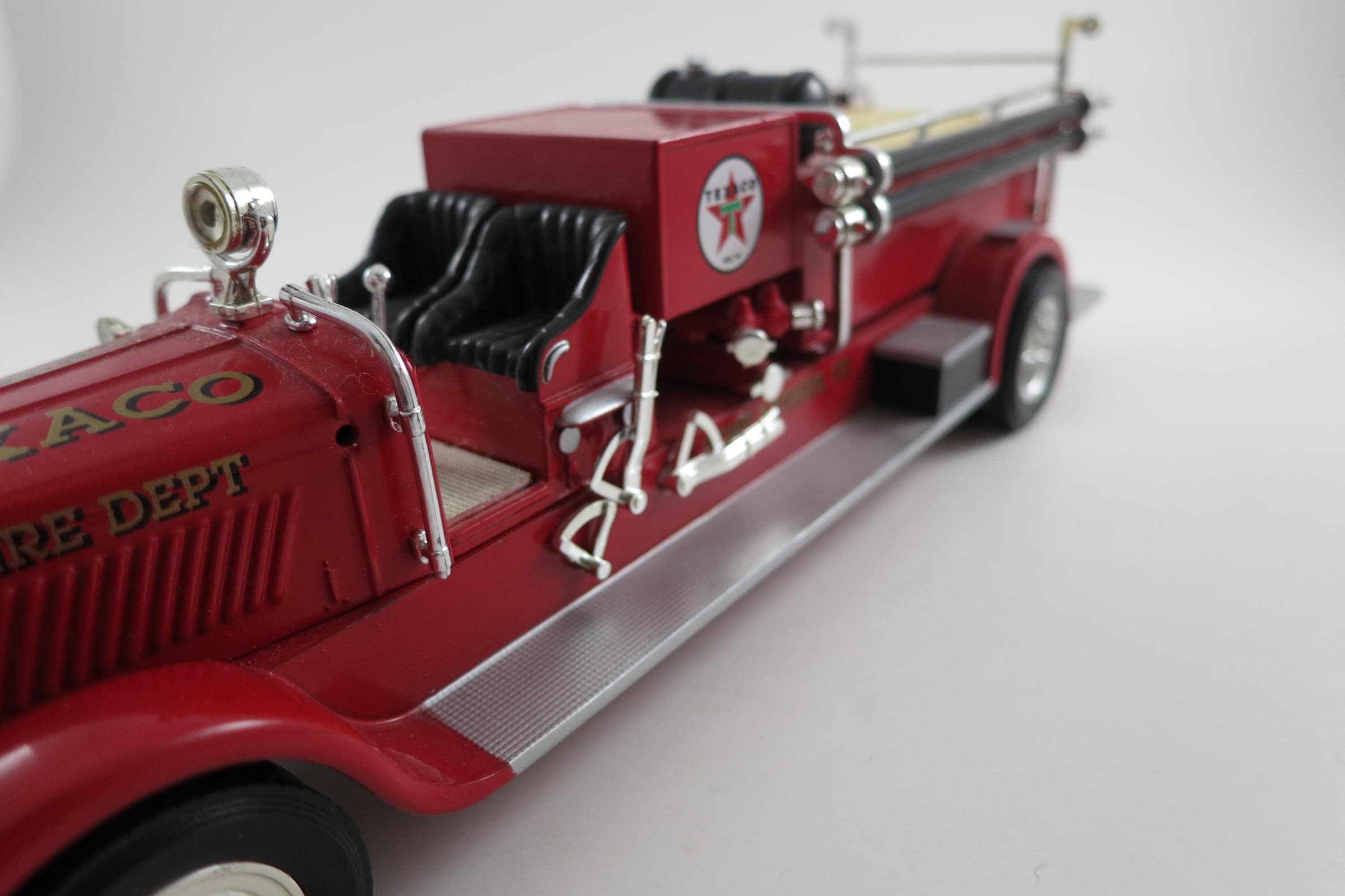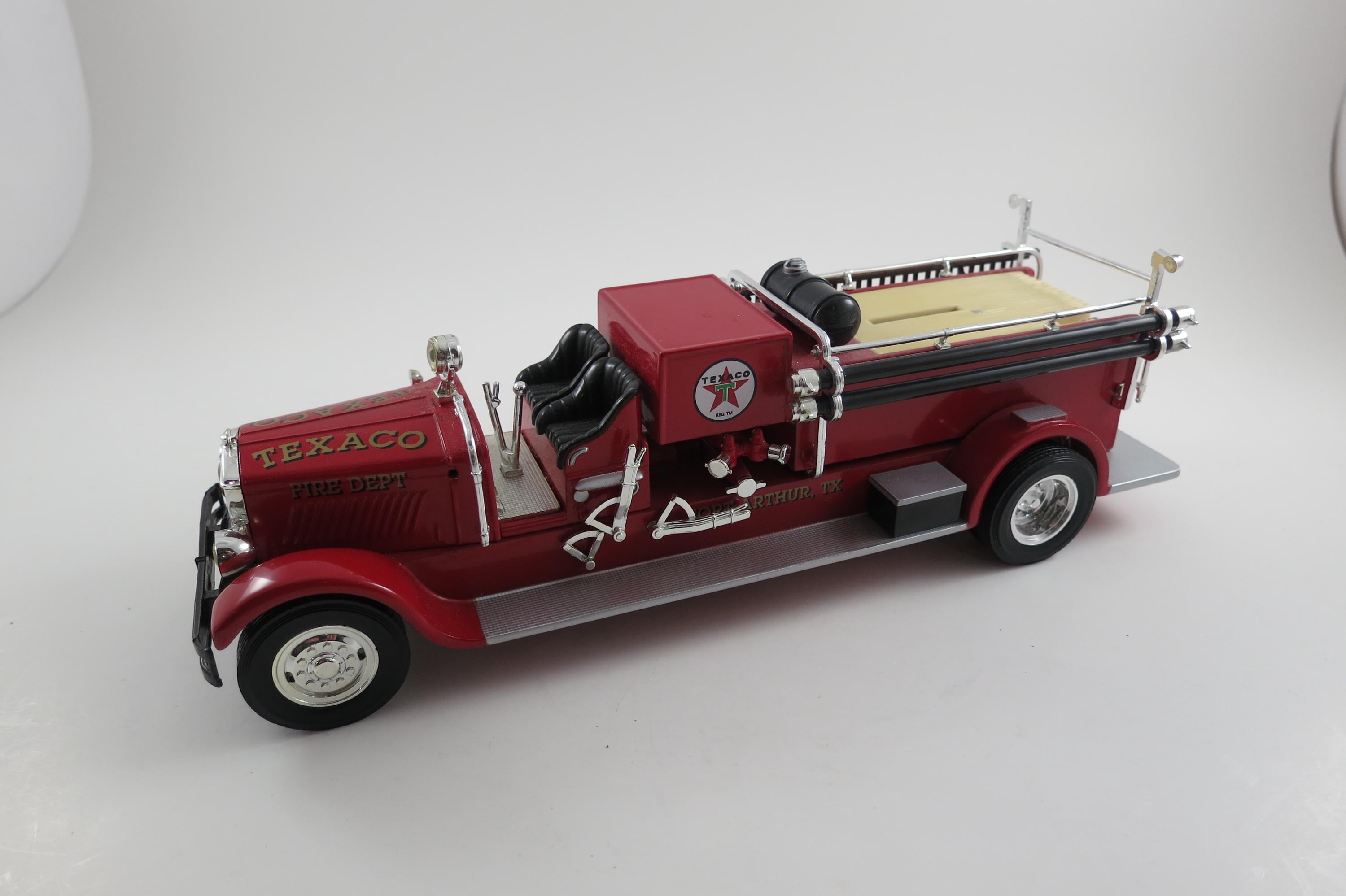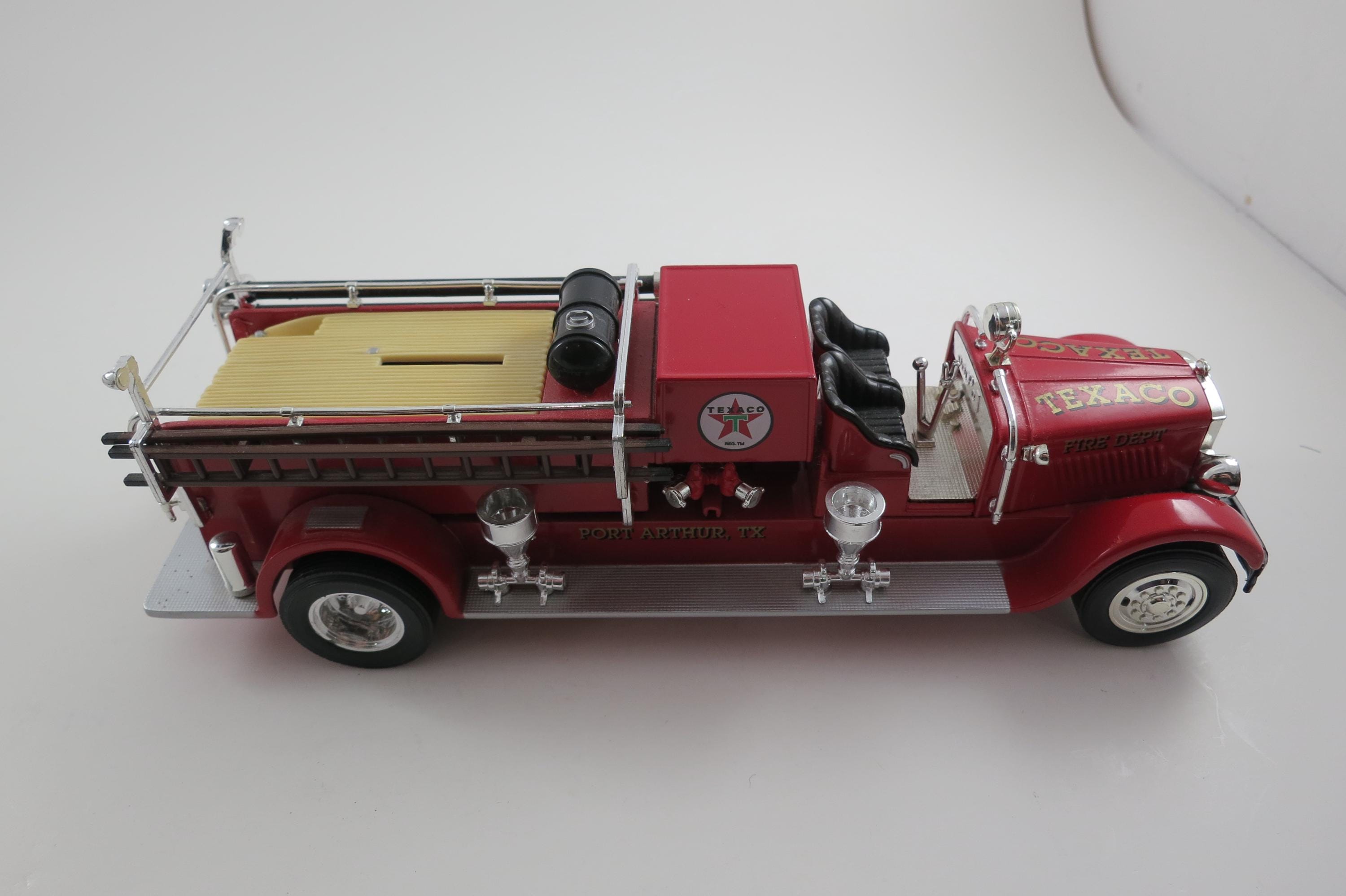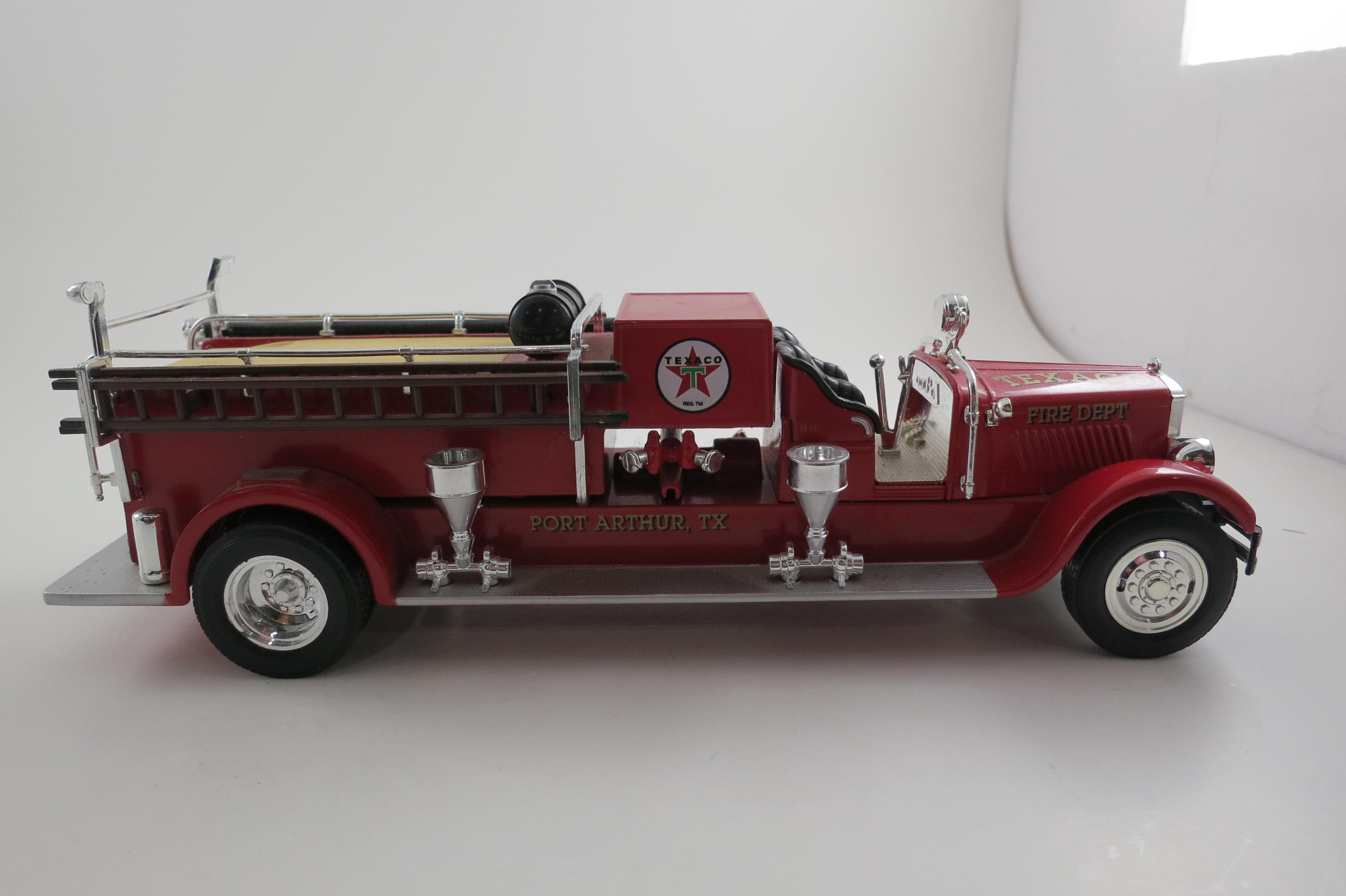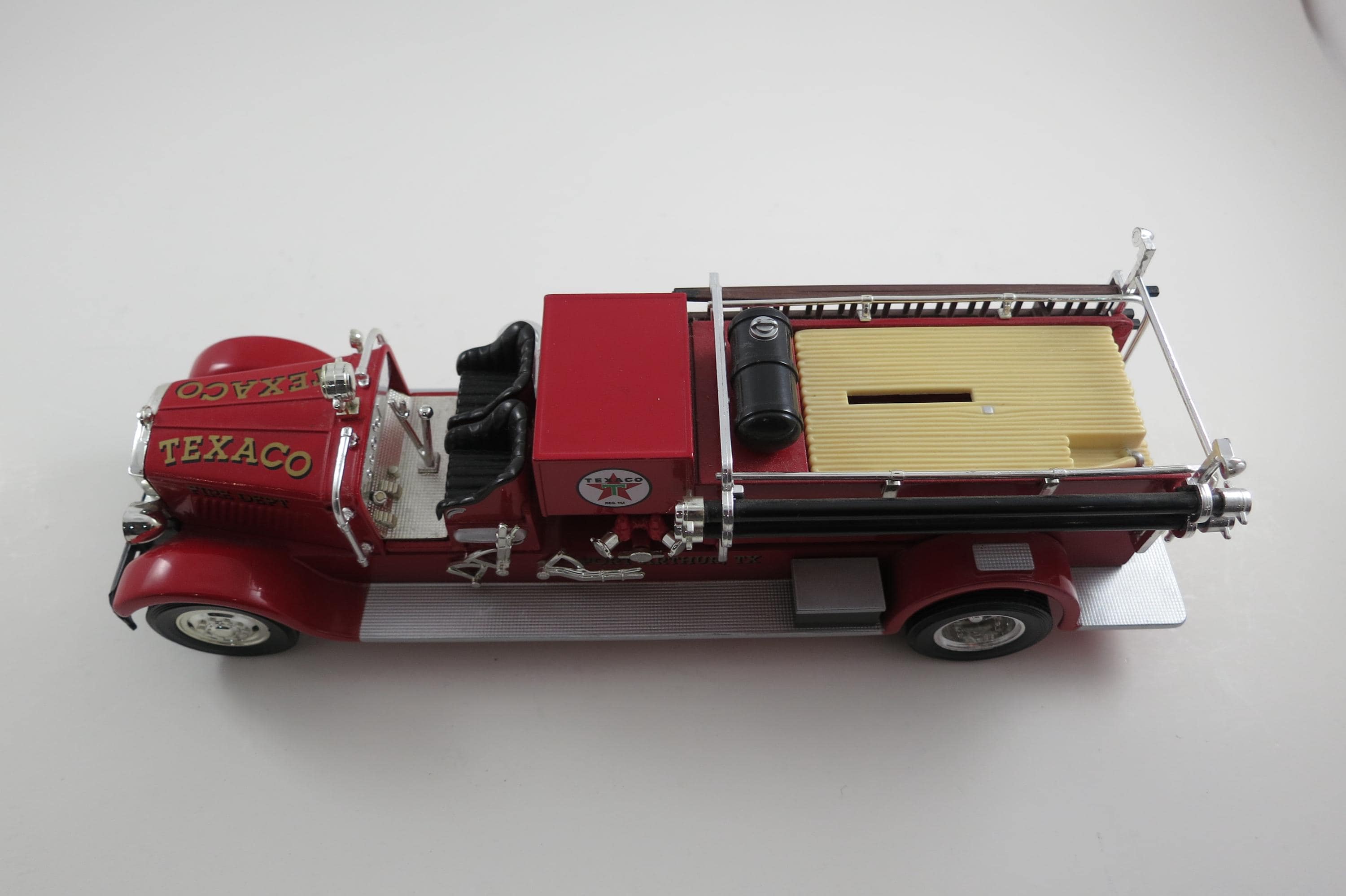Vintage 1999 Ertl Texaco 1929 Mack Pumper Fire Truck Coin Bank Port Arthur, TX Excellent Condition. Sold as shown, measures 9 inches long and 2 3/4 inches wide.