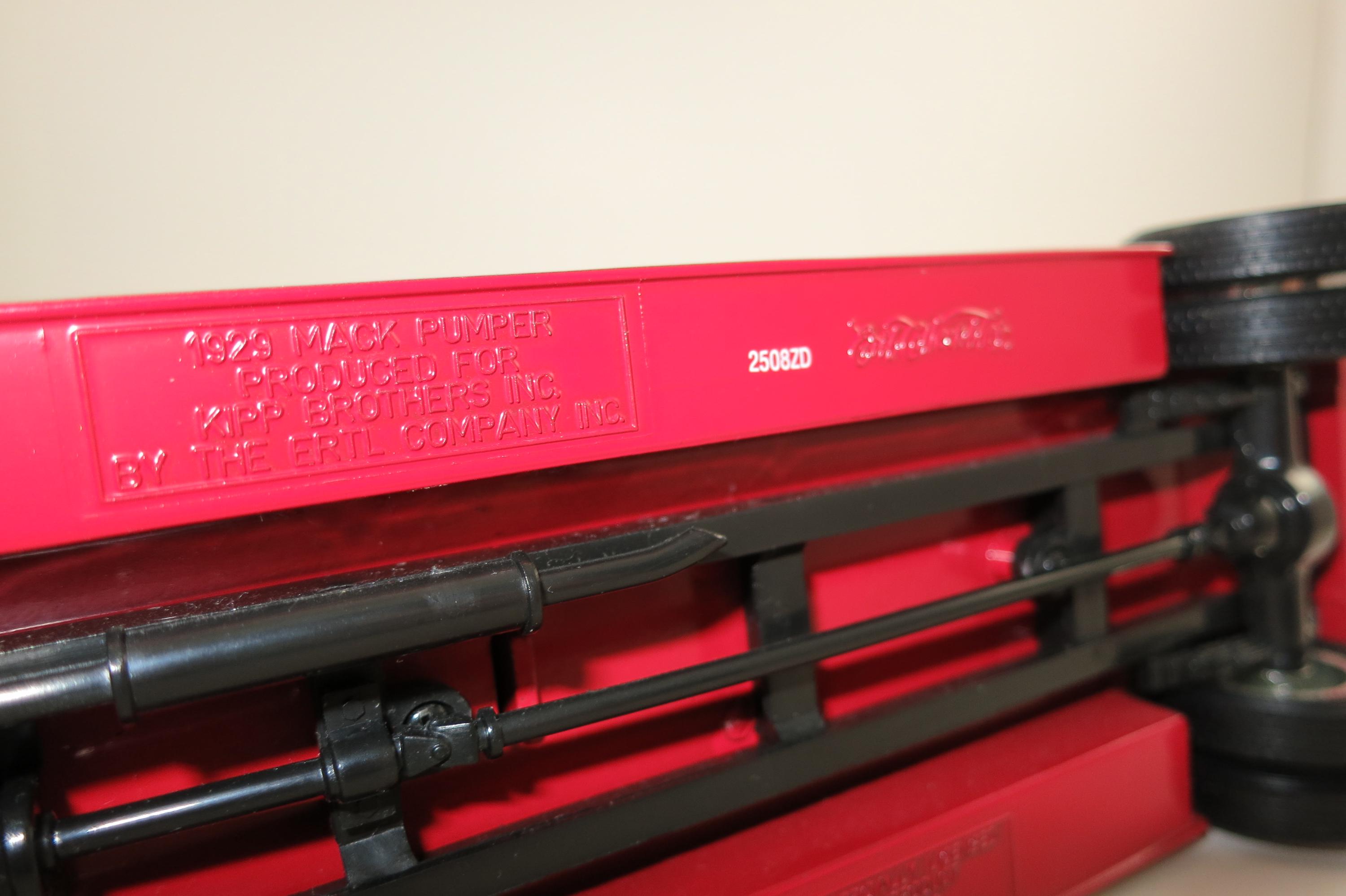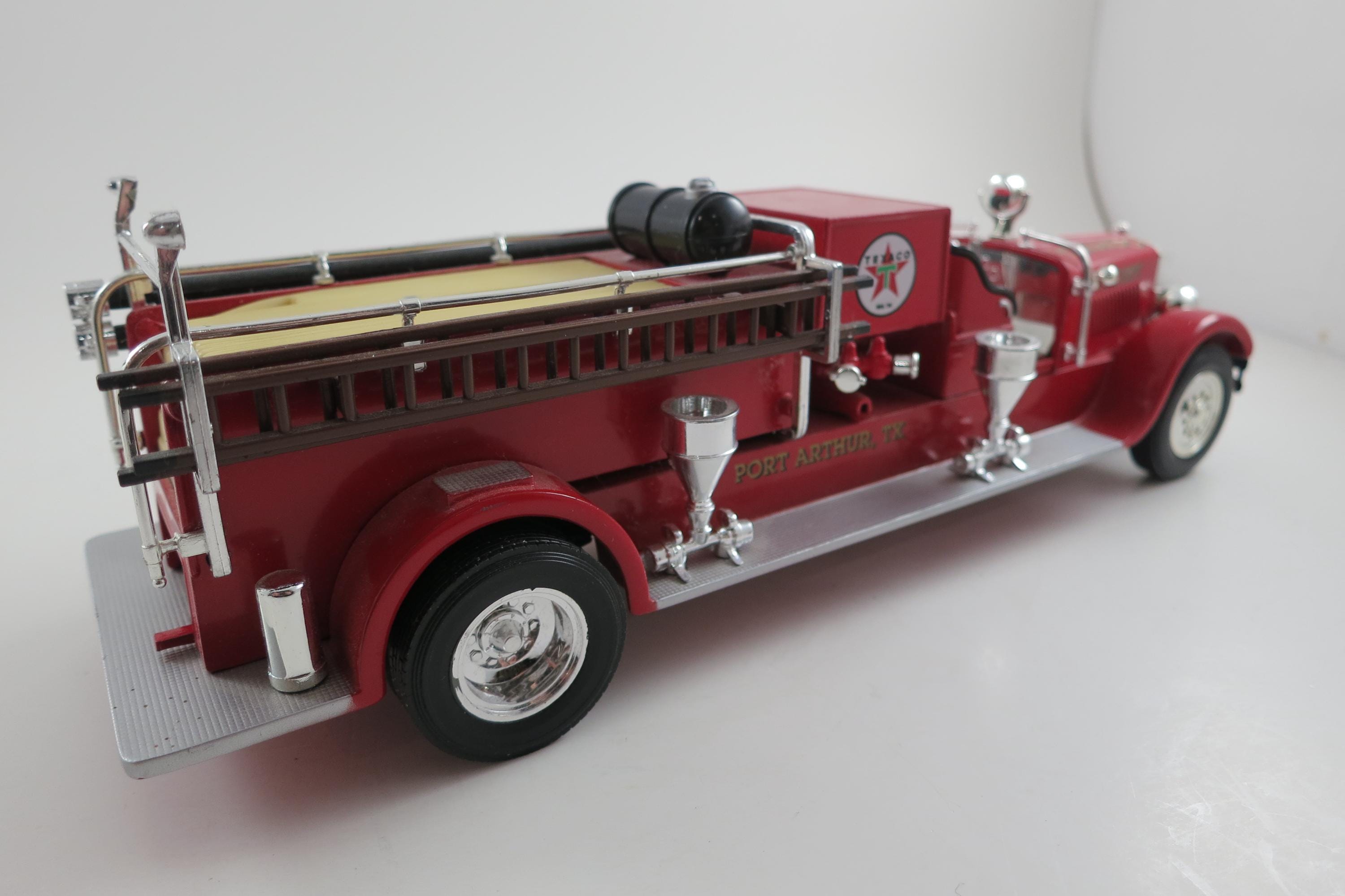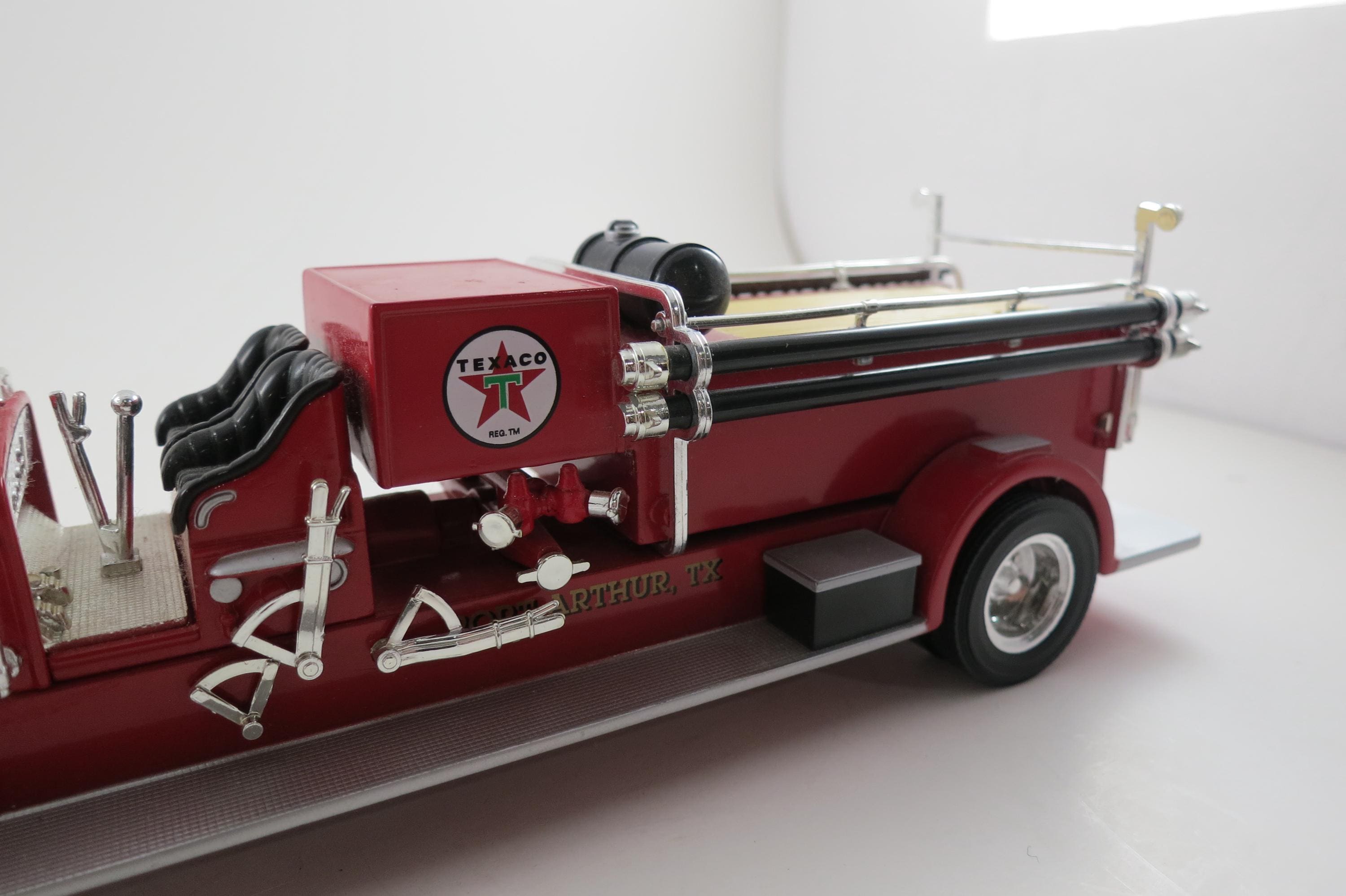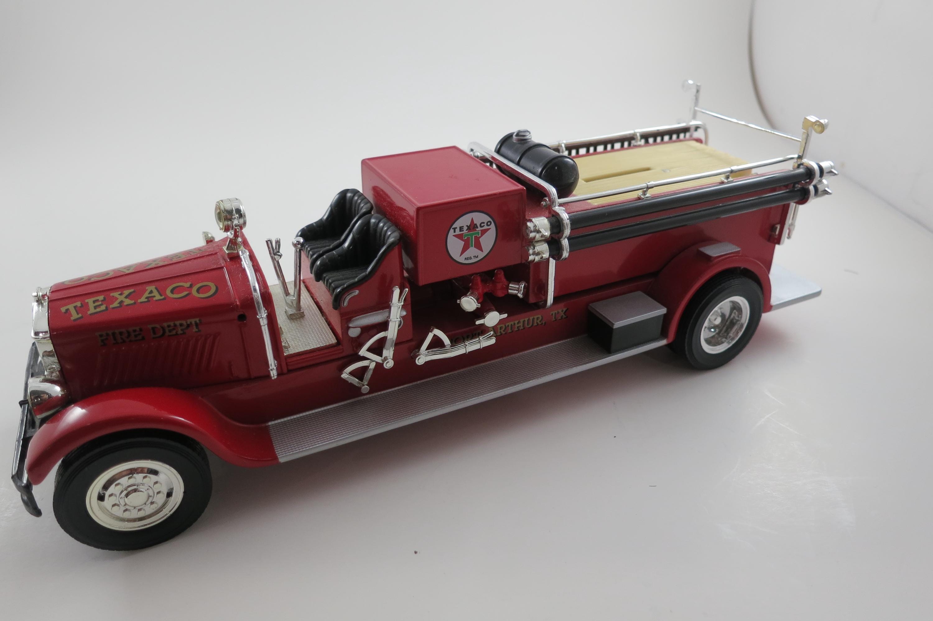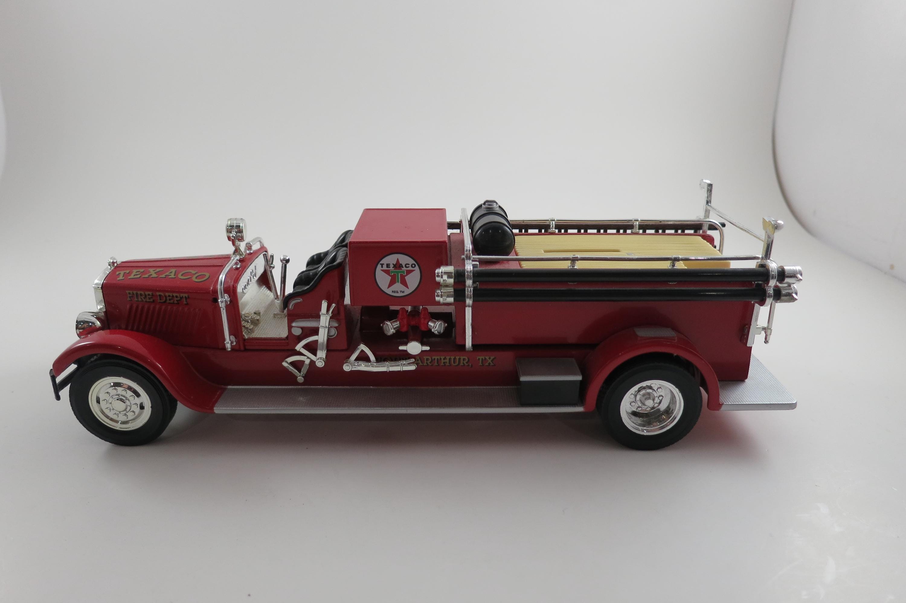 Vintage 1999 Ertl Texaco 1929 Mack Pumper Fire Truck Coin Bank Port Arthur, TX Excellent Condition. Sold as shown, measures 9 inches long and 2 3/4 inches wide.