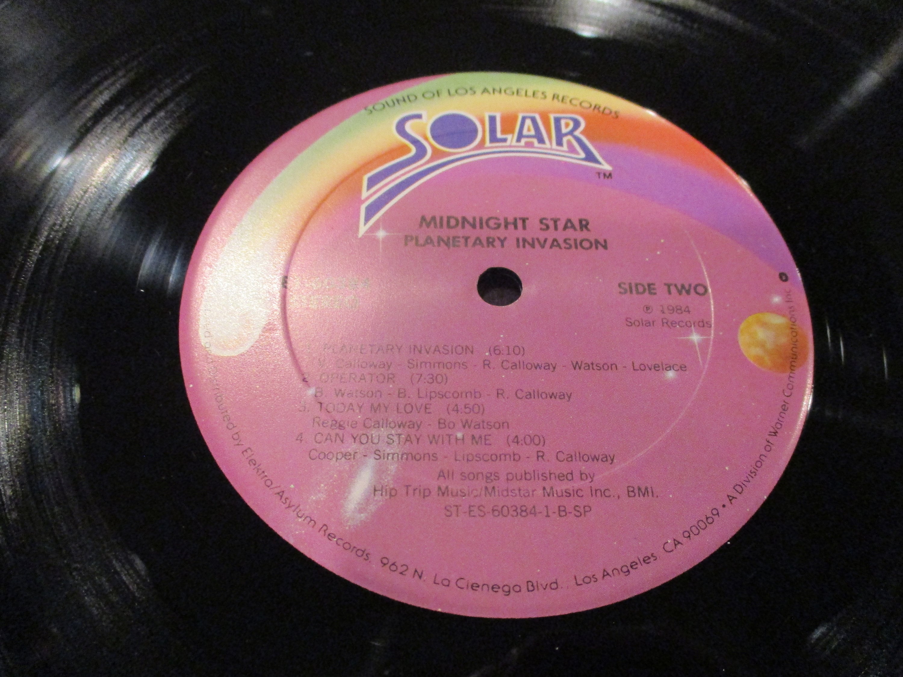 Vintage 1984 LP Record Midnight Star Planetary Invasion Excellent Condition. Original cover is In very good condition and includes the original inner paper sleeve. Record is excellent with light marks. Tracks are as follows